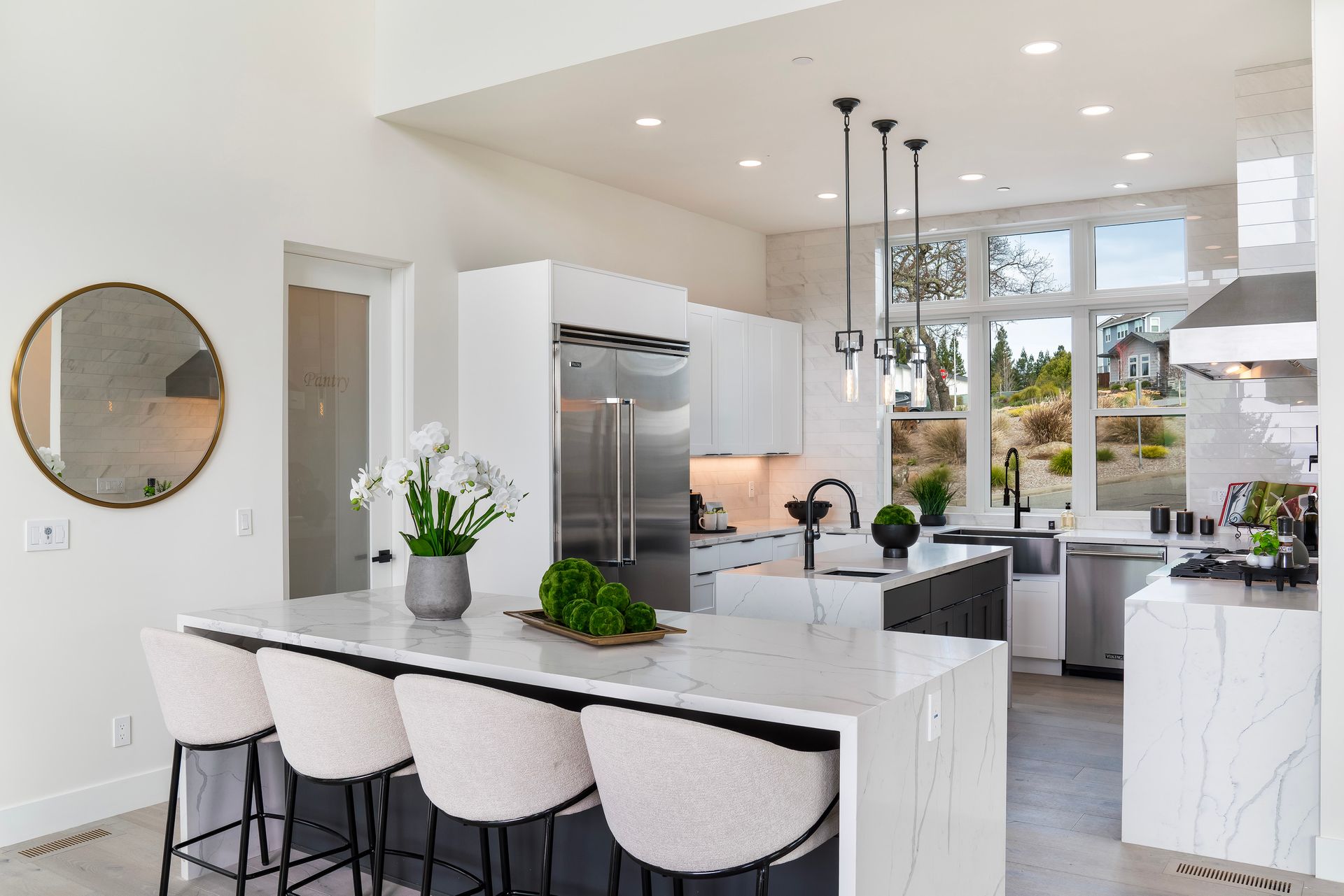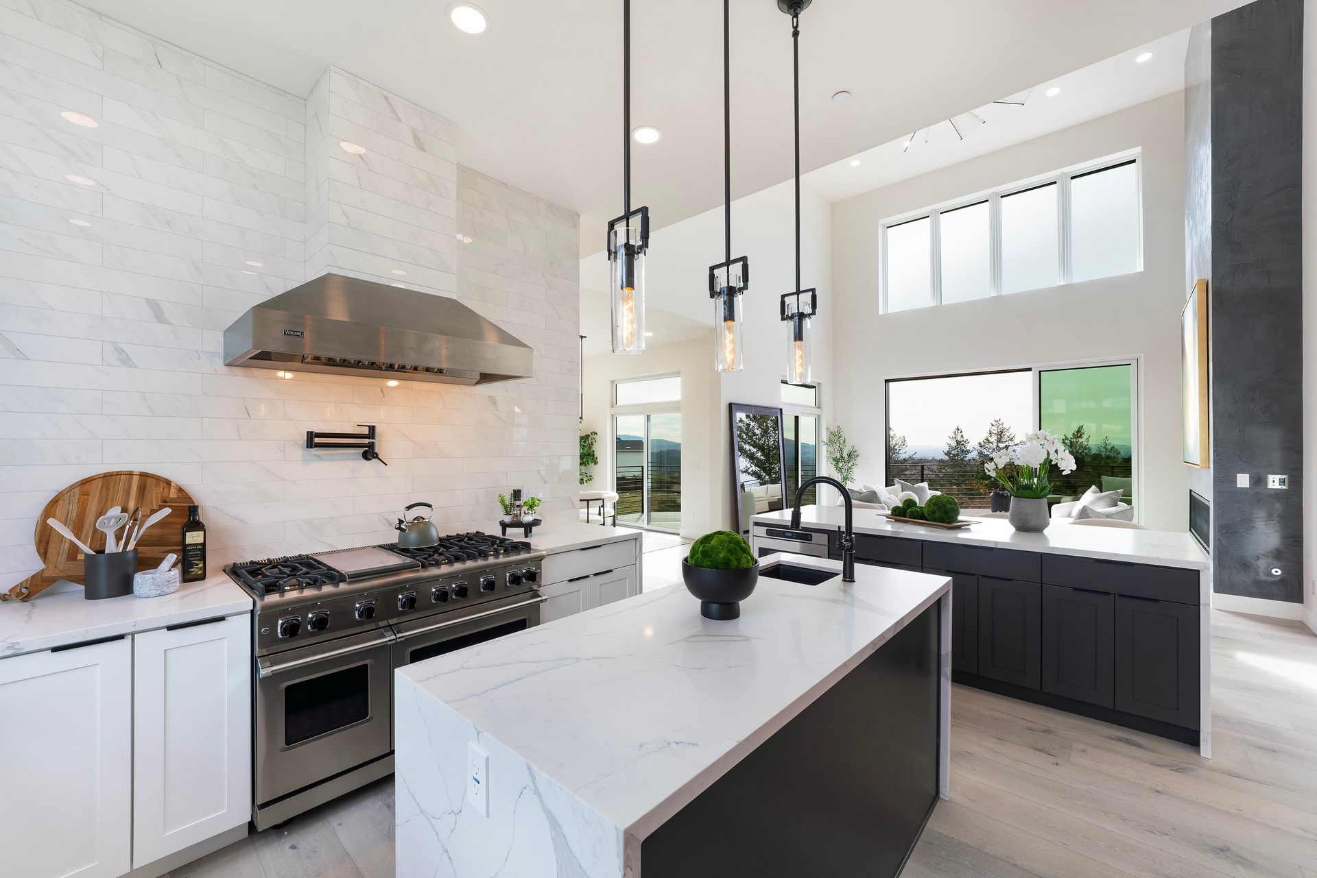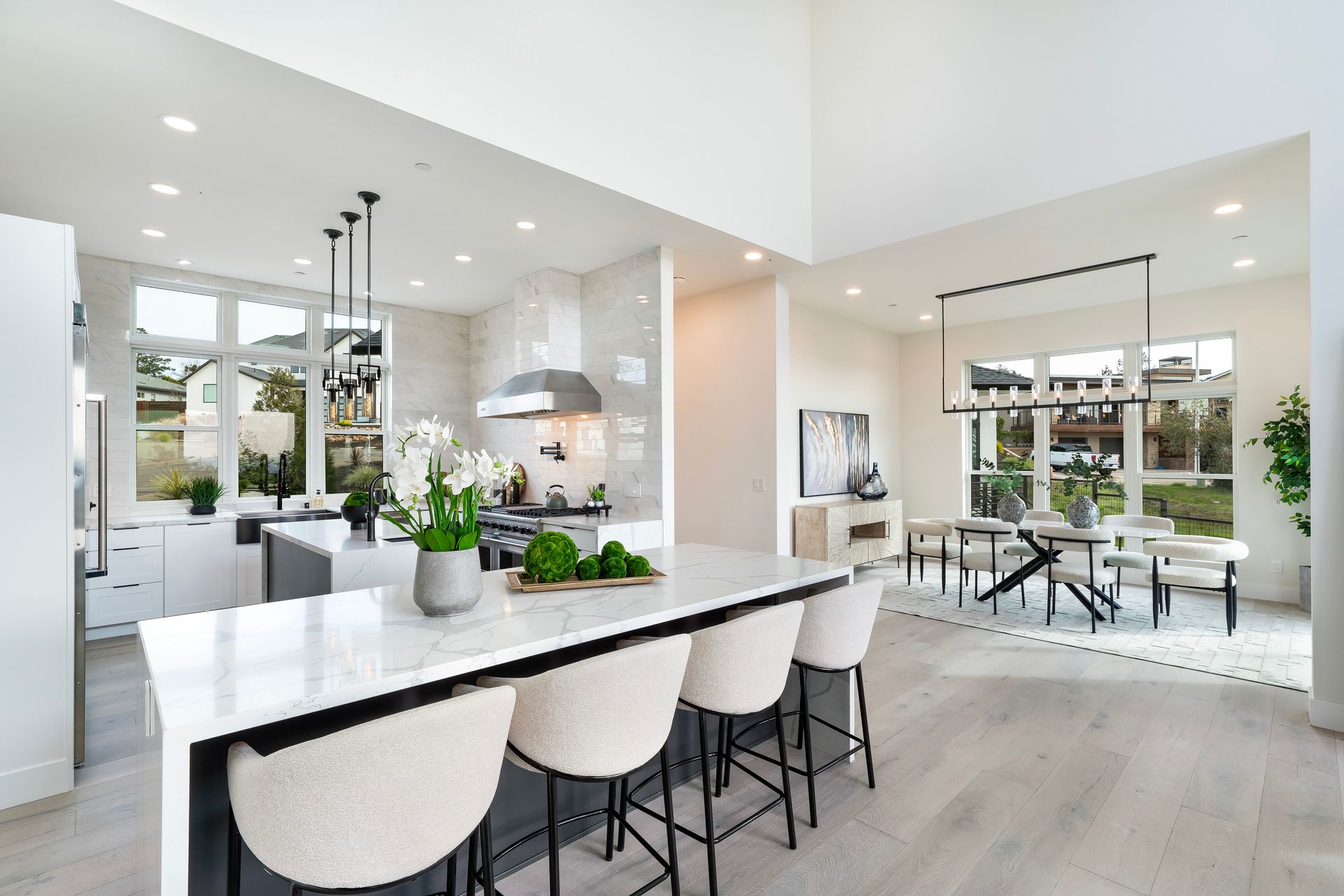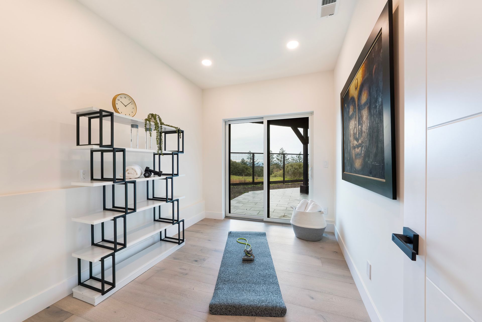 Situated in the sought-after Fountaingrove neighborhood, this modern home blends elegance, functionality, and high-end finishes. A striking glass front door opens to a dramatic formal entry, highlighted by a statement light fixture. The expansive great room features soaring ceilings, a sleek linear fireplace, and large sliders that extend to a deck with views of the open space beyond. The chef's kitchen is designed for both style and efficiency, featuring stone countertops, dual islands including one with a prep sink, a spacious walk-in pantry, and Viking appliances, including a 6-burner range with griddle, double ovens, and a pot filler. A formal dining area sits adjacent, perfect for entertaining. The primary suite offers deck access, a generous walk-in closet with a dressing mirror, and a spa-like ensuite bath complete with a soaking tub, multi-head shower, dual sinks, and radiant heated floors. An additional light-filled bedroom or office with its own bathroom completes this level. Upstairs you'll find two additional ensuite bedrooms. The lower level features a spacious family room with a wet bar, backyard access, a workout room, a full bath, and ample built-in storage. This home is an exceptional opportunity in one of Santa Rosa's premier communities.