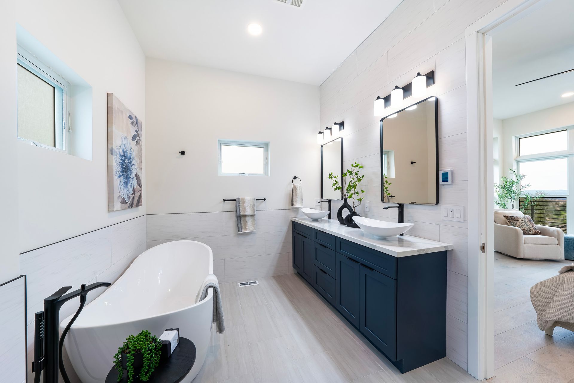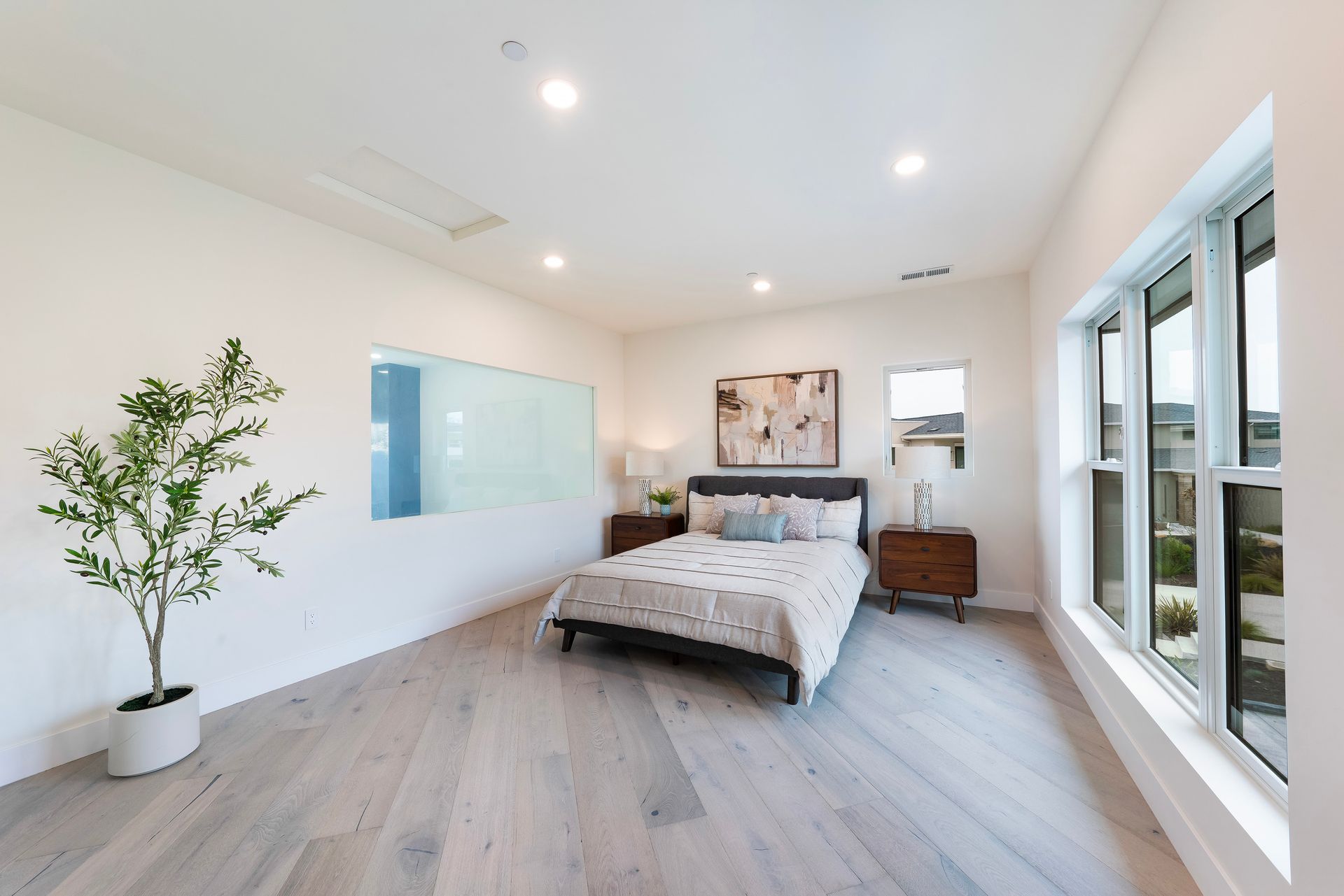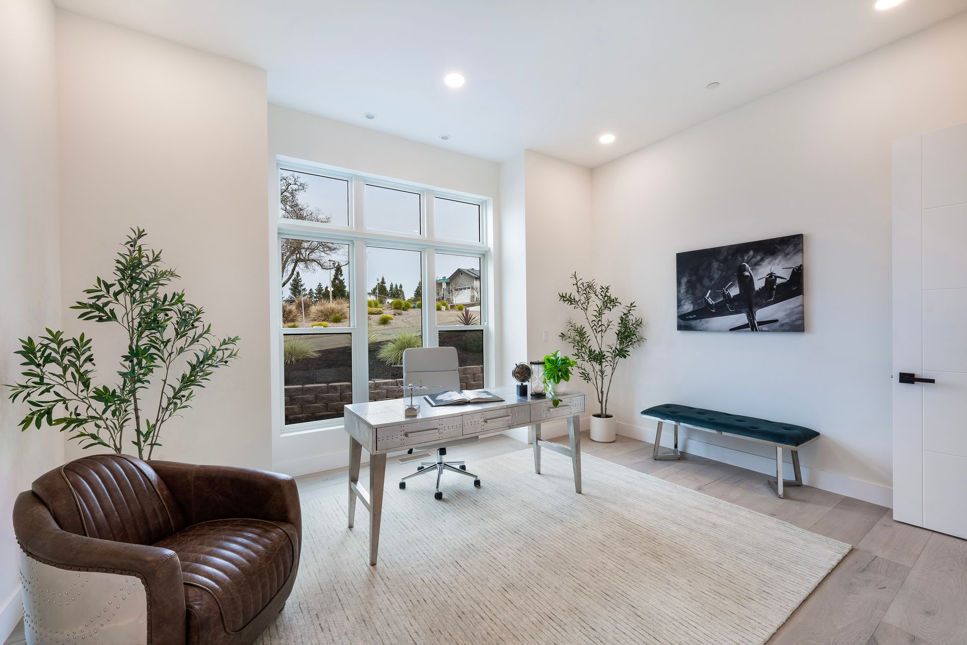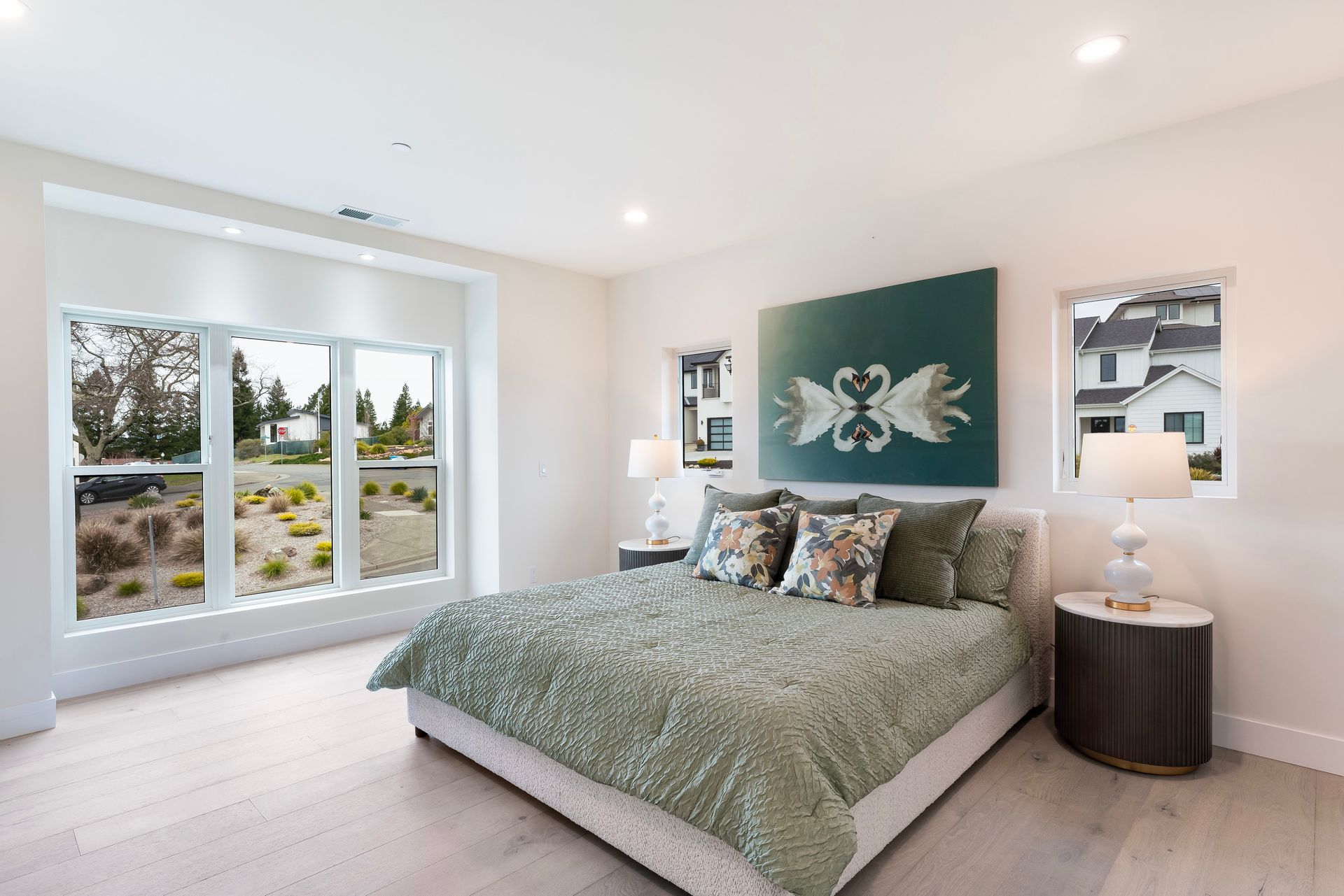 Situated in the sought-after Fountaingrove neighborhood, this modern home blends elegance, functionality, and high-end finishes. A striking glass front door opens to a dramatic formal entry, highlighted by a statement light fixture. The expansive great room features soaring ceilings, a sleek linear fireplace, and large sliders that extend to a deck with views of the open space beyond. The chef's kitchen is designed for both style and efficiency, featuring stone countertops, dual islands including one with a prep sink, a spacious walk-in pantry, and Viking appliances, including a 6-burner range with griddle, double ovens, and a pot filler. A formal dining area sits adjacent, perfect for entertaining. The primary suite offers deck access, a generous walk-in closet with a dressing mirror, and a spa-like ensuite bath complete with a soaking tub, multi-head shower, dual sinks, and radiant heated floors. An additional light-filled bedroom or office with its own bathroom completes this level. Upstairs you'll find two additional ensuite bedrooms. The lower level features a spacious family room with a wet bar, backyard access, a workout room, a full bath, and ample built-in storage. This home is an exceptional opportunity in one of Santa Rosa's premier communities.