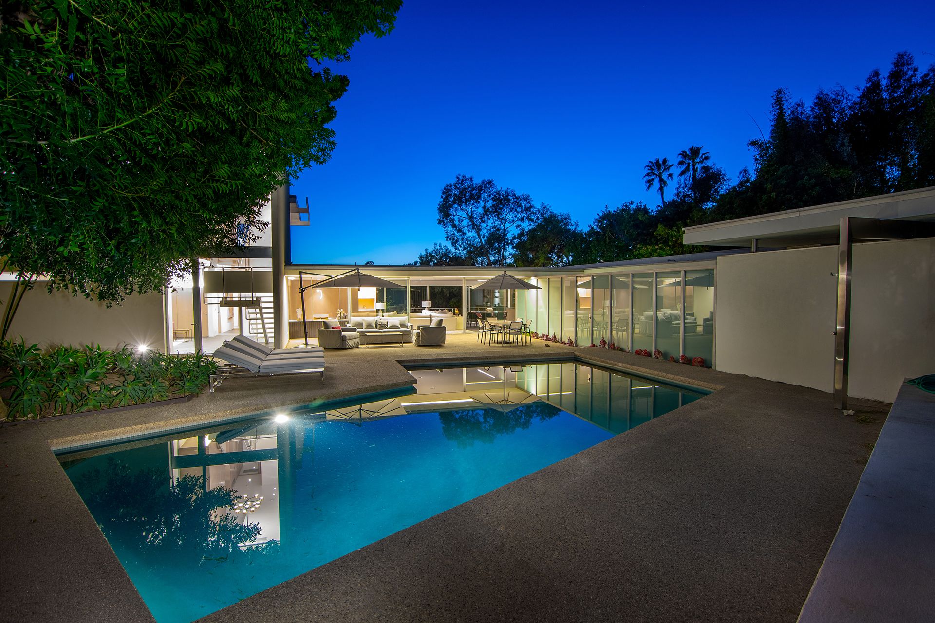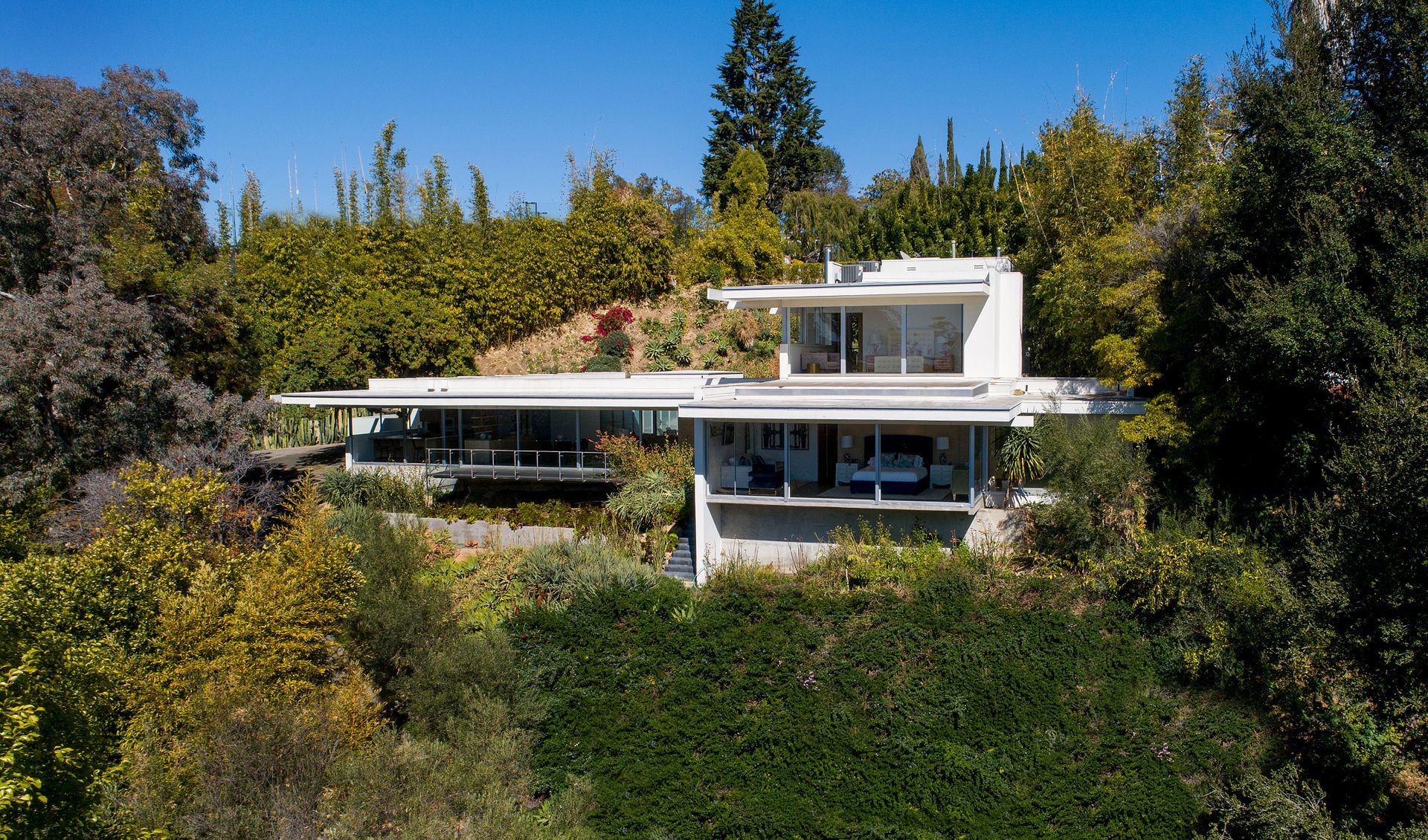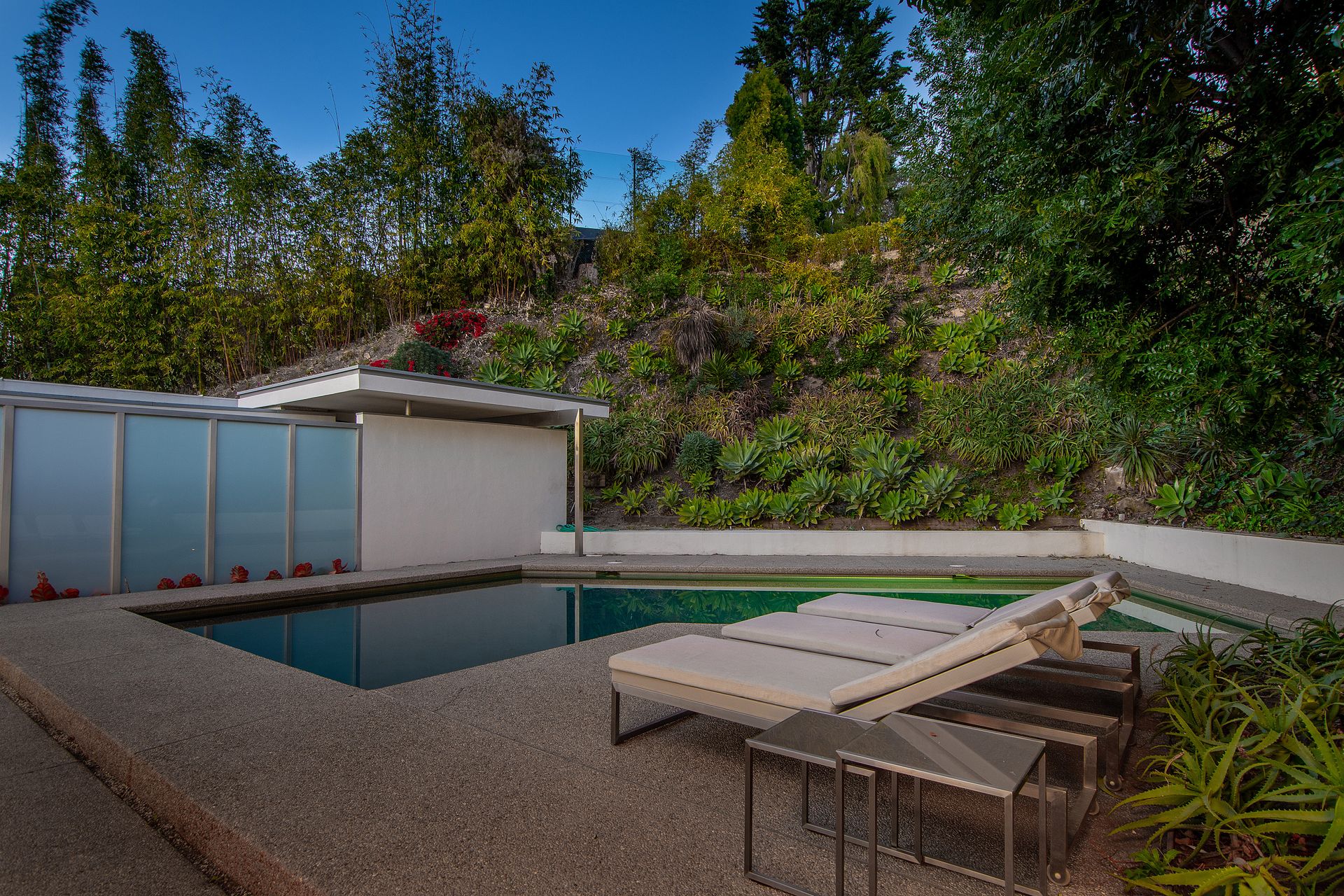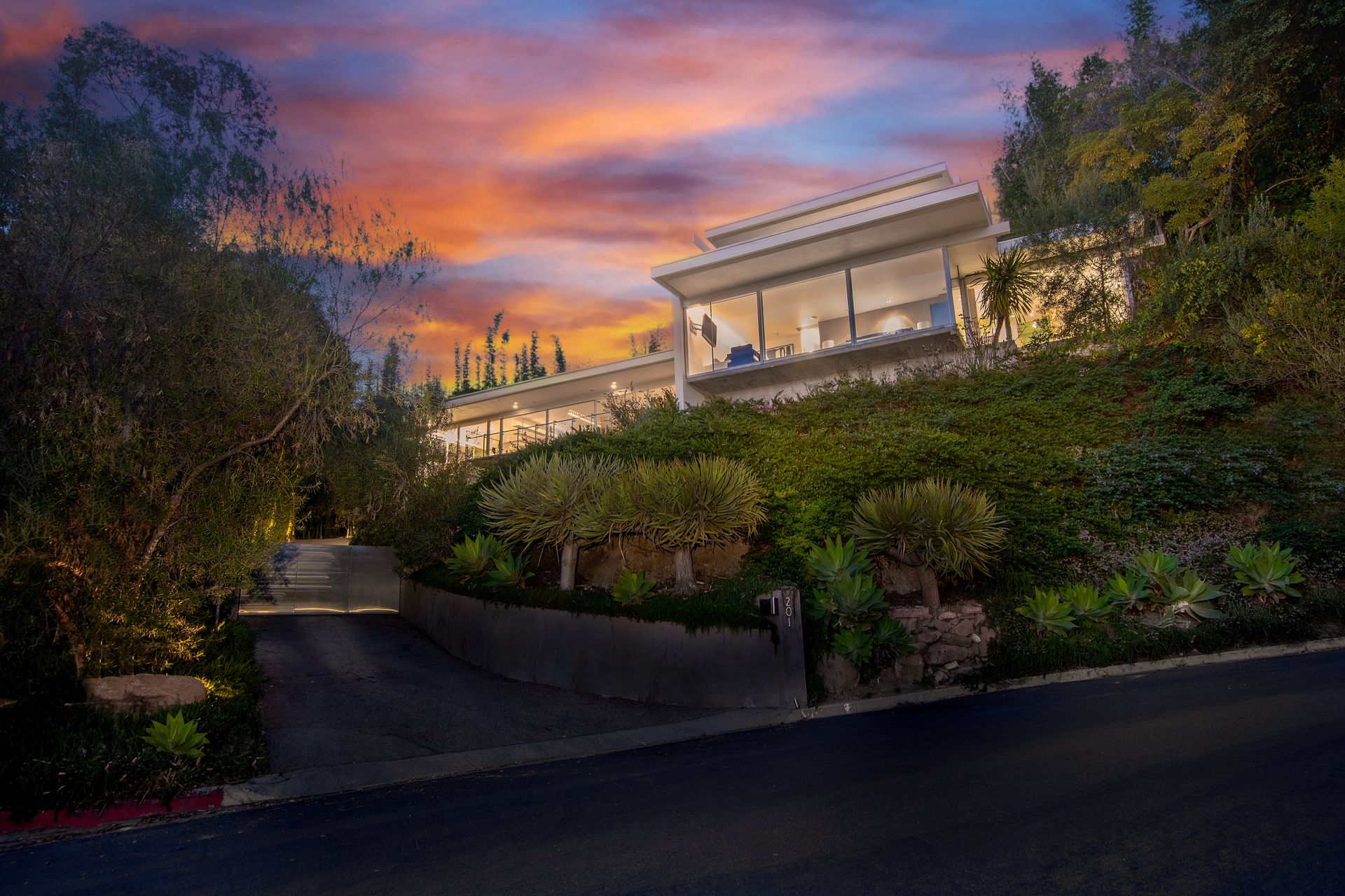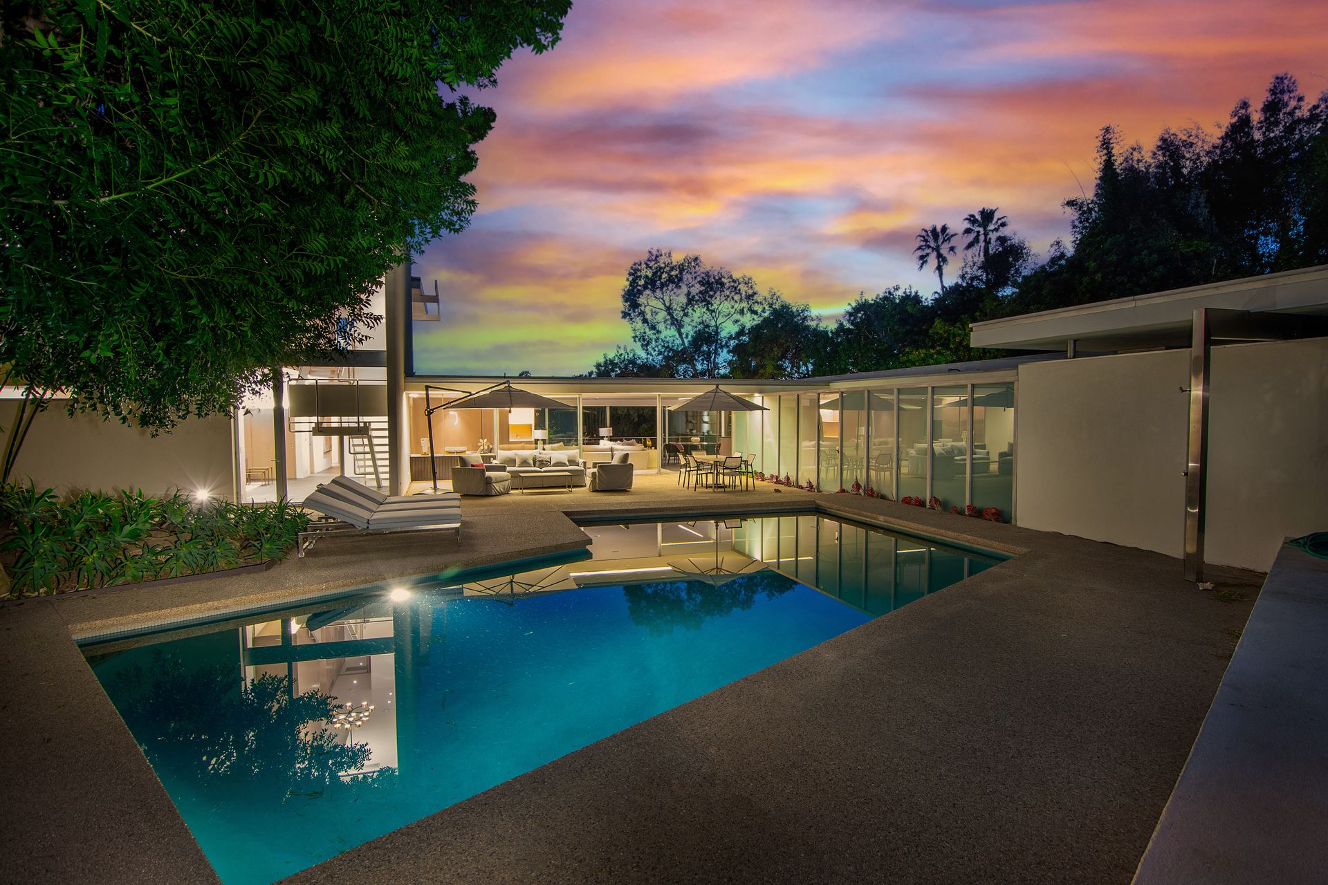 Welcome to one of Richard Neutra's magnificent achievements. This home is sited up a long private gated driveway on over half an acre with westward views reaching all the way to the Pacific Ocean. The home has been updated and expanded keeping with the Neutra's original plans. There are four bedrooms five and one-half baths, a family room and a dining area off the living room. The kitchen and living room open to a large pool bathed with natural light from the impressive glass on both sides. There are two master bedrooms with head on views, a generous walk-in island closet, Terrazzo bath, sunken tub, steam shower and dual vanity that creates the artful space that Neutra envisioned. Maids quarters and ample private parking complete this masterpiece of modernism.