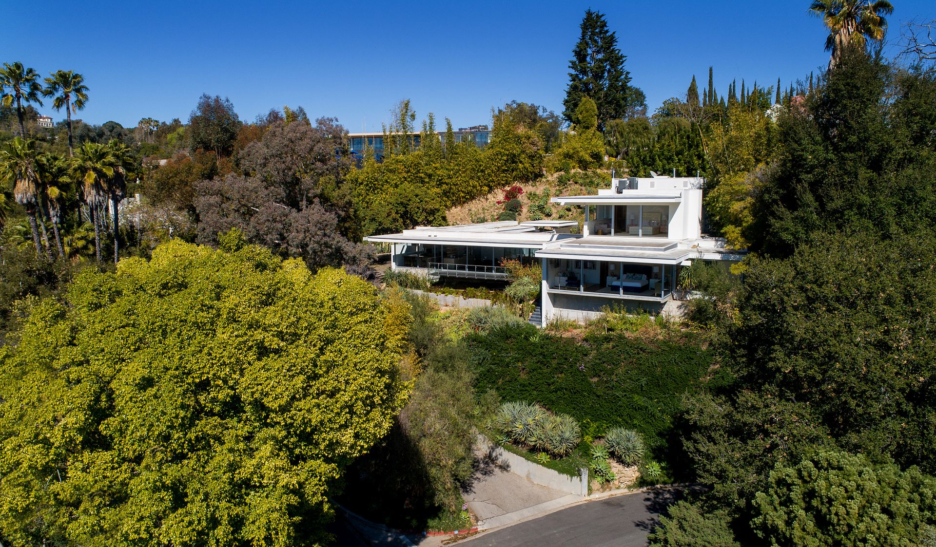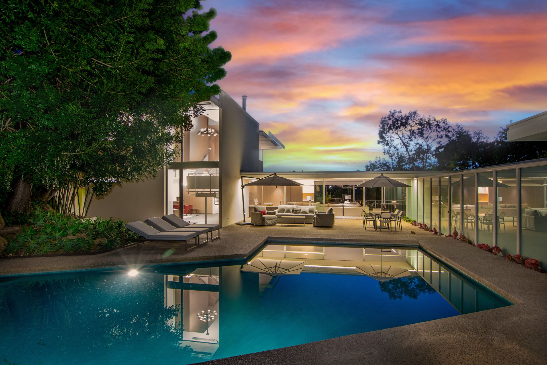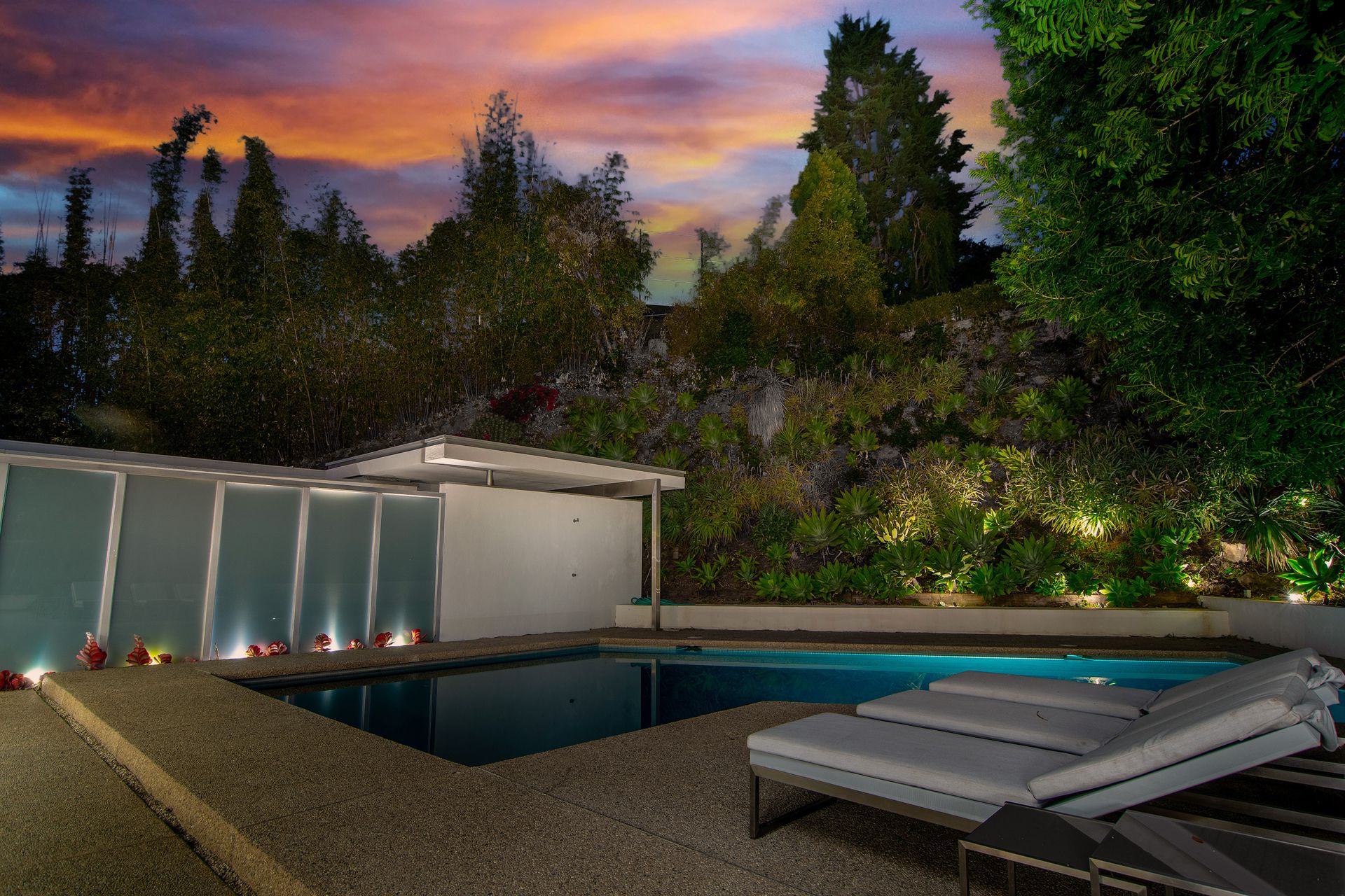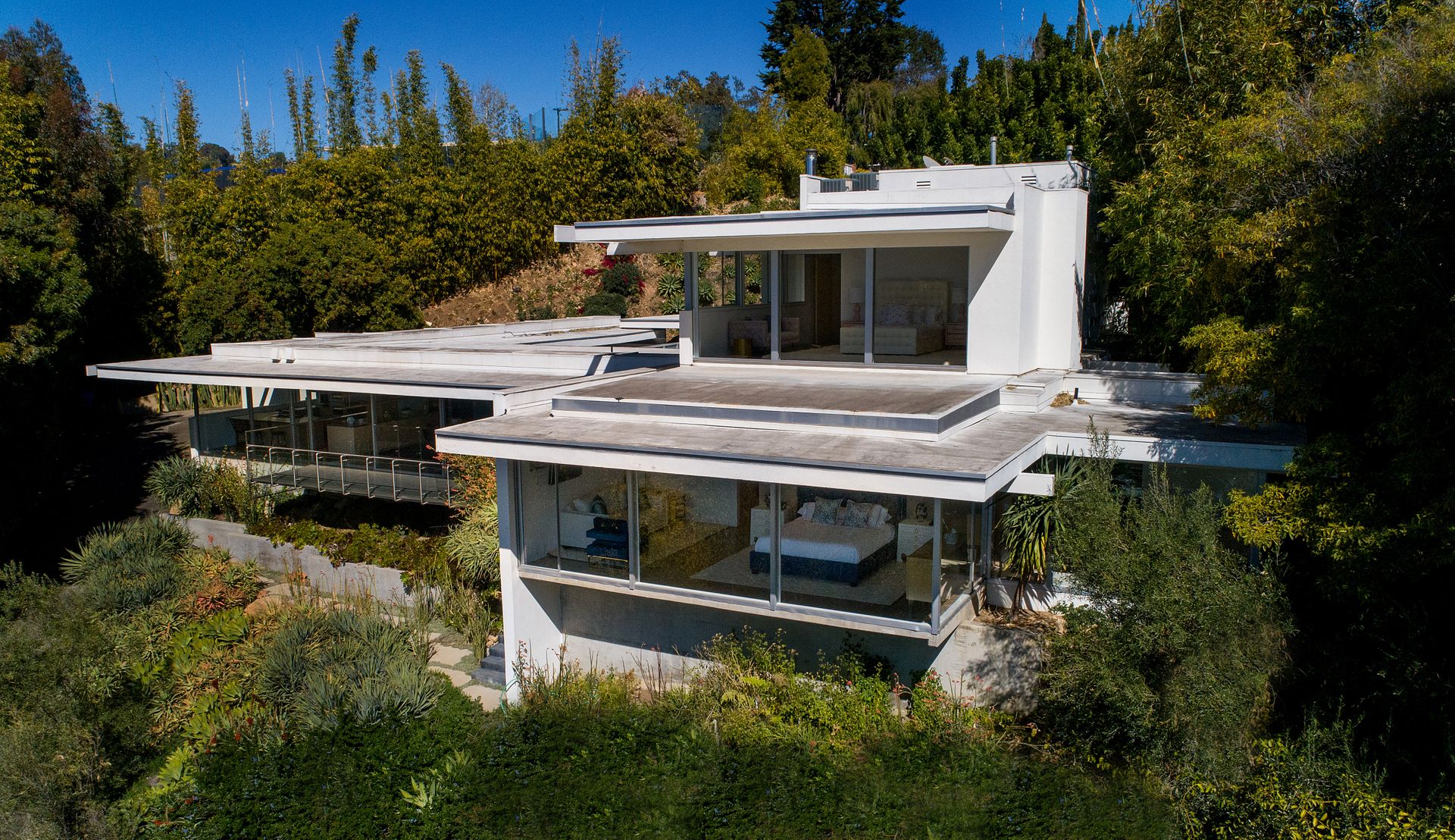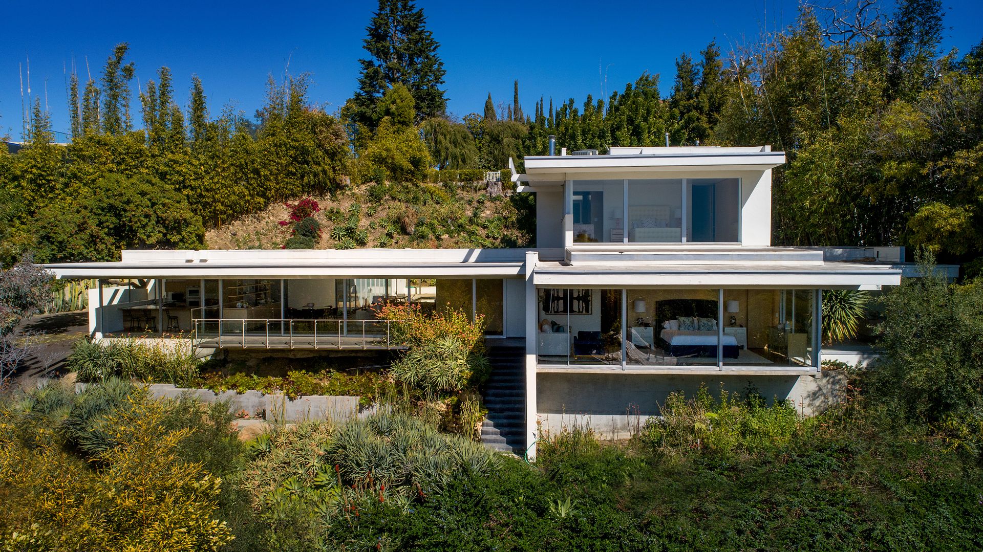 Welcome to one of Richard Neutra's magnificent achievements. This home is sited up a long private gated driveway on over half an acre with westward views reaching all the way to the Pacific Ocean. The home has been updated and expanded keeping with the Neutra's original plans. There are four bedrooms five and one-half baths, a family room and a dining area off the living room. The kitchen and living room open to a large pool bathed with natural light from the impressive glass on both sides. There are two master bedrooms with head on views, a generous walk-in island closet, Terrazzo bath, sunken tub, steam shower and dual vanity that creates the artful space that Neutra envisioned. Maids quarters and ample private parking complete this masterpiece of modernism.