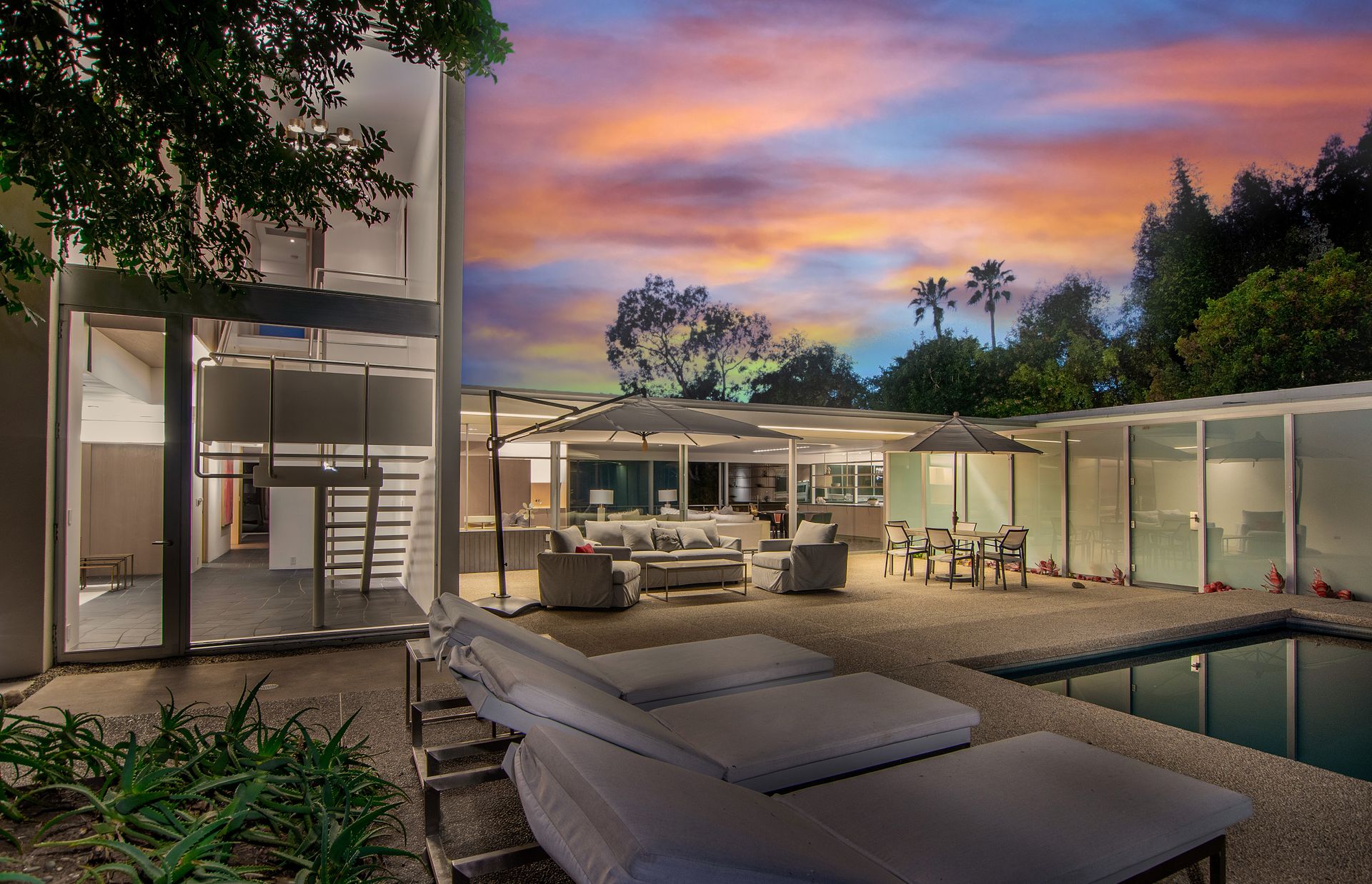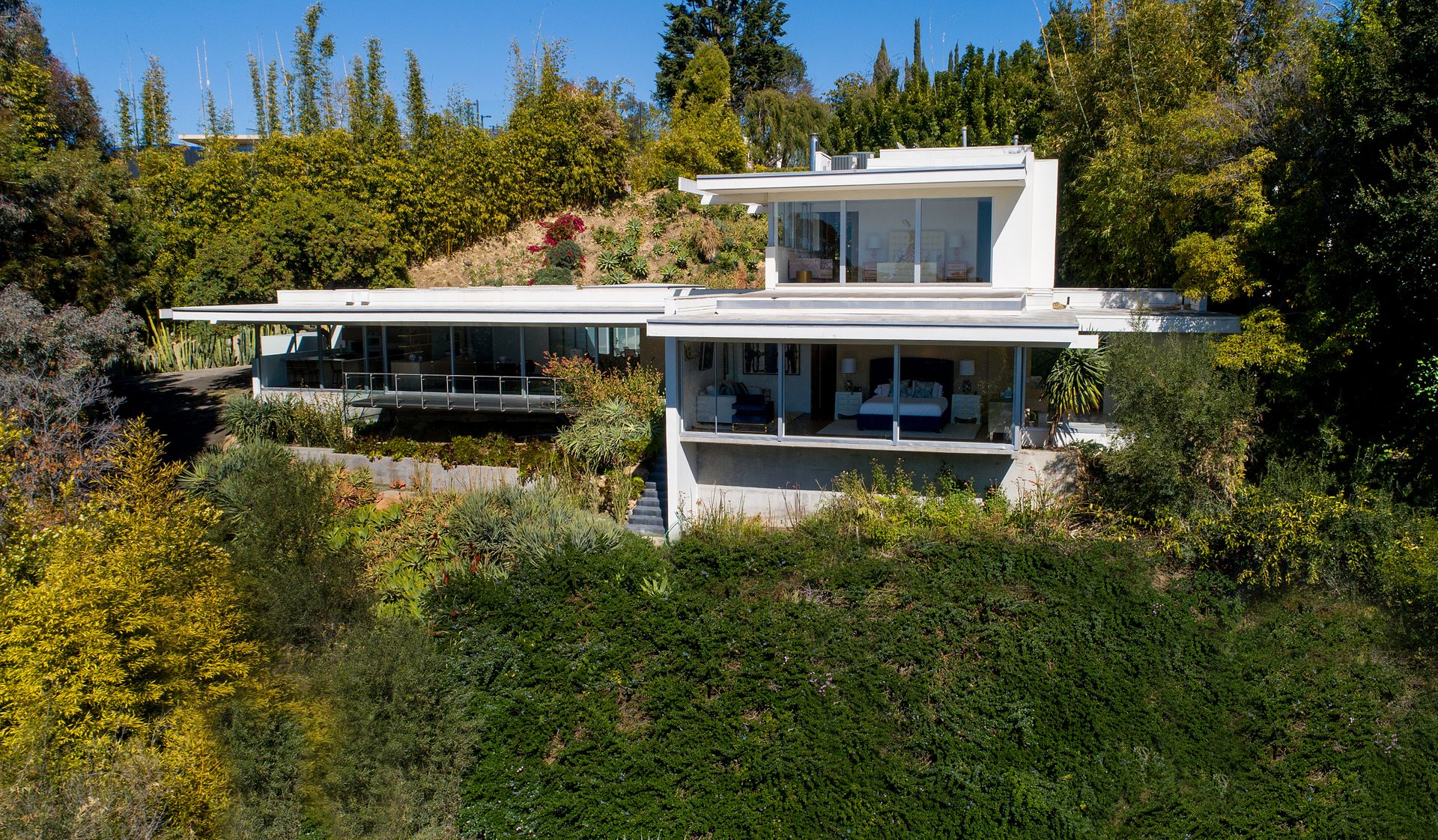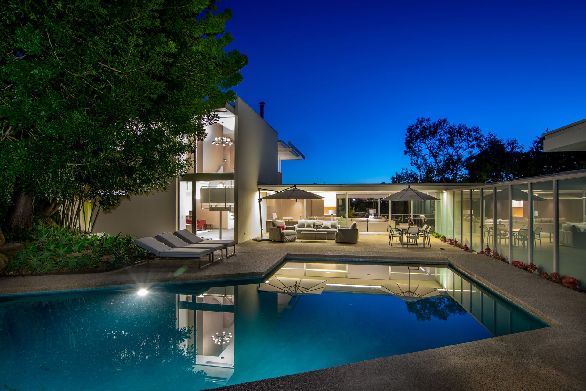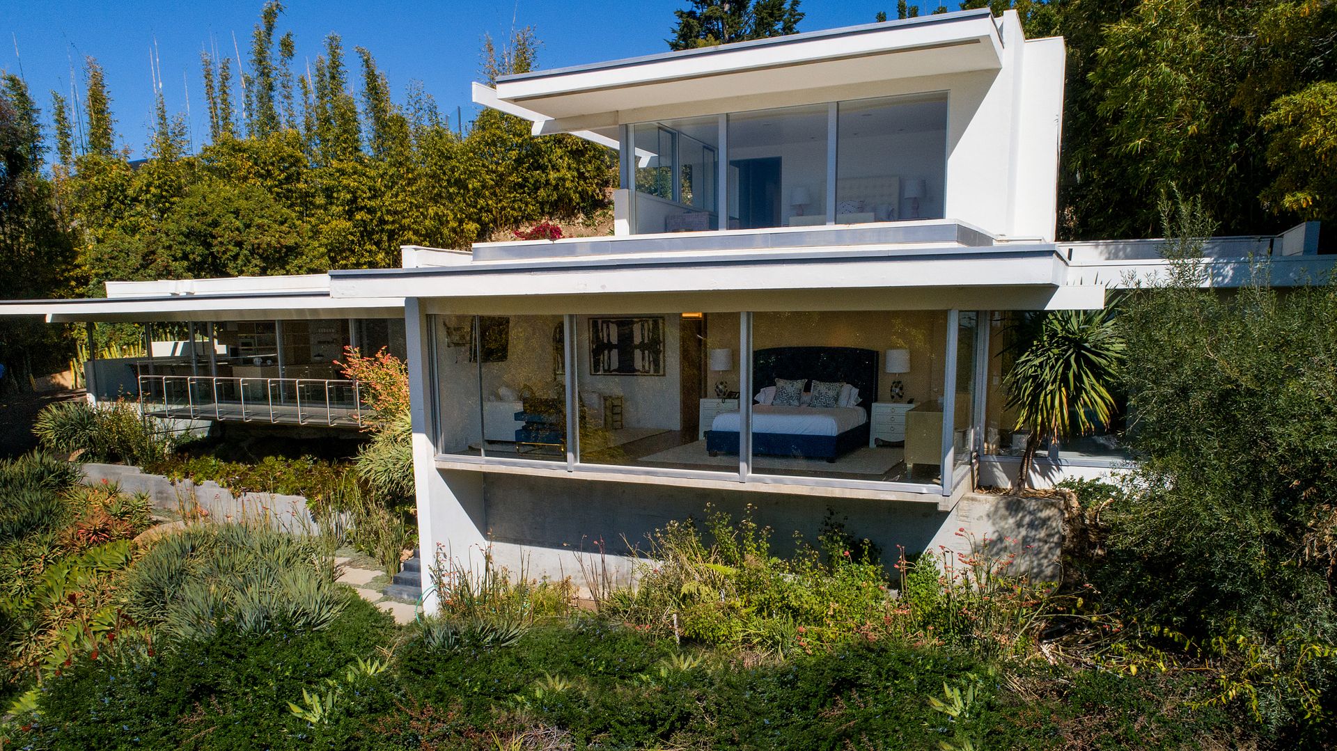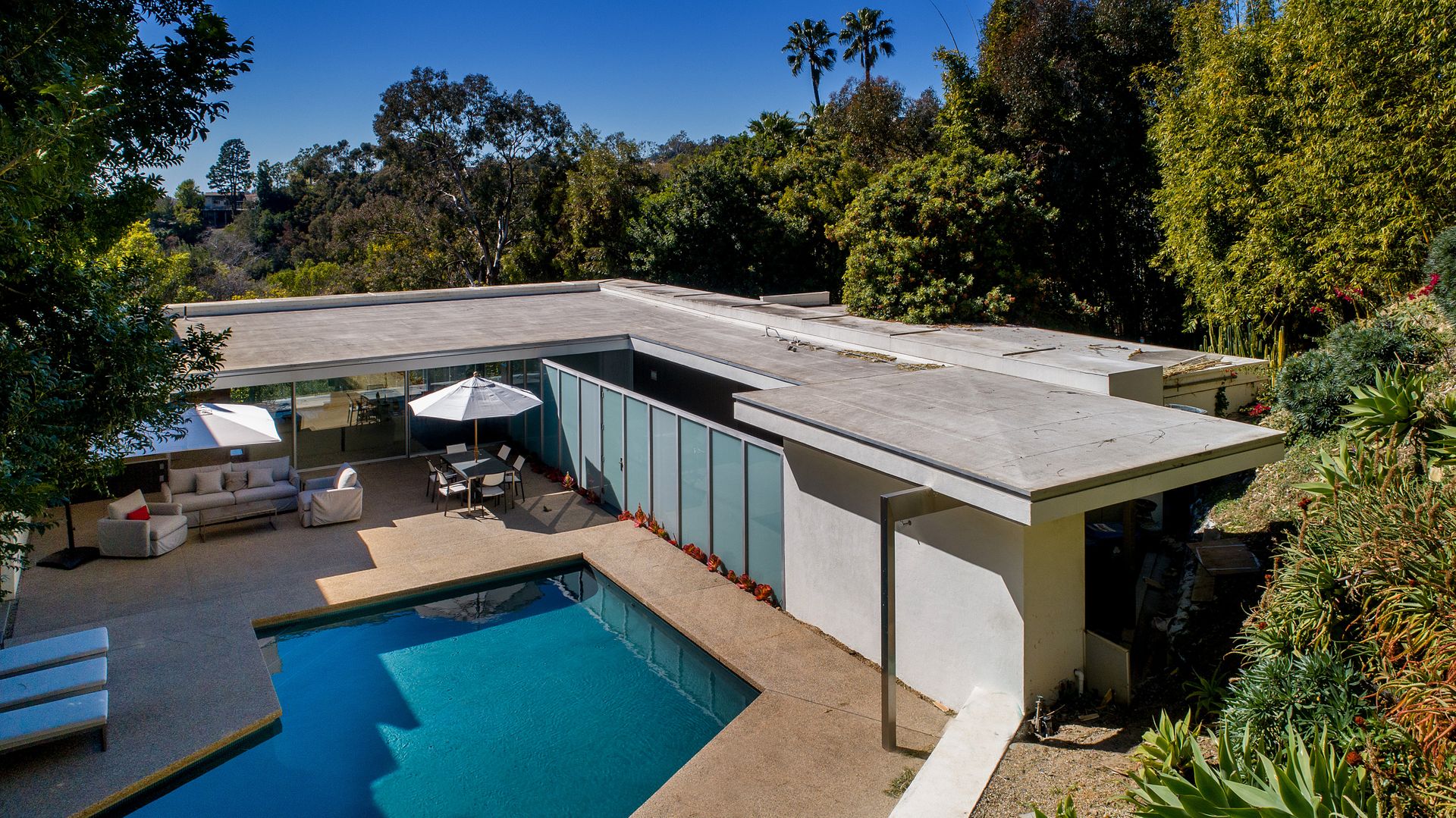 Welcome to one of Richard Neutra's magnificent achievements. This home is sited up a long private gated driveway on over half an acre with westward views reaching all the way to the Pacific Ocean. The home has been updated and expanded keeping with the Neutra's original plans. There are four bedrooms five and one-half baths, a family room and a dining area off the living room. The kitchen and living room open to a large pool bathed with natural light from the impressive glass on both sides. There are two master bedrooms with head on views, a generous walk-in island closet, Terrazzo bath, sunken tub, steam shower and dual vanity that creates the artful space that Neutra envisioned. Maids quarters and ample private parking complete this masterpiece of modernism.