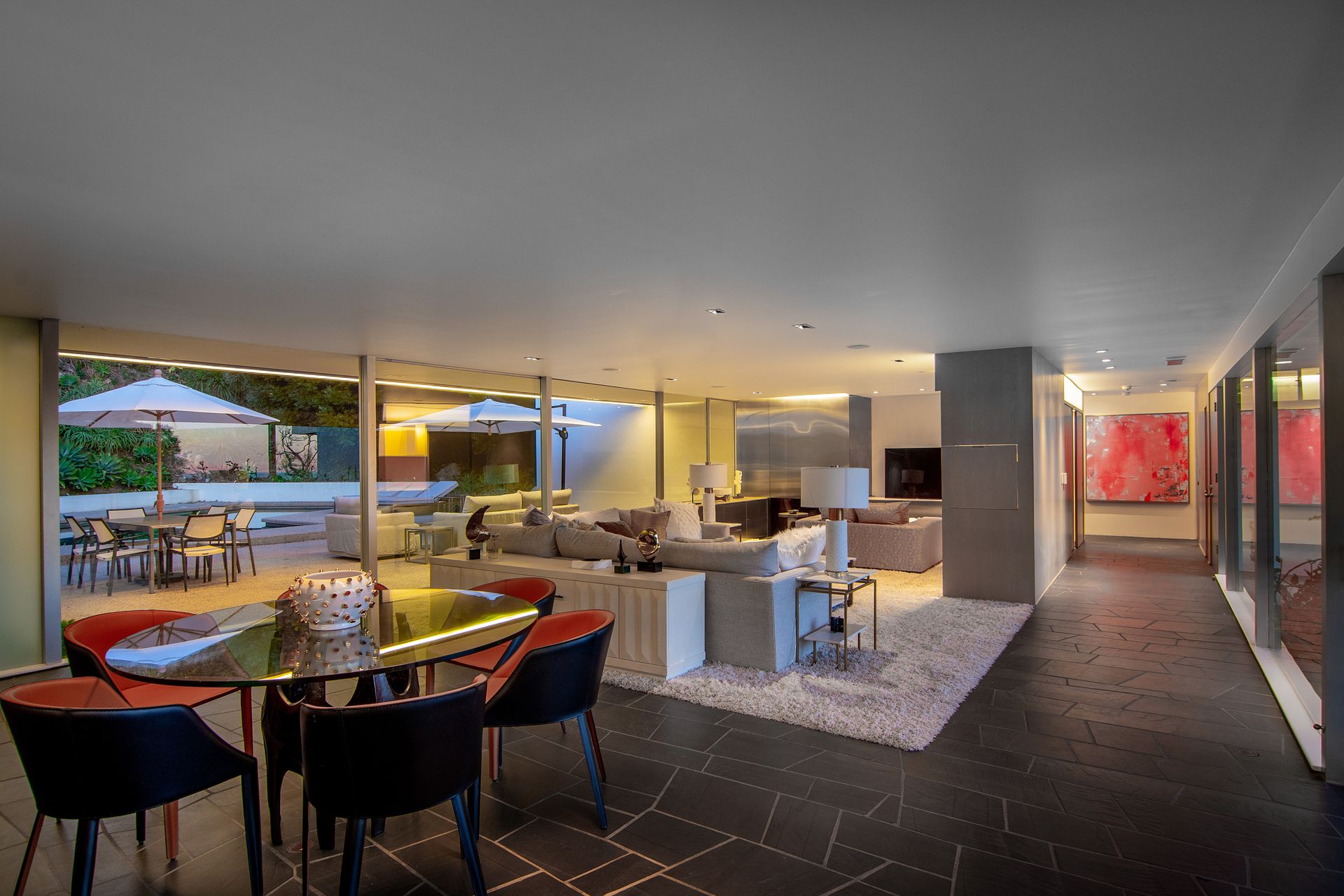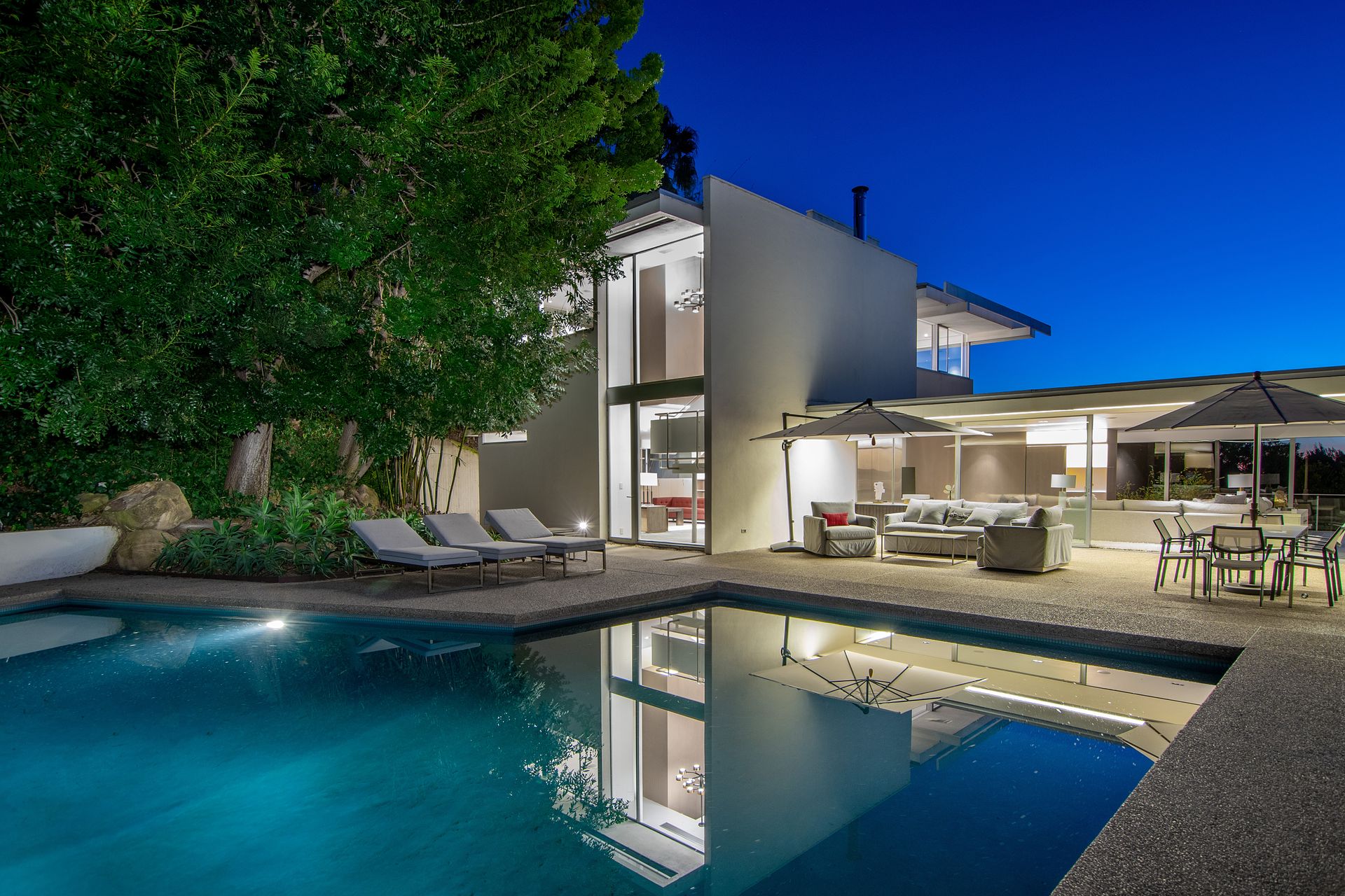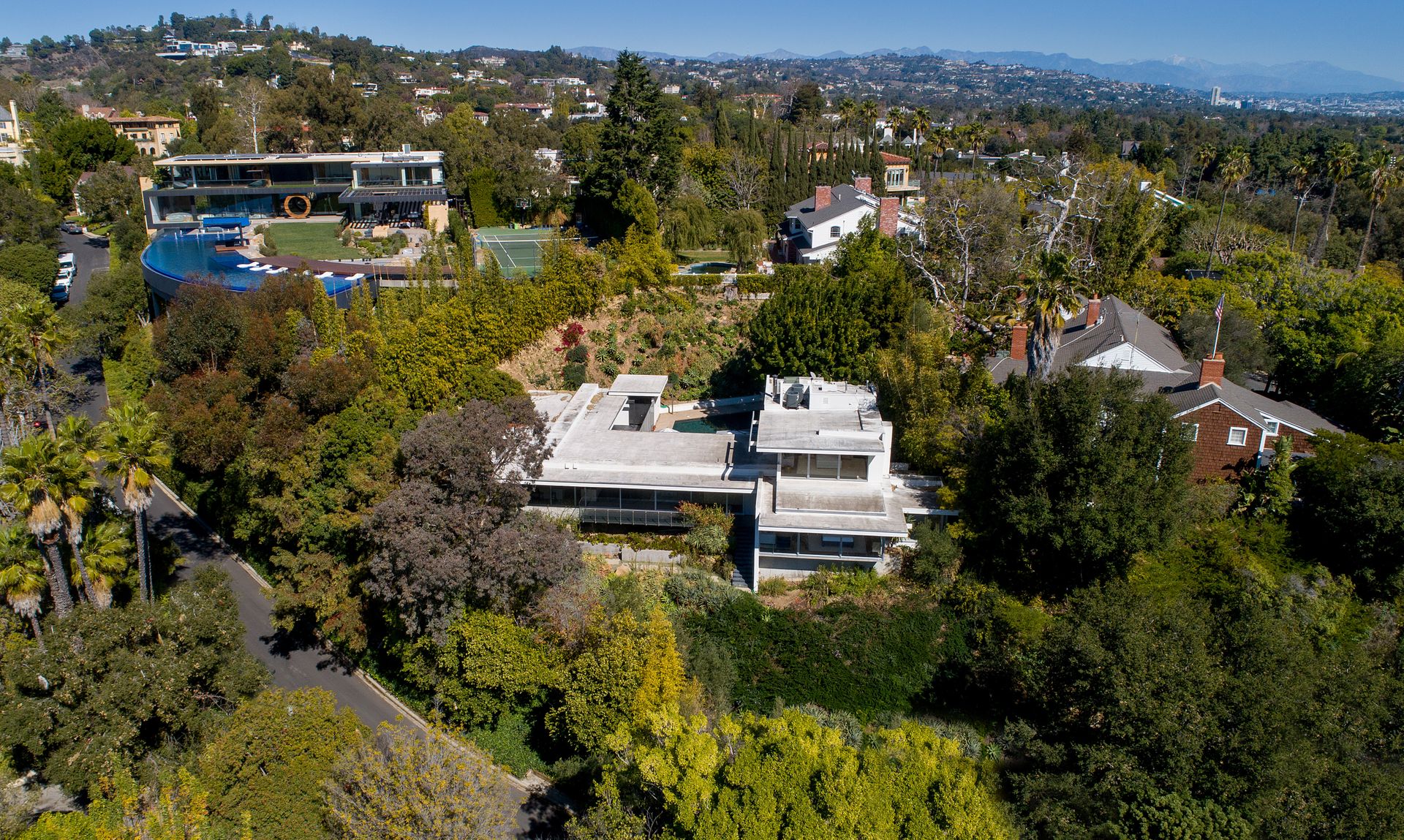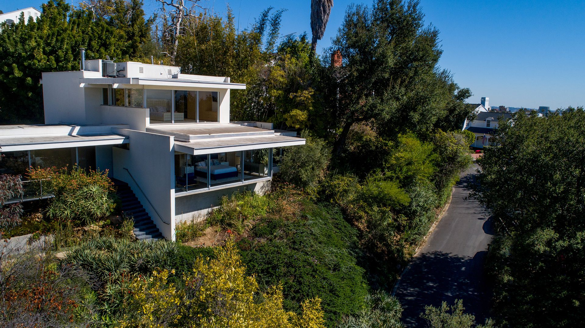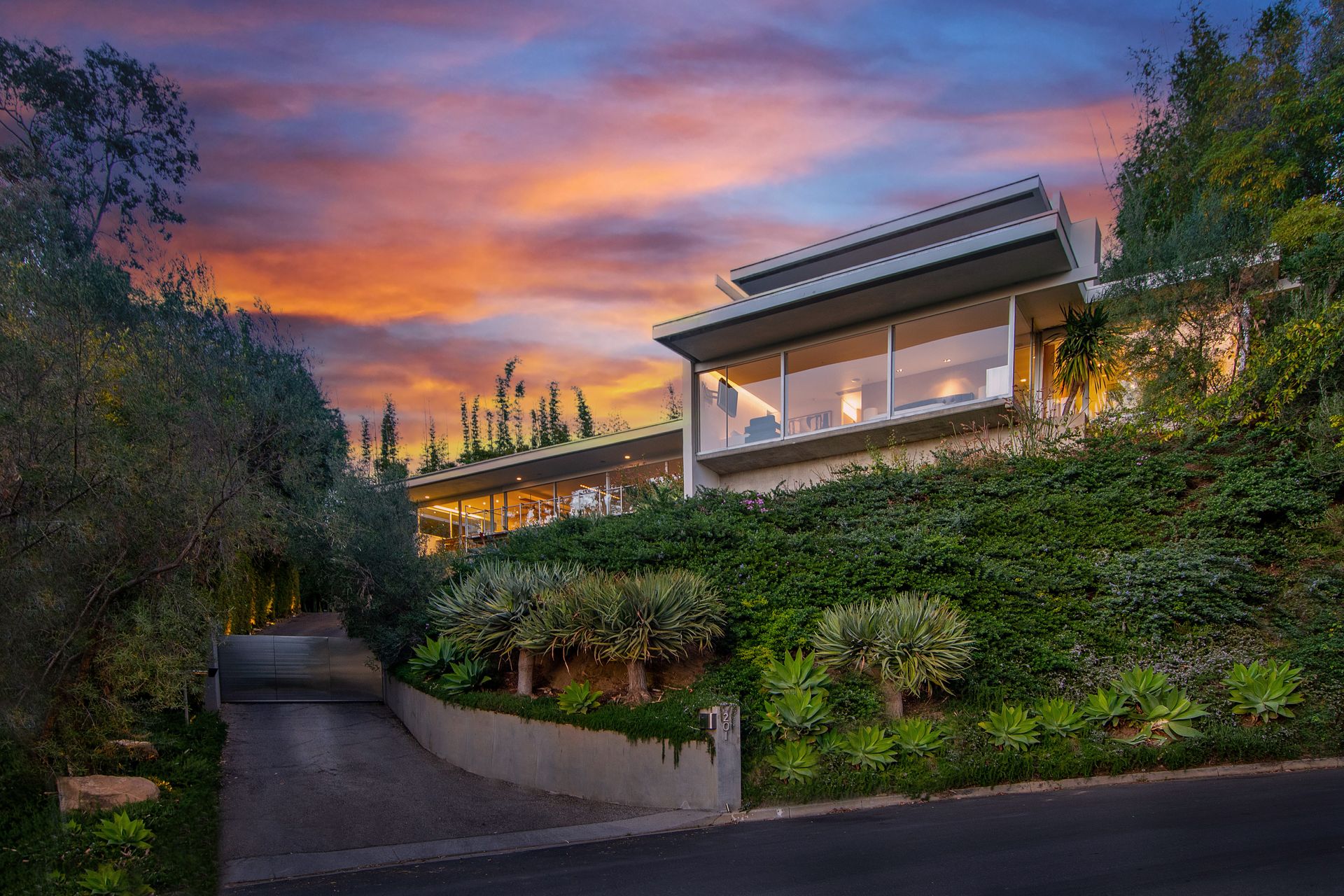 Welcome to one of Richard Neutra's magnificent achievements. This home is sited up a long private gated driveway on over half an acre with westward views reaching all the way to the Pacific Ocean. The home has been updated and expanded keeping with the Neutra's original plans. There are four bedrooms five and one-half baths, a family room and a dining area off the living room. The kitchen and living room open to a large pool bathed with natural light from the impressive glass on both sides. There are two master bedrooms with head on views, a generous walk-in island closet, Terrazzo bath, sunken tub, steam shower and dual vanity that creates the artful space that Neutra envisioned. Maids quarters and ample private parking complete this masterpiece of modernism.