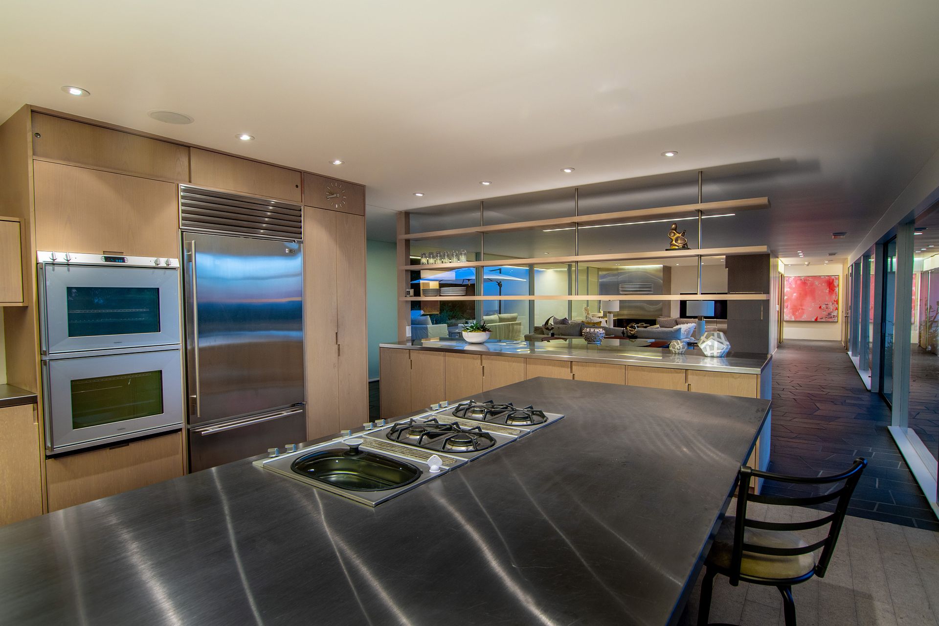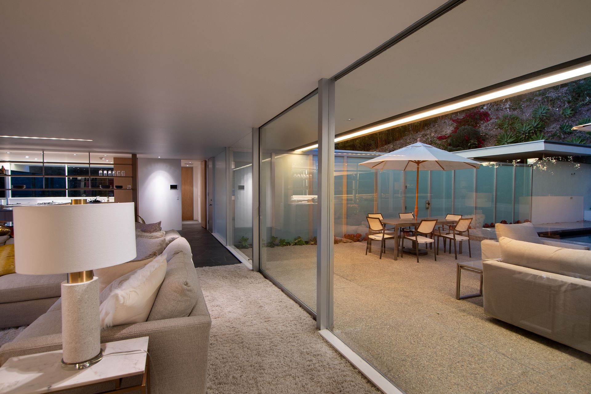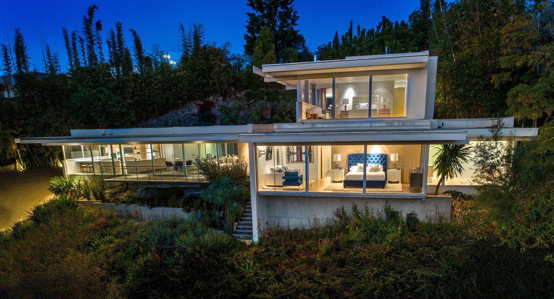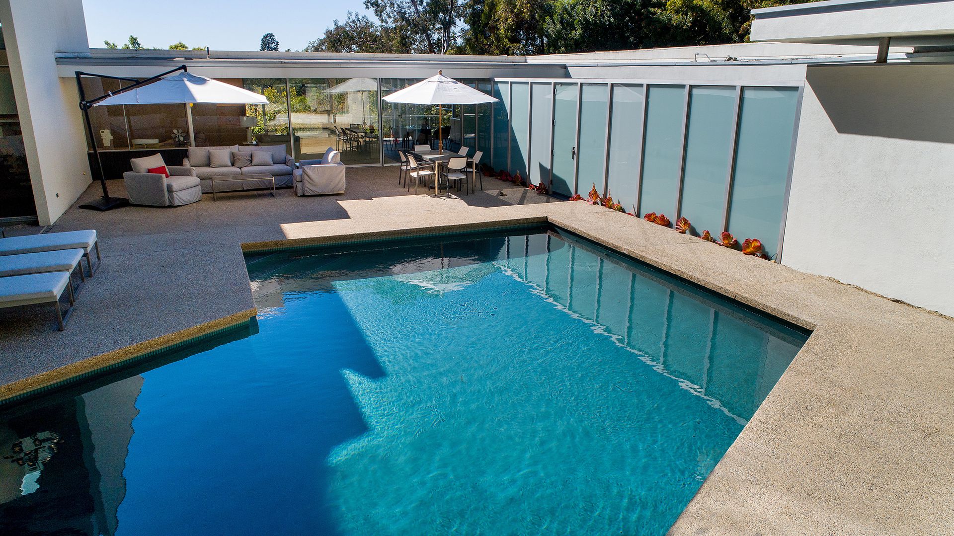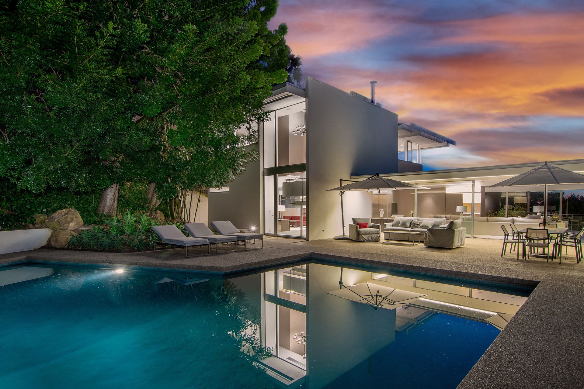Welcome to one of Richard Neutra's magnificent achievements. This home is sited up a long private gated driveway on over half an acre with westward views reaching all the way to the Pacific Ocean. The home has been updated and expanded keeping with the Neutra's original plans. There are four bedrooms five and one-half baths, a family room and a dining area off the living room. The kitchen and living room open to a large pool bathed with natural light from the impressive glass on both sides. There are two master bedrooms with head on views, a generous walk-in island closet, Terrazzo bath, sunken tub, steam shower and dual vanity that creates the artful space that Neutra envisioned. Maids quarters and ample private parking complete this masterpiece of modernism.