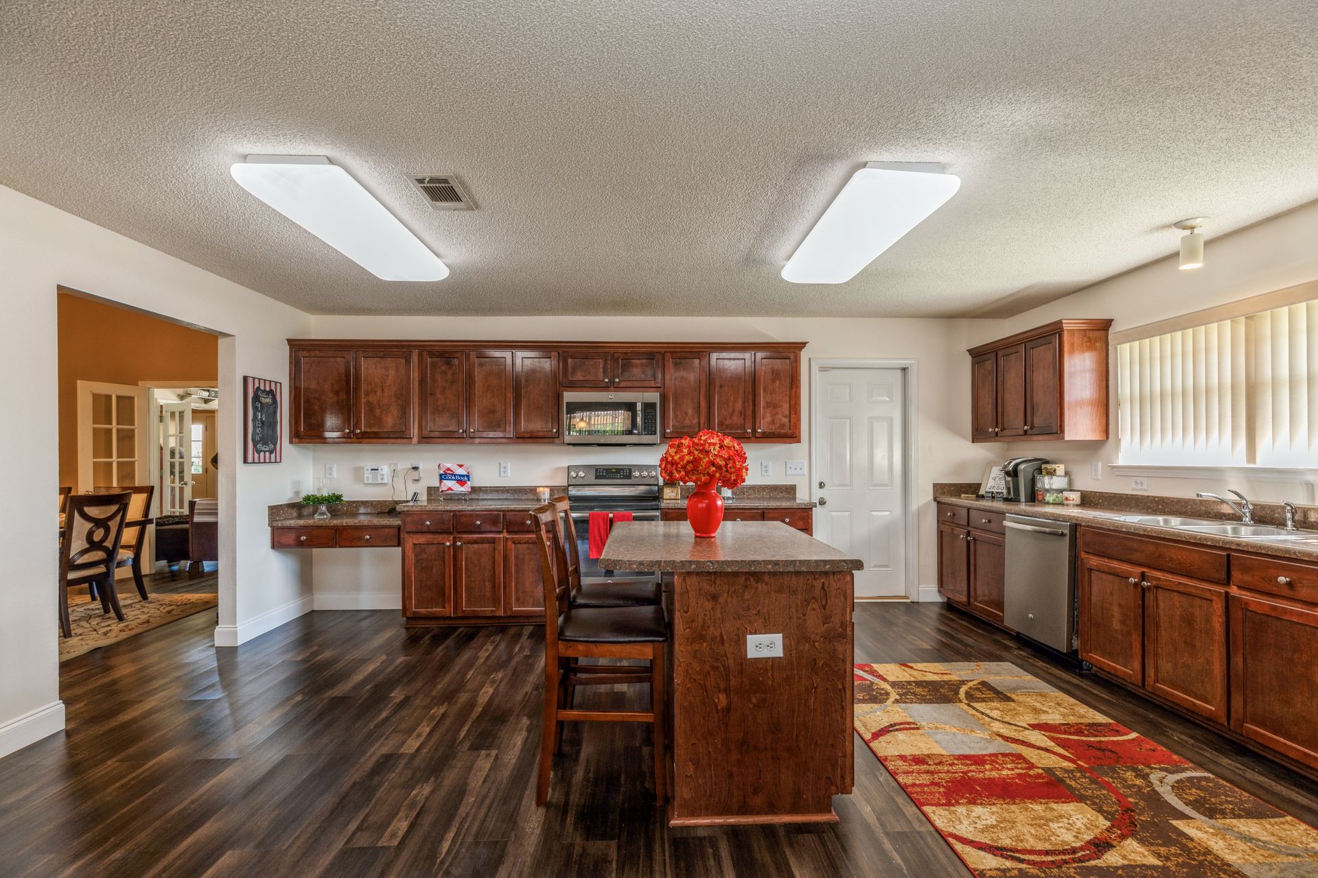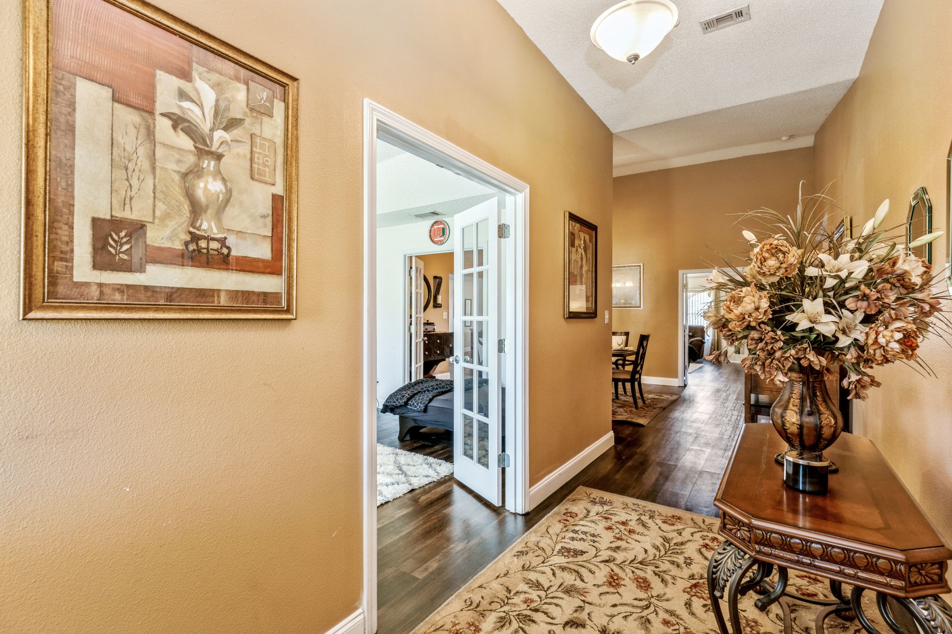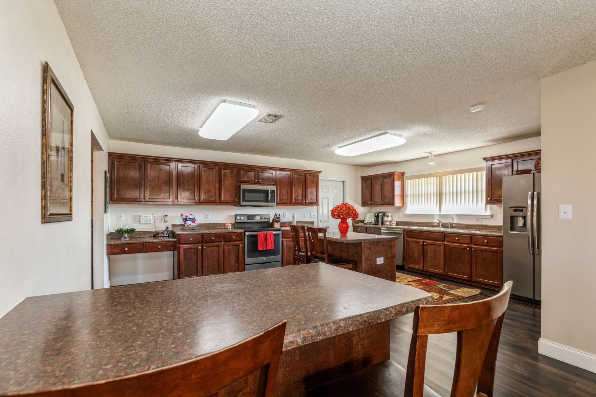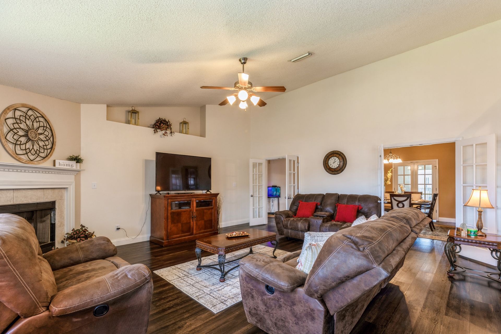This beautiful move-in ready corner lot home is sure to impress with vaulted ceilings and an open floor plan. You’ll notice, from the moment you walk into the entry foyer, that this home is simply wonderful! Featuring a split floor plan this stunner home provides the ultimate formal living room with raised hearth gas fireplace, a four bed, three bath, two-car garage with tons of additional storage. As you enter through the double doors and just off of the impressive foyer which flows perfect harmony into the bonus room or home office and or great room. The kitchen with all newer GE appliances. The primary suite bedroom comes complete with an en suite garden bath soaking tub, a double-sink vanity, a separate shower and a large walk-in closet. The other bedrooms are on the opposite side of the home. The large eat-in kitchen area has an eat-in breakfast nook and nearby formal dining perfect for entertaining and large gatherings, offering tons of cabinet space, a walk-in pantry and a laundry room! Just off of the kitchen two large glass sliding double patio doors provides great natural light and a view, opening out to a large back deck and private fencing and a covered front porch, which will surely provide a comfortable backdrop to enjoy the well-groomed landscape, experience the beautiful summer sunsets and peaceful oasis ideal for entertaining. This well-maintained home is also full of recent upgrades including new LVP upgraded flooring and LED lights installed. Don’t miss your chance to own a little piece of paradise, schedule a private viewing today!