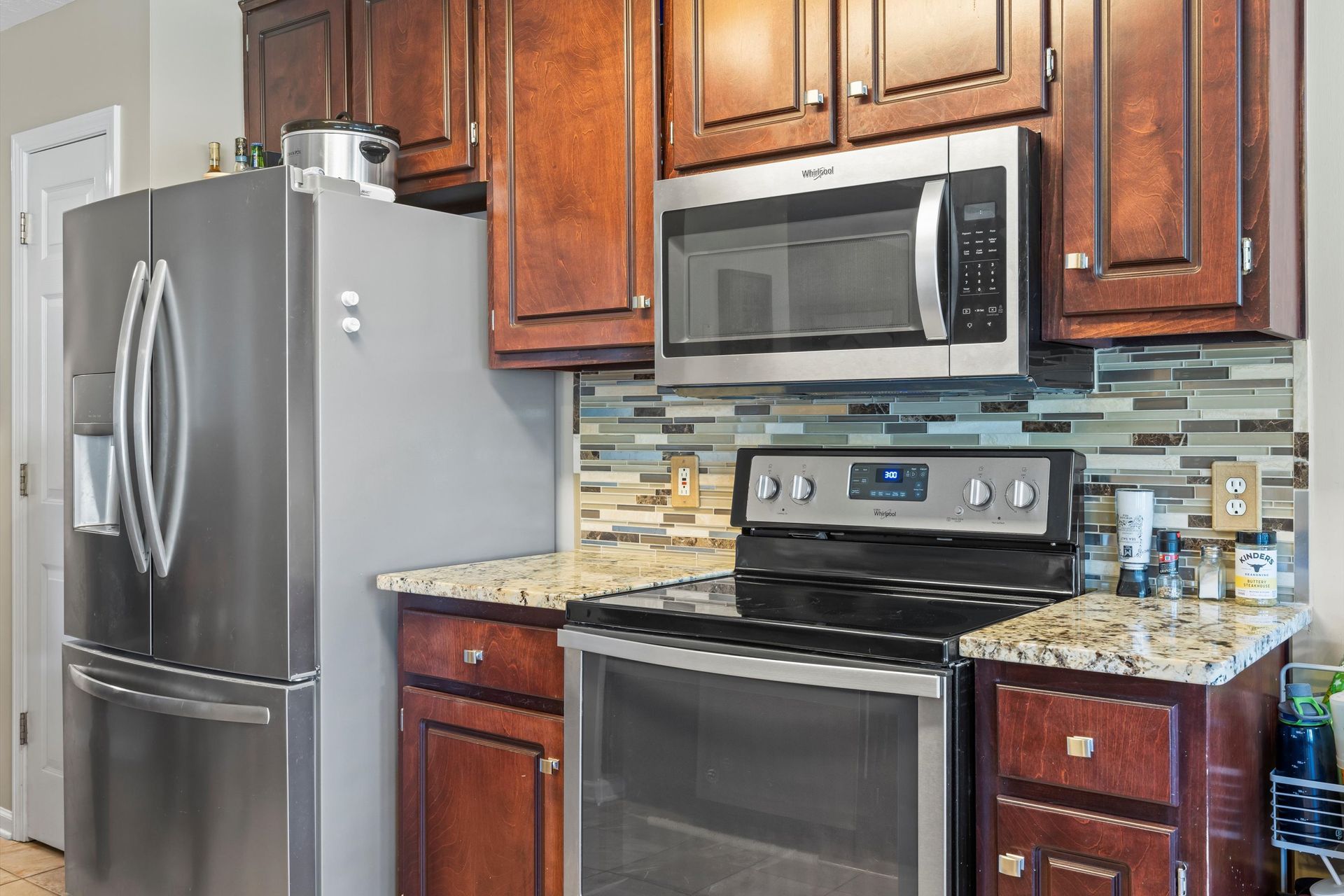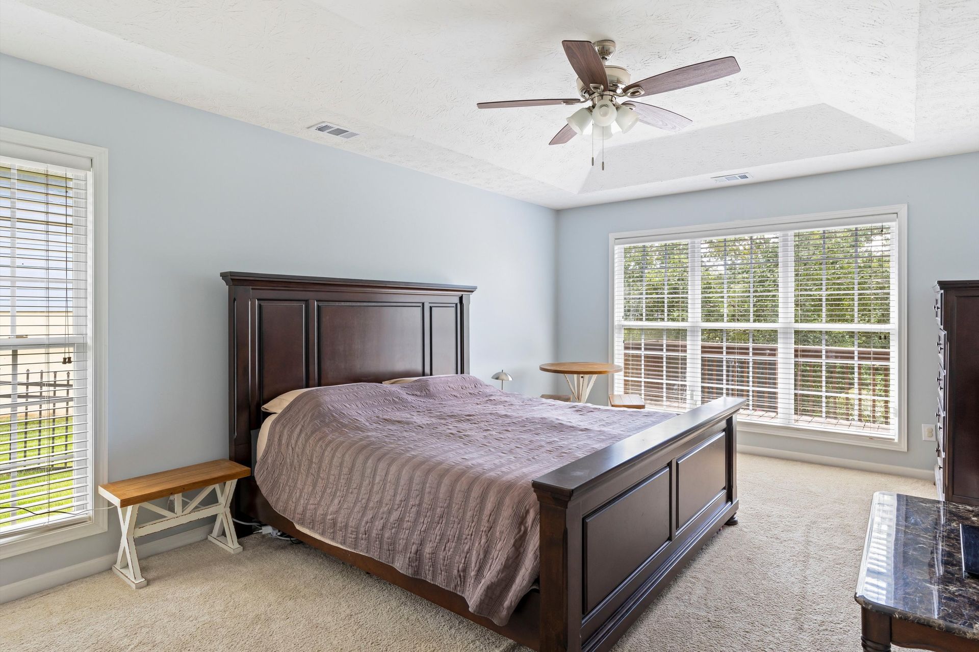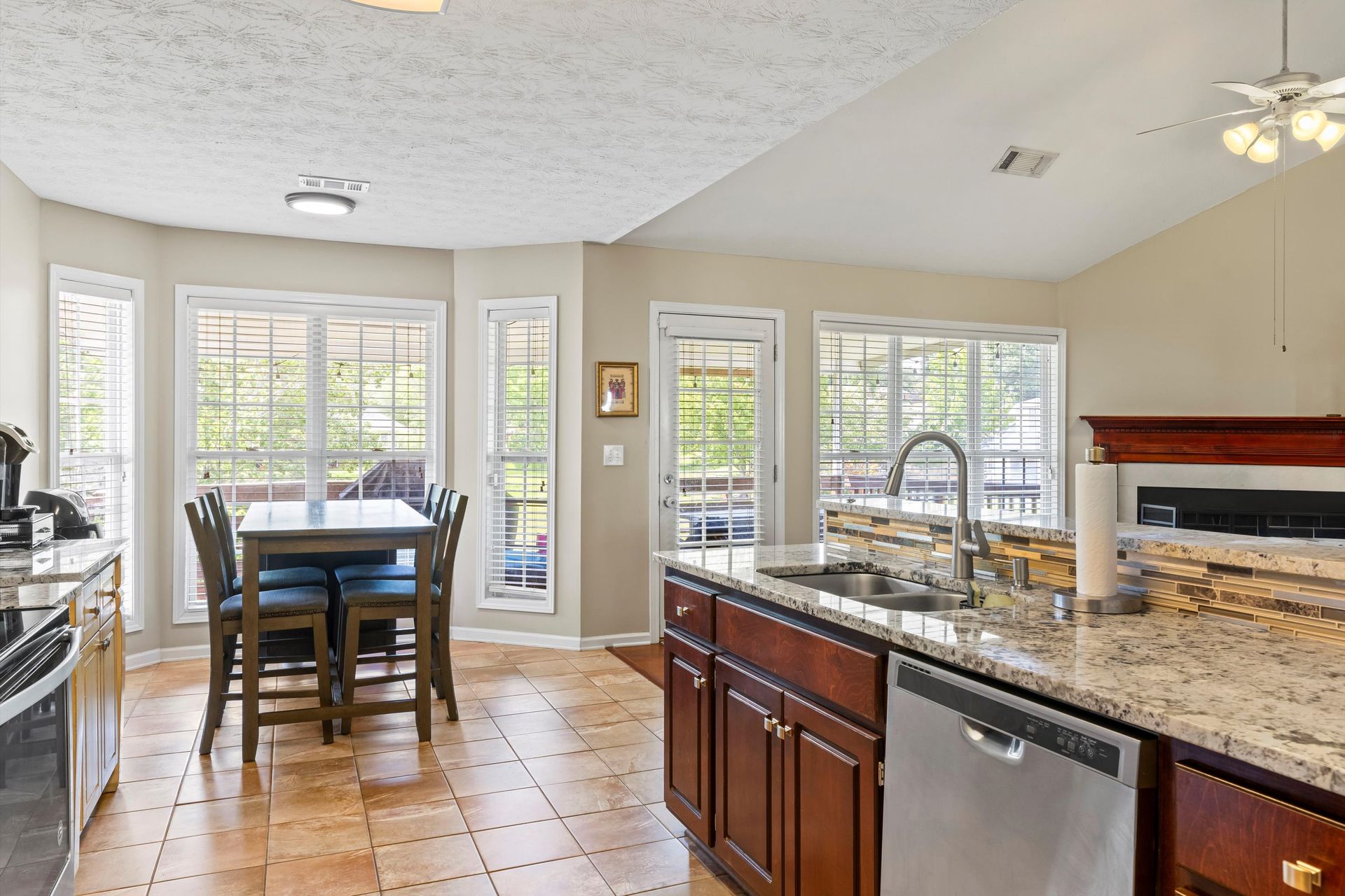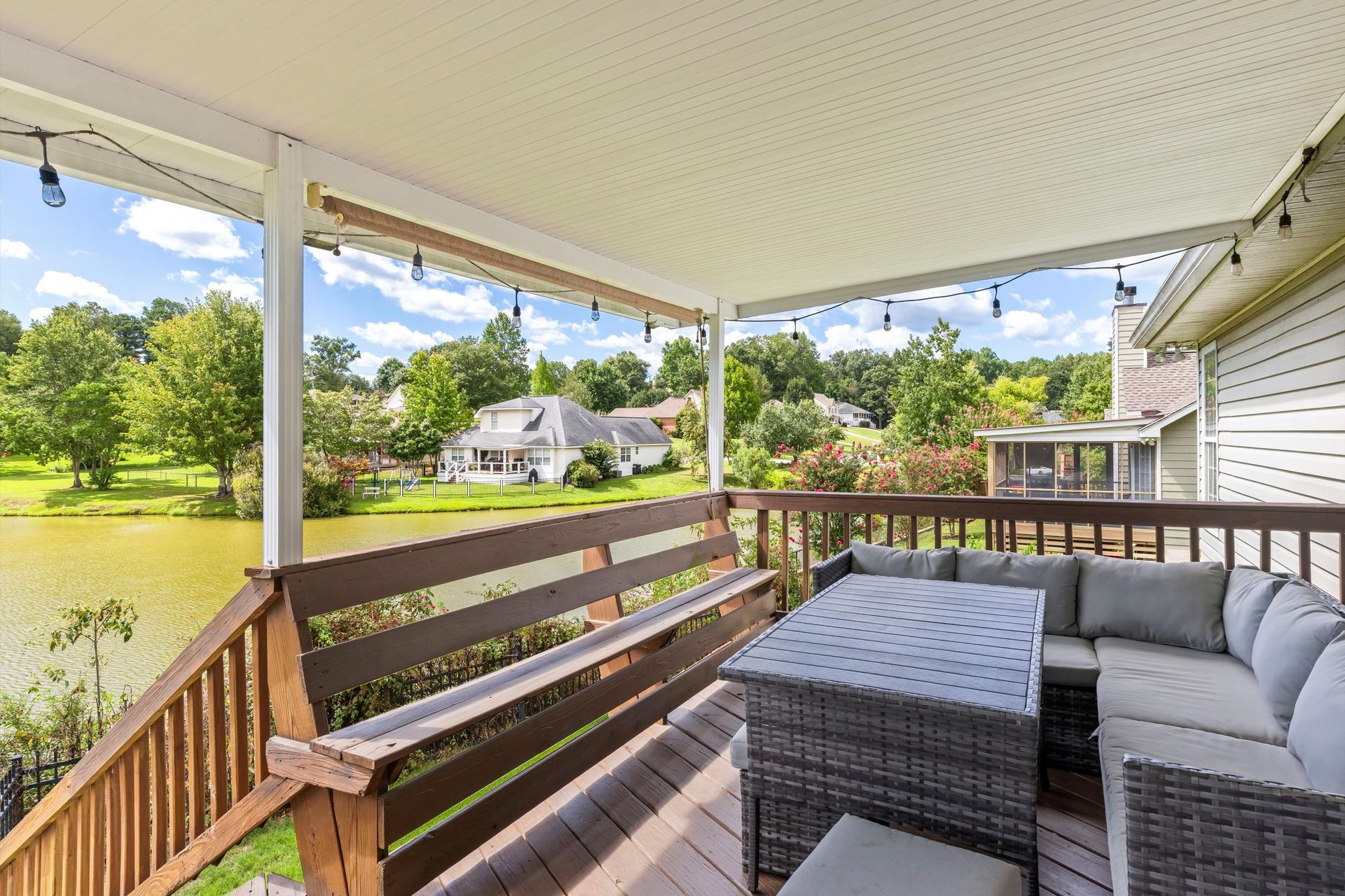 The kitchen is spacious and equipped with modern appliances, ample storage, and granite countertops. The living areas feature a neutral color palette, creating a serene and inviting ambiance. The home's exterior boasts lush landscaping and a spacious deck, providing a peaceful setting to enjoy the scenic backyard and views. The covered patio, perfect for entertaining, overlooks the neighborhood pond.