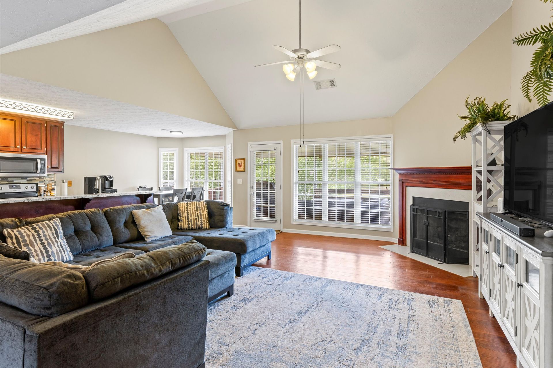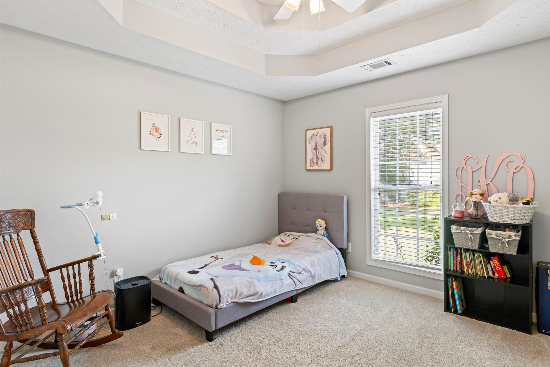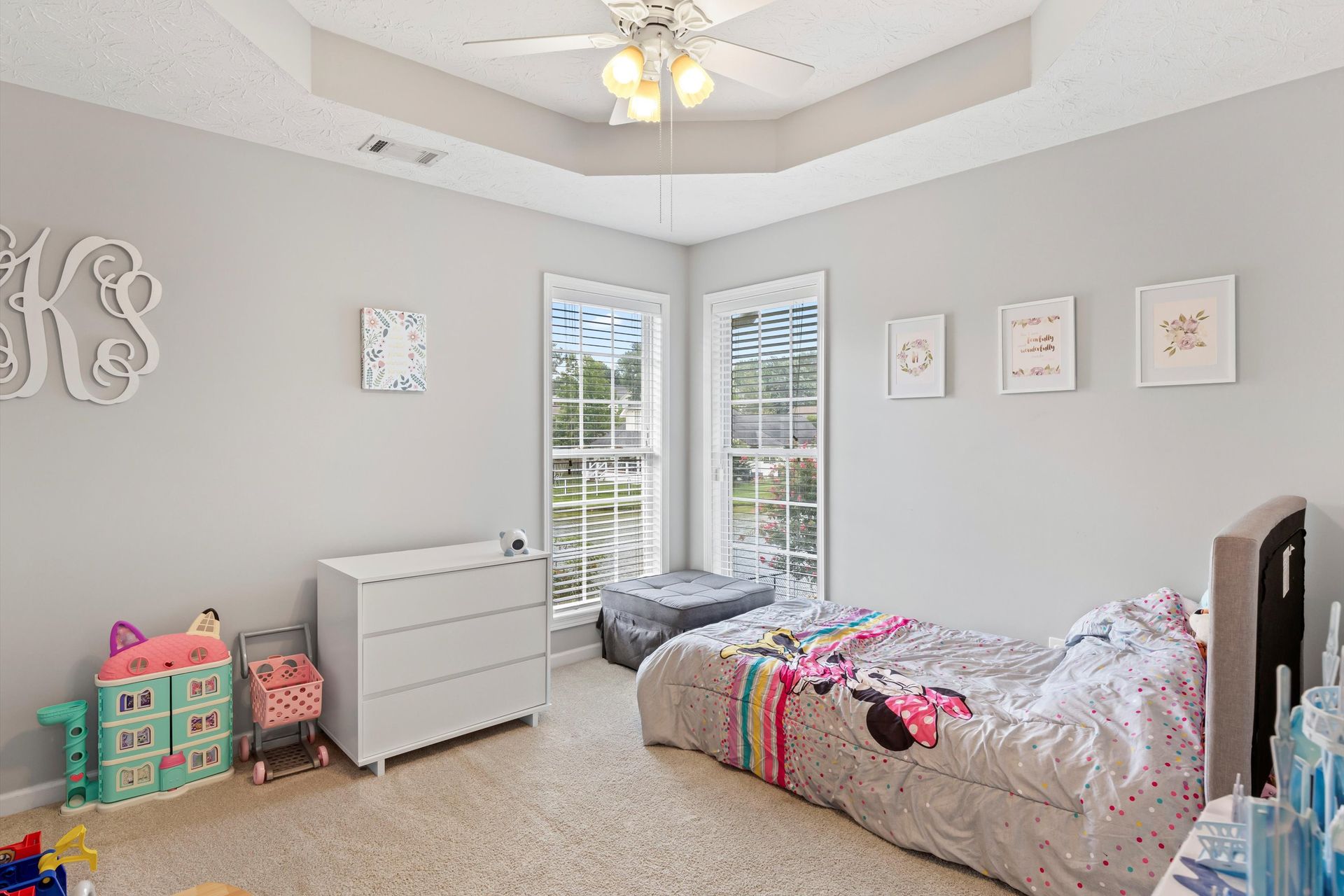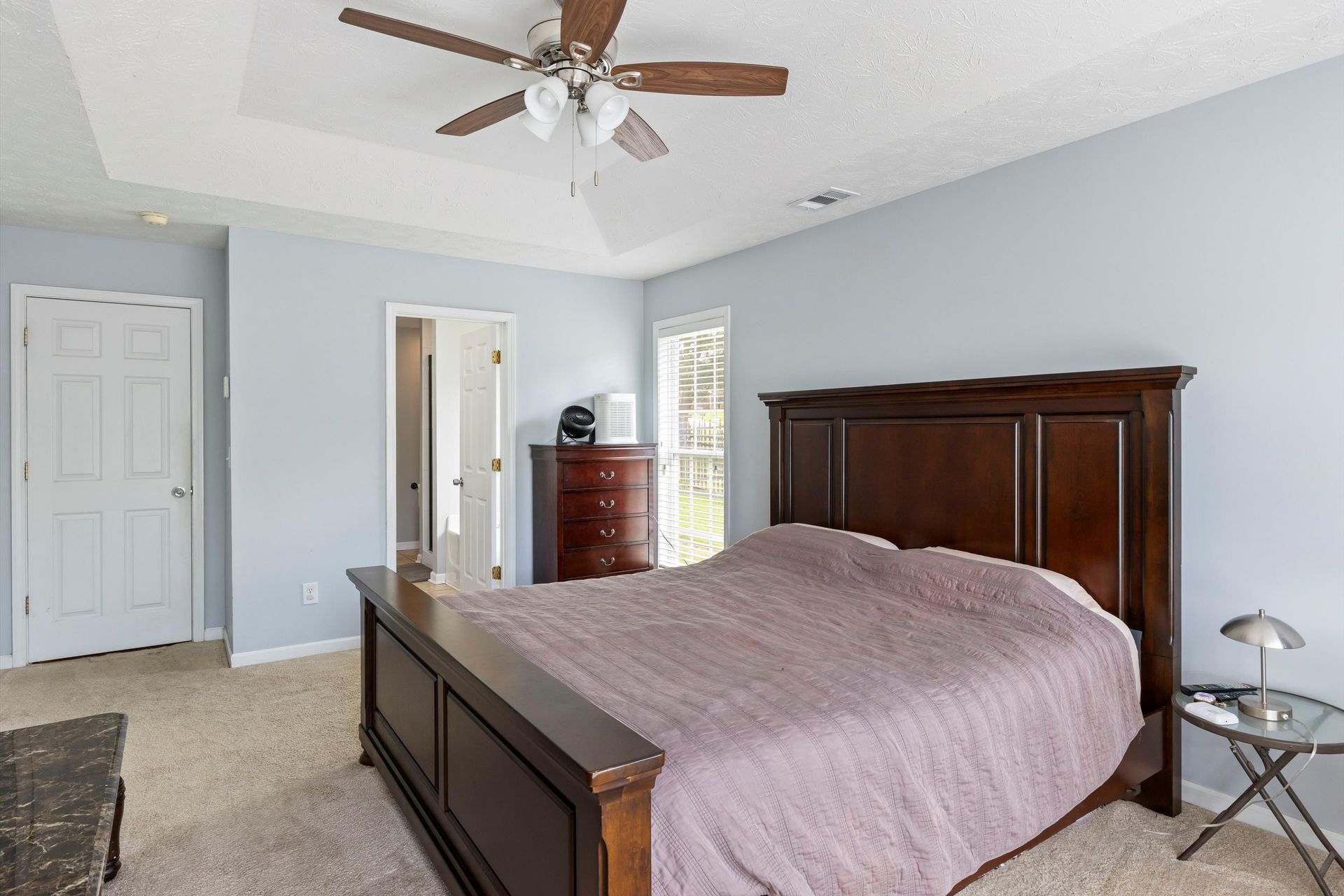 The kitchen is spacious and equipped with modern appliances, ample storage, and granite countertops. The living areas feature a neutral color palette, creating a serene and inviting ambiance. The home's exterior boasts lush landscaping and a spacious deck, providing a peaceful setting to enjoy the scenic backyard and views. The covered patio, perfect for entertaining, overlooks the neighborhood pond.