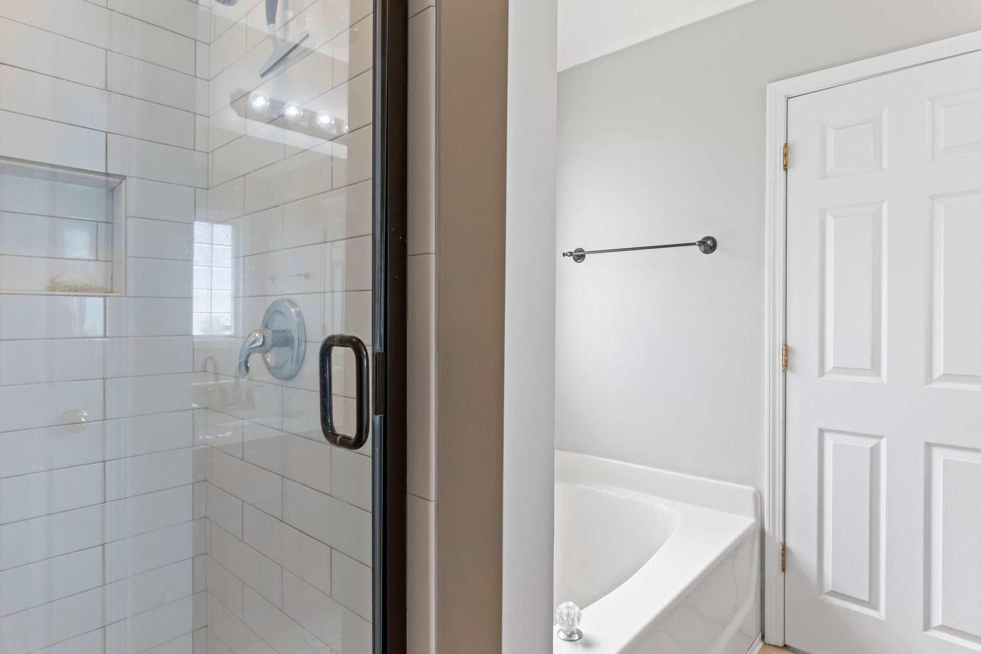 Hardwood flooring extends throughout the home, contributing to the cohesive and refined aesthetic. The spacious bathroom includes a soaking tub, complementing the elegant vanity. Residents will appreciate the convenience of the double car garage and the nearby city schools.