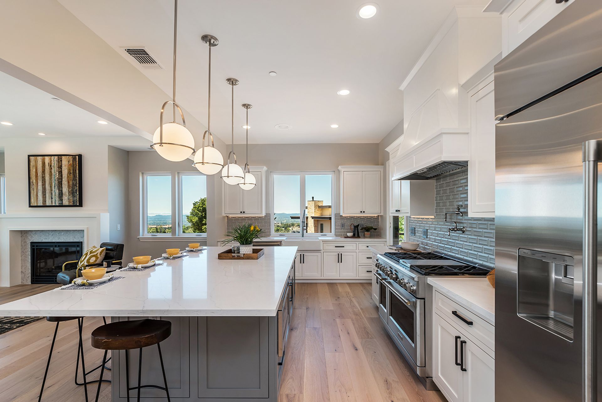 This newly constructed custom home of more than 3,300 square feet in Fountaingrove lives like a single level with expansive westerly views and backs to open space. The modified single level home has all the living on one level including 4 bedrooms, 3.5 baths and a great room with stacking glass wall that opens to a terrace to take full advantage of the stunning views. The exceptional designer appeal includes a temperature-controlled wine display showcase, Mediterranean hardwood flooring, and high-end appliances and fixtures. A well-appointed kitchen enjoys a large center island and flows freely into the great room with direct access to a grilling porch and the yard with a patio and lawn. A separate bonus/game room sits adjacent to the en-suite guest bedroom and 2 additional bedrooms. The master suite enjoys views and boasts a spa like bath with an oversized shower and a soaking tub. Experience seamless indoor-outdoor living which is the essence of the Wine Country lifestyle in this expertly designed residence.