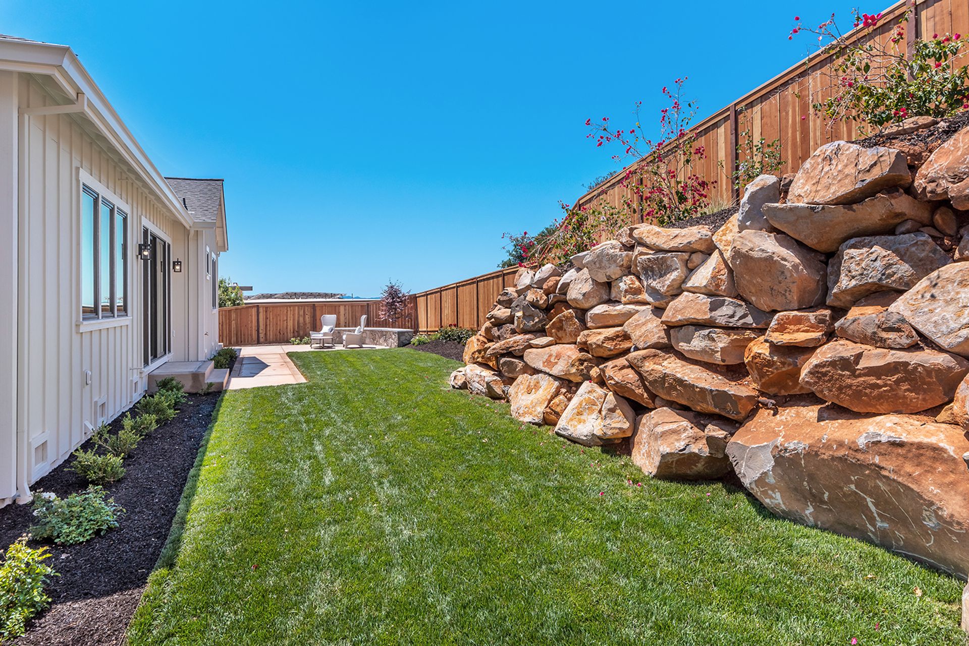 Landscaped front and rear yards, entertaining patio and boulders accent the gardens