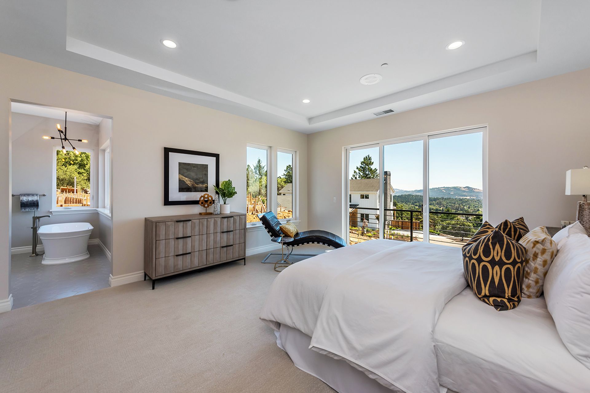 Master bedroom includes dual walk in closets with built-in organizers and slider to enjoy the views