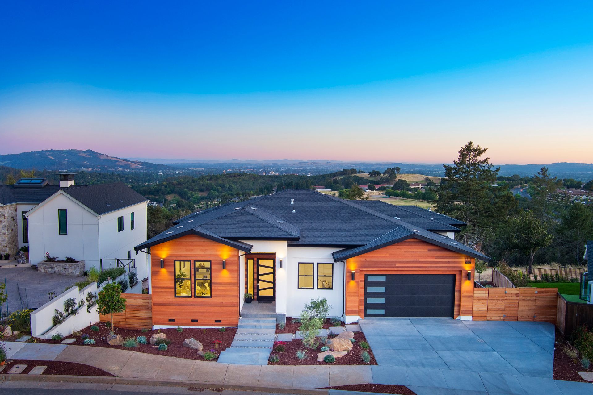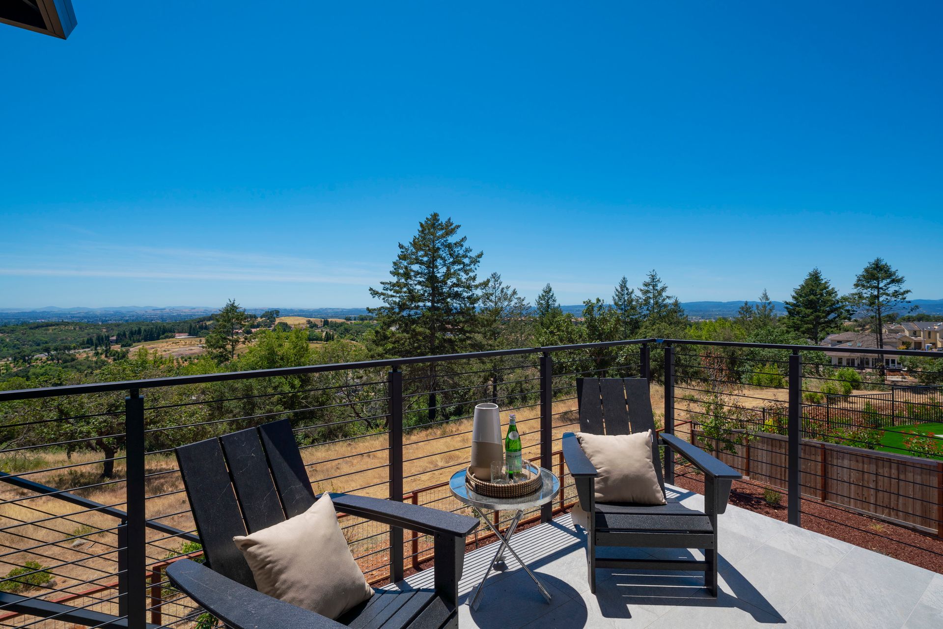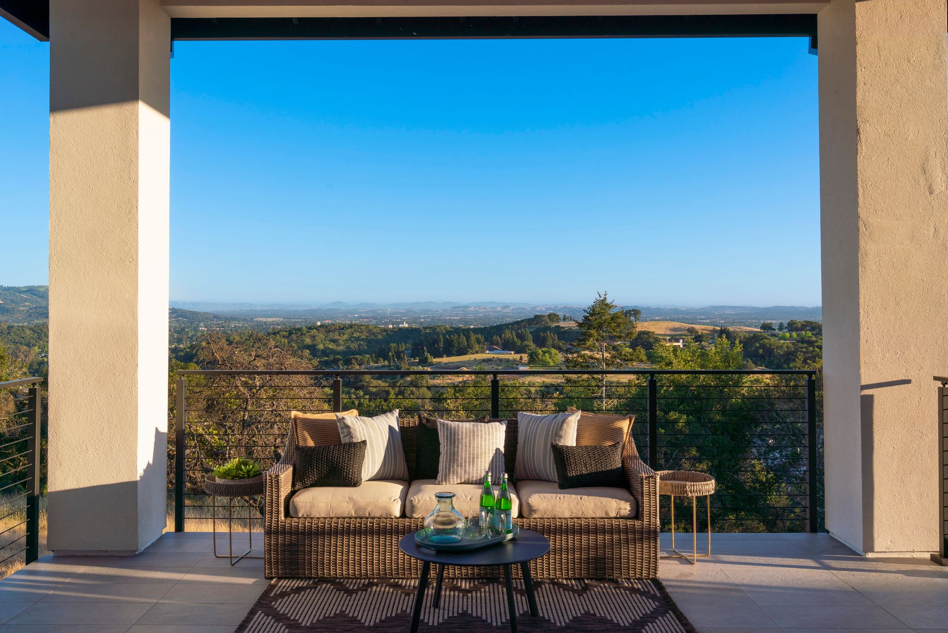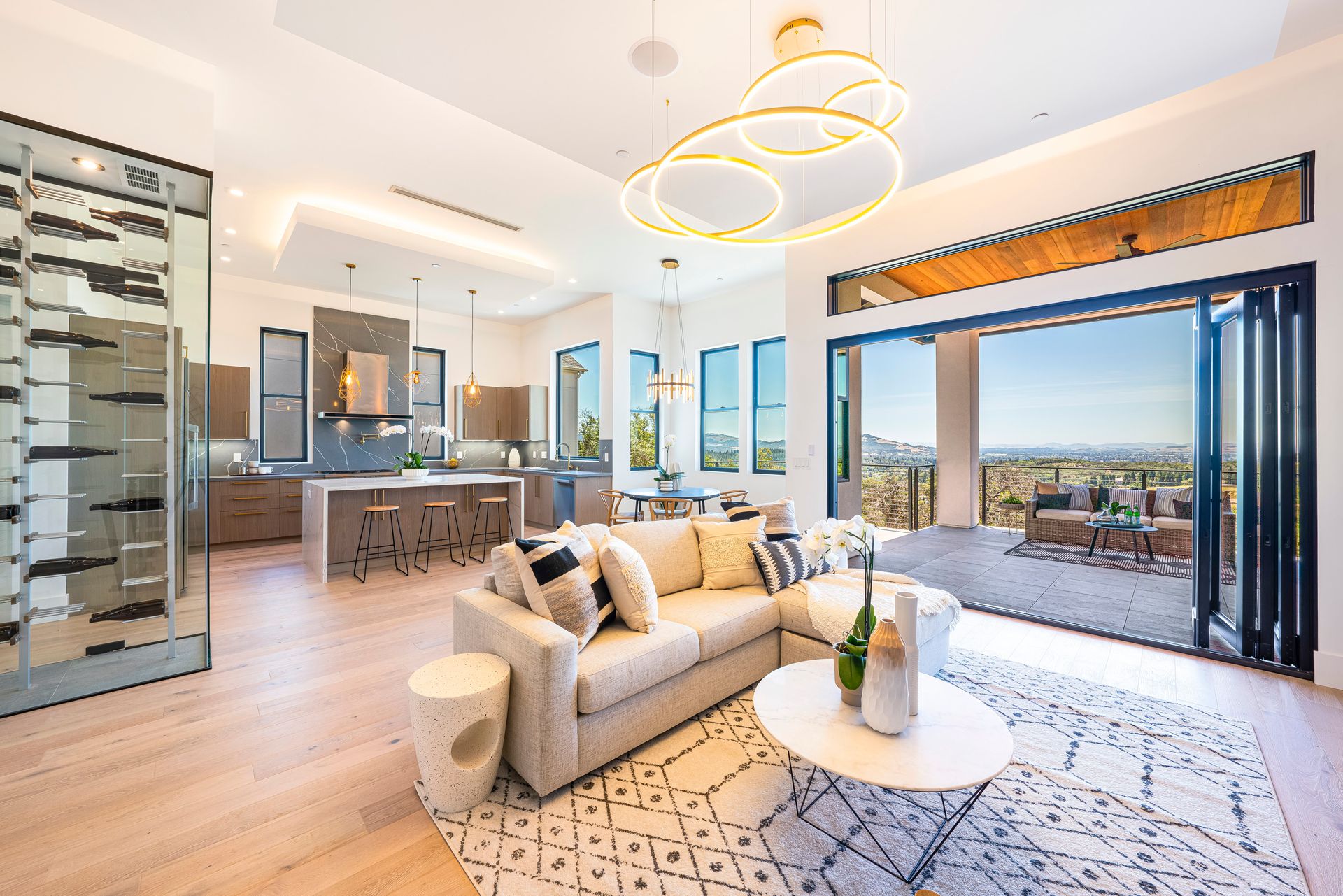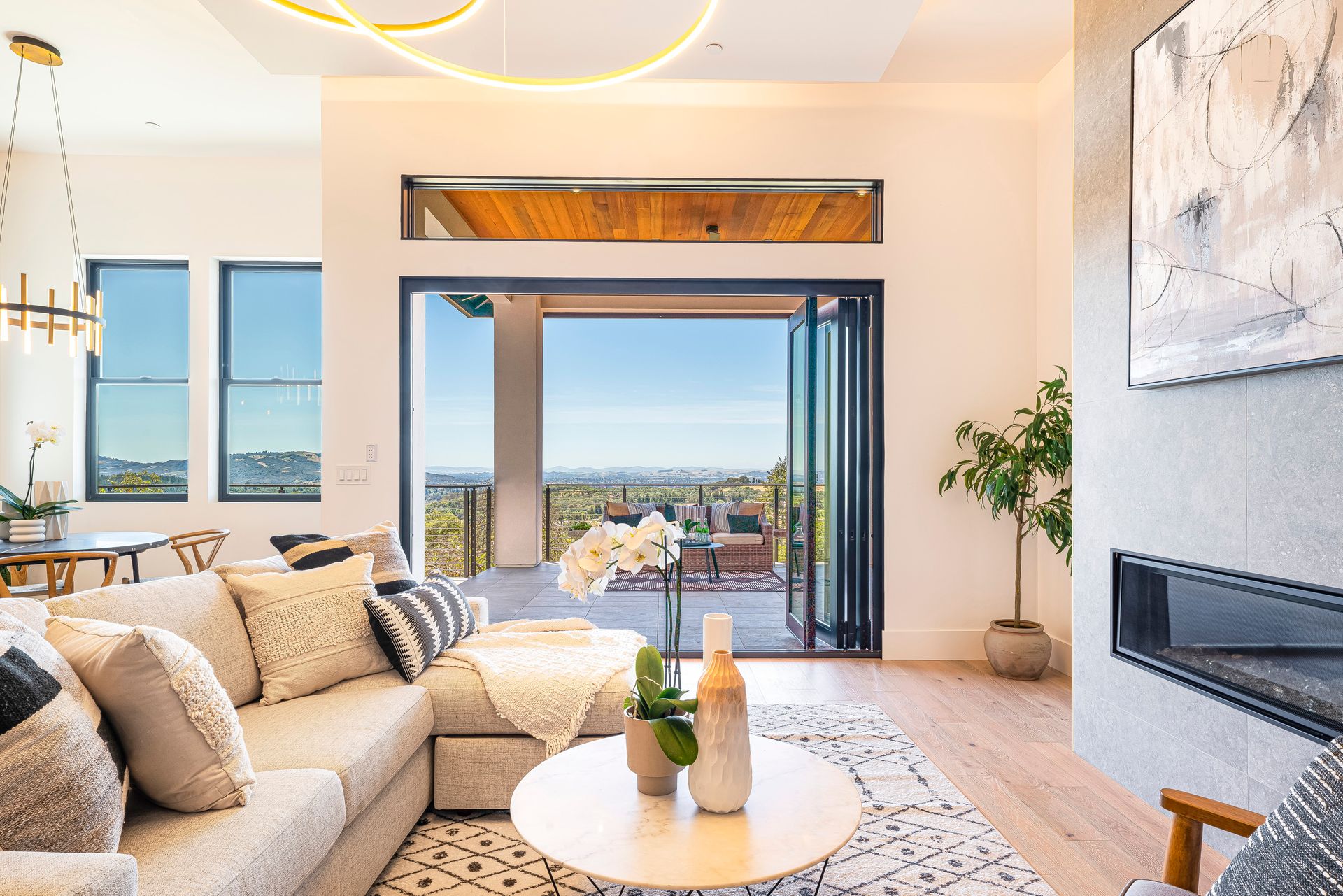 This newly constructed home of more than 3450 square feet, opens to sweeping views over Fountaingrove and city lights. The exceptional designer appeal includes, a temperature-controlled wine display showcase, formal living/dining room with gas fireplace and drop ceiling with chic lighting fixtures. The great room has folding glass doors that open to the covered view terrace featuring an outdoor fireplace for intimate gatherings. An open concept kitchen has all the amenities any chef would desire, including a quartz center island, Bertazzoni Italia 6 burner gas range with griddle and double ovens, microwave, built-in refrigerator, and a walk-in pantry. A luxurious primary suite on the main level includes box beam ceiling and folding doors to a view terrace. There is an additional bedroom/office on the main level and full bath. The lower level features a game/family room and two additional bedrooms (both en-suite), all with direct access to the covered patio for an evening of entertaining at the outdoor grill. Let the entertaining begin! The distinctive custom home is in the heart of wine country with close proximity to wineries, fine dining and the Sonoma County Airport.