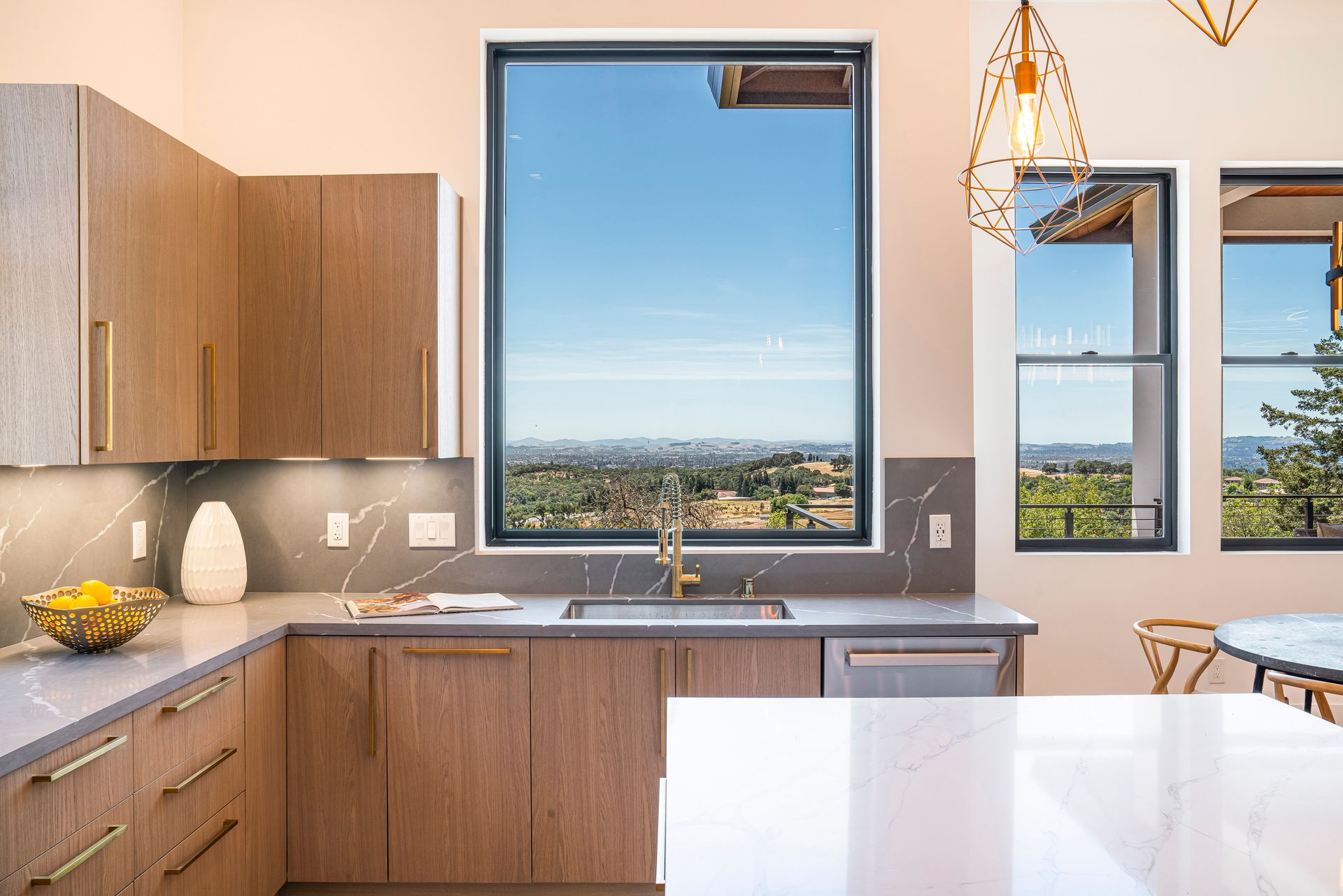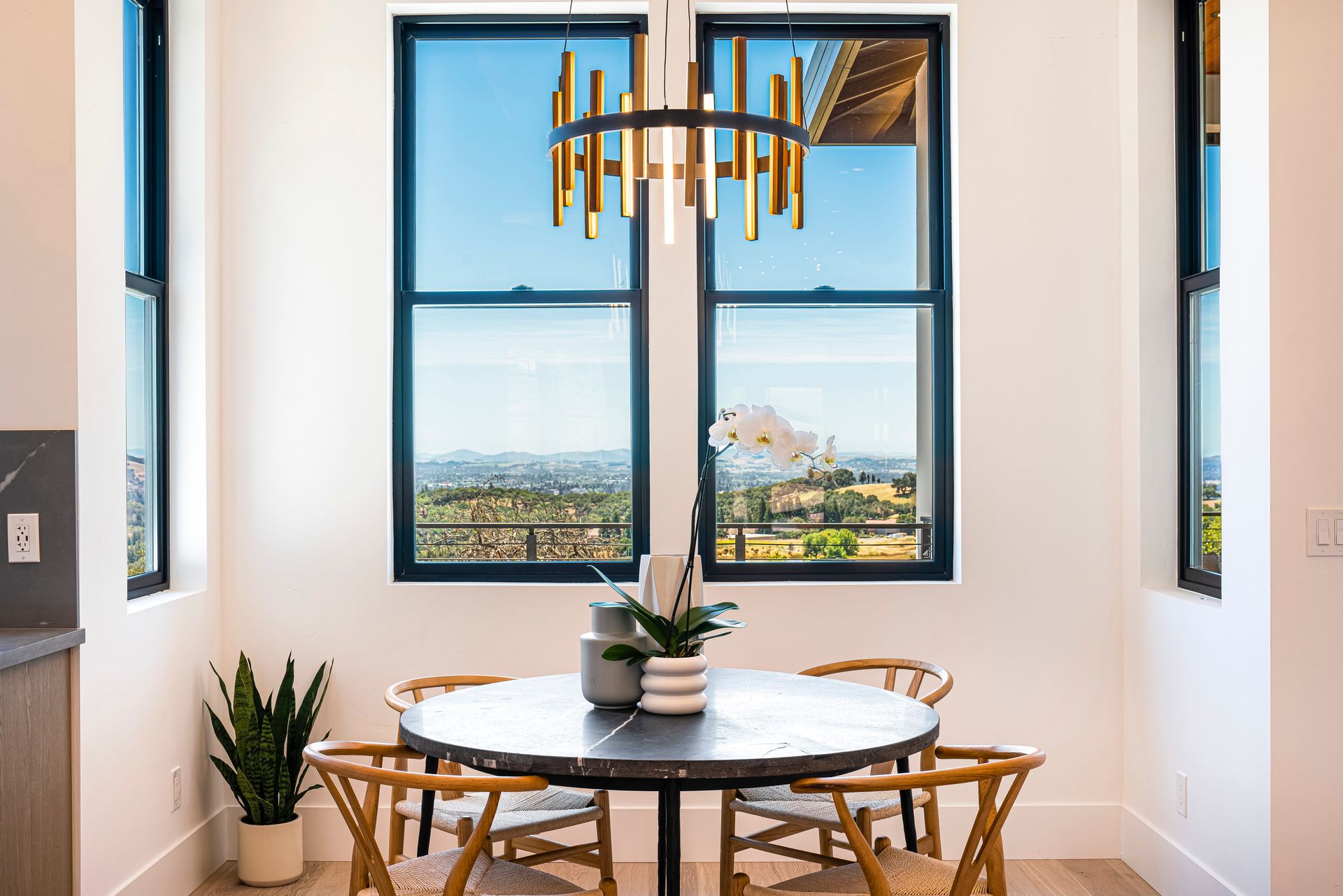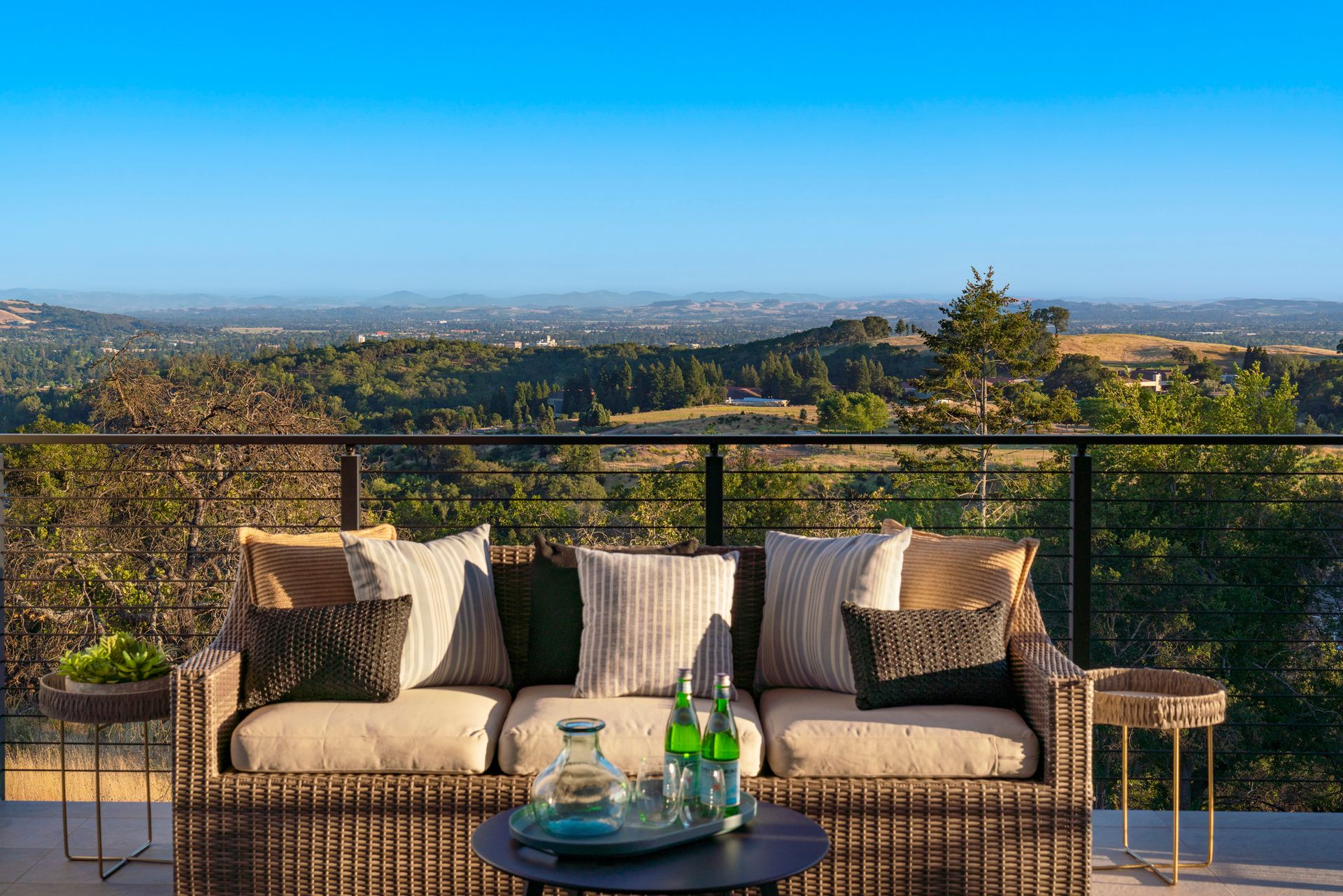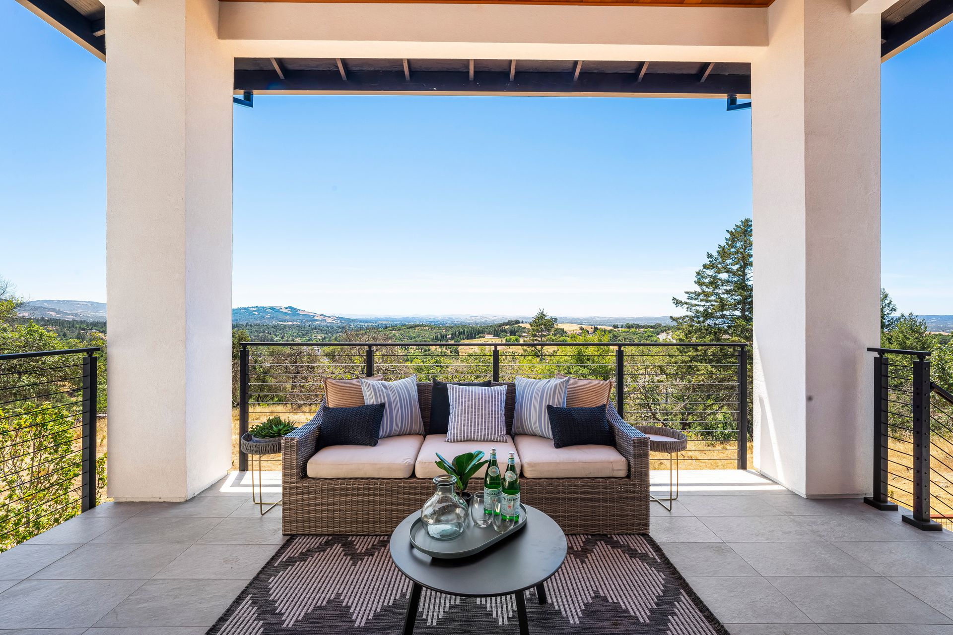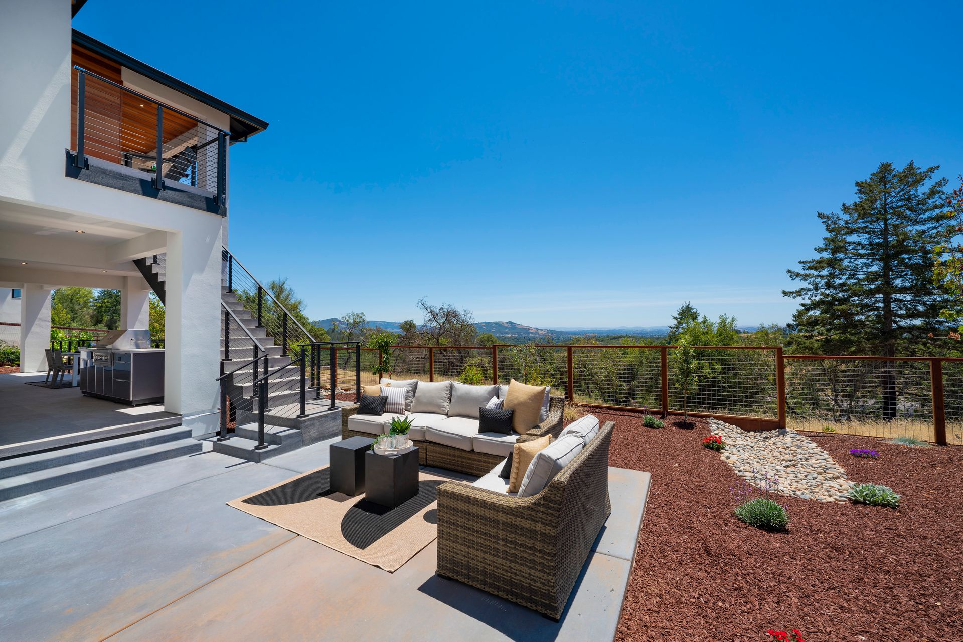 This newly constructed home of more than 3450 square feet, opens to sweeping views over Fountaingrove and city lights. The exceptional designer appeal includes, a temperature-controlled wine display showcase, formal living/dining room with gas fireplace and drop ceiling with chic lighting fixtures. The great room has folding glass doors that open to the covered view terrace featuring an outdoor fireplace for intimate gatherings. An open concept kitchen has all the amenities any chef would desire, including a quartz center island, Bertazzoni Italia 6 burner gas range with griddle and double ovens, microwave, built-in refrigerator, and a walk-in pantry. A luxurious primary suite on the main level includes box beam ceiling and folding doors to a view terrace. There is an additional bedroom/office on the main level and full bath. The lower level features a game/family room and two additional bedrooms (both en-suite), all with direct access to the covered patio for an evening of entertaining at the outdoor grill. Let the entertaining begin! The distinctive custom home is in the heart of wine country with close proximity to wineries, fine dining and the Sonoma County Airport.