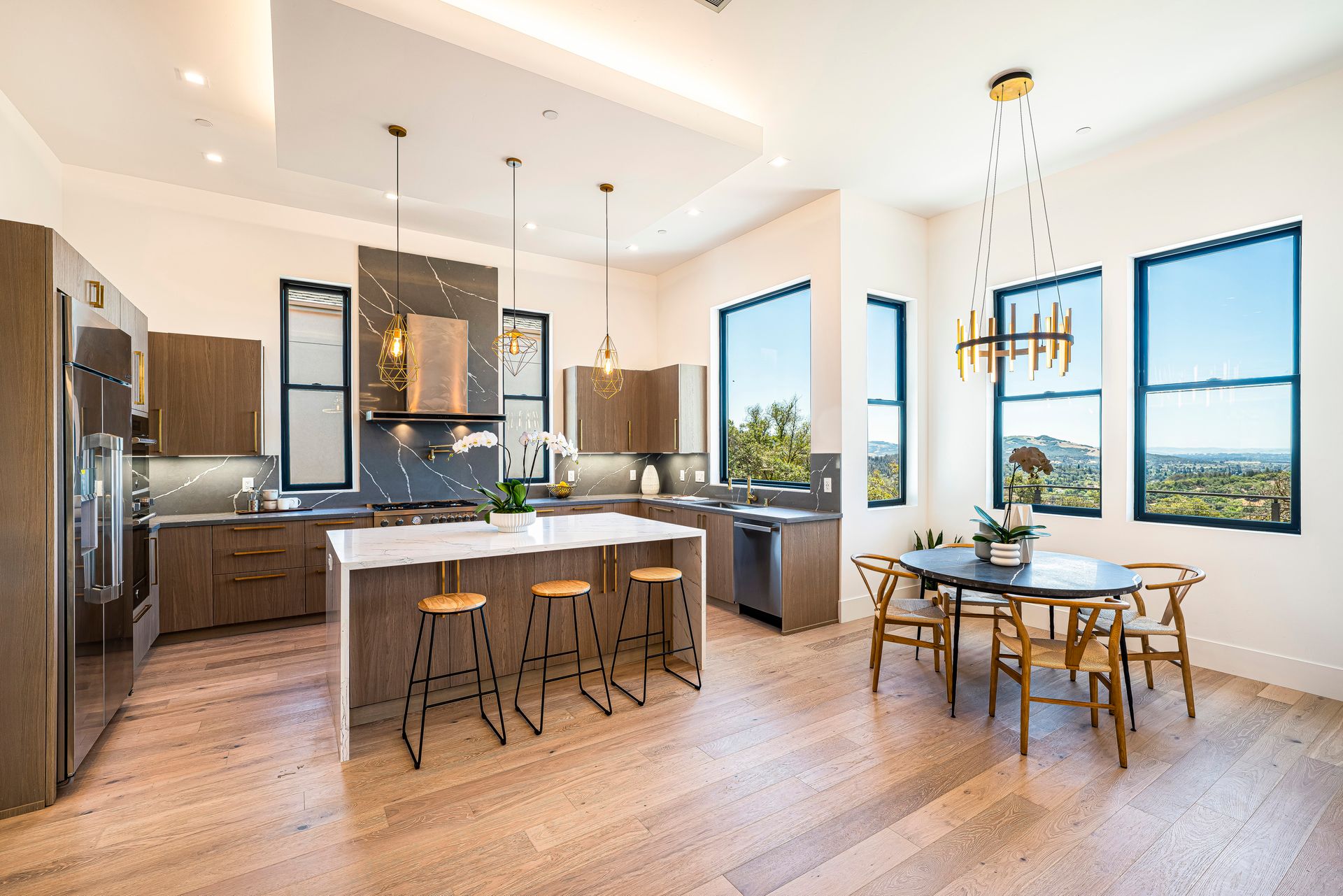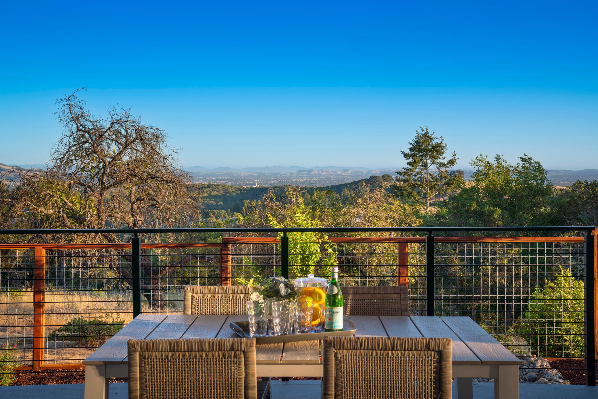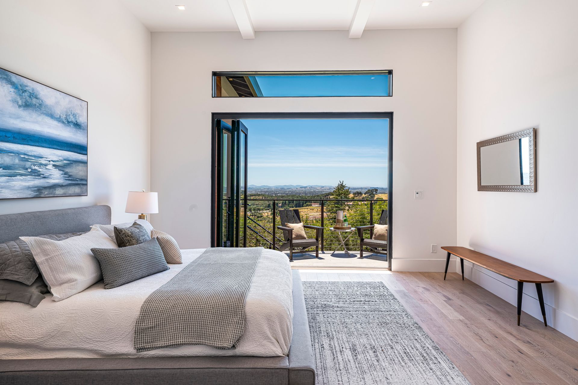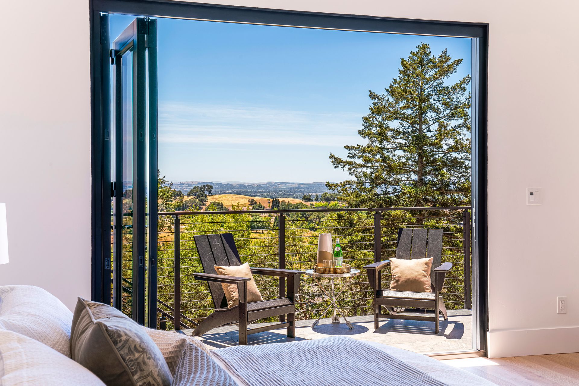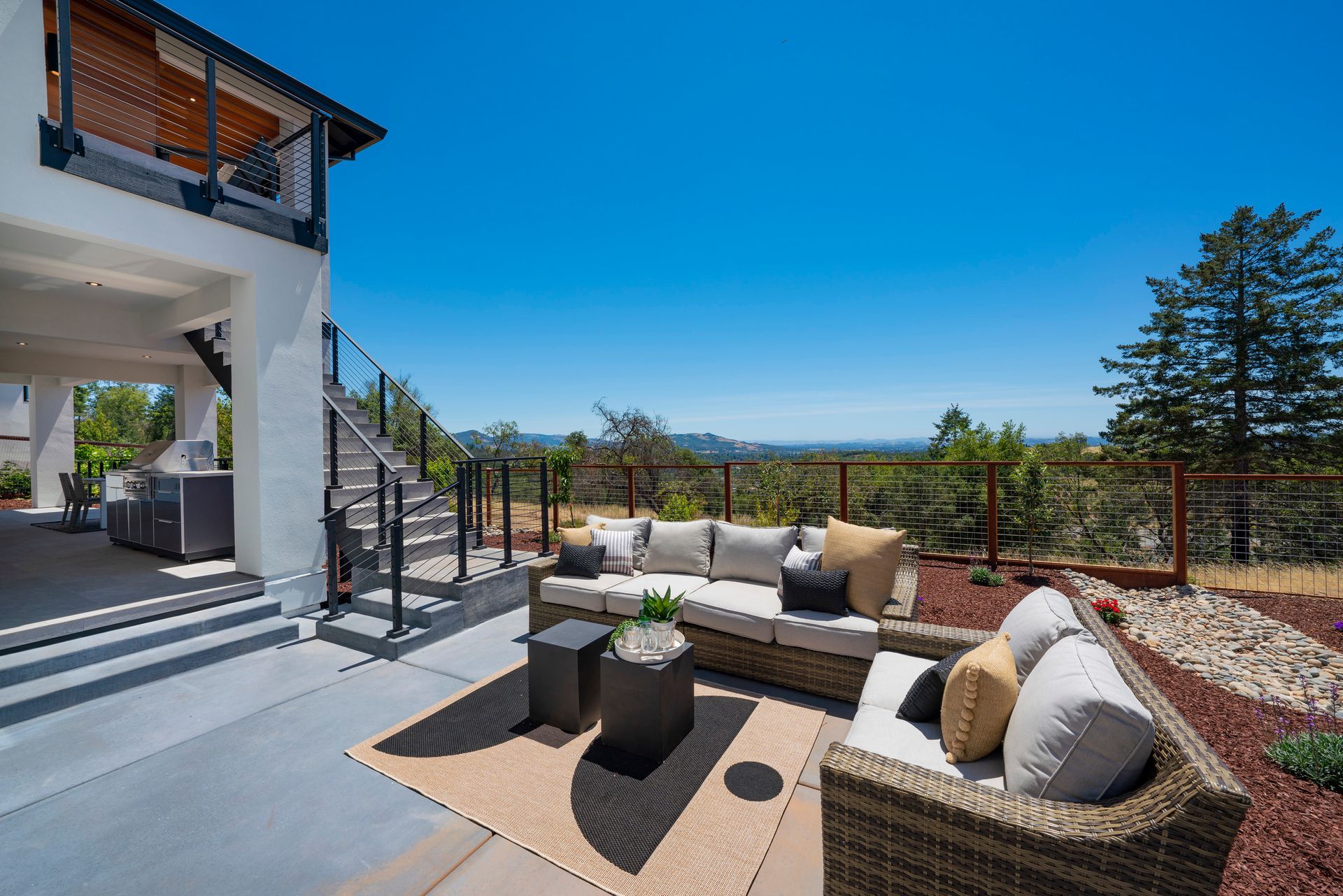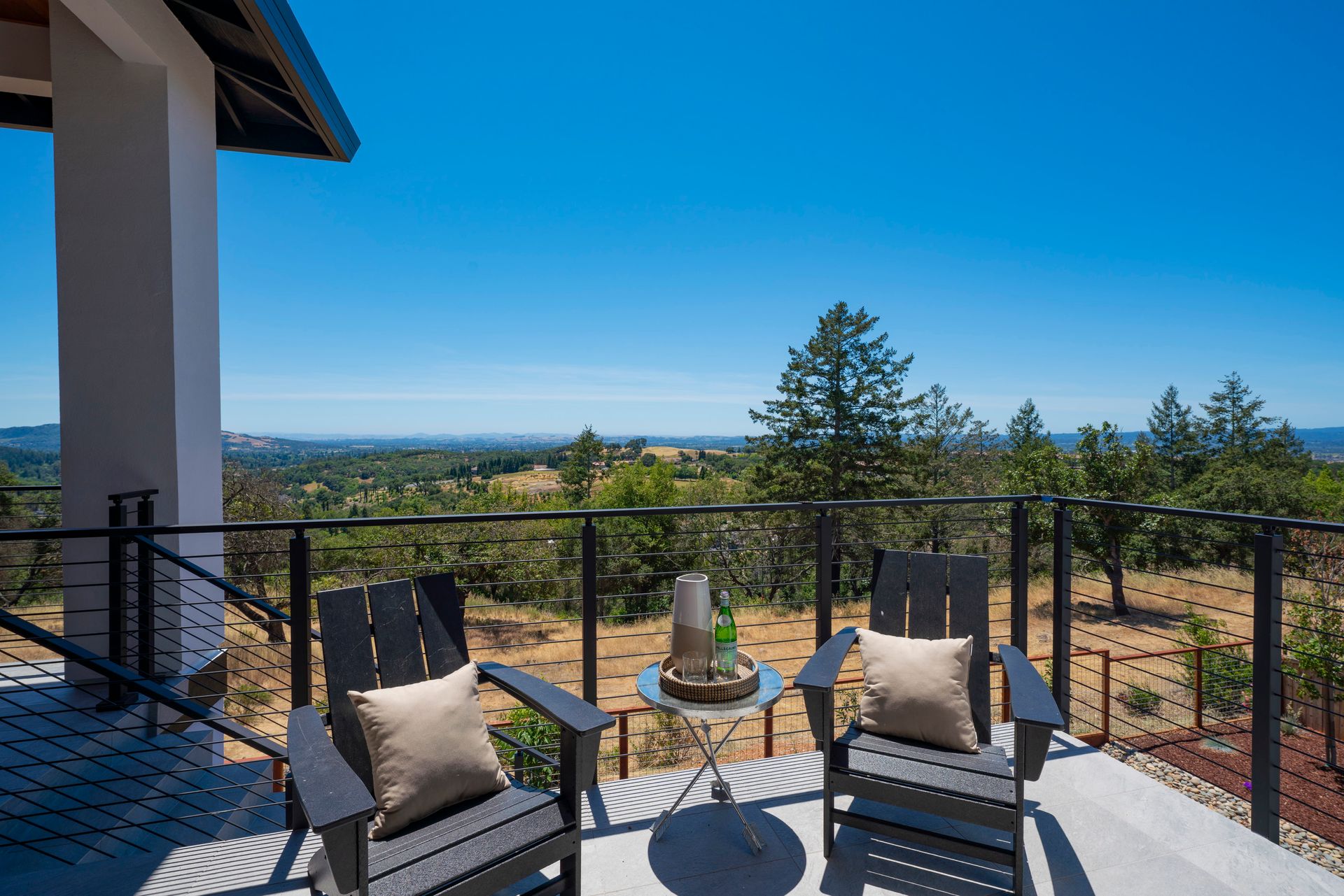 This newly constructed home of more than 3450 square feet, opens to sweeping views over Fountaingrove and city lights. The exceptional designer appeal includes, a temperature-controlled wine display showcase, formal living/dining room with gas fireplace and drop ceiling with chic lighting fixtures. The great room has folding glass doors that open to the covered view terrace featuring an outdoor fireplace for intimate gatherings. An open concept kitchen has all the amenities any chef would desire, including a quartz center island, Bertazzoni Italia 6 burner gas range with griddle and double ovens, microwave, built-in refrigerator, and a walk-in pantry. A luxurious primary suite on the main level includes box beam ceiling and folding doors to a view terrace. There is an additional bedroom/office on the main level and full bath. The lower level features a game/family room and two additional bedrooms (both en-suite), all with direct access to the covered patio for an evening of entertaining at the outdoor grill. Let the entertaining begin! The distinctive custom home is in the heart of wine country with close proximity to wineries, fine dining and the Sonoma County Airport.
