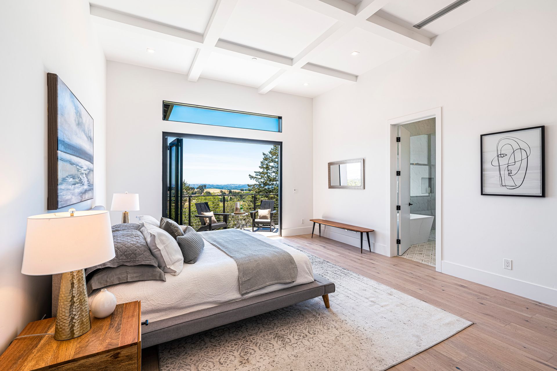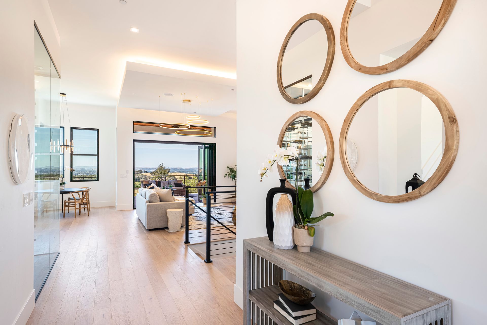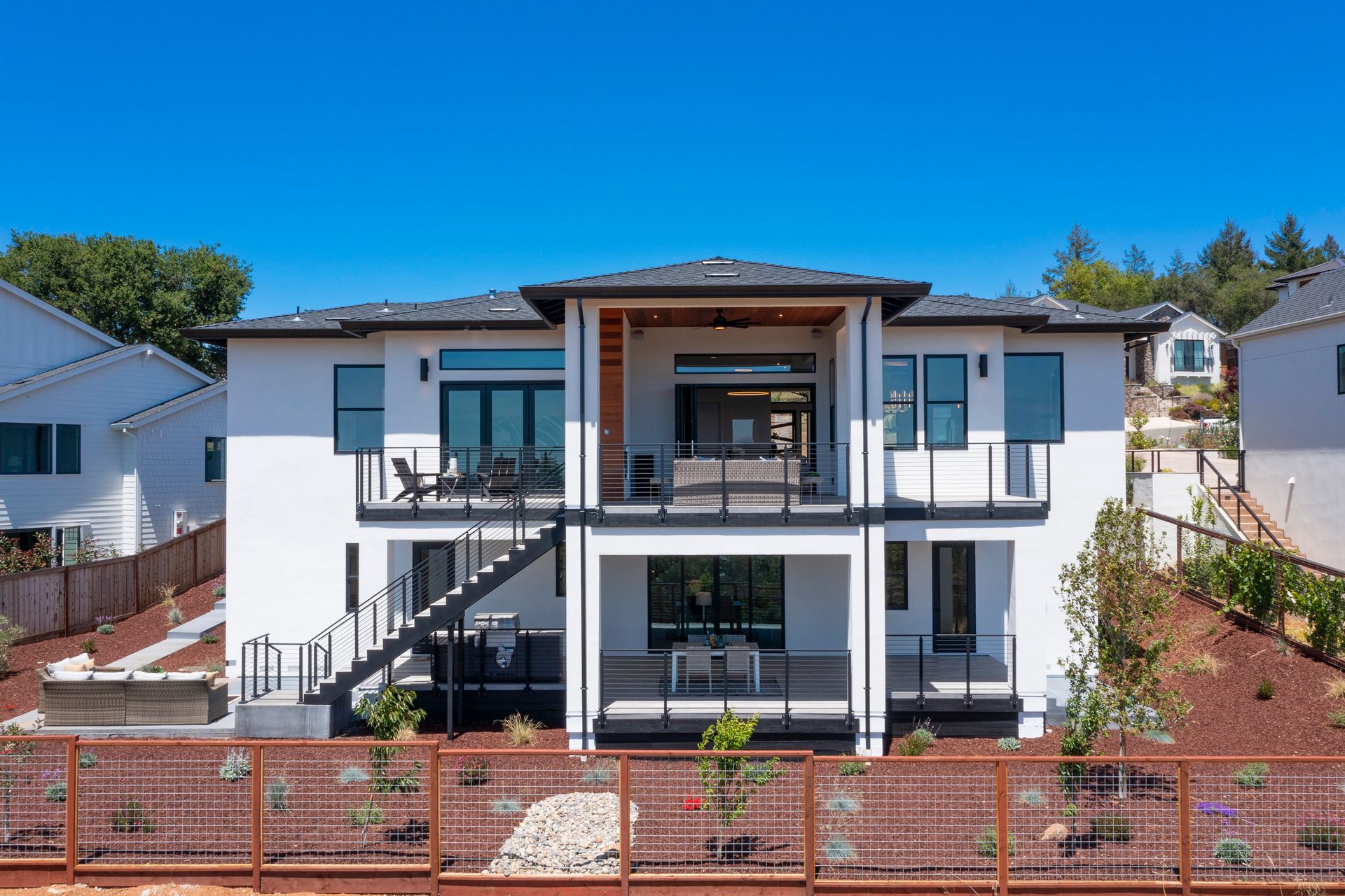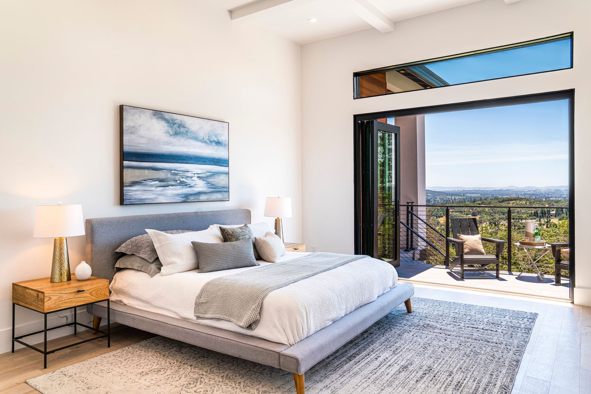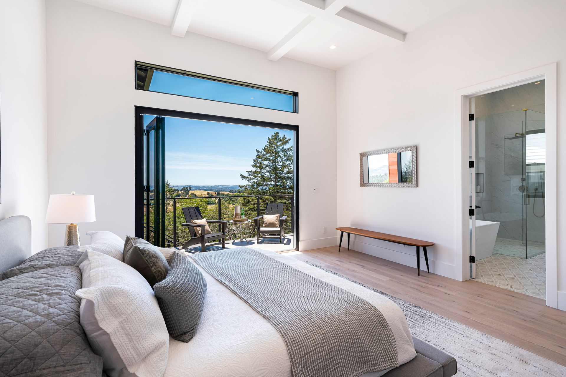 This newly constructed home of more than 3450 square feet, opens to sweeping views over Fountaingrove and city lights. The exceptional designer appeal includes, a temperature-controlled wine display showcase, formal living/dining room with gas fireplace and drop ceiling with chic lighting fixtures. The great room has folding glass doors that open to the covered view terrace featuring an outdoor fireplace for intimate gatherings. An open concept kitchen has all the amenities any chef would desire, including a quartz center island, Bertazzoni Italia 6 burner gas range with griddle and double ovens, microwave, built-in refrigerator, and a walk-in pantry. A luxurious primary suite on the main level includes box beam ceiling and folding doors to a view terrace. There is an additional bedroom/office on the main level and full bath. The lower level features a game/family room and two additional bedrooms (both en-suite), all with direct access to the covered patio for an evening of entertaining at the outdoor grill. Let the entertaining begin! The distinctive custom home is in the heart of wine country with close proximity to wineries, fine dining and the Sonoma County Airport.