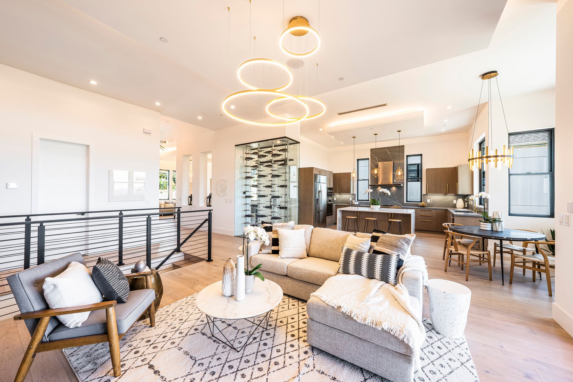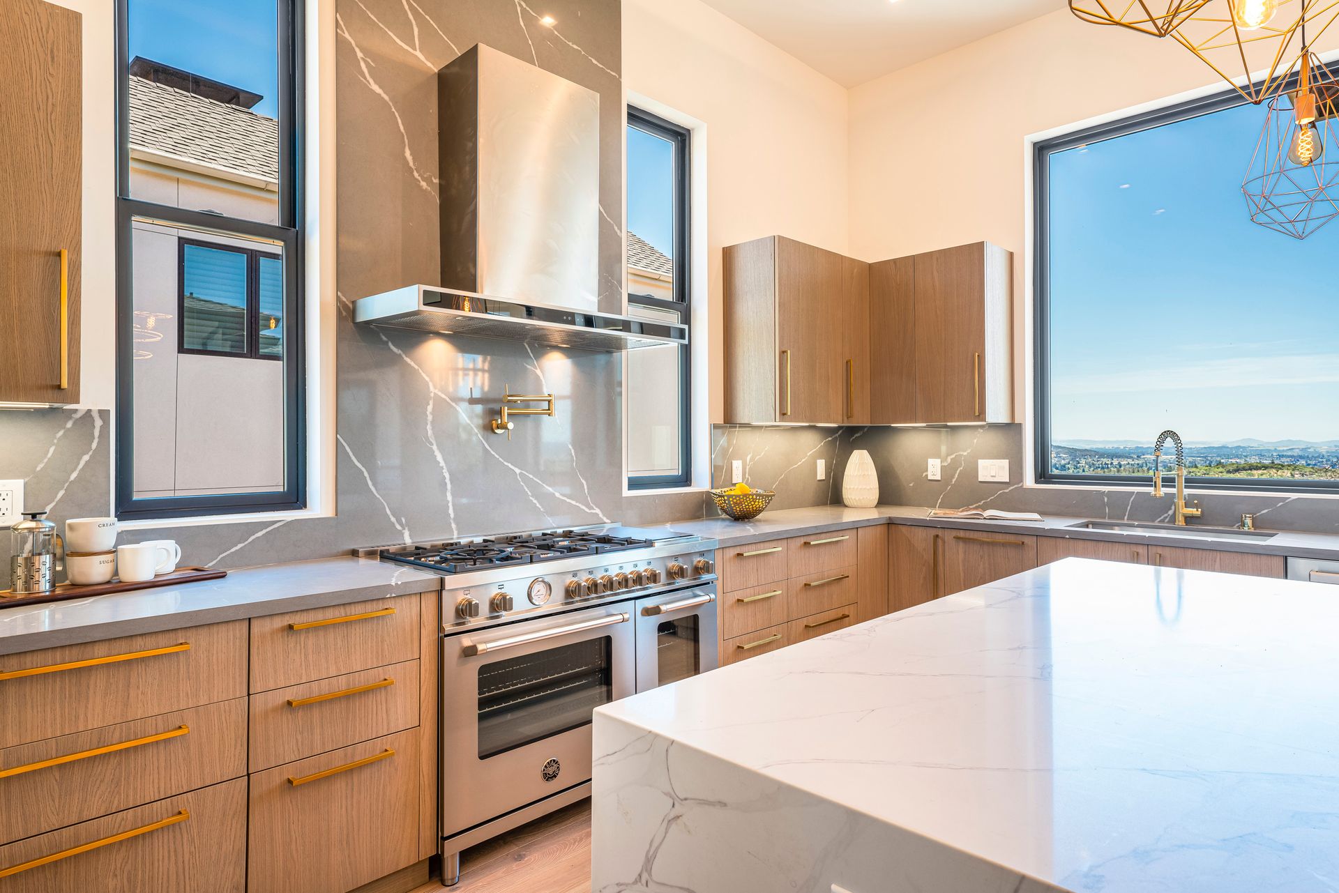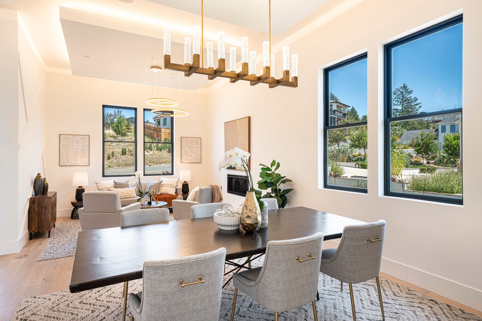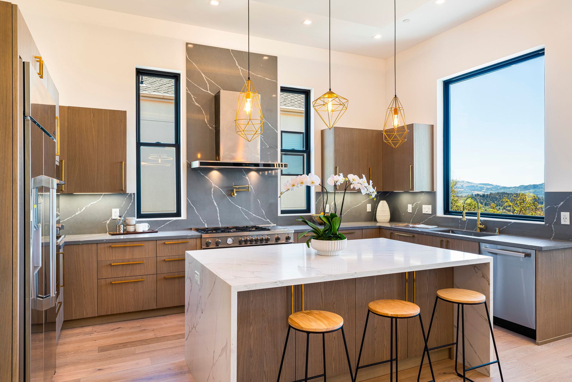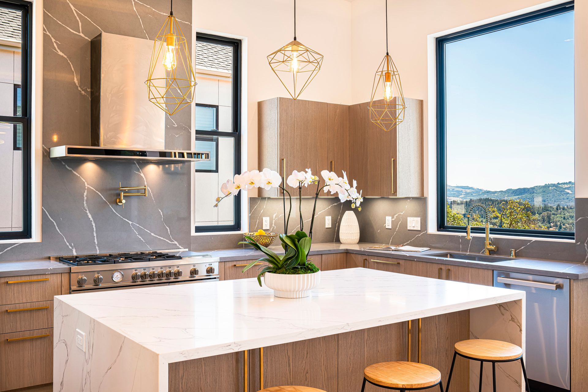 This newly constructed home of more than 3450 square feet, opens to sweeping views over Fountaingrove and city lights. The exceptional designer appeal includes, a temperature-controlled wine display showcase, formal living/dining room with gas fireplace and drop ceiling with chic lighting fixtures. The great room has folding glass doors that open to the covered view terrace featuring an outdoor fireplace for intimate gatherings. An open concept kitchen has all the amenities any chef would desire, including a quartz center island, Bertazzoni Italia 6 burner gas range with griddle and double ovens, microwave, built-in refrigerator, and a walk-in pantry. A luxurious primary suite on the main level includes box beam ceiling and folding doors to a view terrace. There is an additional bedroom/office on the main level and full bath. The lower level features a game/family room and two additional bedrooms (both en-suite), all with direct access to the covered patio for an evening of entertaining at the outdoor grill. Let the entertaining begin! The distinctive custom home is in the heart of wine country with close proximity to wineries, fine dining and the Sonoma County Airport.