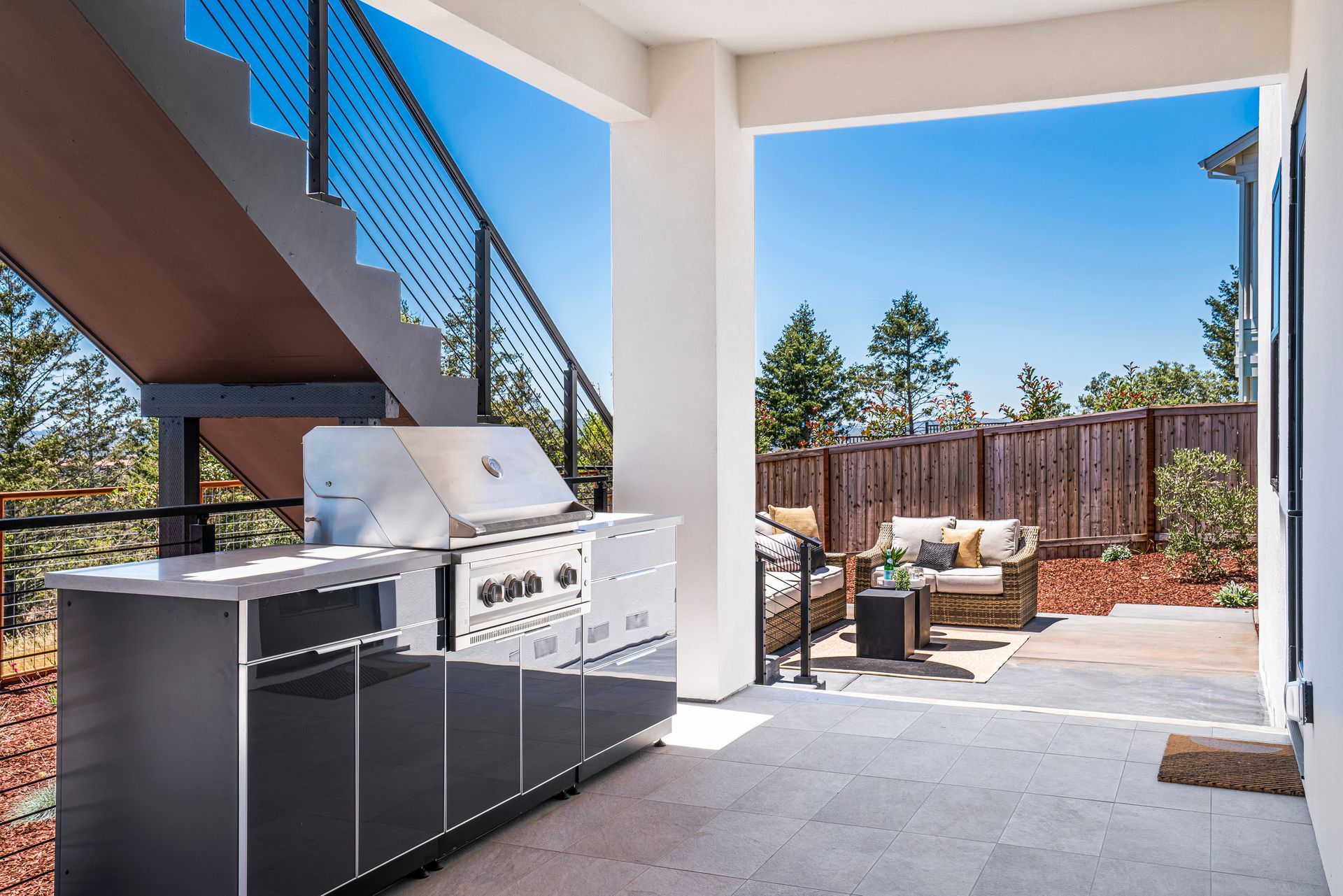 Lower-level covered patio ideal for an evening of entertaining at the outdoor Newgate grill