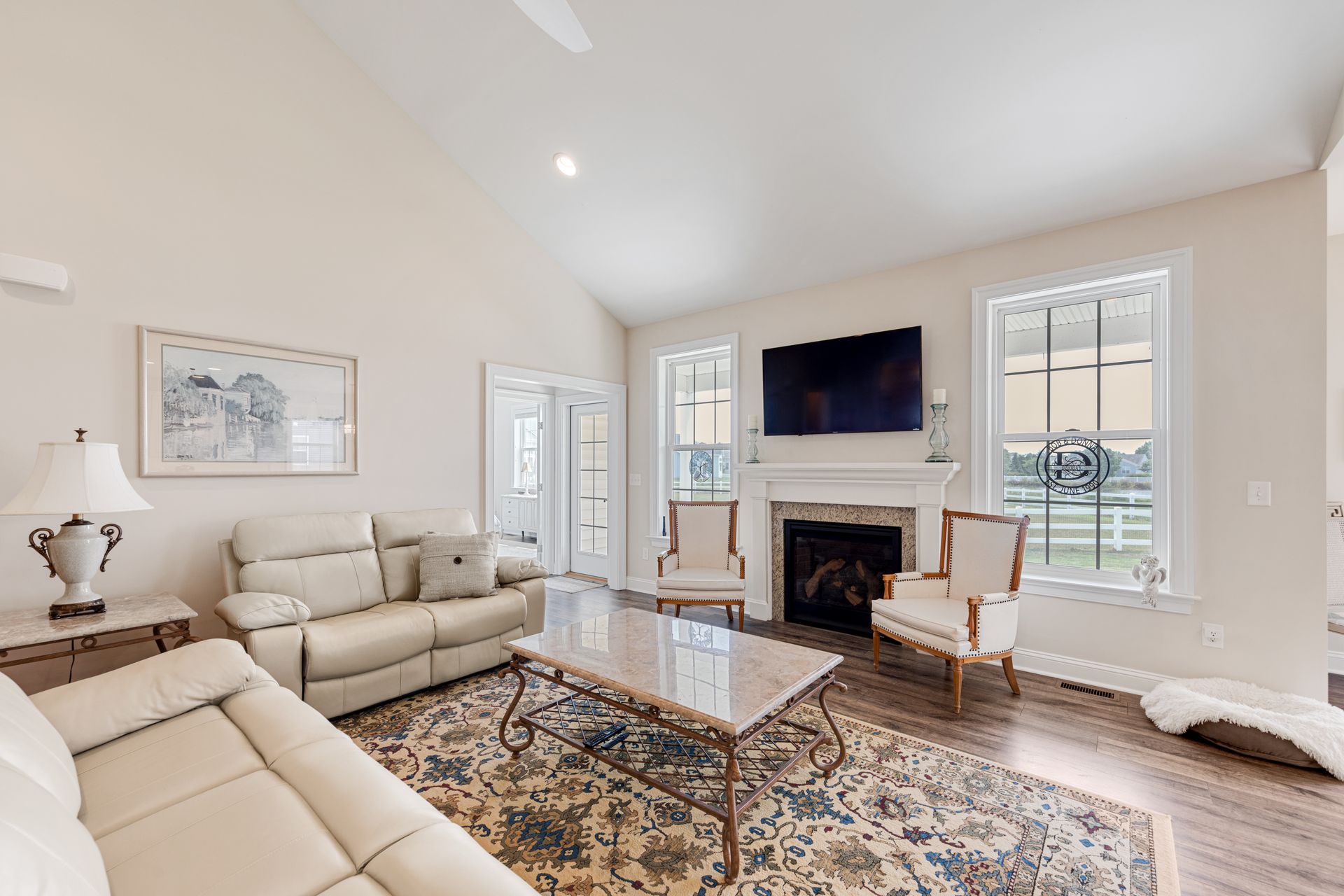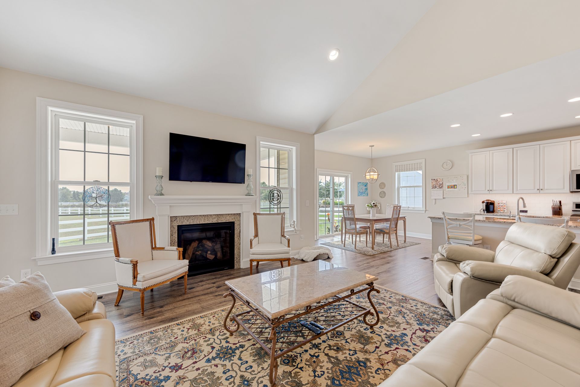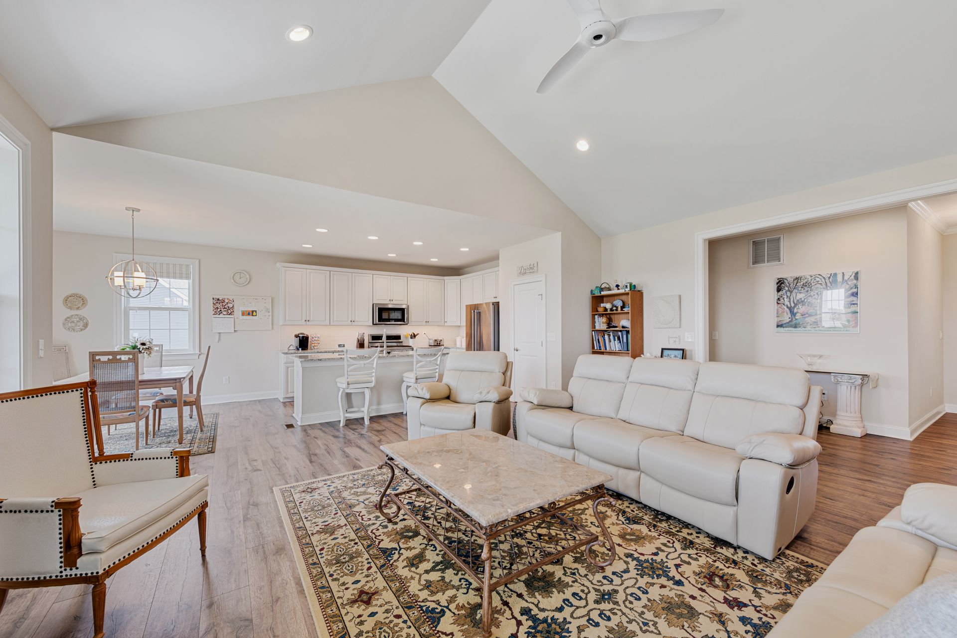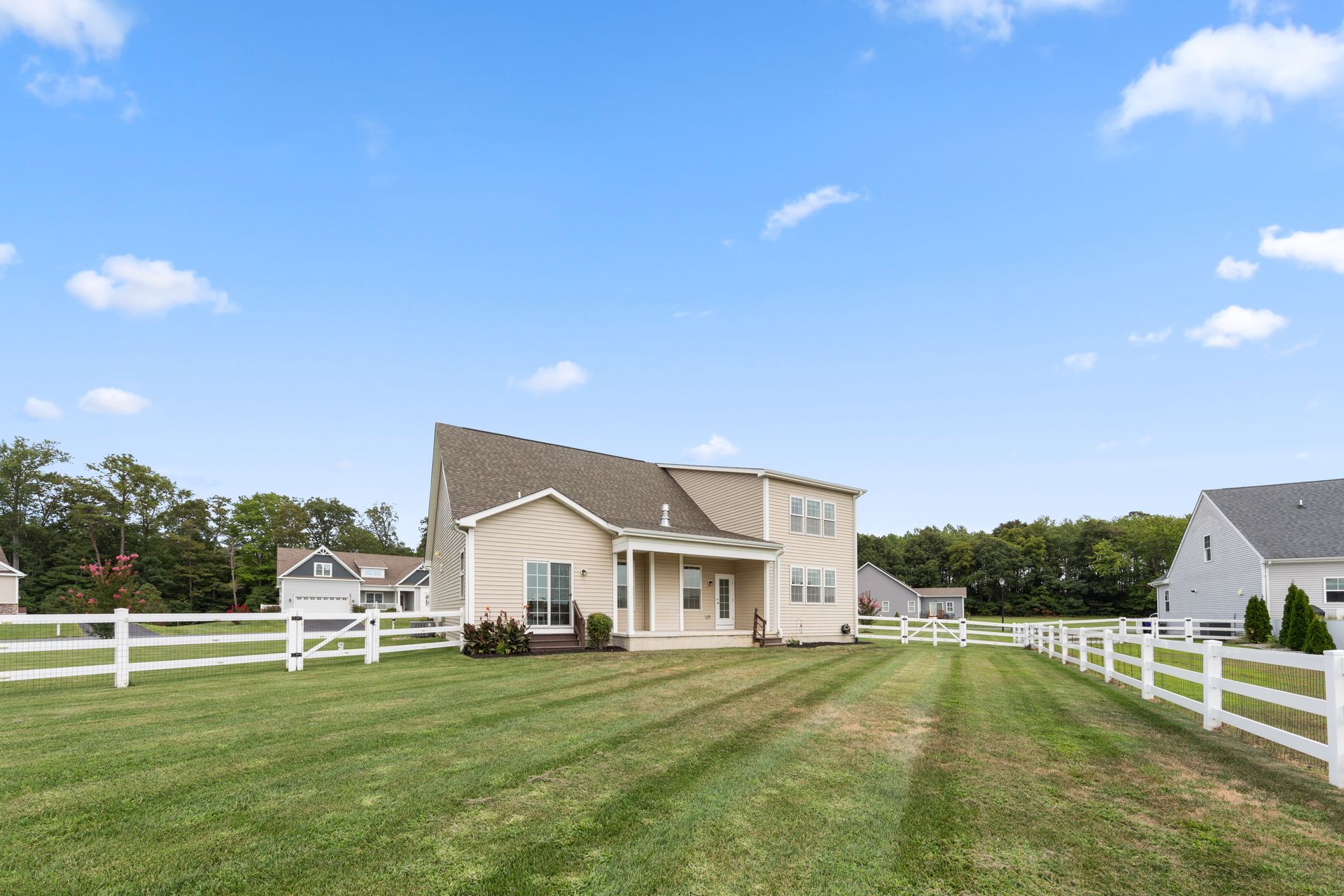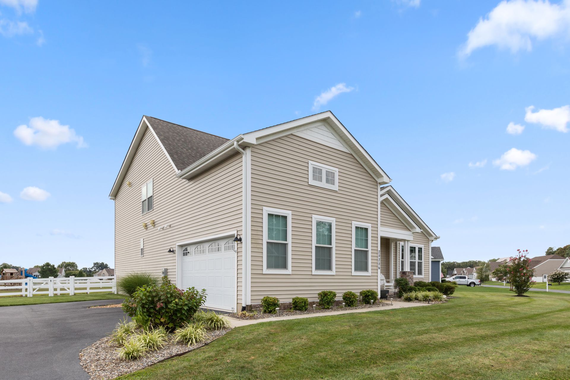 Gorgeous Finish and Features in this Four Bedroom, Three Bath home in desirable Ridings at Rehoboth on approximately .47 acres with Turned Garage and Fenced Back Yard with Pond Views! Essential Living Space all on first floor with Owner's Suite and Two Guest Bedrooms (or office/den), Laundry Room, Guest Bath and Large Open Great Room and Kitchen all on one floor. Granite in Kitchen with higher end Soft-Close Glazed Cabinets, Stainless Appliances and Large Pantry. Kitchen Island Seating and Informal Dining area with Sliders to Yard. This is ideal One Floor Living with an added Bonus of a Fourth Bedroom Suite upstairs with an additional unfinished area for storage or maybe for more living space? Home features a Tankless Hot Water and Lawn has Irrigation System. Crawl Space with drainage system, updated sump pump, Vapor Barrier installed in 2019 by previous owners has a 25-year warranty. A Platinum Home Warranty Conveys with Home and is Valid until January 2026.