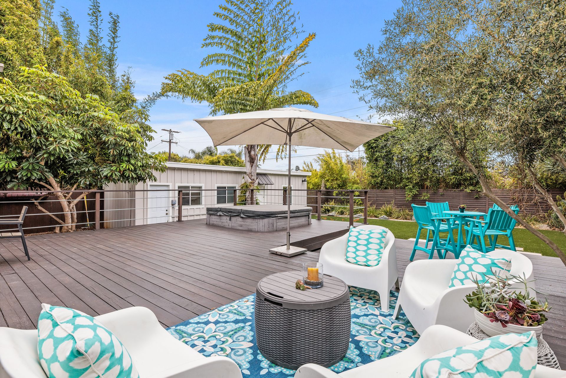 Venture outside to the sprawling backyard oasis. A vast deck, accompanied by a built-in spa, sets the stage for unforgettable gatherings and leisurely evenings. The meticulously maintained yard, adorned with mature landscaping and easy-to-maintain turf, offers a picturesque backdrop for outdoor enjoyment year-round. Additional highlights include a convenient two-car garage, ensuring ample parking and storage space, as well as a front yard adorned with drought-resistant plants, adding to the property's curb appeal and eco-conscious design.