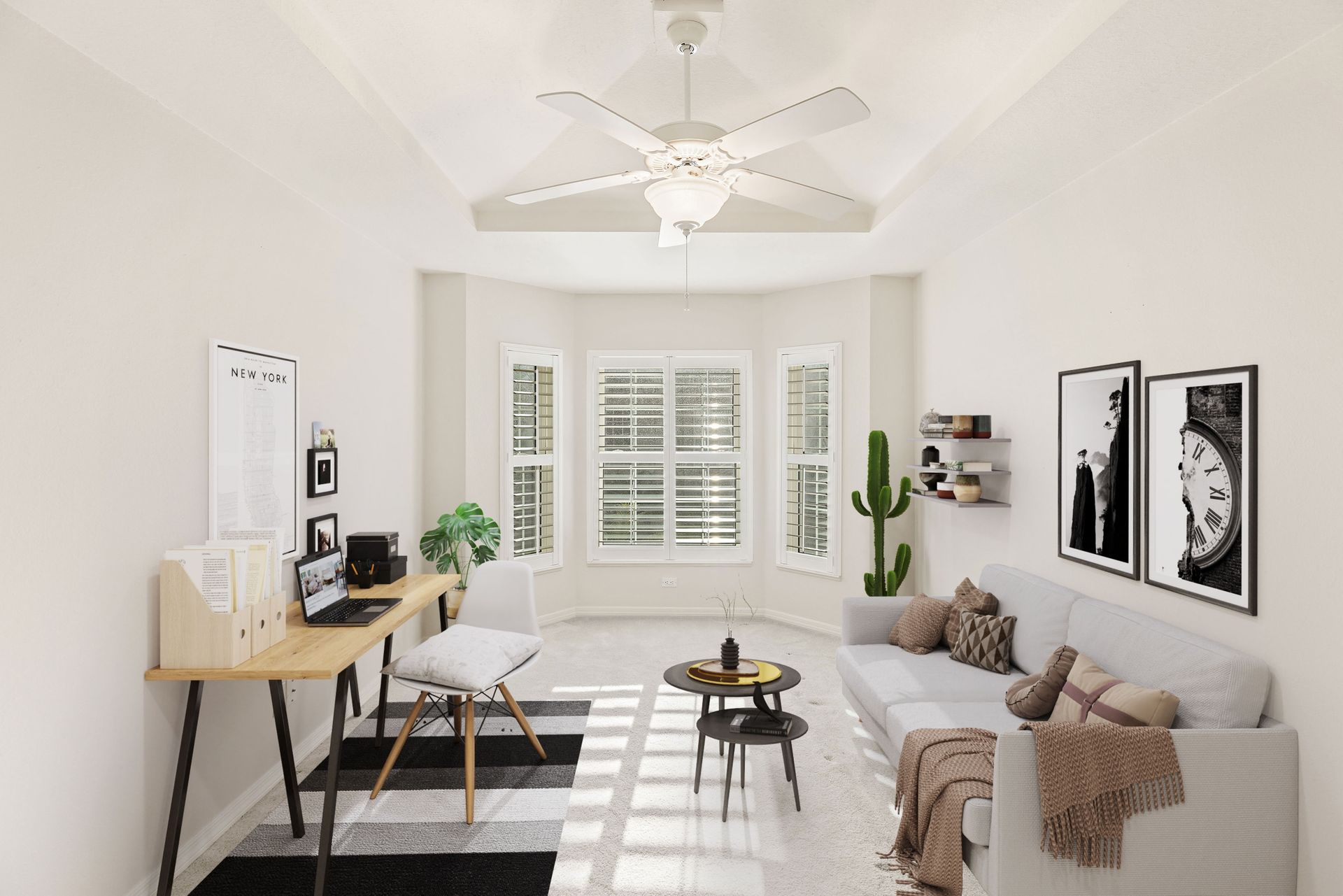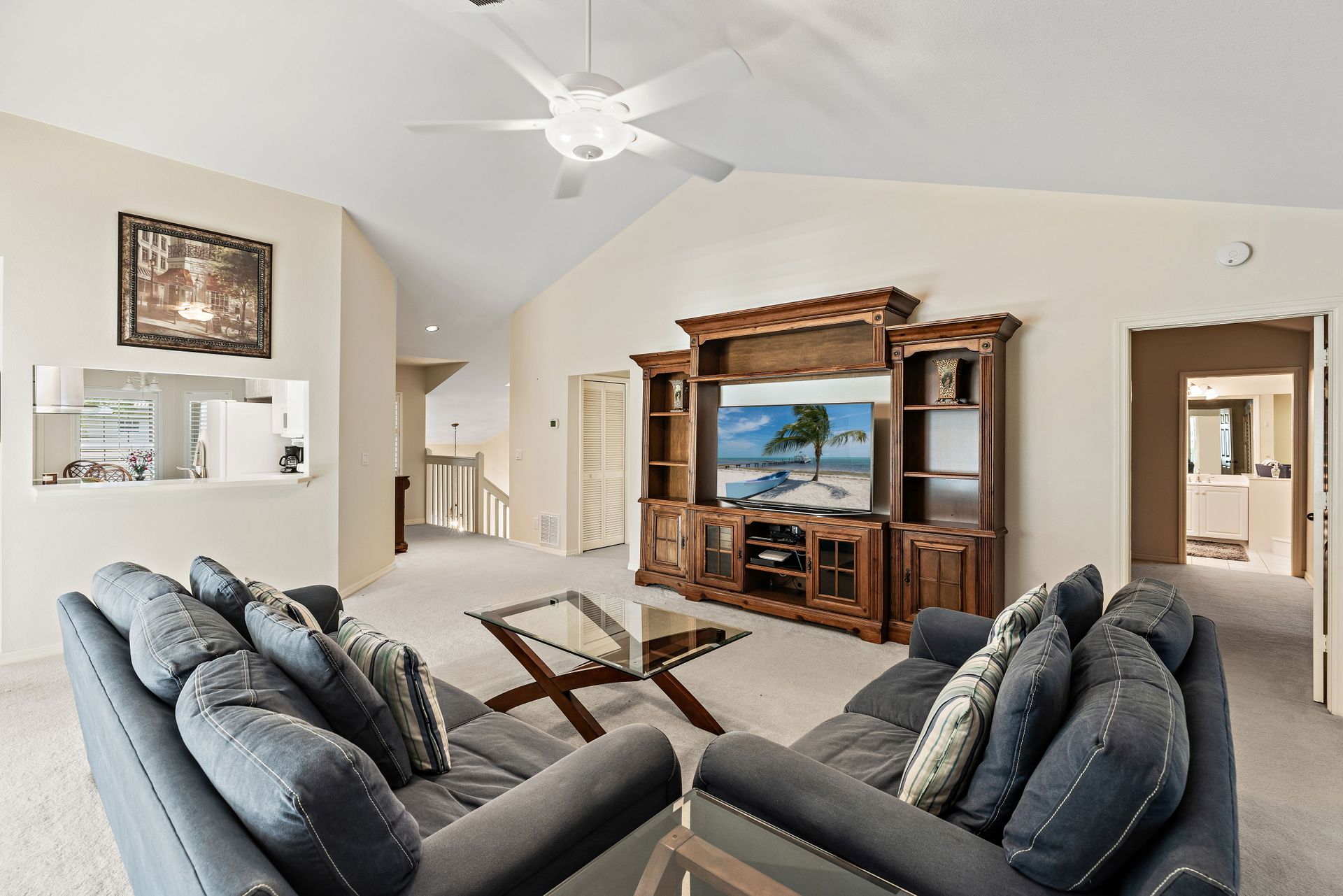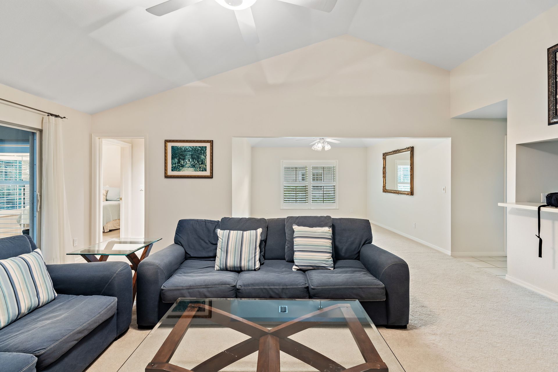 Incredibly RARE opportunity to own this impeccably maintained coach home in the low-density, tranquil community of Tra Vigne in The Vineyards. Thoughtfully designed with an expansive open, light and bright floor plan, which makes this unit live like a single-family home. Featuring two large bedrooms plus a den, two full plus one-half baths, a gorgeous modern kitchen with white cabinetry, and white solid surface counters light and spacious throughout. You will love the gorgeously appointed bathrooms, the expansive walk-in closet, dual vanities and the soaking tub in the owner's suite as well as the soaring vaulted ceilings throughout and the gorgeously expansive large tiled screened-in lanai. This home is near the intimate resort-style pool.