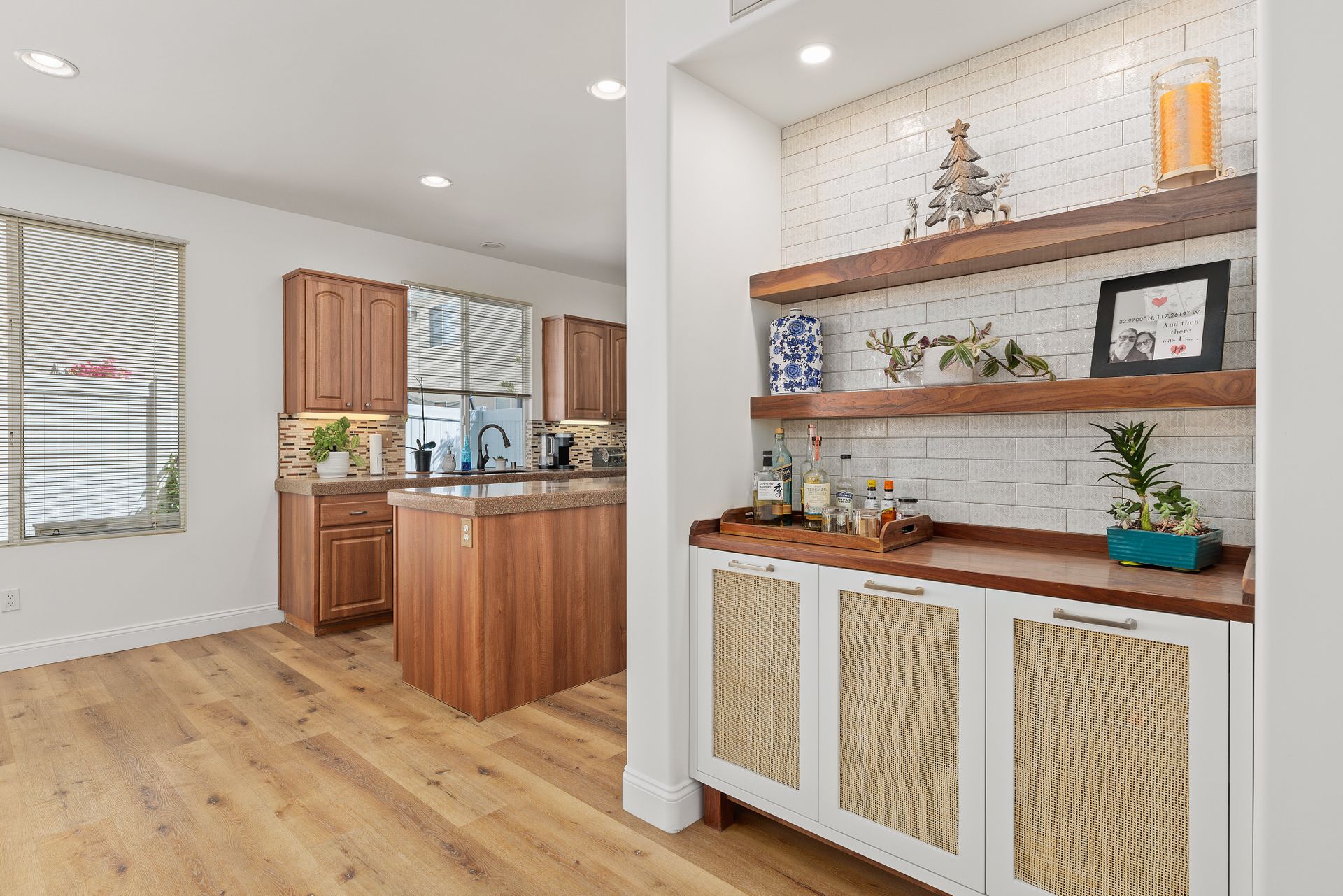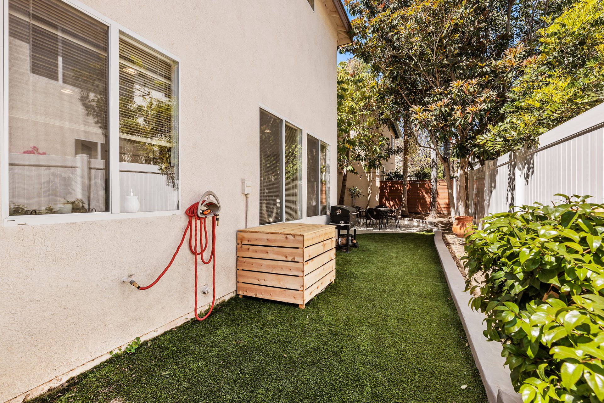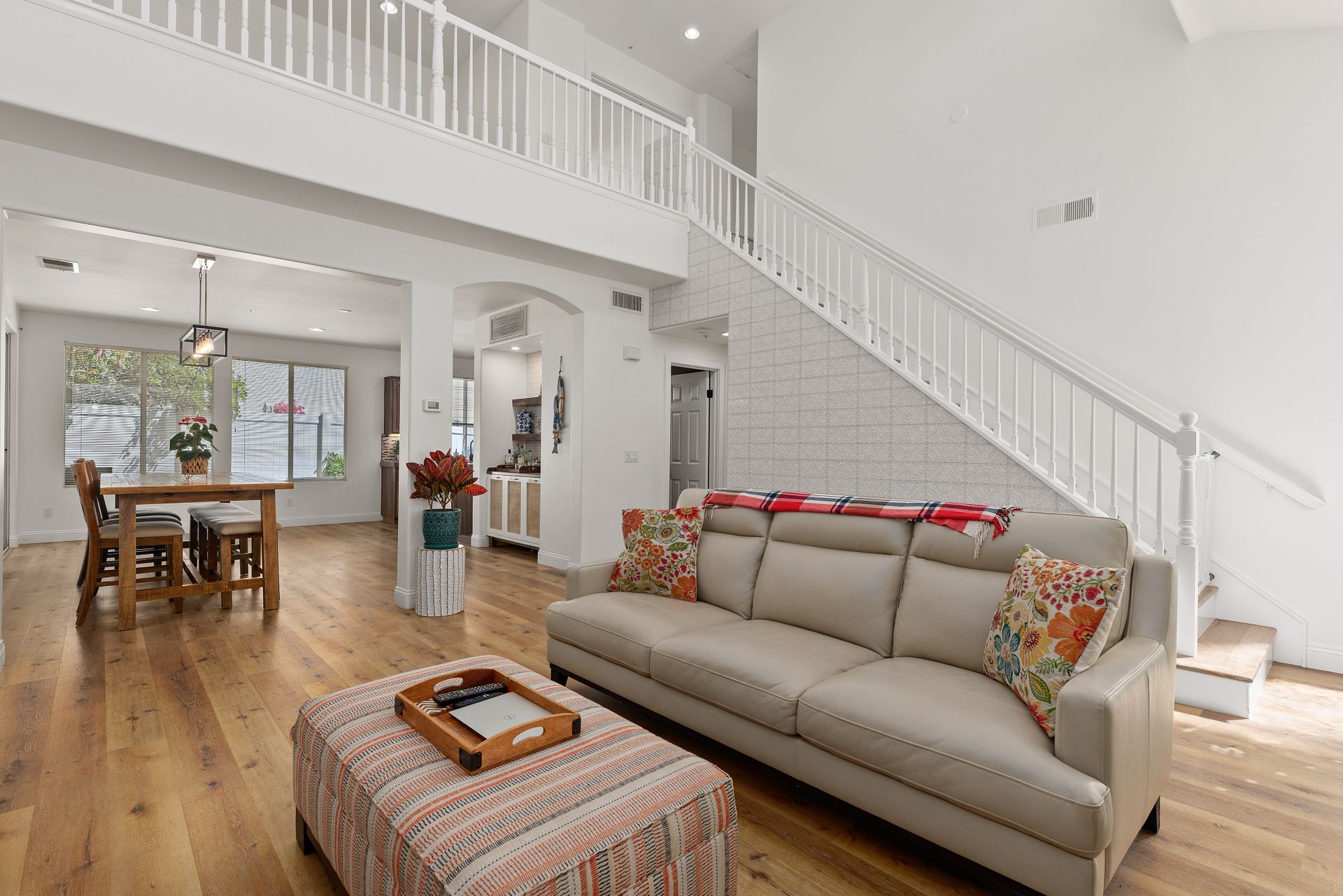 Located inside the gated community of Heritage/Legends in Shadowridge, this move-in-ready home offers three bedrooms plus a loft, two and one-half baths and approximately 1,714 square feet. The open-concept first floor features a living room with a cozy fireplace and vaulted ceilings, a large dining area big enough to fit a table that seats 10, a custom-built bar cabinet with shelves and lighting, a recently upgraded half bath, and a beautiful kitchen featuring granite counters, glass tile backsplash, large center island with storage, and a separate pantry. Luxury vinyl plank flooring was recently installed throughout most of the home with newer carpet in the upstairs primary bedroom and one of the guest rooms. The loft is excellent for a second living area, a workout room, a home office or as a 4th bedroom. If you're not a fan of orange peel texture on the walls, then you will LOVE that the walls and ceilings in this home have a level four skim coat finish which was done to perfection! Other features include an accent tile wall in the living room, ceiling fans in all bedrooms, newer baseboards and door casings, and A/C. The low maintenance backyard features newer fencing, recently installed turf, and an inviting concrete patio area enhanced by market lights creating a wonderful backdrop for outdoor dining. With quick access to the 78 freeway, this home is located approximately 8 miles from the beach and is within a short distance of shops, restaurants, schools, and parks. Just across the street is the Buena Vista Park Pond and Open Space where you can feed the ducks, walk the dog, or enjoy the many hiking trails. Low HOA dues of $148/mo and no Mello Roos!