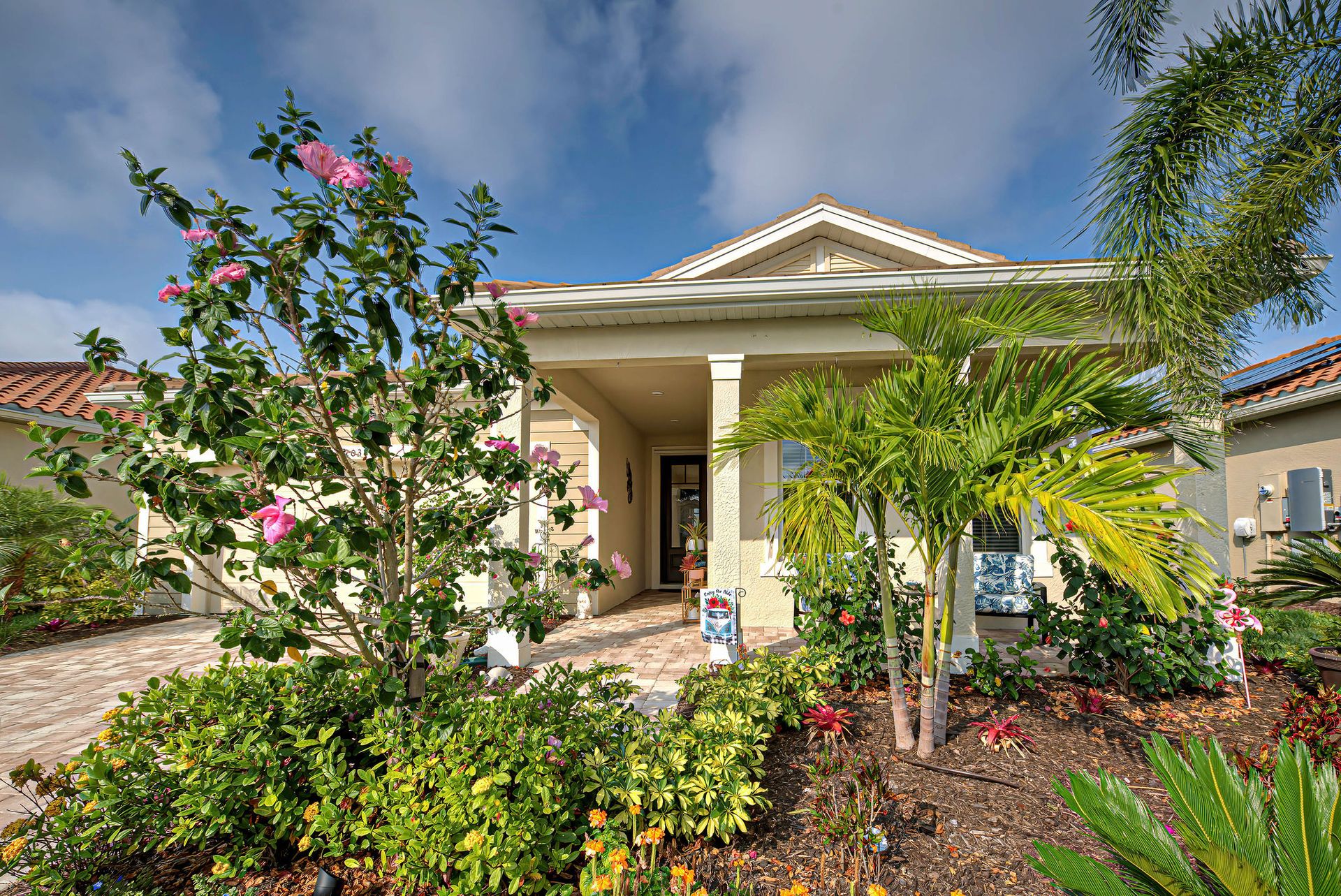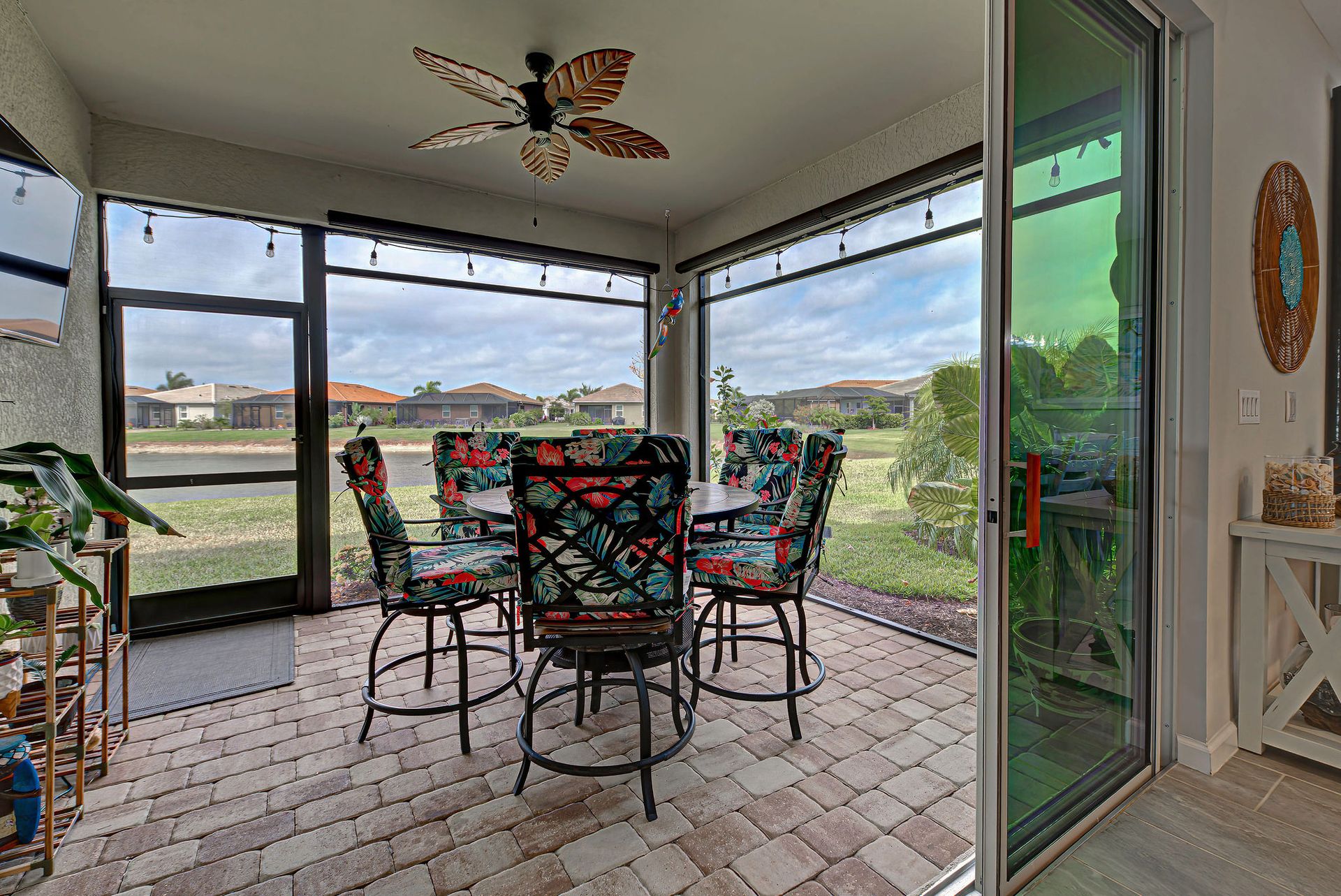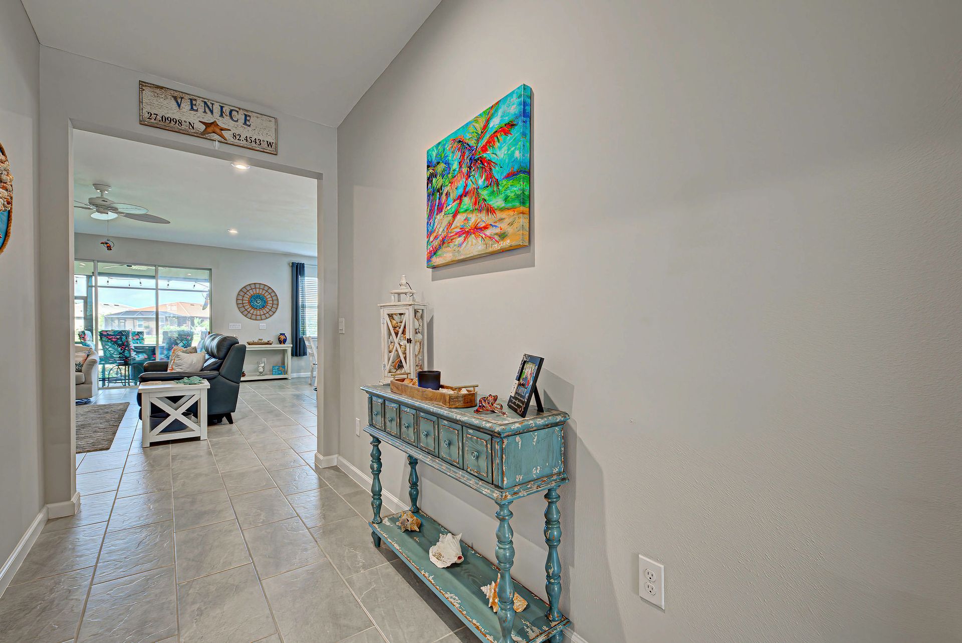 Welcome to your very own slice of paradise! Nestled in the heart of Wellen Park's gated Renaissance community, this less than 3 years young Mattamy Aurora II model has all of the features and amenities anyone could ask for. Set on a premium waterfront lot, and NOT IN A FLOOD ZONE, the home features 3 beds and 2 baths, with a generous living area of over 2,000 square feet and includes a bonus room to use as your office or as additional room for your visiting guests. The main living space features tile flooring throughout, with an open-concept great room and kitchen perfect for entertaining or gatherings. The kitchen hosts sparkling stainless appliances, quartz counters, and plenty of cabinet space for storage and a very generous walk-in pantry. The large primary suite has views of the lake in back, with a sizable ensuite bath with a dual sink vanity and quartz countertops, water closet, spacious walk-in shower, and oversized walk-in closet. A whole home water softener and filter was installed when the home was originally built, so no need to worry about hard water buildup. Custom Levolor 2" blinds are installed on all windows, and the seller has also added 2 heavy-duty overhead storage racks in the garage to maximize storage space for all of your beach toys and holiday storage needs. New rain gutters have also been installed in 2023, and the lanai in the rear of the home was screened in to allow you to enjoy beautiful Florida sunsets and views of the lake. The Renaissance community is amenity-rich with a clubhouse, luxurious community pool, tennis, pickleball, bocce ball, gym, and playground. An onsite amenities director offers many activities to enjoy. It is seconds to shopping, dining, Downtown Wellen Park, and the new Costco. It is convenient to Venice Island, Englewood, Sarasota, and all of the gulf beaches. PARADISE AWAITS YOU IN THIS LIKE NEW HOME, SO WHY WAIT TO BUILD! CALL TODAY FOR YOUR OWN PRIVATE SHOWING!