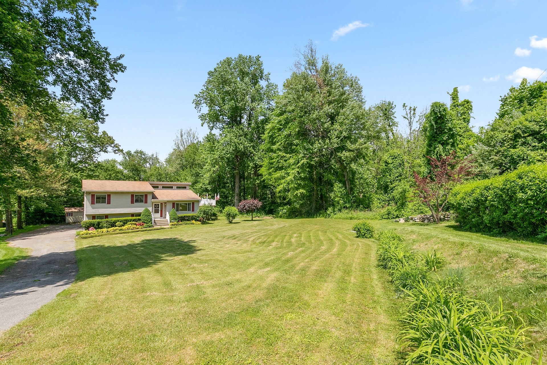 Welcome to your meticulously maintained split-level oasis in the heart of Hopewell Junction! Upon entry, be welcomed by the airy ambiance created by soaring ceilings and an open-concept design that sets the stage for modern living. This three-bedroom, two-and-a-half-bathroom gem boasts a layout designed for both comfort and entertainment. On the main level, discover a spacious living room perfect for relaxing evenings or lively gatherings. Ascend to the kitchen area, where stainless steel appliances gleam alongside a convenient peninsula and dining space. From here, exit onto the expansive deck, an ideal spot for al fresco dining or hosting summer barbecues. Retreat to the private quarters, where two ample bedrooms await, along with a hallway bathroom. The primary bedroom offers a peaceful haven with its attached ensuite bathroom. Seeking versatility? Venture to the lower level, where a renovated laundry room and half bathroom await, along with sliding glass doors leading to the outdoors. Whether used as a home office, gym, or additional living space, the options are endless. Updates abound, with appliances just three years young, a boiler replaced in 2017, and split AC units installed in 2014, ensuring comfort and efficiency year-round. Outside, mature trees and lush landscaping envelop the property, offering both beauty and privacy. Positioned as the last home on the block, and surrounded by undevelopable land to the left and behind, tranquility is guaranteed. For outdoor enthusiasts, the nearby Appalachian Trail beckons, promising endless adventures amidst nature's splendor. Don't miss your chance to call this Hopewell Junction haven home!