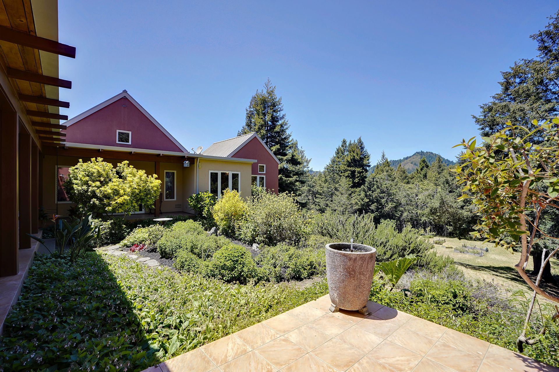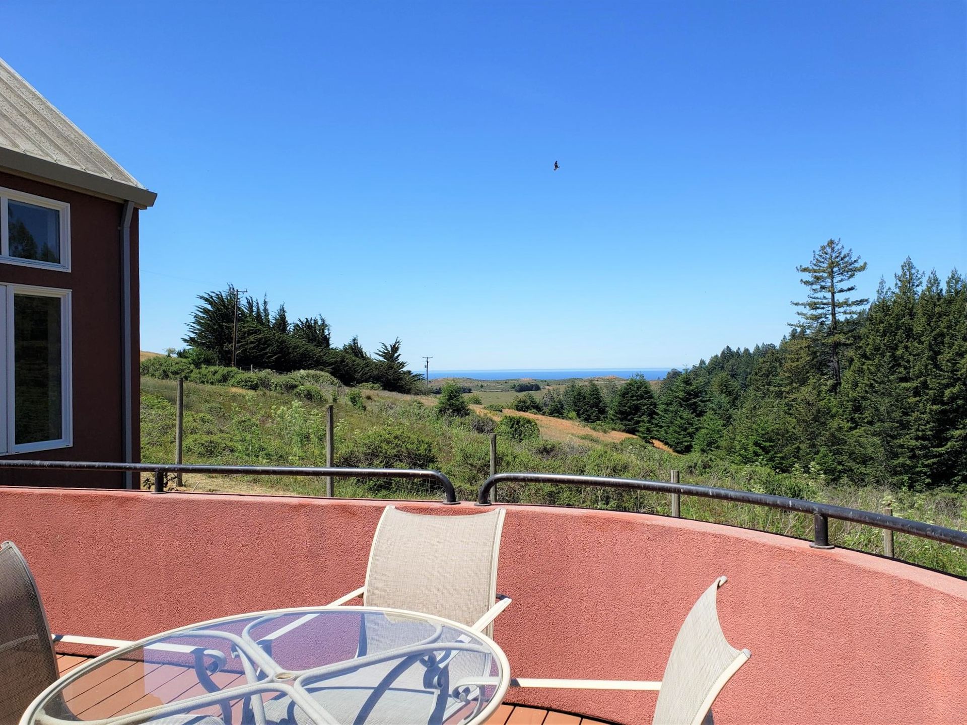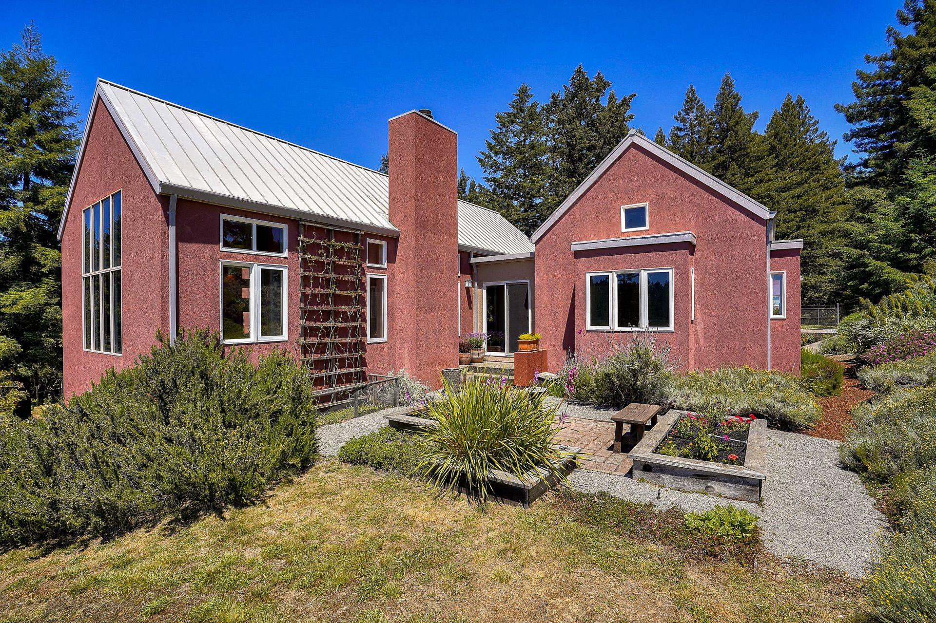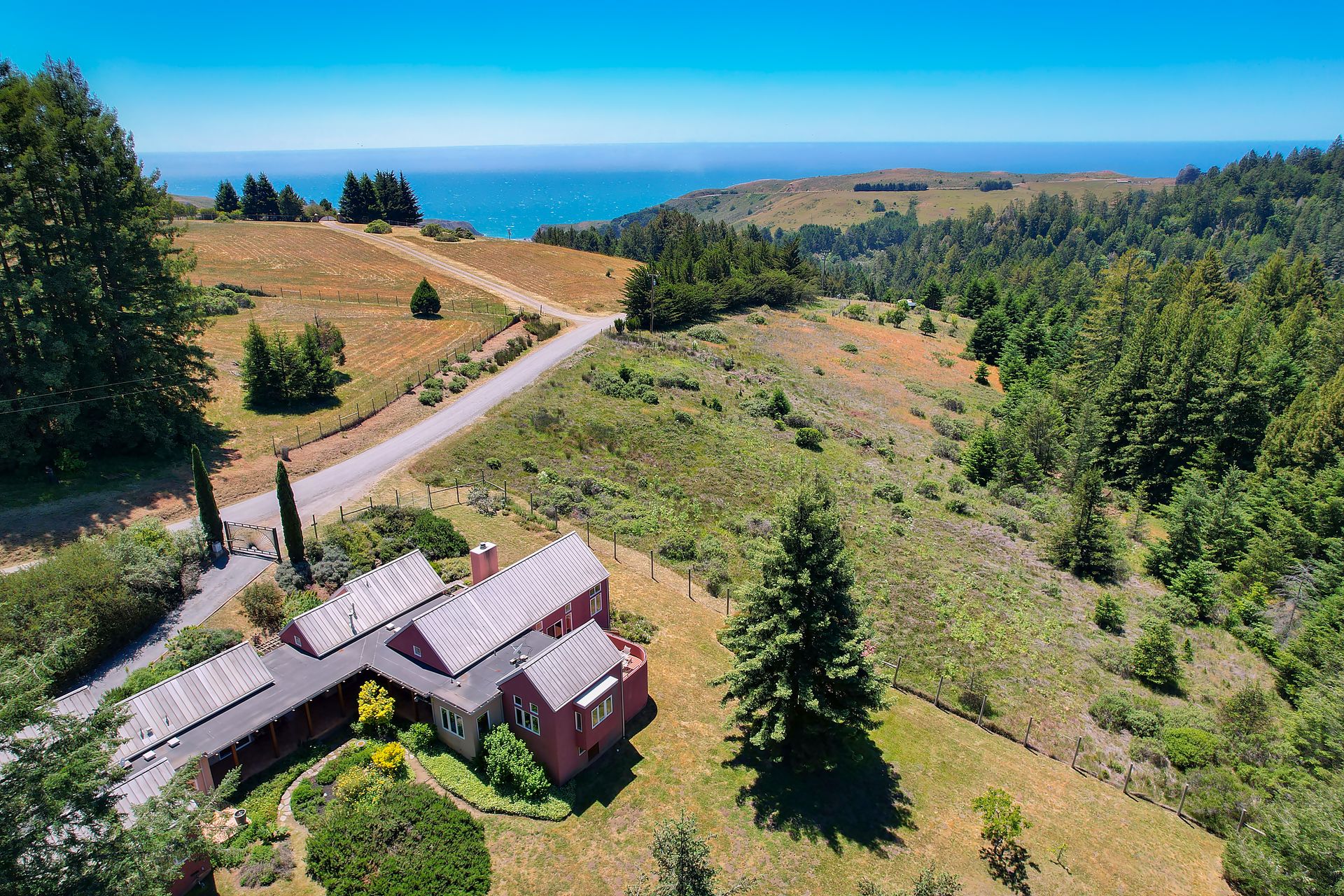 Feed your soul in this rejuvenating setting. Enjoy ocean views, resplendent gardens and the stillness of being surrounded by nature in this architecturally designed home. Double doors welcome you to a lovely garden oasis, the main home to the left, guest quarters to the right. Glass doors, large windows and vaulted ceilings create light filled spaces. Every window provides stunning views. Imported Italian floor tiles run from the foyer to the spacious eat-in kitchen. Wood floors run throughout the dining room and living room. Sliders from the living room and master bedroom lead to a roomy view deck. At an over 700 foot elevation, this idyllic 11+ acre property is blessed with a banana-belt microclimate and excellent water. There are rolling meadows, raised beds, fruit trees and a well-managed redwood forest. The home is gated with deer fencing. Enjoy easy access to Jenner Headlands Preserve. This rare nature get away is only roughly 80 miles north of the Golden Gate.
