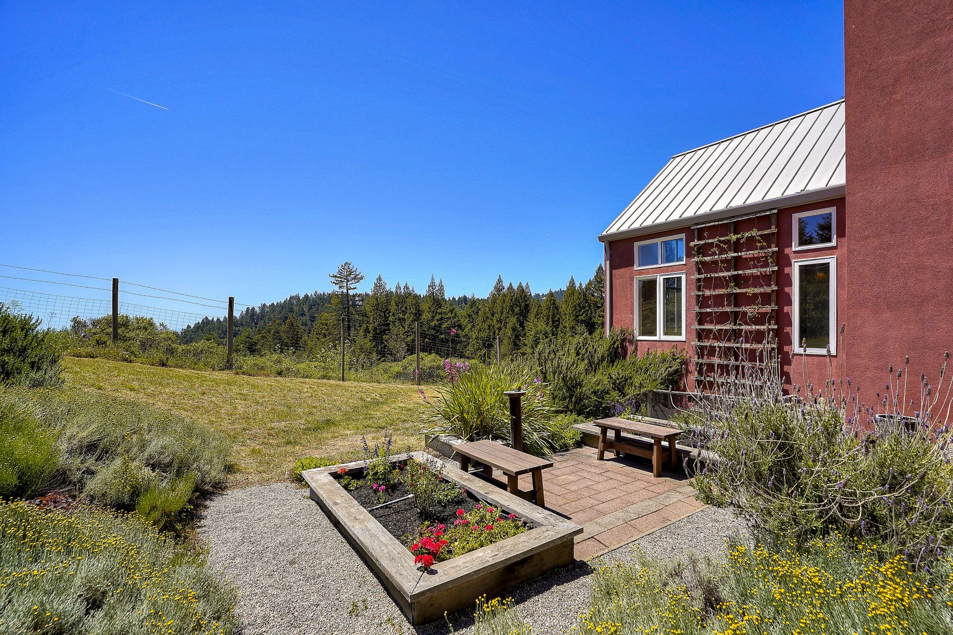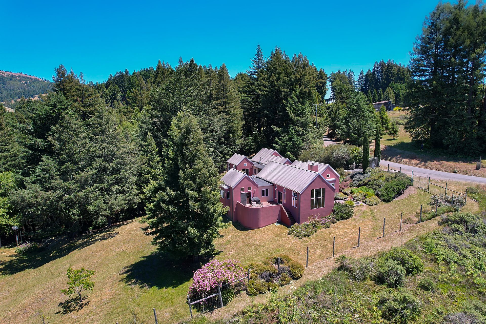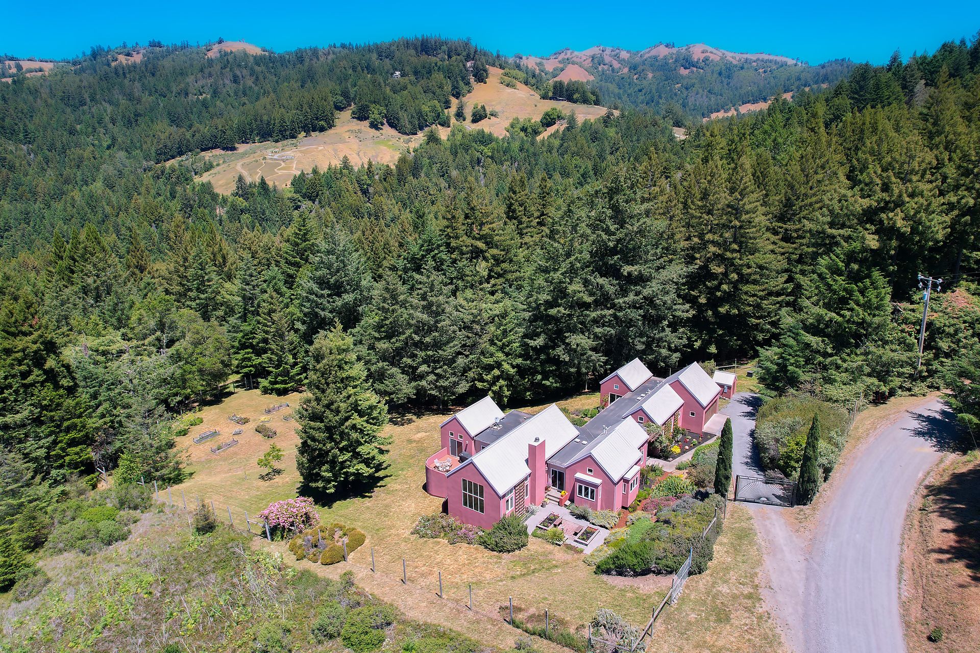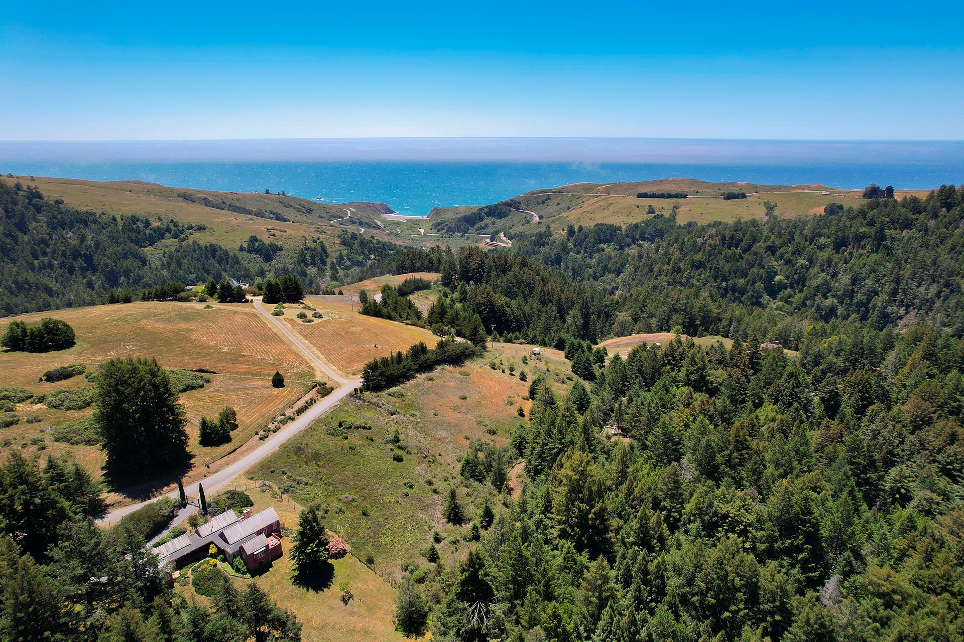 Feed your soul in this rejuvenating setting. Enjoy ocean views, resplendent gardens and the stillness of being surrounded by nature in this architecturally designed home. Double doors welcome you to a lovely garden oasis, the main home to the left, guest quarters to the right. Glass doors, large windows and vaulted ceilings create light filled spaces. Every window provides stunning views. Imported Italian floor tiles run from the foyer to the spacious eat-in kitchen. Wood floors run throughout the dining room and living room. Sliders from the living room and master bedroom lead to a roomy view deck. At an over 700 foot elevation, this idyllic 11+ acre property is blessed with a banana-belt microclimate and excellent water. There are rolling meadows, raised beds, fruit trees and a well-managed redwood forest. The home is gated with deer fencing. Enjoy easy access to Jenner Headlands Preserve. This rare nature get away is only roughly 80 miles north of the Golden Gate.