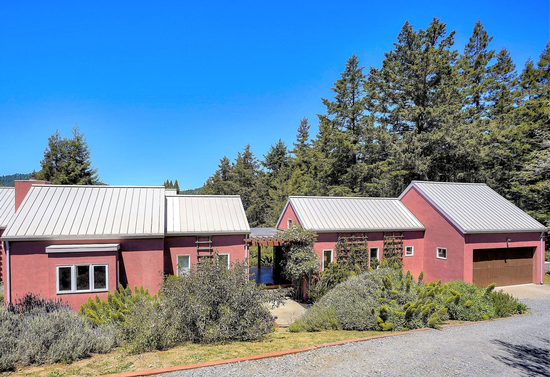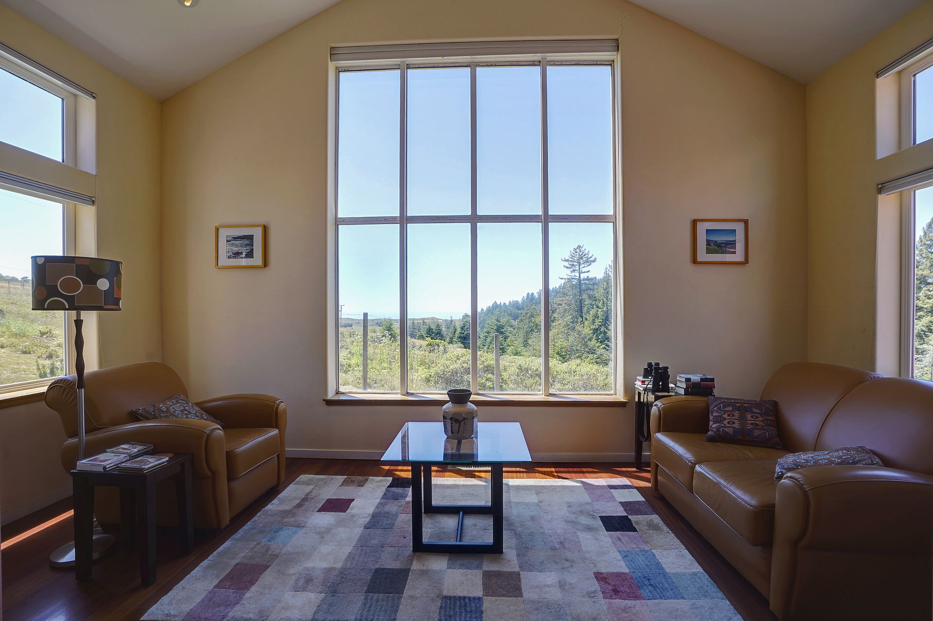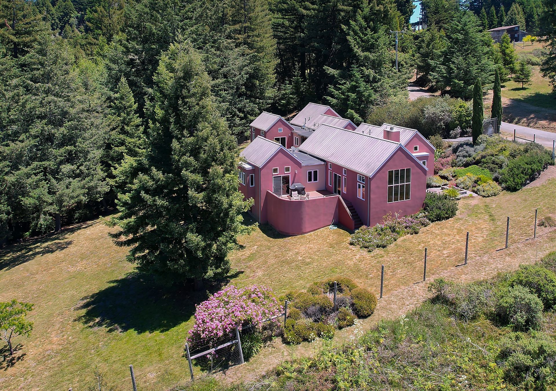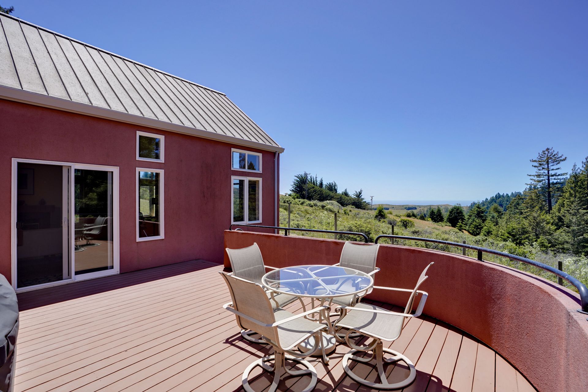 Feed your soul in this rejuvenating setting. Enjoy ocean views, resplendent gardens and the stillness of being surrounded by nature in this architecturally designed home. Double doors welcome you to a lovely garden oasis, the main home to the left, guest quarters to the right. Glass doors, large windows and vaulted ceilings create light filled spaces. Every window provides stunning views. Imported Italian floor tiles run from the foyer to the spacious eat-in kitchen. Wood floors run throughout the dining room and living room. Sliders from the living room and master bedroom lead to a roomy view deck. At an over 700 foot elevation, this idyllic 11+ acre property is blessed with a banana-belt microclimate and excellent water. There are rolling meadows, raised beds, fruit trees and a well-managed redwood forest. The home is gated with deer fencing. Enjoy easy access to Jenner Headlands Preserve. This rare nature get away is only roughly 80 miles north of the Golden Gate.
