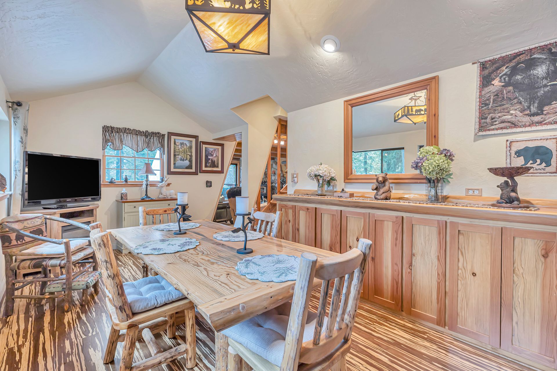 Nestled in a serene location, this charming cabin boasts an idyllic setting with an adjacent lot that backs up to pristine national forest land. As you step inside, you'll be greeted by a cozy ambiance, as the entire property is fully furnished with delightful cabin-style decor. The first floor encompasses a comfortable bedroom complete with a full bath, offering convenience & privacy. Ascending to the top floor, you'll find 2 additional inviting bedrooms, perfect for accommodating family & guests. The middle level is a true gem, featuring an abundance of windows that frame breathtaking views of the surrounding natural beauty, including the awe-inspiring sight of Lover's Leap. This floor also offers a full bathroom & a convenient mudroom that opens up to the backyard, allowing for easy access to outdoor adventures. Furthermore, the cabin provides ample storage options w/3 separate areas. One of these spaces serves as a versatile workshop, ideal for DIY enthusiasts. Additionally, there's a two-level storage area for all your organizational needs. Lastly, a dedicated storage area for ATVs or snowmobiles ensures that your recreational vehicles are well-protected & easily accessible. This cabin offers a blend of tranquility & comfort as a retreat for adventure enthusiasts.