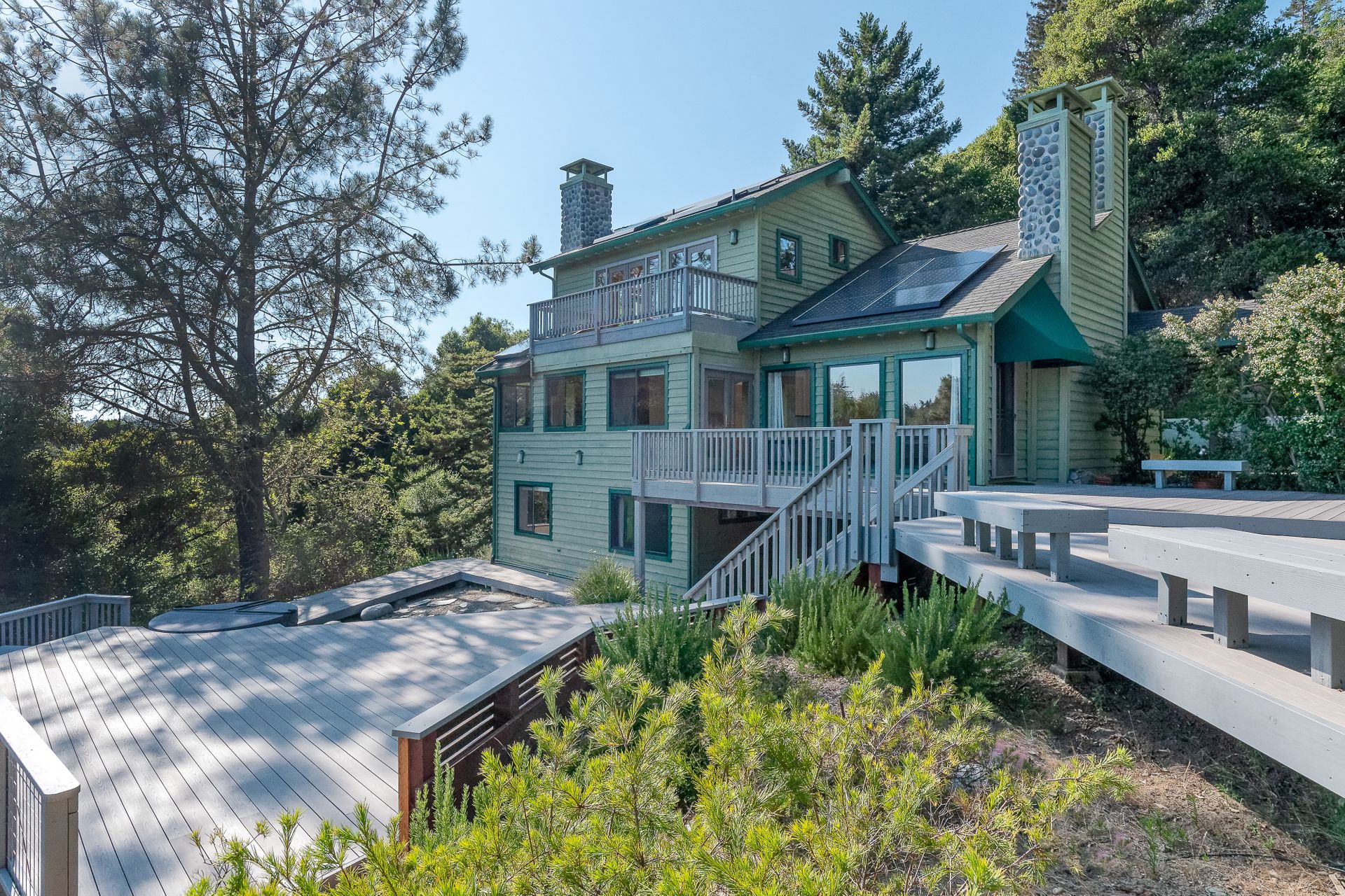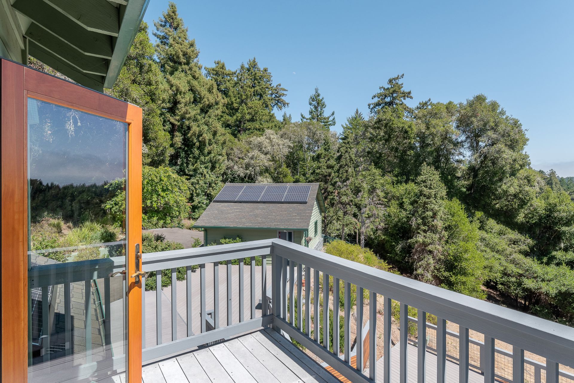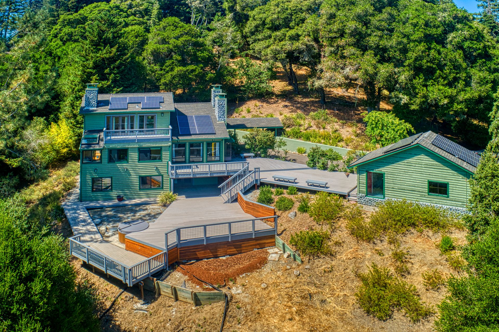 This home is inspired by nature. The oak floors are beautiful and reflect the abundance of light. Set on a hilltop with views of the Pacific Ocean and Nisene Marks National Forest. Enjoy the lights of the Monterey Bay. Creativity distinguishes this home, with arched doorways, unique tile, lighting and a delightful architectural design. The rooms make the most of the vistas, framing redwood, oak and pine trees. There are two subterranean pantries with a wine rack. The private master bedroom/bathroom suite has a fireplace and French doors opening to a private deck. It offers extensive closet space. All bedrooms have built-ins. This property has character. On the market for the first time. Enjoy substantial decks and low maintenance landscaping. There are views from all three floors. Powered by Tesla solar system with a backup generator. Embraced by the scenery, you feel far from the city. Only a couple miles to Aptos Village or Rio Del Mar, Seacliff State Beach, Valencia School and Aptos High.