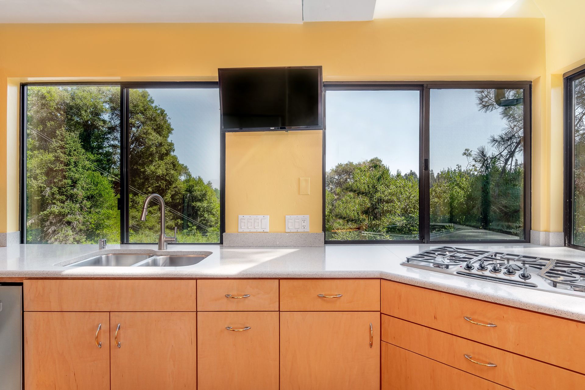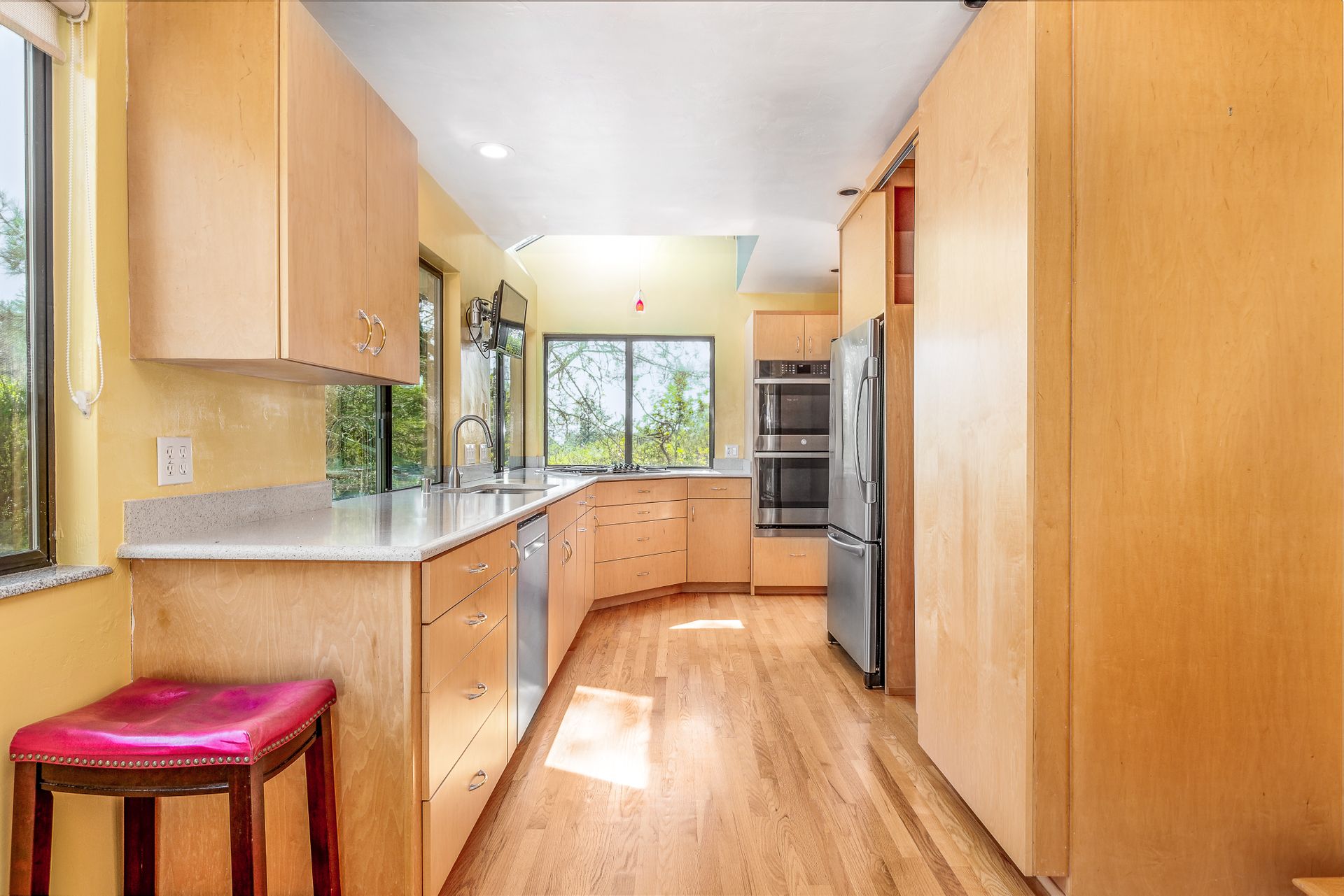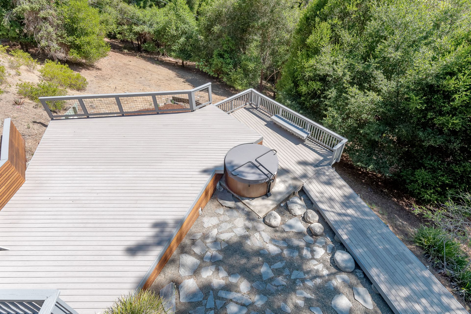 This home is inspired by nature. The oak floors are beautiful and reflect the abundance of light. Set on a hilltop with views of the Pacific Ocean and Nisene Marks National Forest. Enjoy the lights of the Monterey Bay. Creativity distinguishes this home, with arched doorways, unique tile, lighting and a delightful architectural design. The rooms make the most of the vistas, framing redwood, oak and pine trees. There are two subterranean pantries with a wine rack. The private master bedroom/bathroom suite has a fireplace and French doors opening to a private deck. It offers extensive closet space. All bedrooms have built-ins. This property has character. On the market for the first time. Enjoy substantial decks and low maintenance landscaping. There are views from all three floors. Powered by Tesla solar system with a backup generator. Embraced by the scenery, you feel far from the city. Only a couple miles to Aptos Village or Rio Del Mar, Seacliff State Beach, Valencia School and Aptos High.