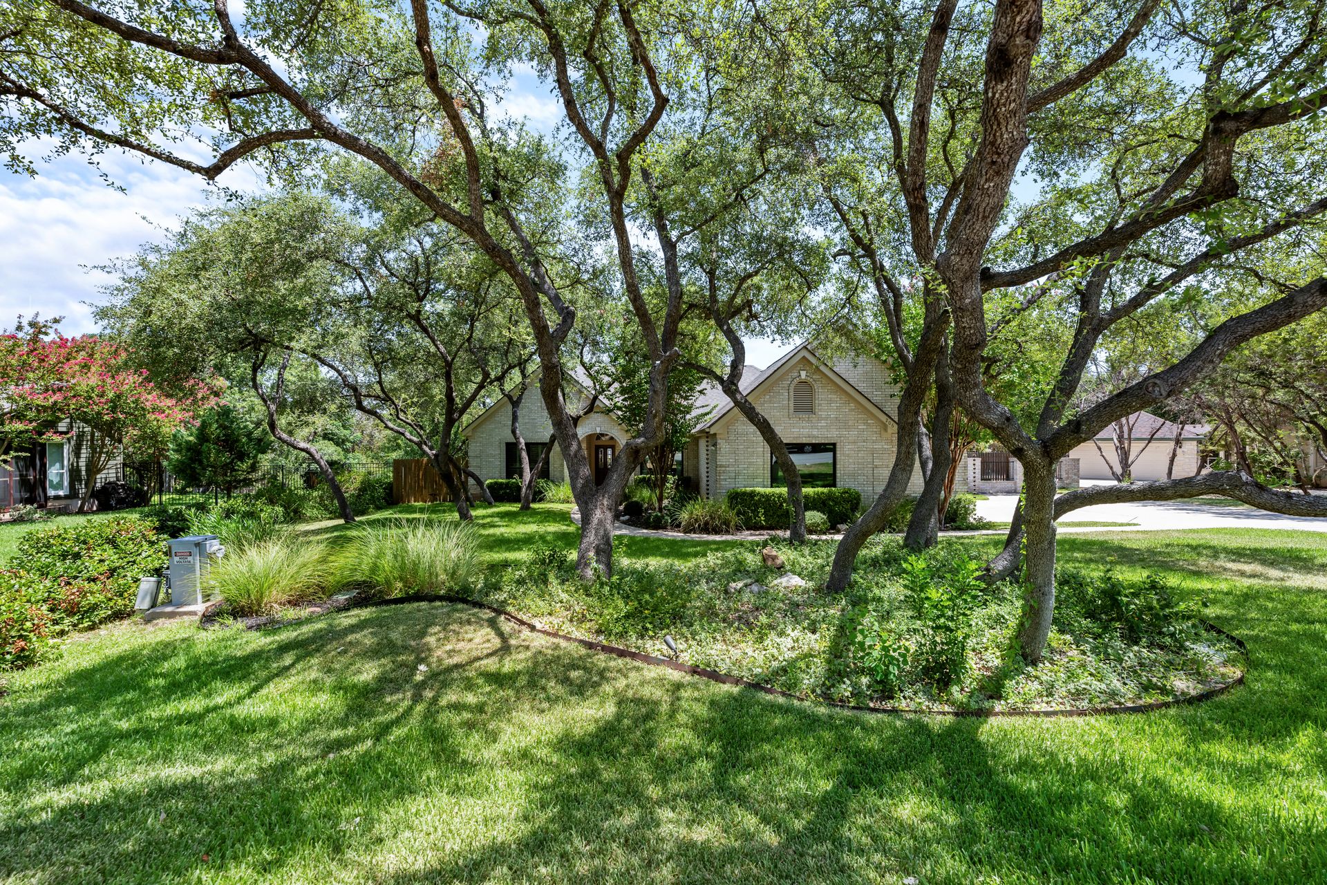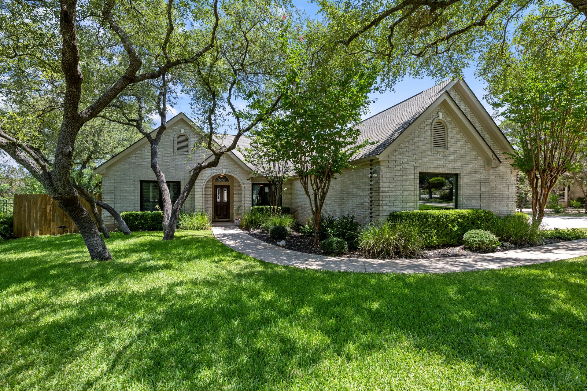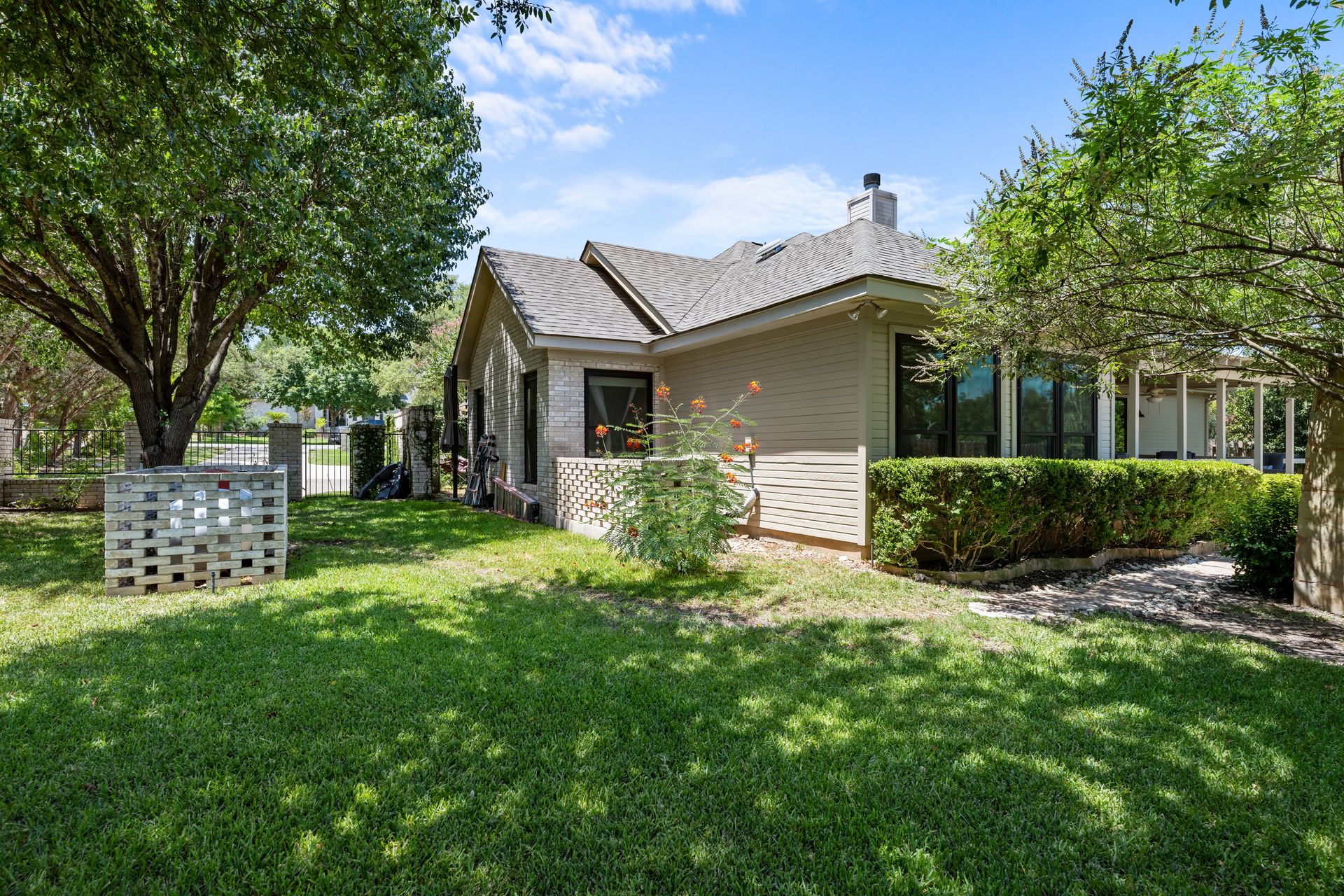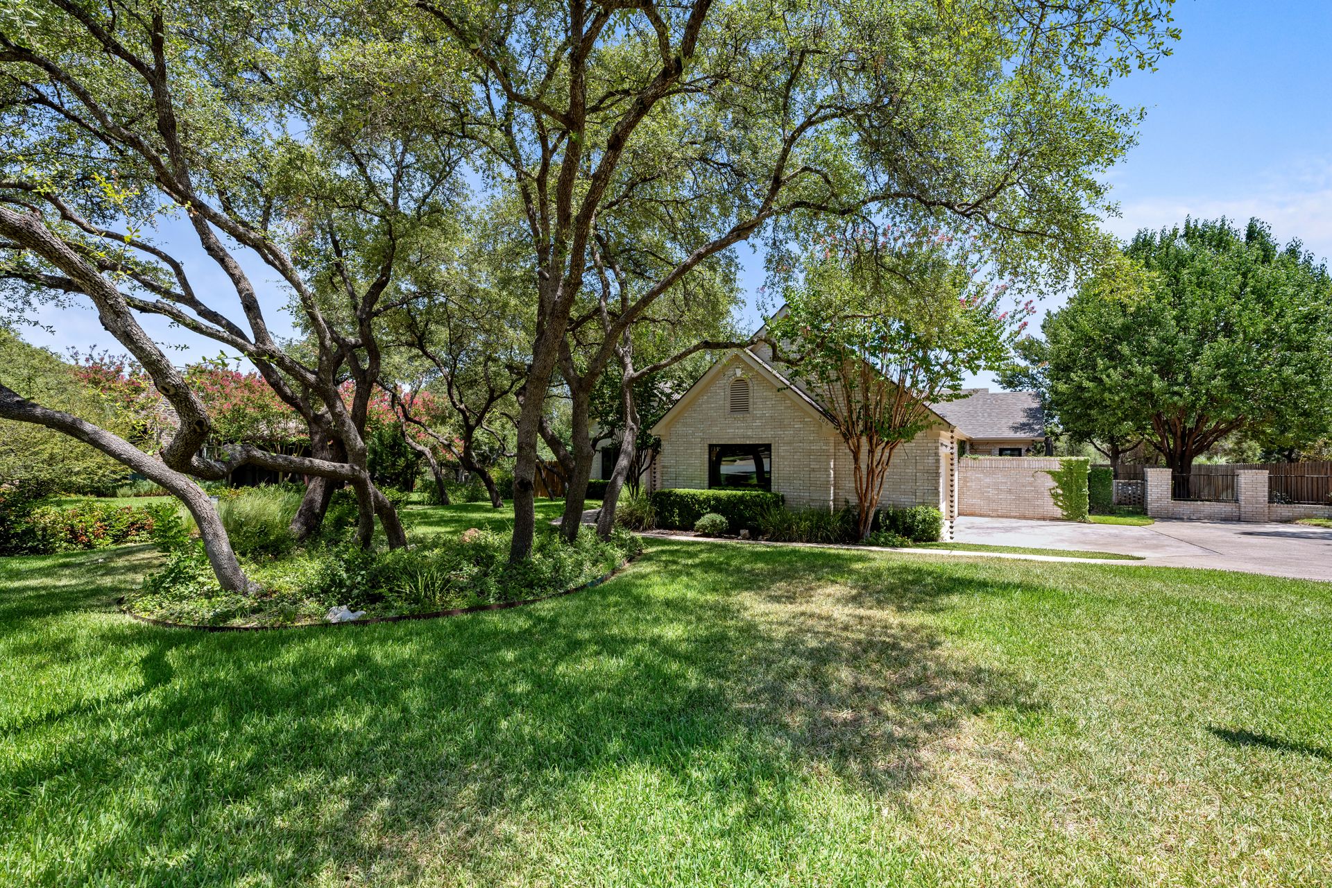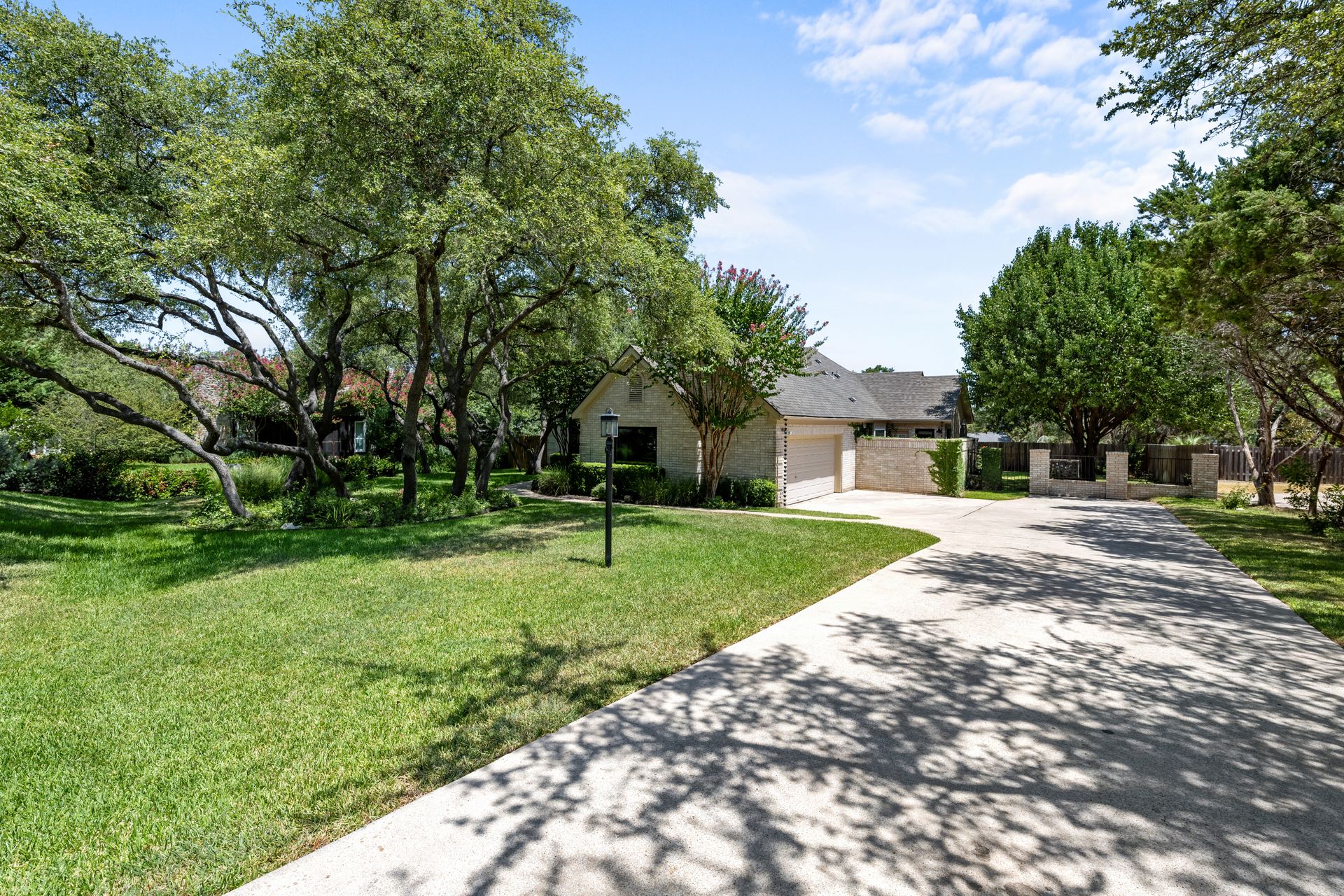 This charming, single-story three bedroom, two full and one-half-bath home is tucked in a quiet cul-de-sac in Lakeway that sits on a spacious lot with privacy. Home features wood floors, an updated kitchen with granite countertops, subway tile backsplash, gas cooking, a breakfast bar, an eat-in kitchen and a formal dining area open to the living room. The kitchen is open to another living area with a built-in cabinet. The primary room offers high ceilings and an ensuite with a garden tub and separate shower, double vanities and a large walk-in closet. There is a door leading out to a private sitting area perfect for a hot tub or private space. The home offers a beautiful covered outdoor living space, with an outdoor fireplace. This property is surrounded by gorgeous live oaks with room for a pool, garden and more. All the windows have been updated. Located near Lakeway City Park, Cross Water Marina, hike and bike trails and the Hamilton Green Belt and is in Lake Travis ISD. Move-in ready!
