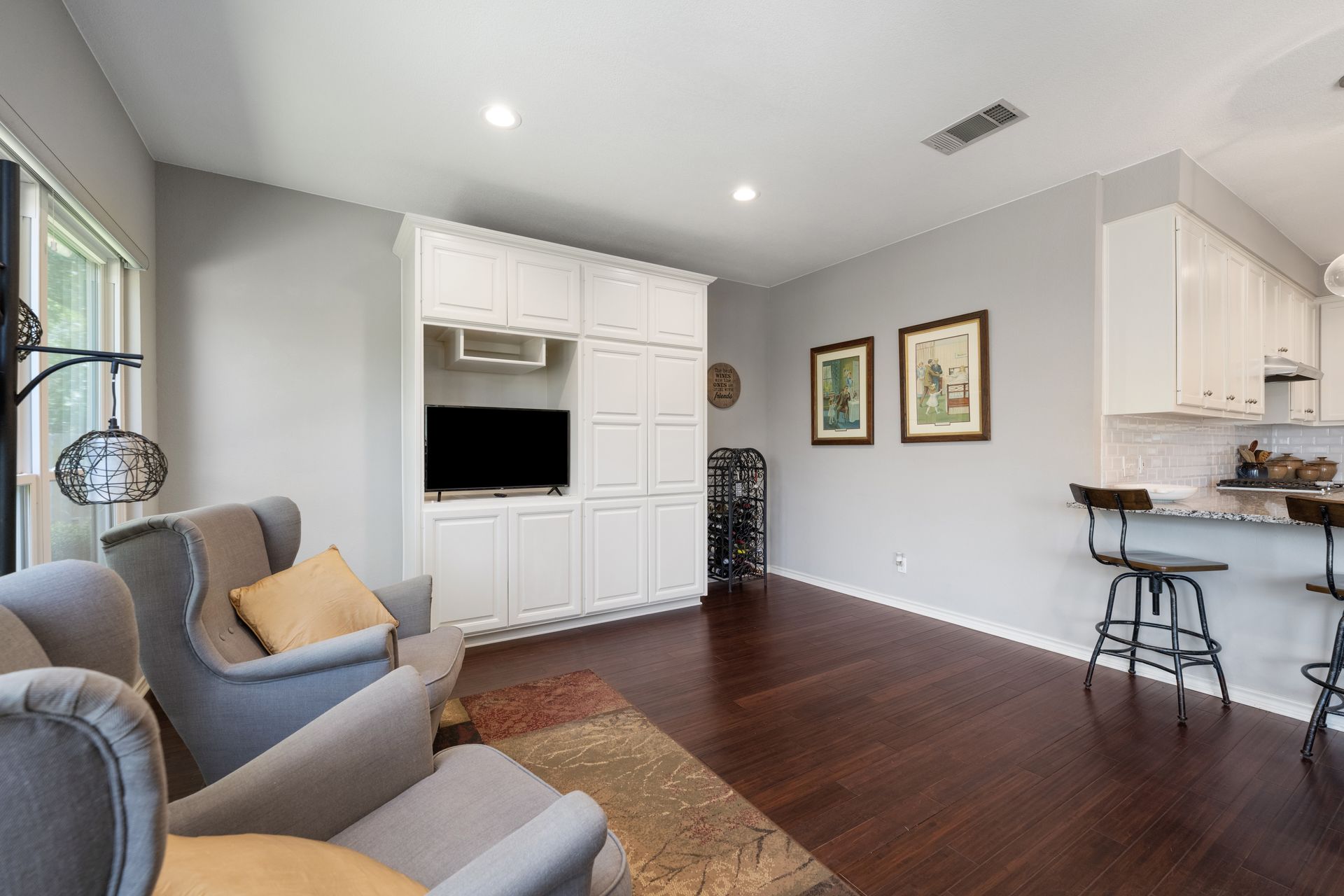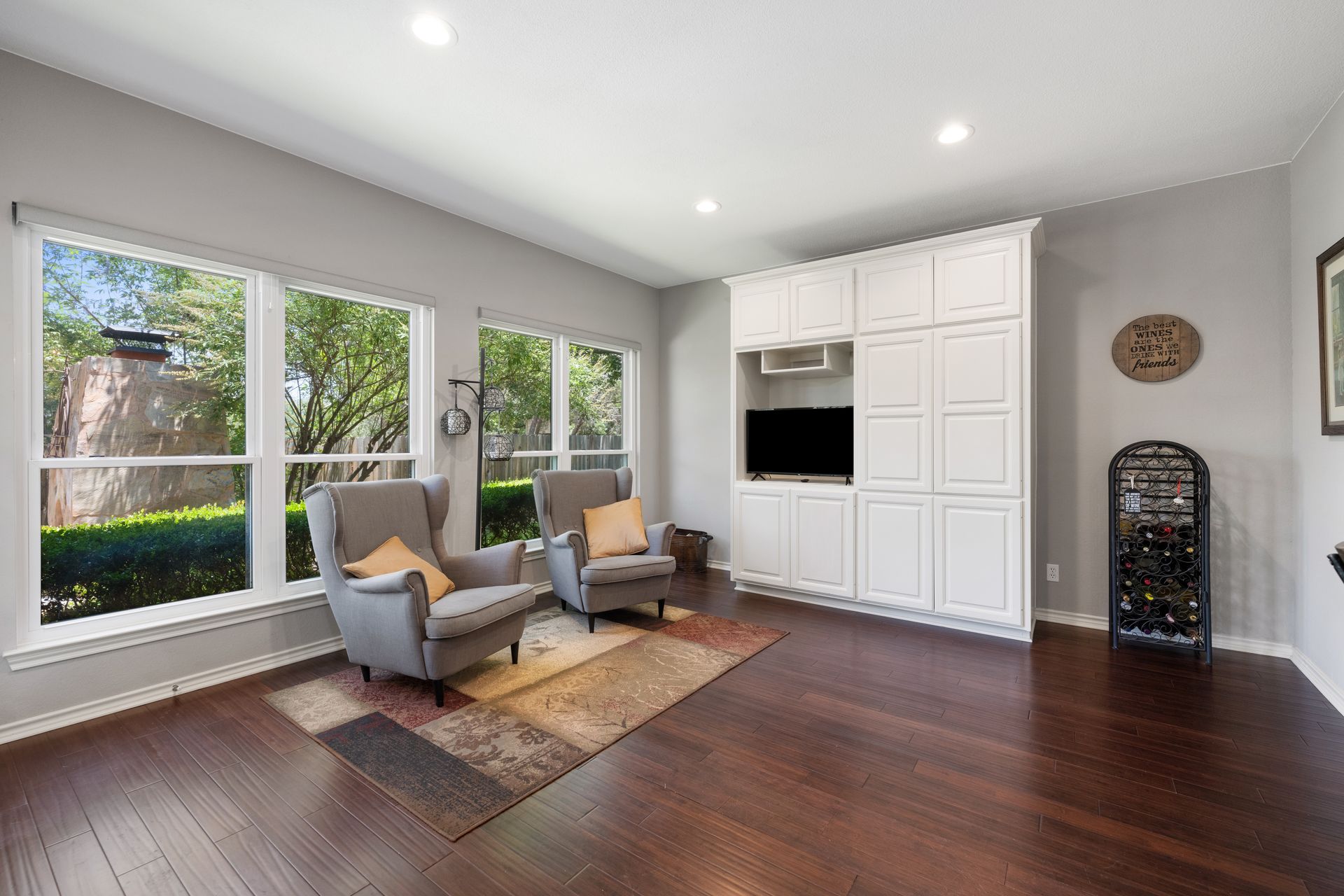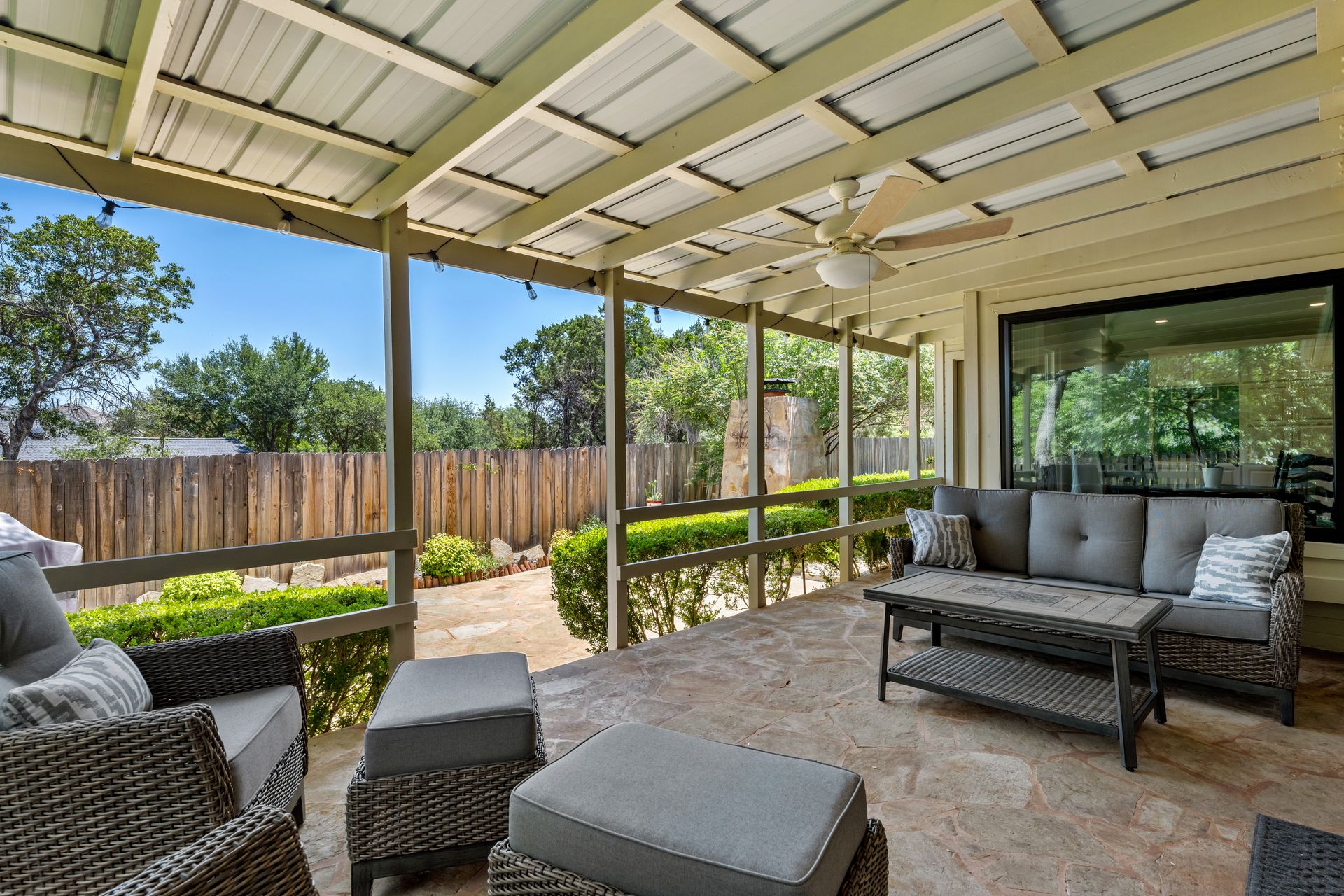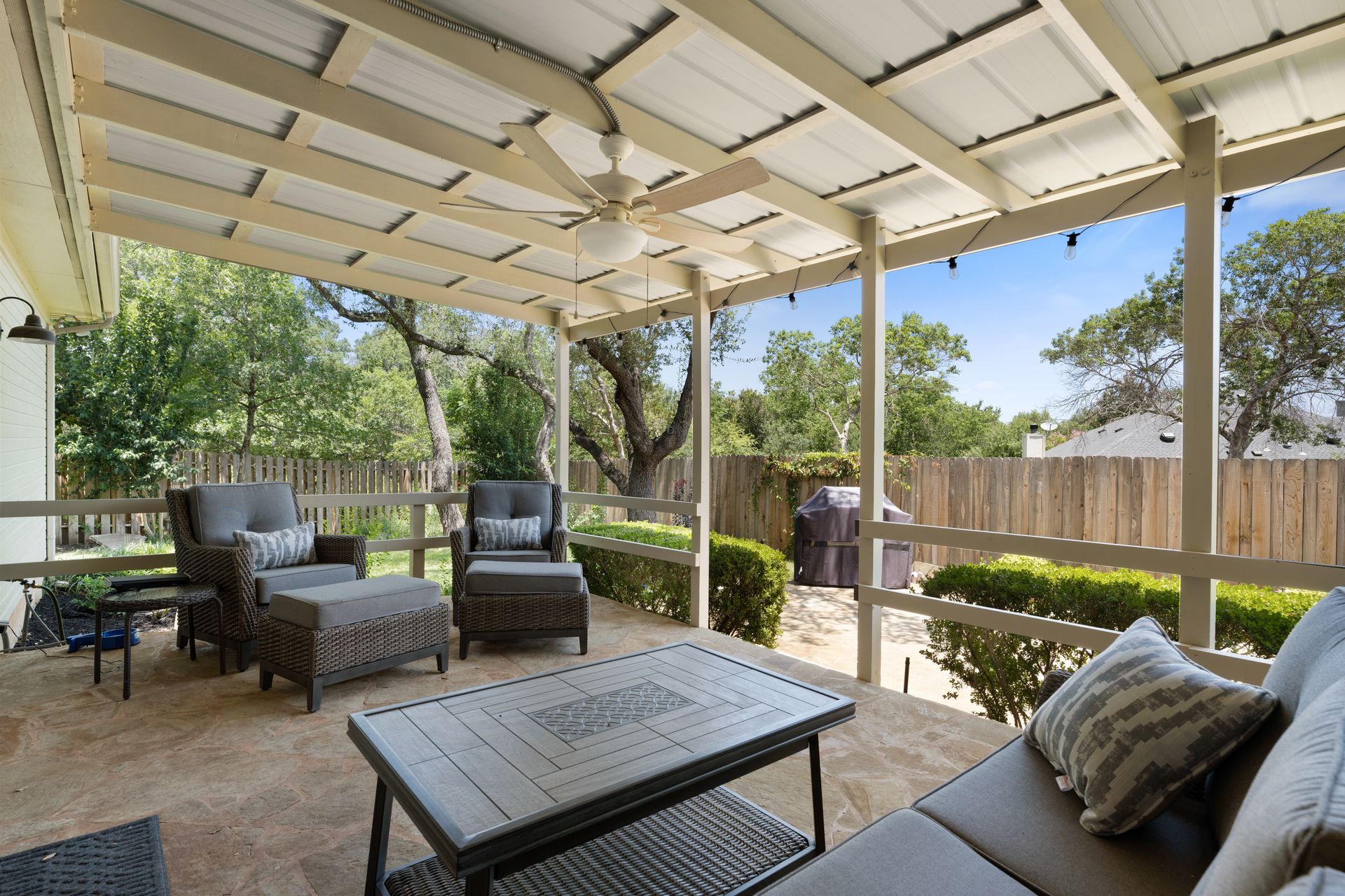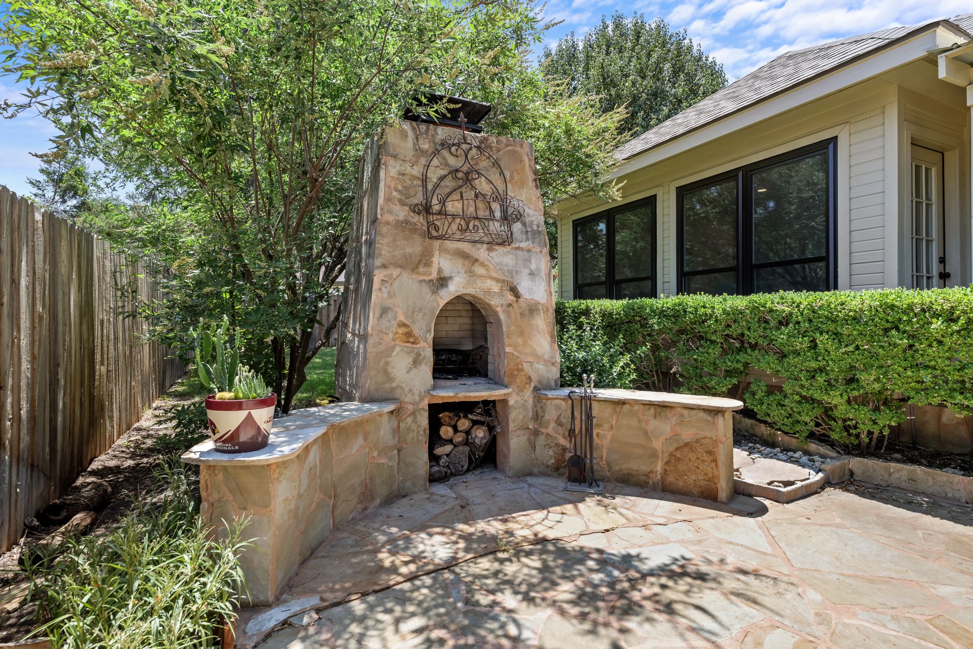 This charming, single-story three bedroom, two full and one-half-bath home is tucked in a quiet cul-de-sac in Lakeway that sits on a spacious lot with privacy. Home features wood floors, an updated kitchen with granite countertops, subway tile backsplash, gas cooking, a breakfast bar, an eat-in kitchen and a formal dining area open to the living room. The kitchen is open to another living area with a built-in cabinet. The primary room offers high ceilings and an ensuite with a garden tub and separate shower, double vanities and a large walk-in closet. There is a door leading out to a private sitting area perfect for a hot tub or private space. The home offers a beautiful covered outdoor living space, with an outdoor fireplace. This property is surrounded by gorgeous live oaks with room for a pool, garden and more. All the windows have been updated. Located near Lakeway City Park, Cross Water Marina, hike and bike trails and the Hamilton Green Belt and is in Lake Travis ISD. Move-in ready!