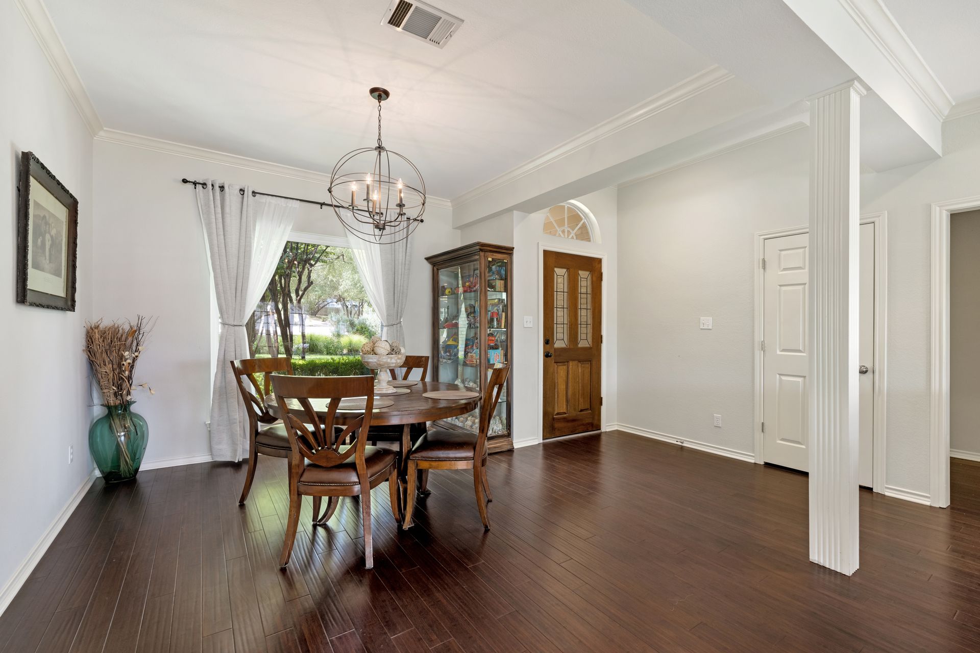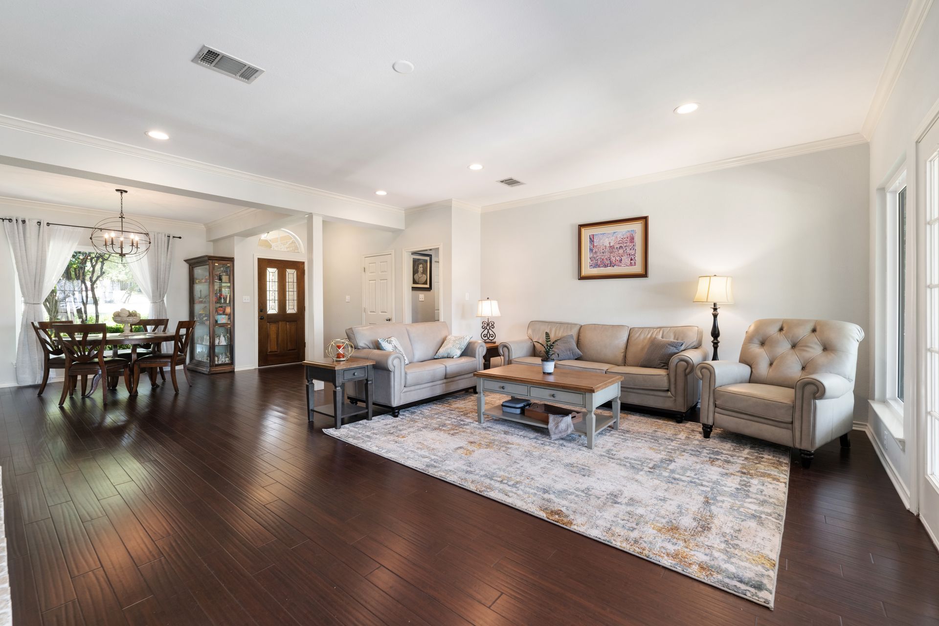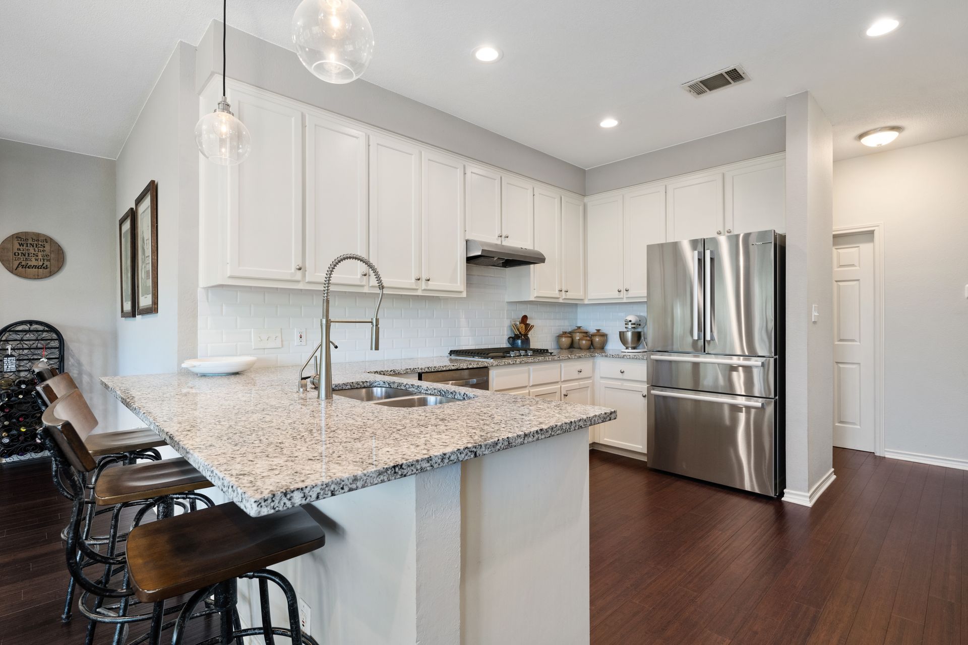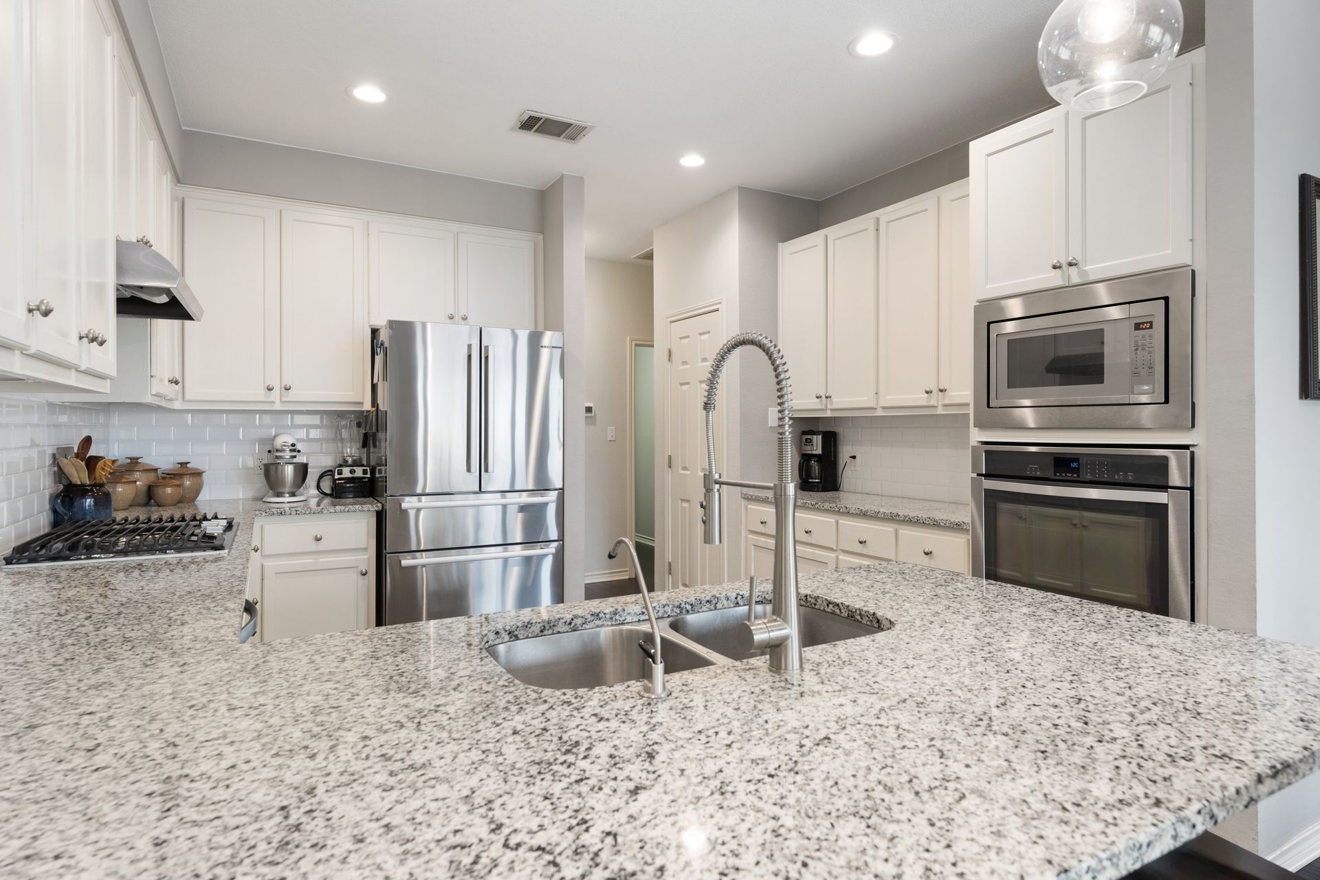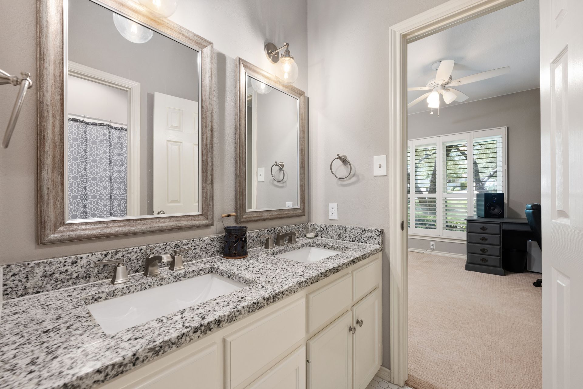 This charming, single-story three bedroom, two full and one-half-bath home is tucked in a quiet cul-de-sac in Lakeway that sits on a spacious lot with privacy. Home features wood floors, an updated kitchen with granite countertops, subway tile backsplash, gas cooking, a breakfast bar, an eat-in kitchen and a formal dining area open to the living room. The kitchen is open to another living area with a built-in cabinet. The primary room offers high ceilings and an ensuite with a garden tub and separate shower, double vanities and a large walk-in closet. There is a door leading out to a private sitting area perfect for a hot tub or private space. The home offers a beautiful covered outdoor living space, with an outdoor fireplace. This property is surrounded by gorgeous live oaks with room for a pool, garden and more. All the windows have been updated. Located near Lakeway City Park, Cross Water Marina, hike and bike trails and the Hamilton Green Belt and is in Lake Travis ISD. Move-in ready!