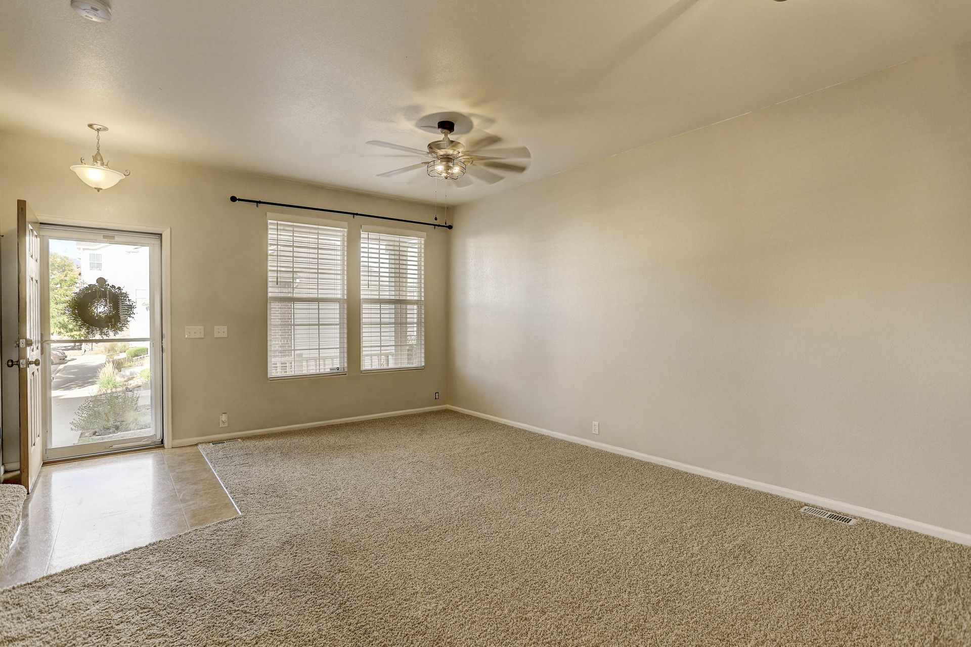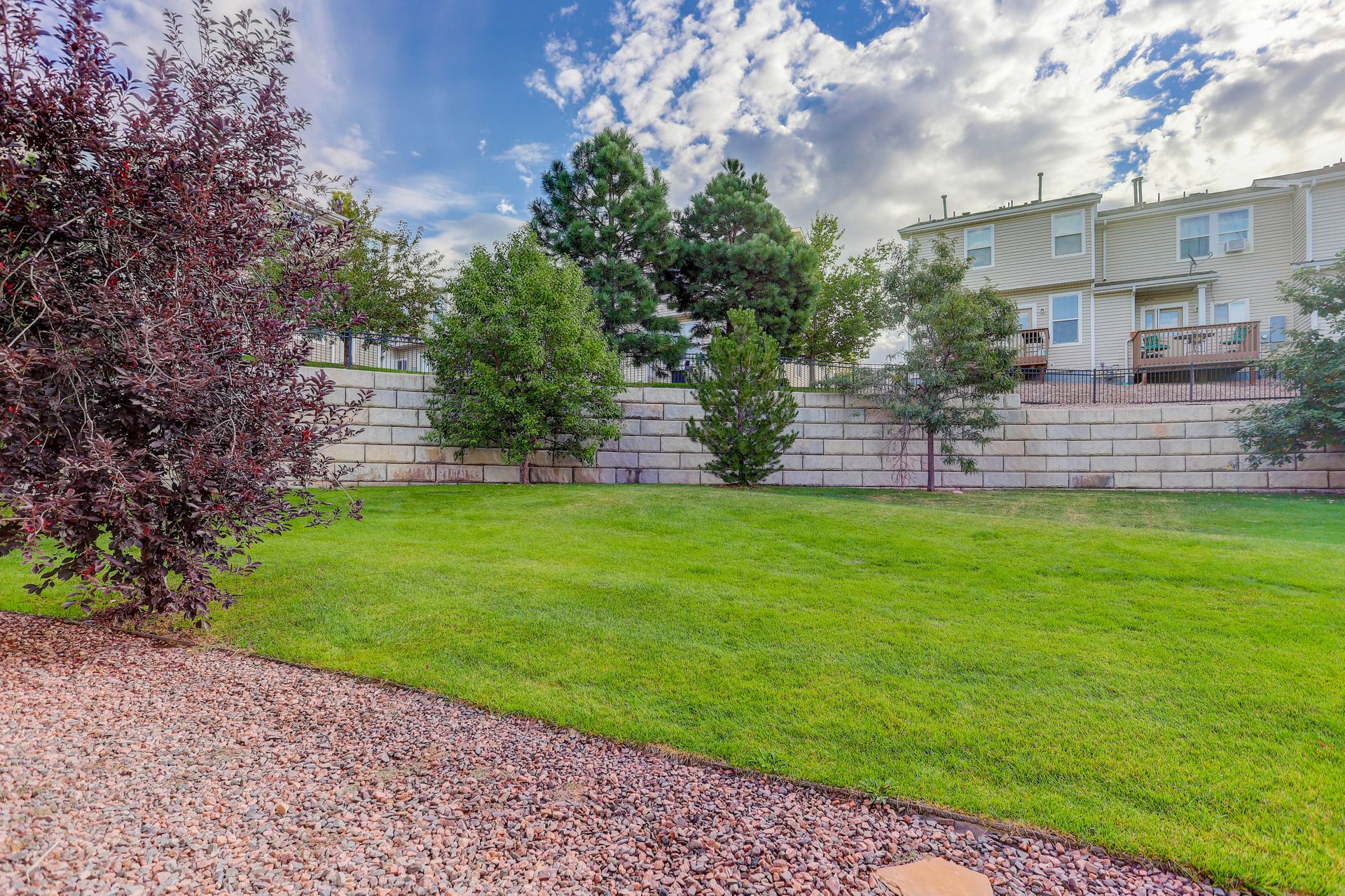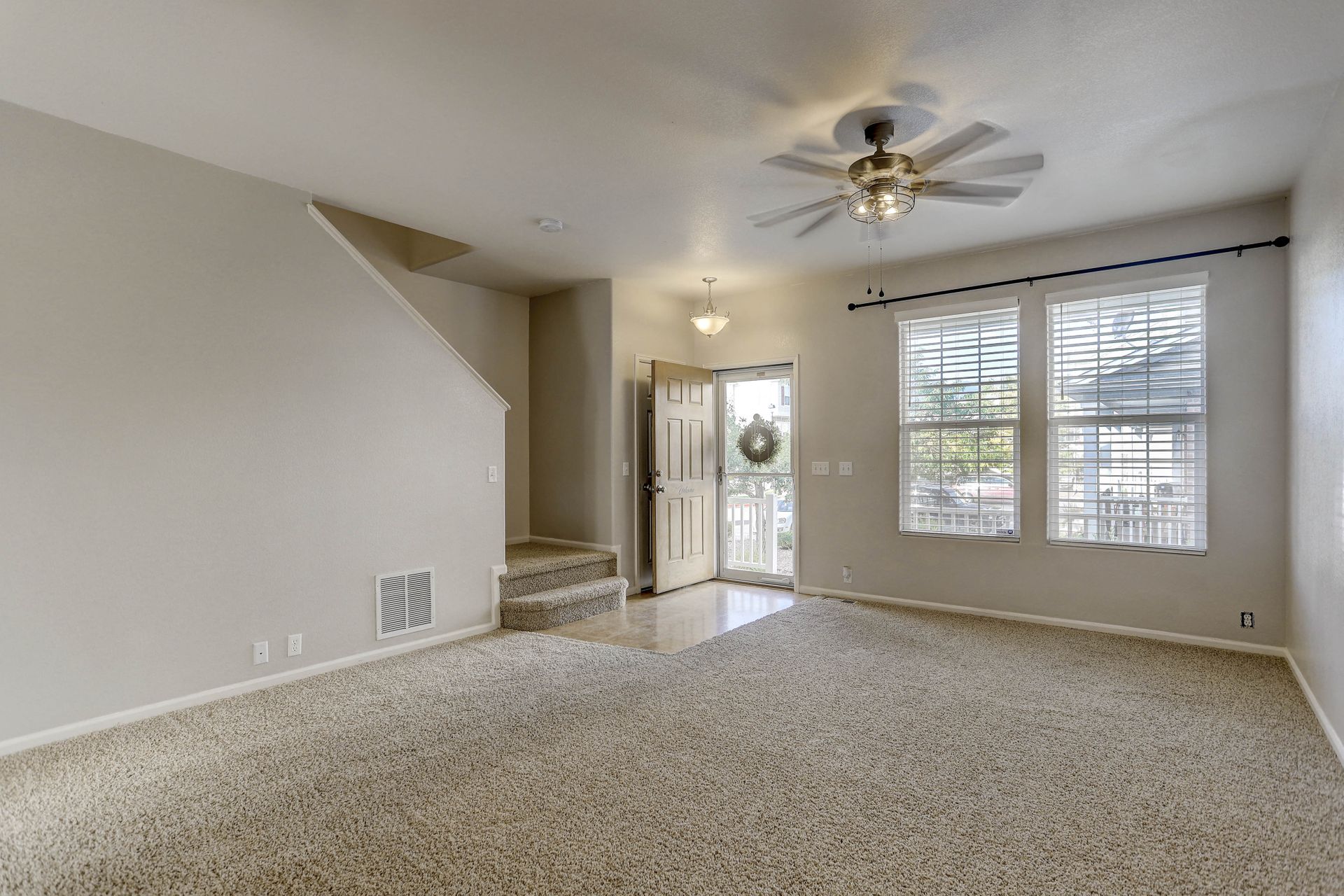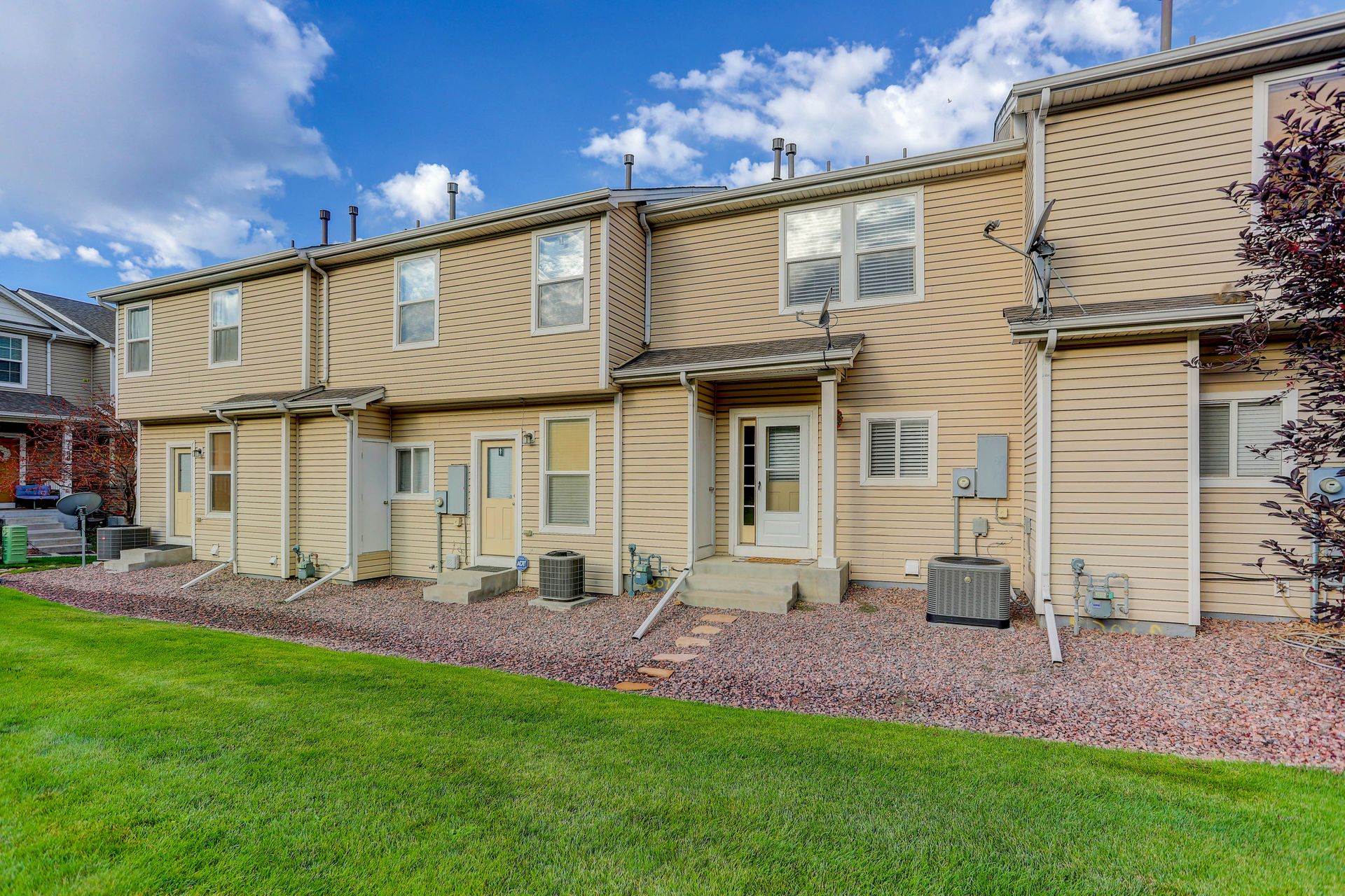 Bright and open two-story townhome backing to a park-like common area! This home has one of the best locations in the complex, is move-in ready, has nine-foot ceilings on the main level and features...14x20 living room with double windows, updated lighting/fan and space for a dining table...sunny eat-in kitchen with ample cabinets, separate pantry, new granite-look counters, stainless steel sink with new faucet, all appliances including smooth top electric range and back door to the common area...and convenient powder bath with pedestal sink and designer mirror. Upstairs, you'll find the 10x14 primary bedroom with charming, vaulted ceilings, Peak views, ceiling fan, large walk-in closet and access door to the full hall bath with easy-care shower enclosure...10x14 Second bedroom with walk-in closet and views of the trees in the common area...and laundry with included washer/dryer and extra shelving. Outside, you'll enjoy the covered front porch and the 1/4 mile to the neighborhood James H. Smith Sr. park and playground. Great location with only a 10 minute drive to either Memorial Park or Quail Lake Park...12 minute drive to Fort Carson Gate 4...15 minute drive to the restaurants, retail and entertainment around the World Arena! Central AC, too!