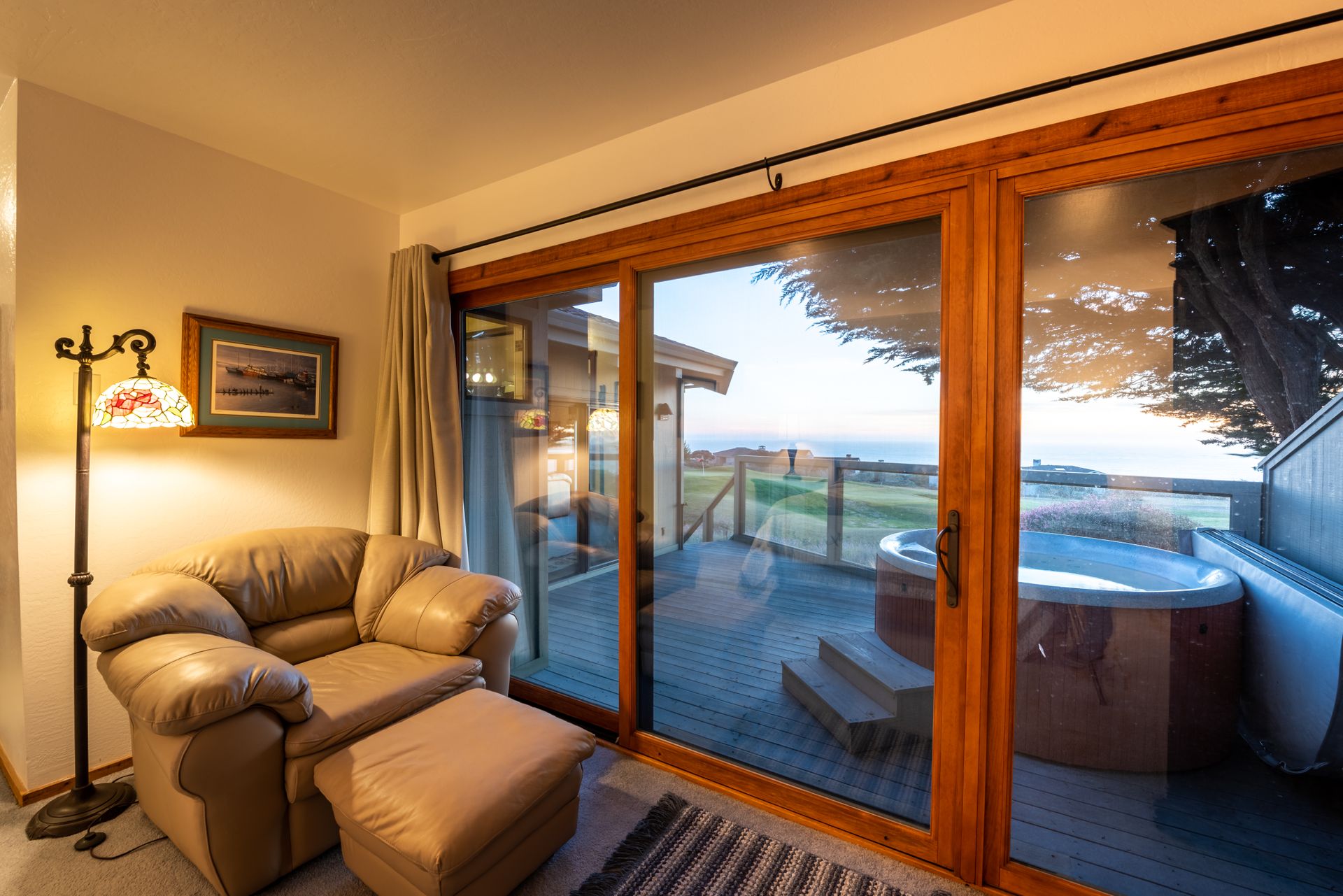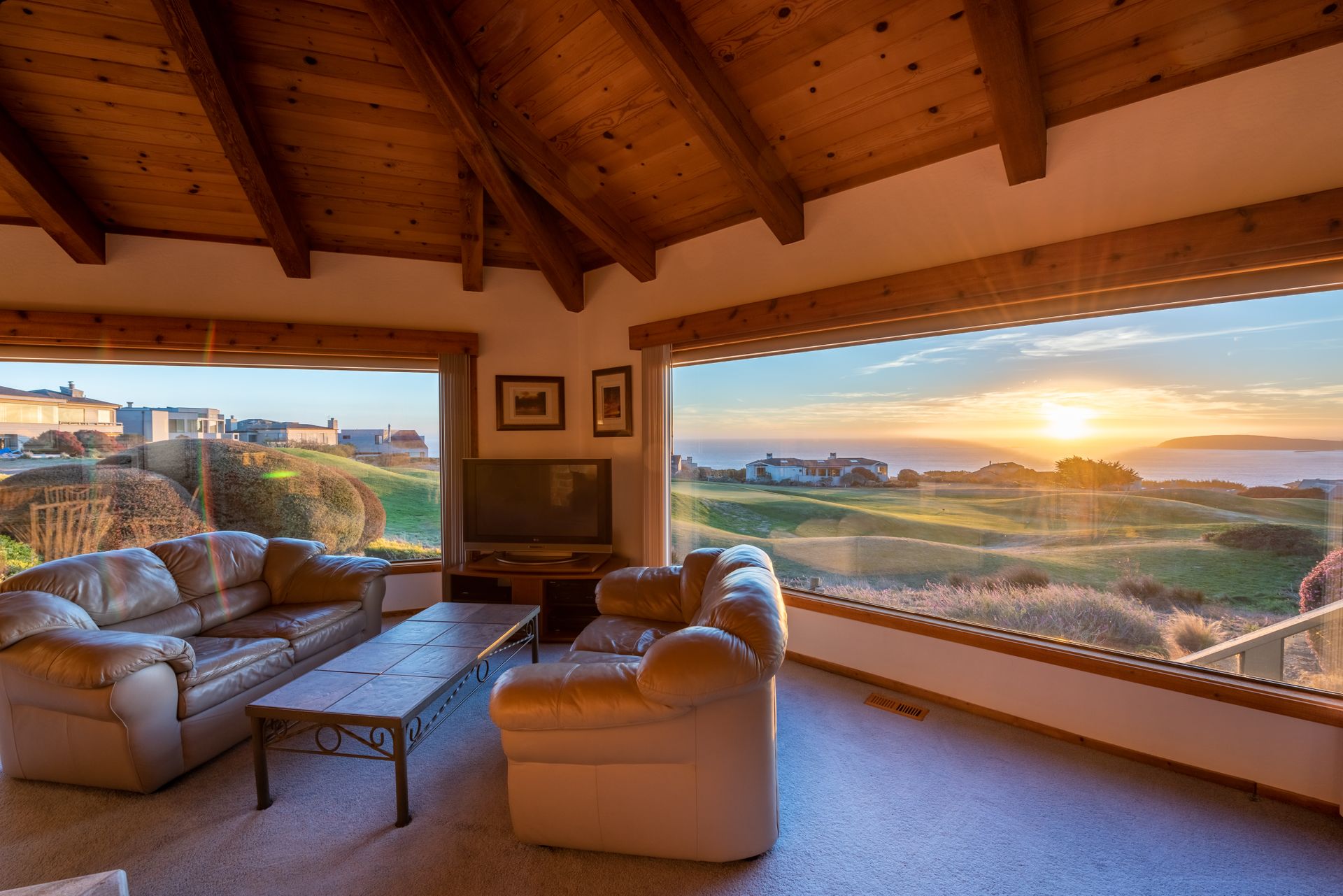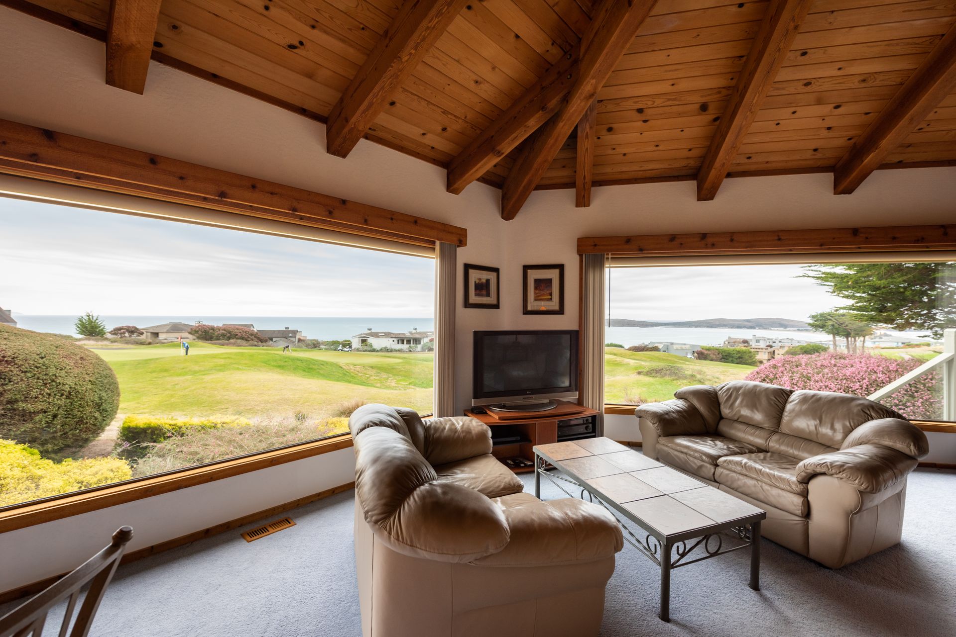 Green grass to Blue ocean. See it all from this well maintained home overlooking 2nd green and fairway of Bodega Harbour Golf Links to spectacular views of Doran Beach, Bay, and Bodega Head. Hot tub on ocean view deck. On mostly 1 level with 3 bedrooms and 3 baths, this is a rare opportunity to enjoy coastal living at it finest. With all amenities of Bodega Harbour, including club house with beach access, championship golf links, putting greens, tennis courts, sport/basketball court, bocce ball, gym, swimming pool, men's and women's lockers and saunas, children's playground and member rates at Blue Water Bistro Restaurant.