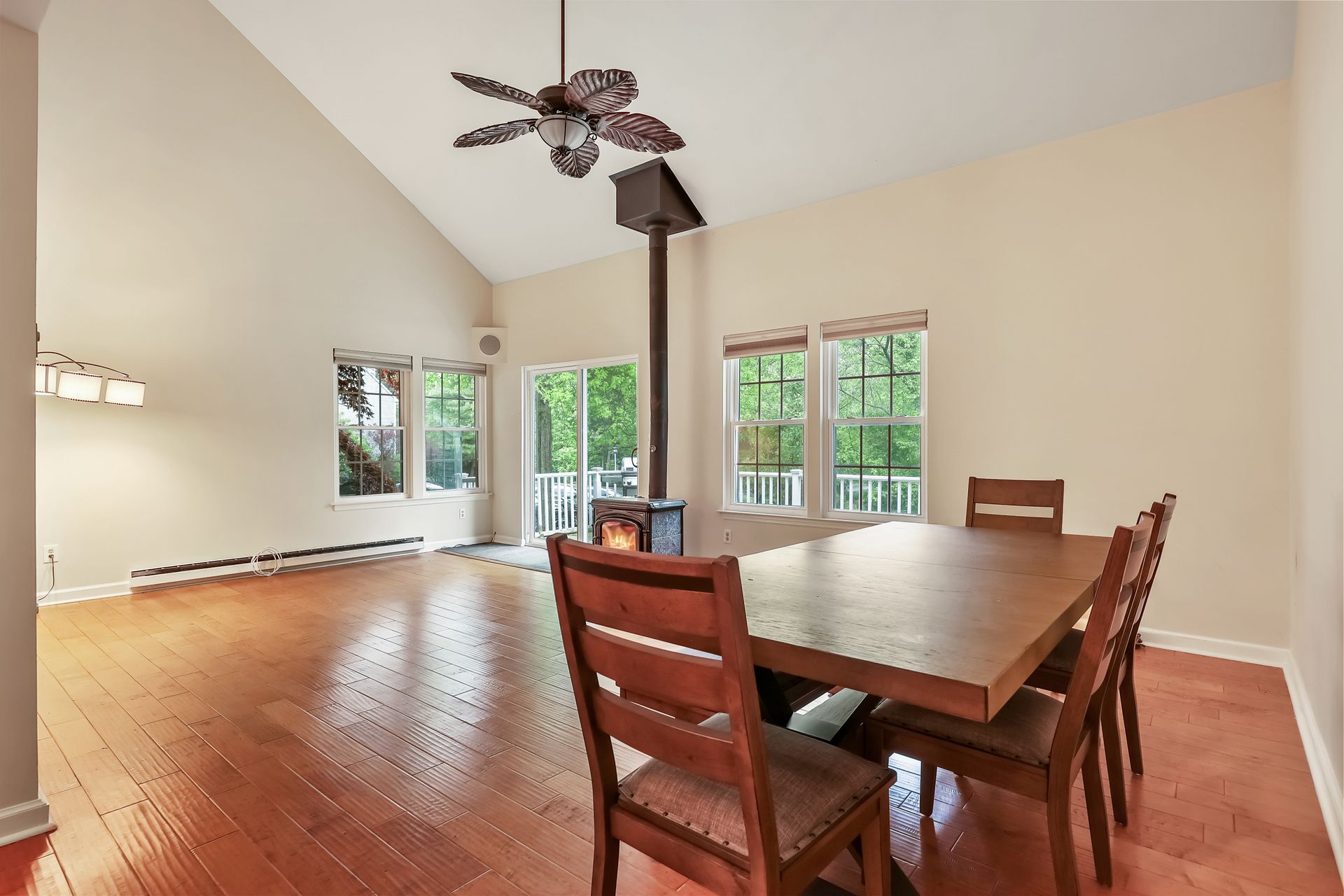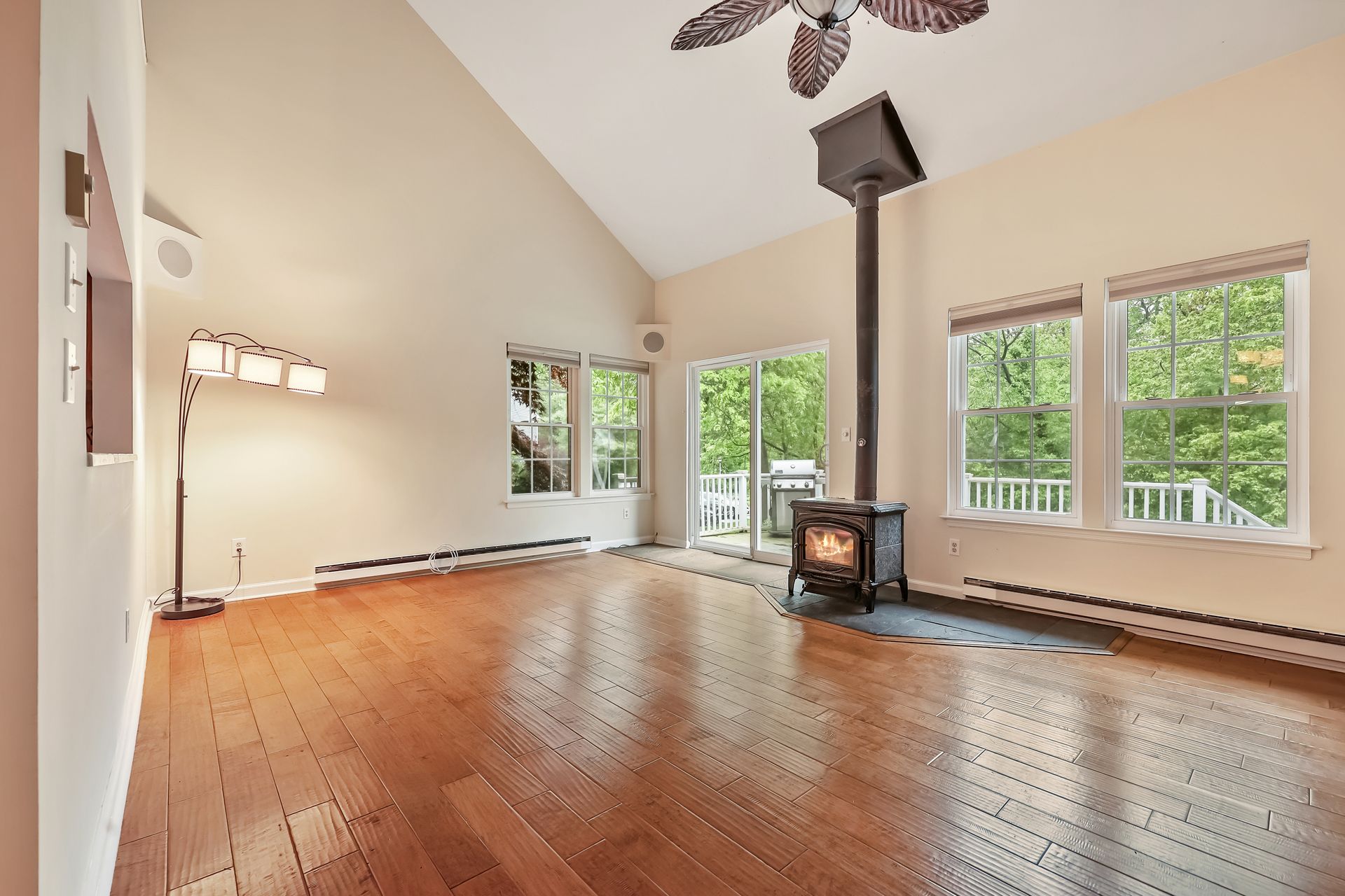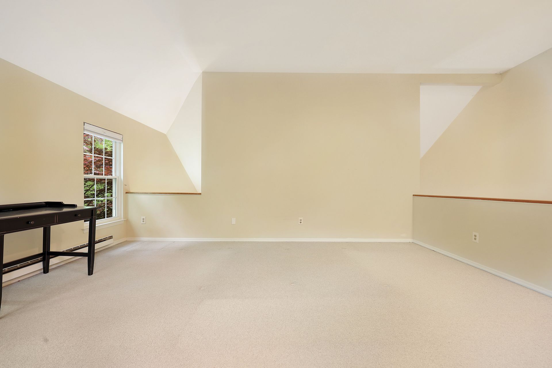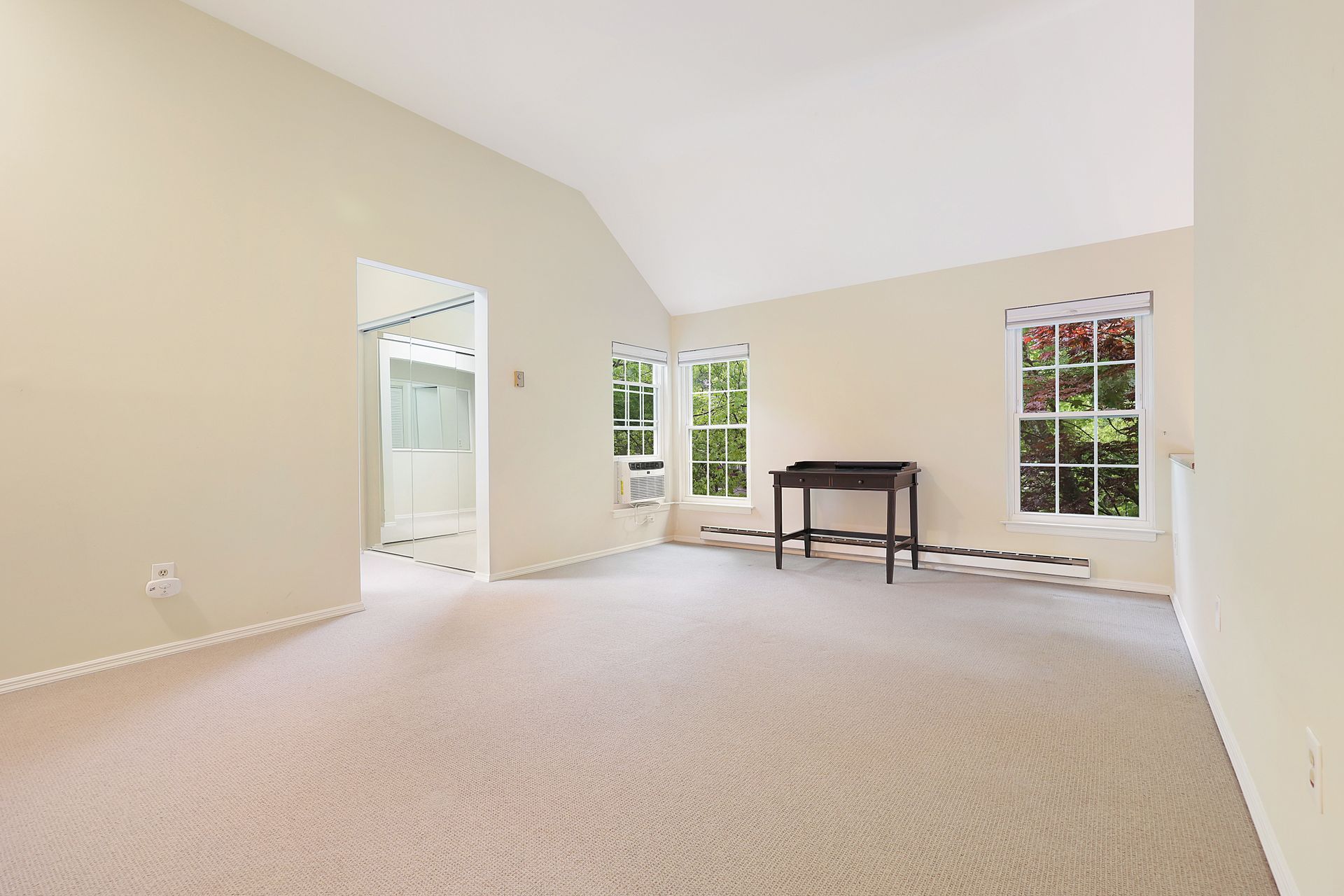 Spacious end unit in Katonah Hills complex featuring pool, tennis, gardening and playground. The entry leads to the living room and dining room with cathedral ceilings. Sliding glass doors take you to the deck overlooking the green lawn. The first floor also has a powder room with a stacked washer/dryer, and a second room for an additional bedroom or work-at-home space. The second floor leads to the main bedroom suite with three large closets, a sitting/dressing alcove and a full bath with a tub/shower. Two designated parking spots marked #20 are included. Peaceful setting only 1.2 miles to Katonah train, shops and restaurants.
