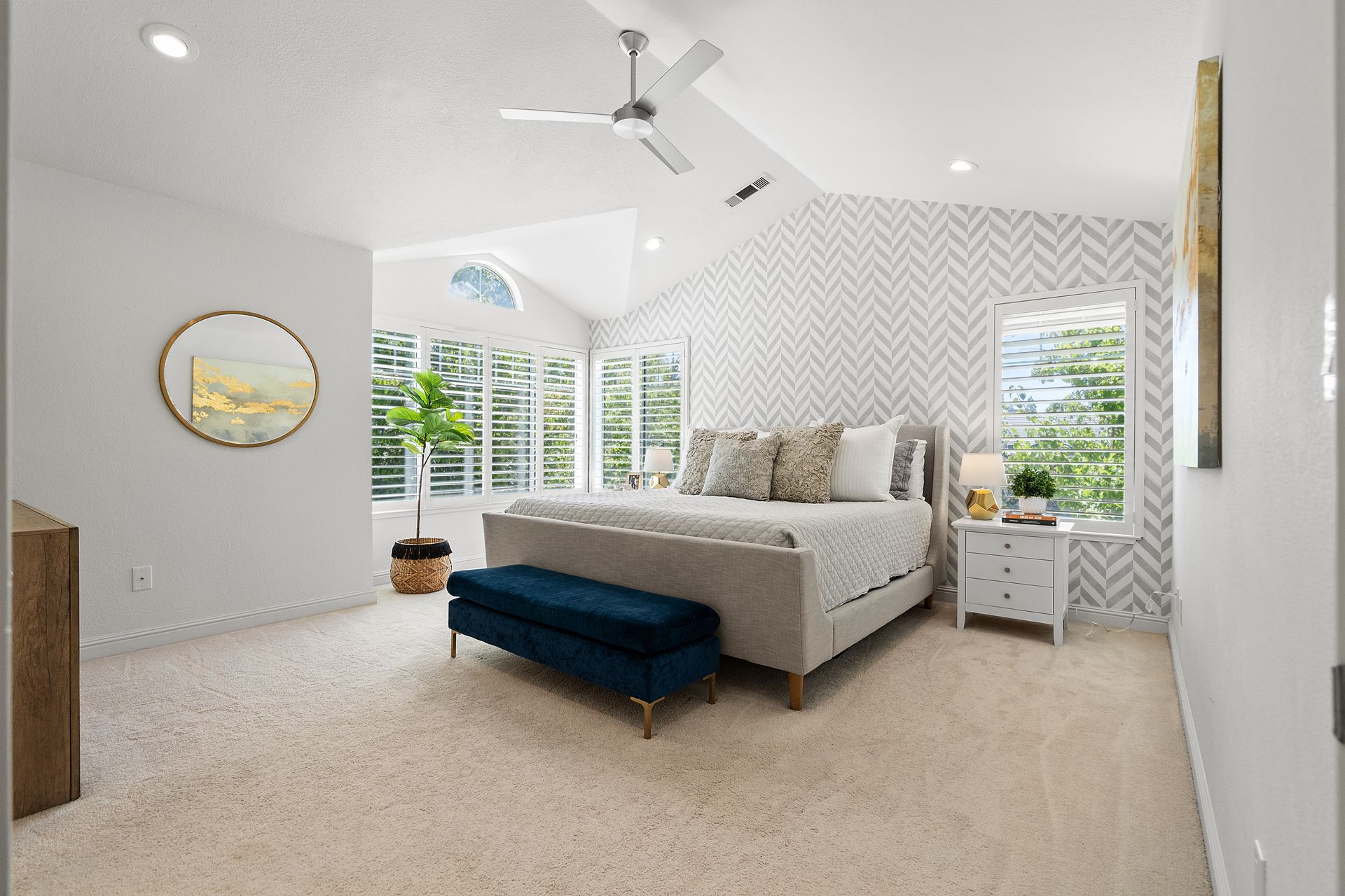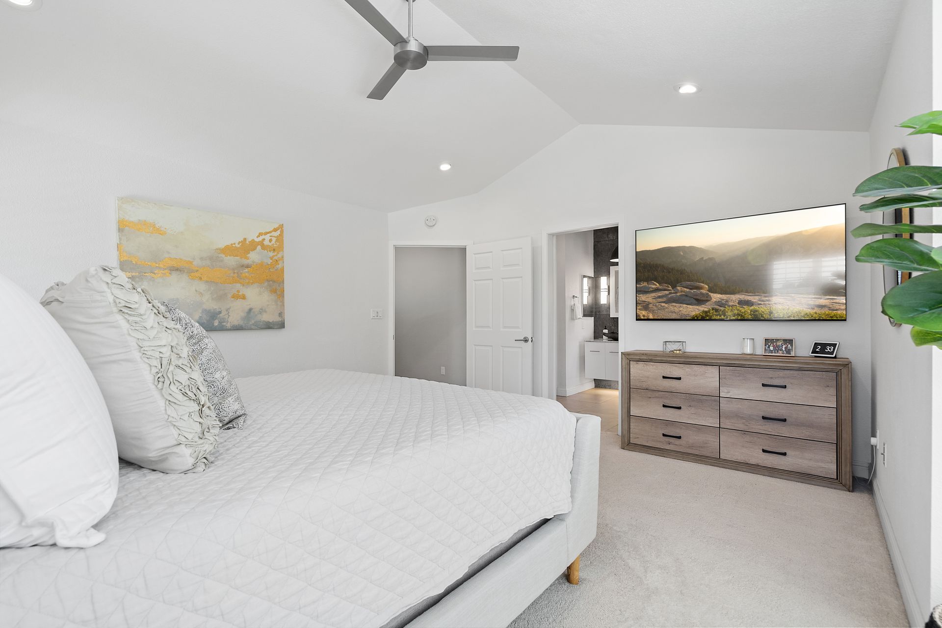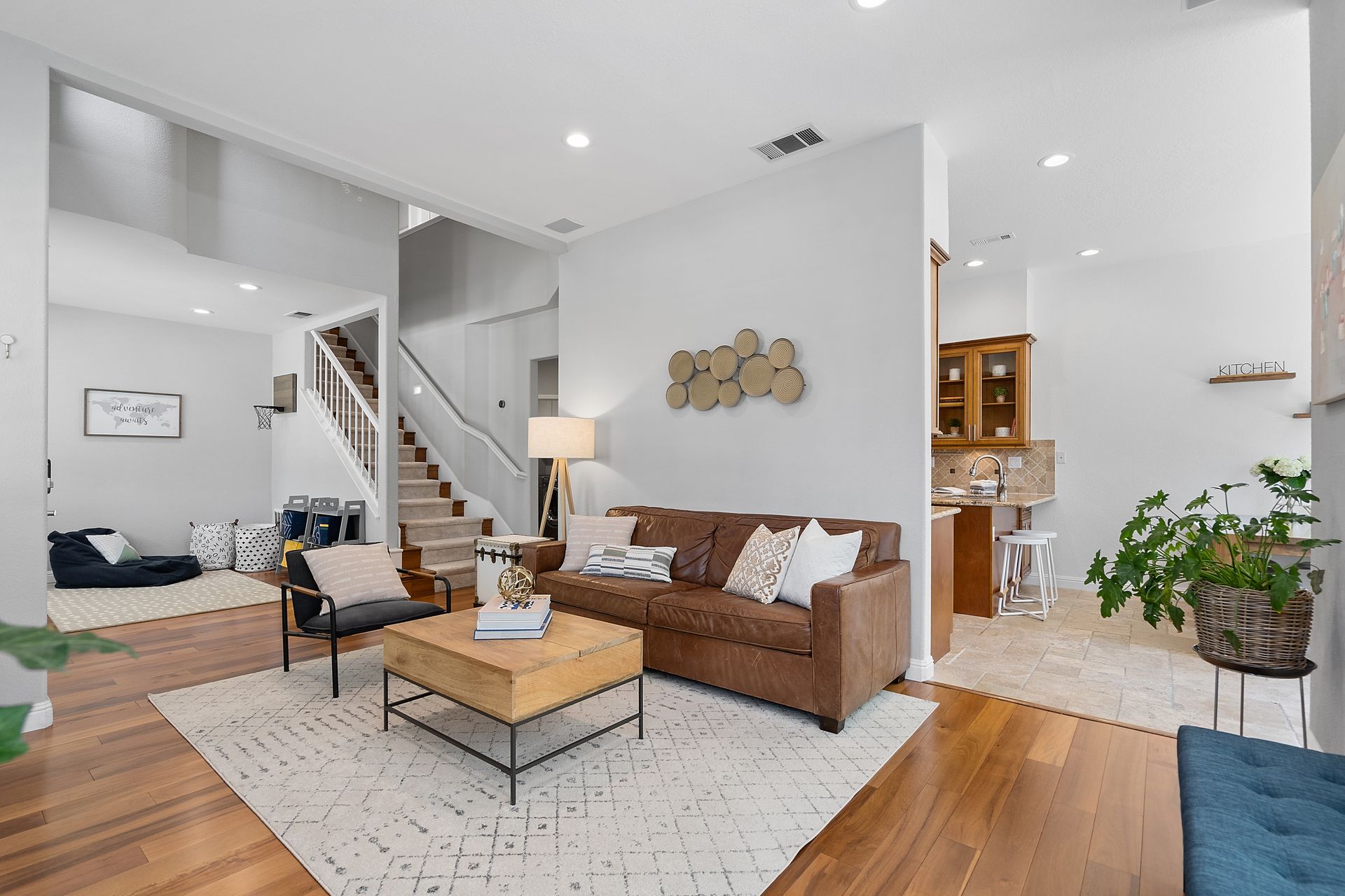 Updated with style and drenched in natural light this end-unit townhome features an unbeatable location and updates throughout! This gorgeous home boasts vaulted ceilings, open and airy living spaces, a backyard retreat, two EV chargers, and over $150k+ in thoughtful upgrades. Enjoy effortless entertaining with the seamless flow between the living spaces, kitchen and dining areas. The kitchen features stainless-steel appliances, granite countertops and overlooks the sun-drenched backyard complete with a large patio and turf play area. Upstairs, each room has its own unique character and charm. The spacious primary suite is a sanctuary with vaulted ceilings, sun-filled windows, a walk-in closet, and a spa-like bathroom complete with a soaking tub, dual vanities, and walk-in shower. Three additional bedrooms provide ample space and flexibility.