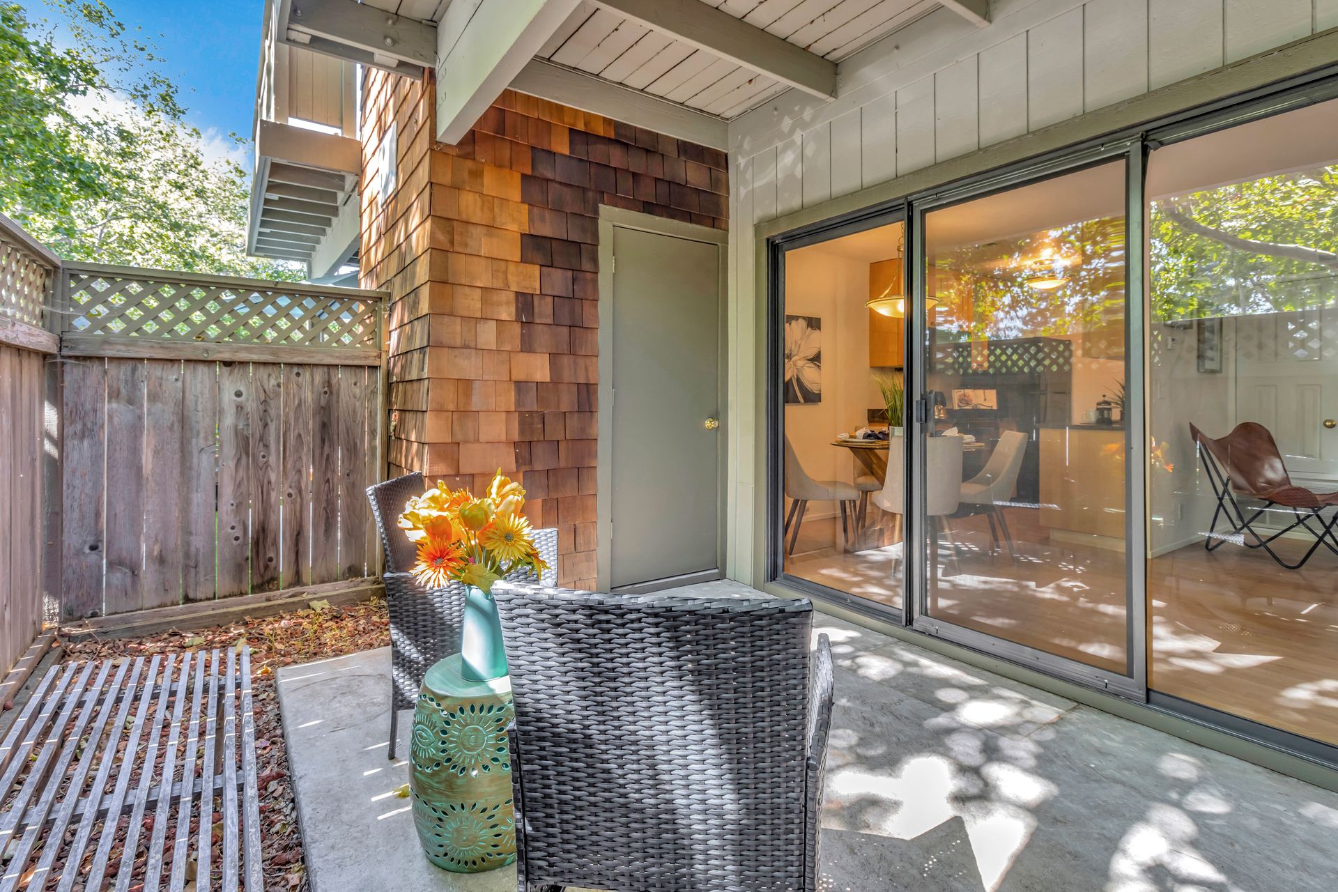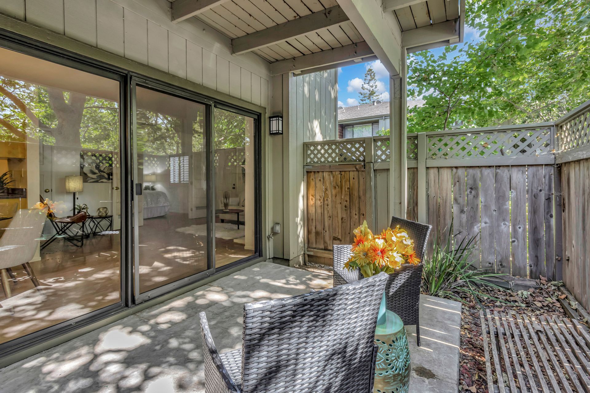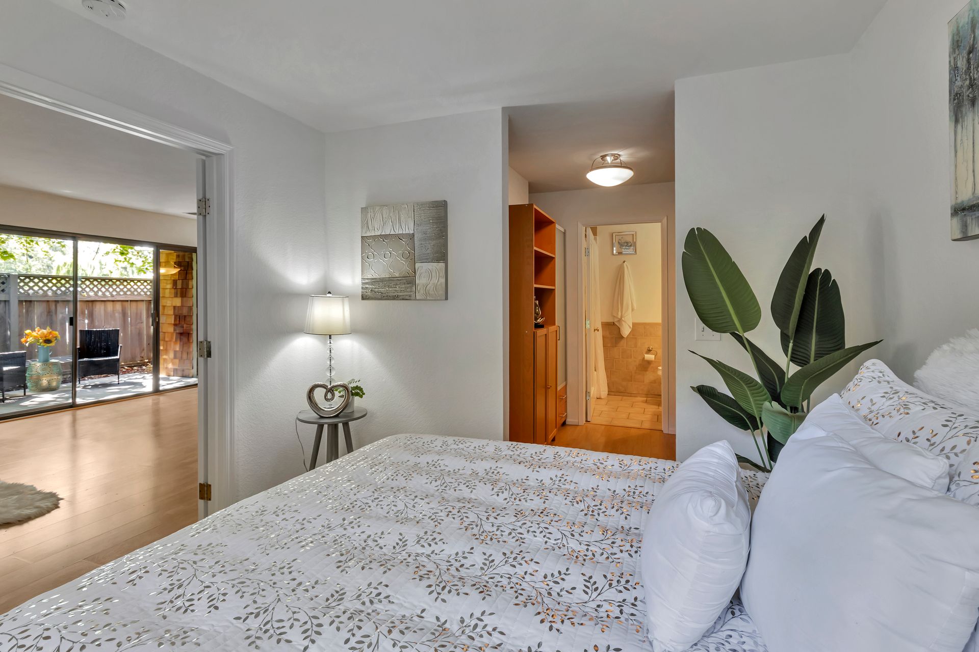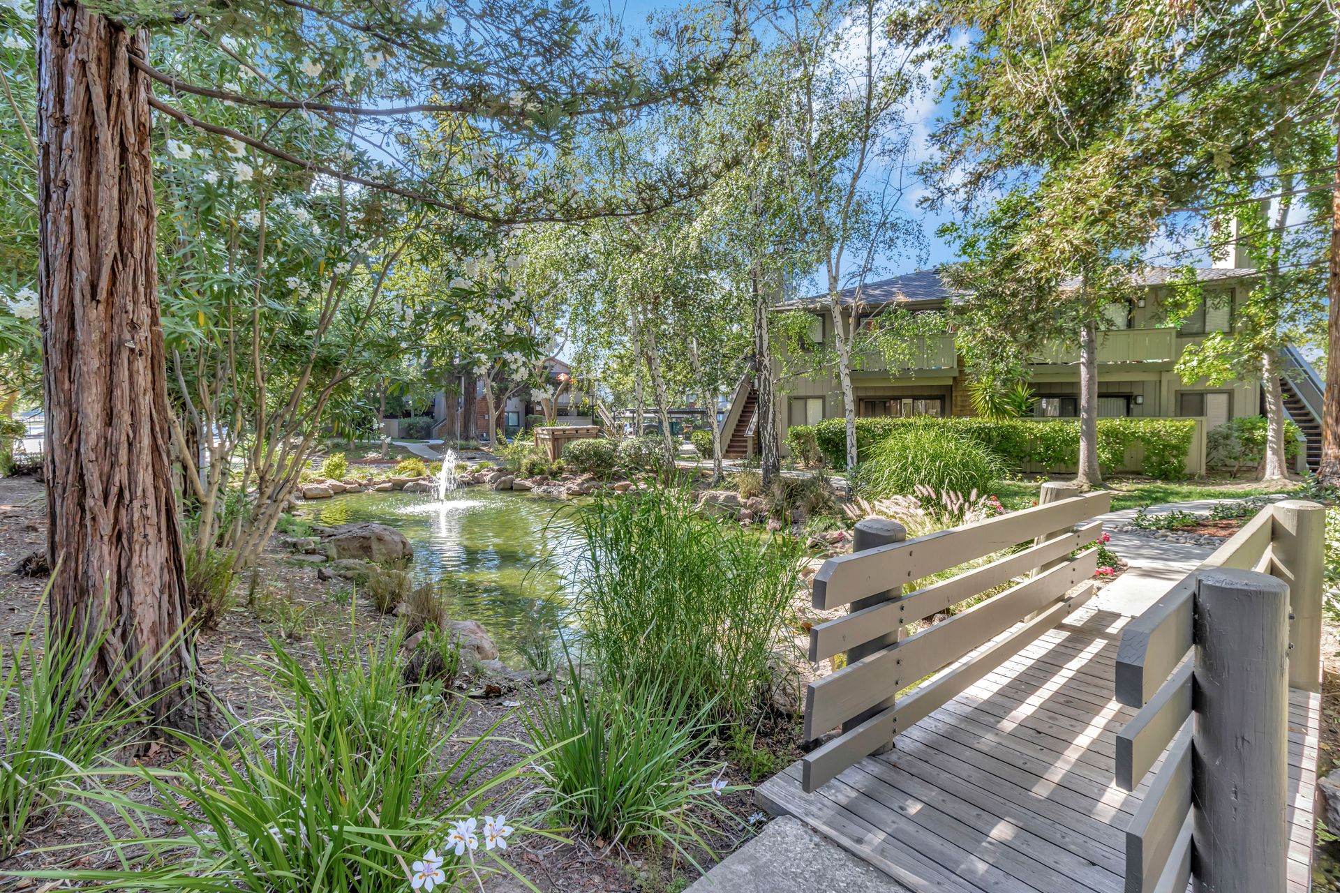 Gorgeous Ground Level End Unit located in the highly desirable Lakeview Terrace Development close to Almaden Lake Park. This spacious one bedroom / one bath condo is move-in ready with open living and dining space plus a cozy inviting fireplace. Updated Kitchen Cabinets with lovely Granite Counters, Micro Range/Oven and Refrigerator included. French doors open to the large primary bedroom suite with custom plantation shutters and its own private remodeled bath with tub. Custom built in closet storage with drawers too. Indoor laundry area with stackable washer/dryer included. Freshly painted throughout. All this plus your own spacious patio with additional storage under the redwood trees. Enjoy all recreational activities including pool/spa, clubhouse, bocce ball, and a 3.9 mile fitness trail hike at Los Alamitos Creek Trail. Conveniently located near Oakridge Mall, Whole Foods, Trader Joe's, Costco, and Highways 85 and 87.