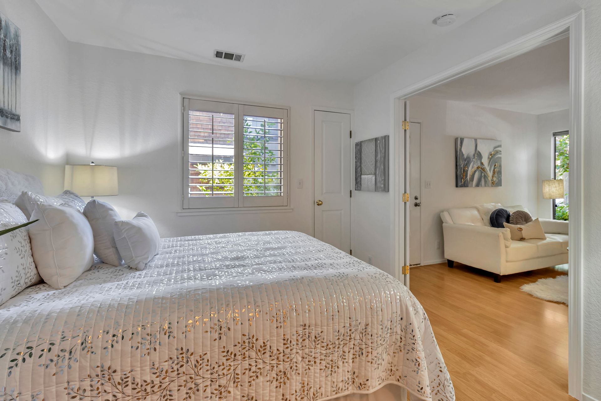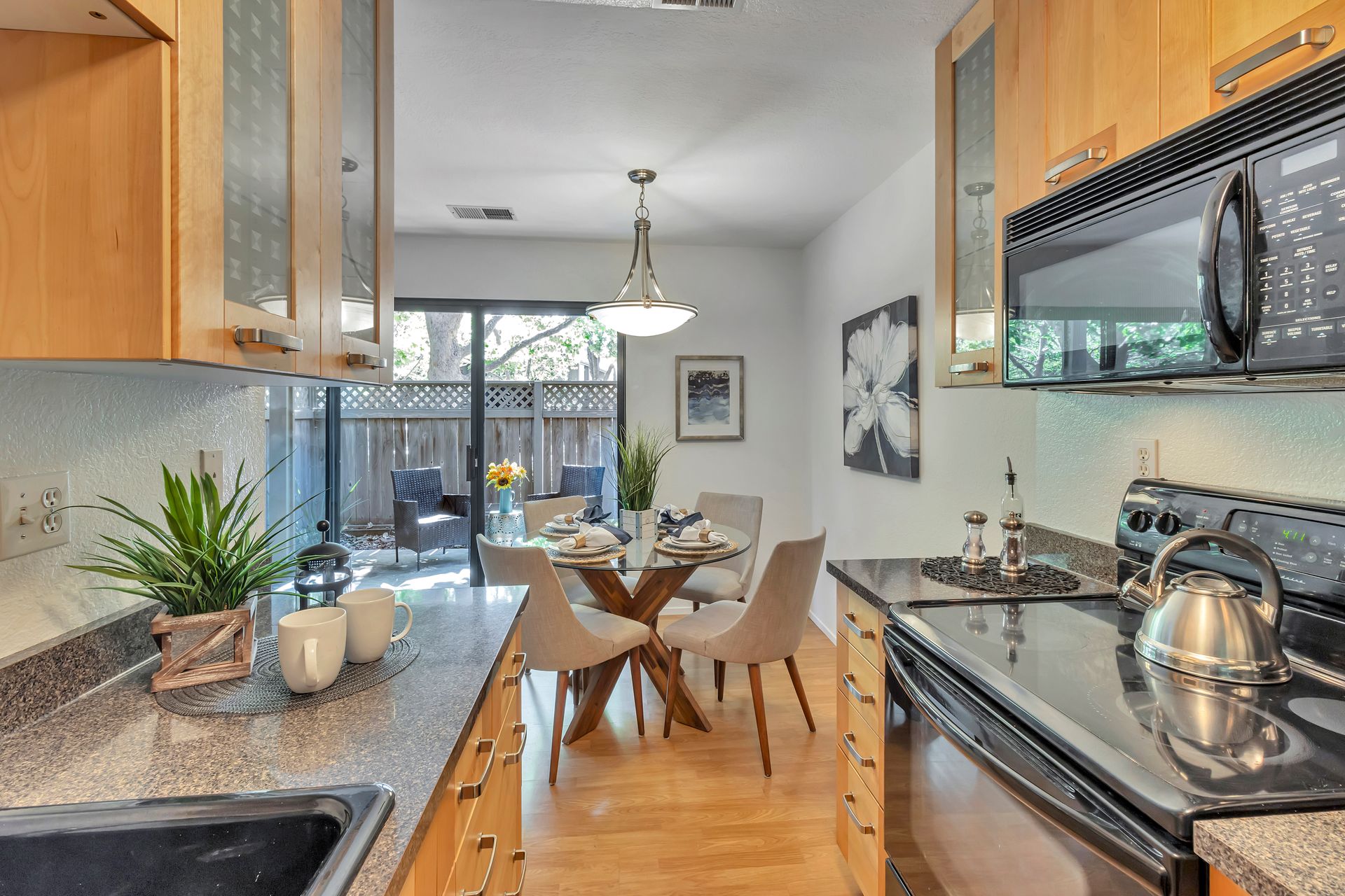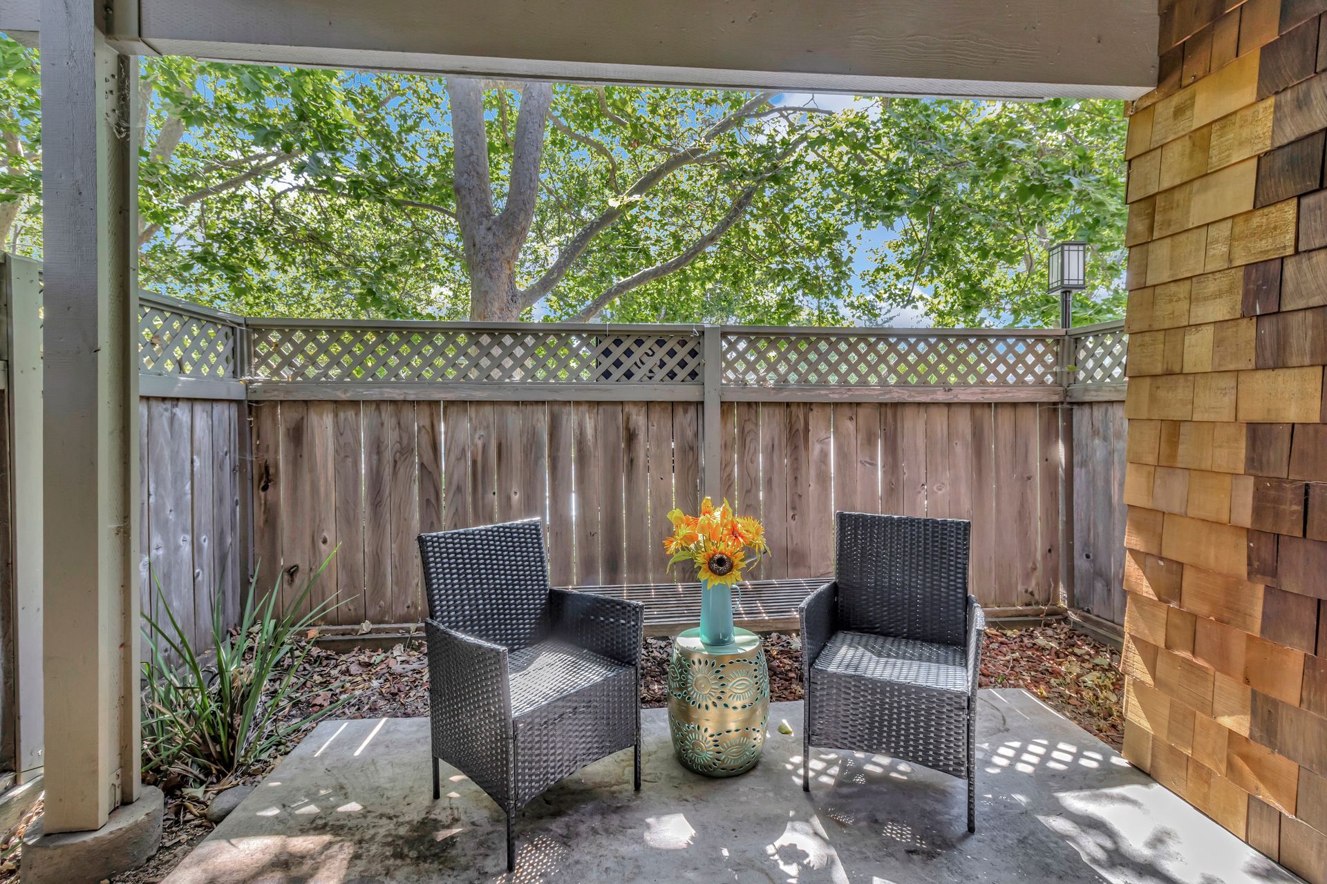 Gorgeous Ground Level End Unit located in the highly desirable Lakeview Terrace Development close to Almaden Lake Park. This spacious one bedroom / one bath condo is move-in ready with open living and dining space plus a cozy inviting fireplace. Updated Kitchen Cabinets with lovely Granite Counters, Micro Range/Oven and Refrigerator included. French doors open to the large primary bedroom suite with custom plantation shutters and its own private remodeled bath with tub. Custom built in closet storage with drawers too. Indoor laundry area with stackable washer/dryer included. Freshly painted throughout. All this plus your own spacious patio with additional storage under the redwood trees. Enjoy all recreational activities including pool/spa, clubhouse, bocce ball, and a 3.9 mile fitness trail hike at Los Alamitos Creek Trail. Conveniently located near Oakridge Mall, Whole Foods, Trader Joe's, Costco, and Highways 85 and 87.