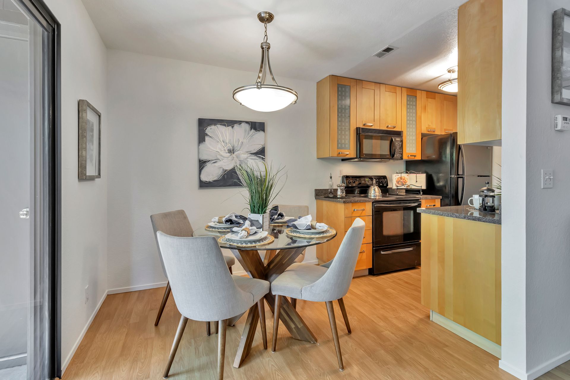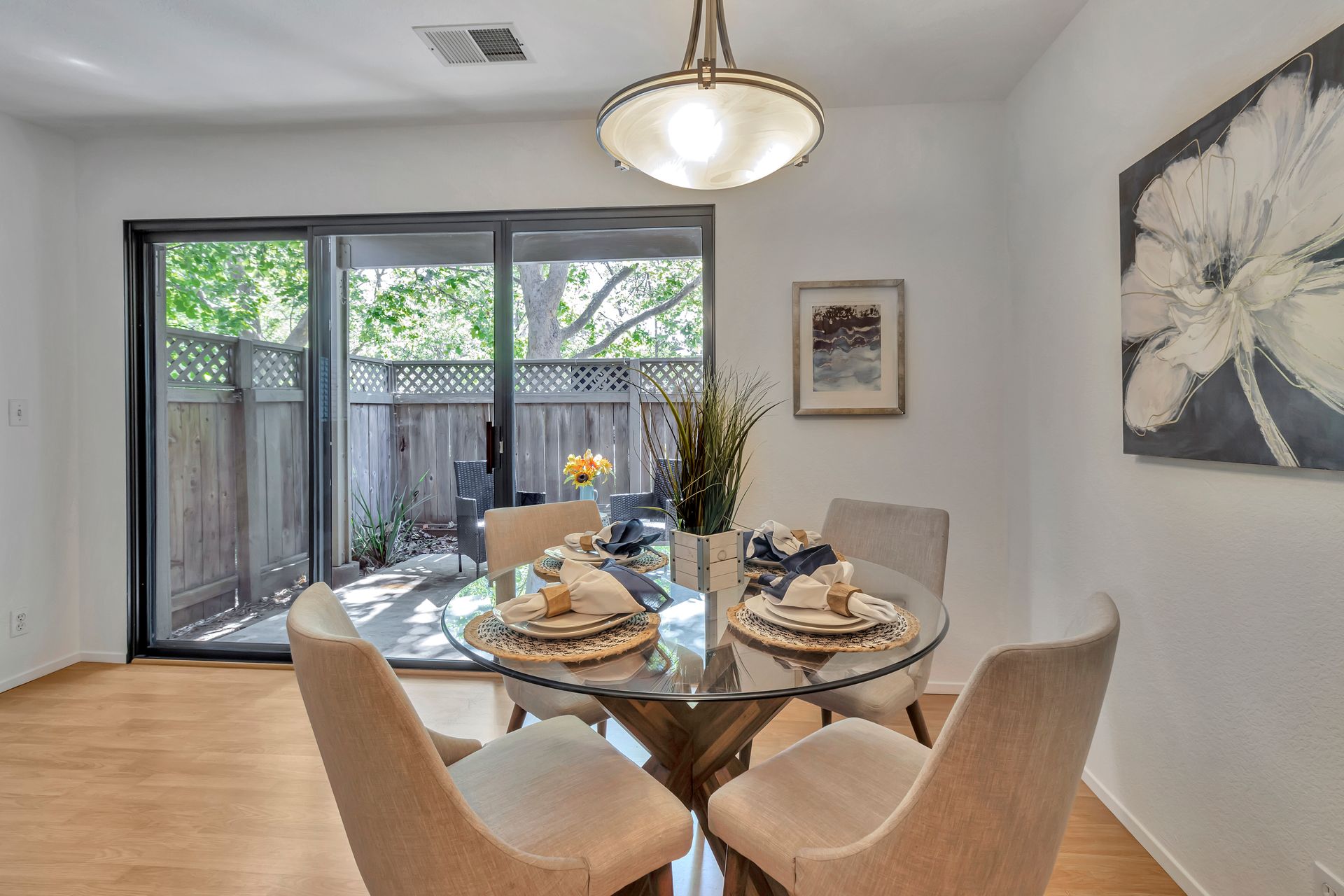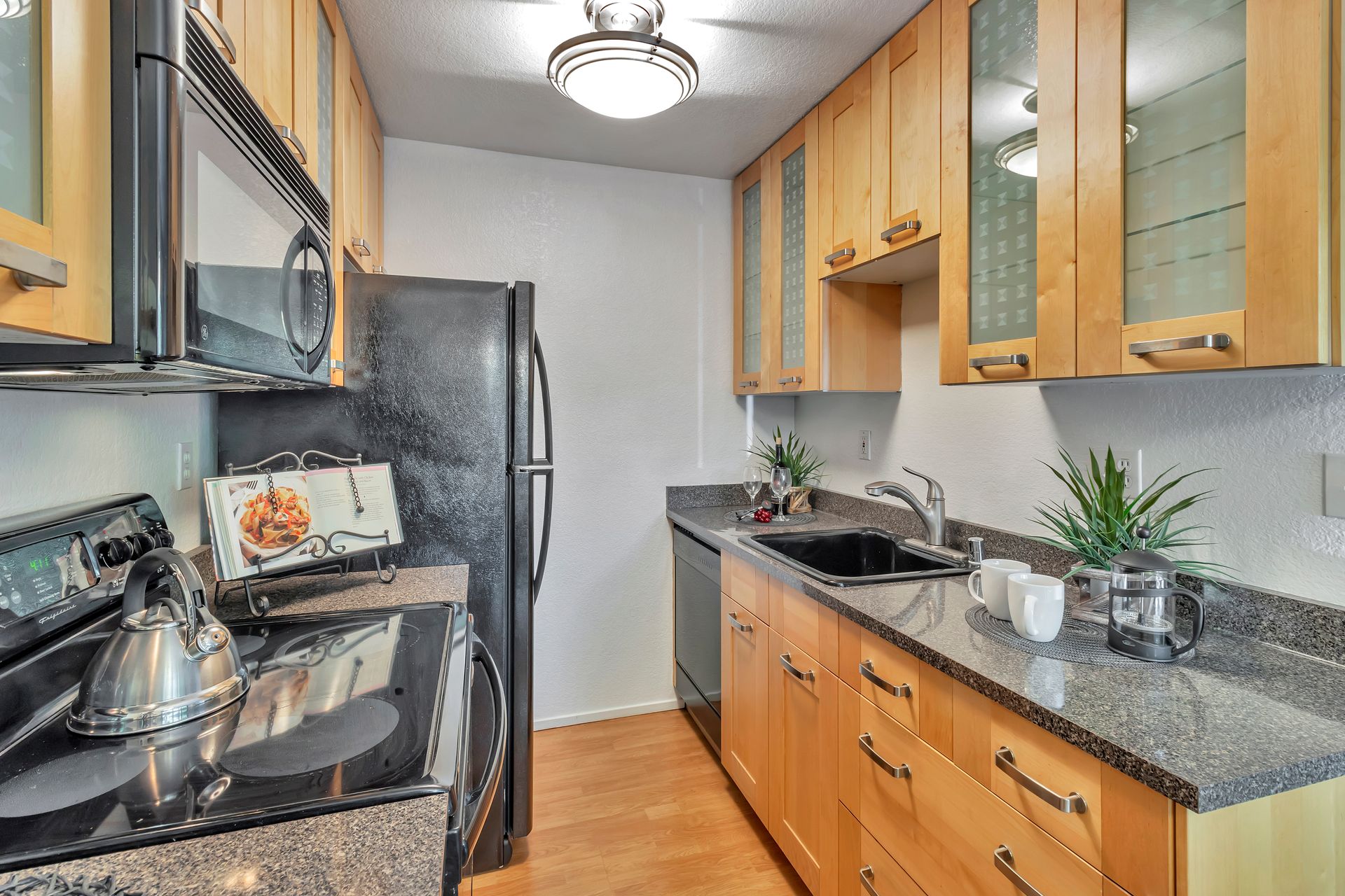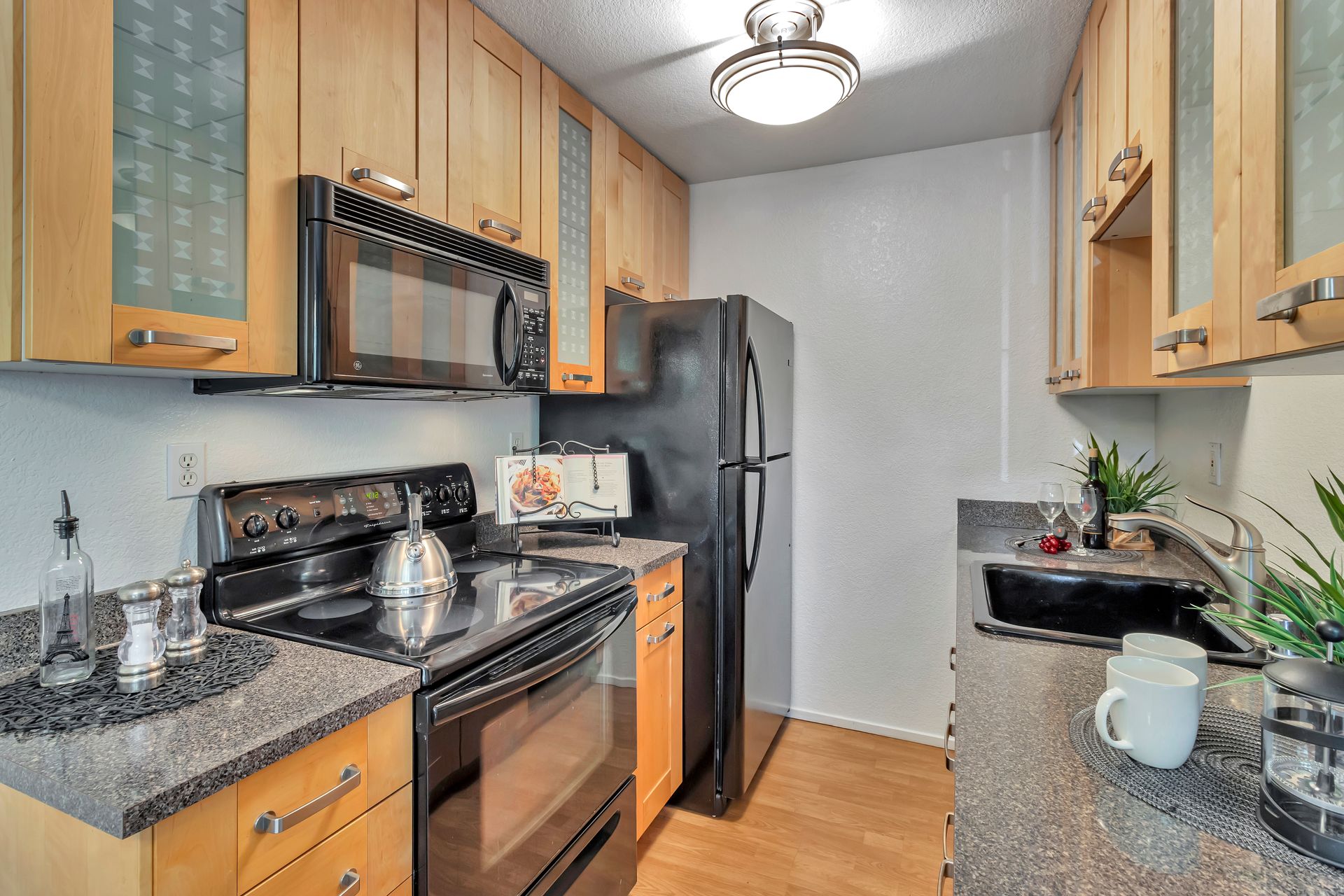 Gorgeous Ground Level End Unit located in the highly desirable Lakeview Terrace Development close to Almaden Lake Park. This spacious one bedroom / one bath condo is move-in ready with open living and dining space plus a cozy inviting fireplace. Updated Kitchen Cabinets with lovely Granite Counters, Micro Range/Oven and Refrigerator included. French doors open to the large primary bedroom suite with custom plantation shutters and its own private remodeled bath with tub. Custom built in closet storage with drawers too. Indoor laundry area with stackable washer/dryer included. Freshly painted throughout. All this plus your own spacious patio with additional storage under the redwood trees. Enjoy all recreational activities including pool/spa, clubhouse, bocce ball, and a 3.9 mile fitness trail hike at Los Alamitos Creek Trail. Conveniently located near Oakridge Mall, Whole Foods, Trader Joe's, Costco, and Highways 85 and 87.