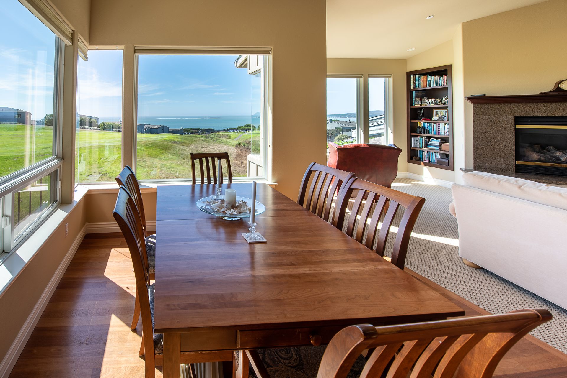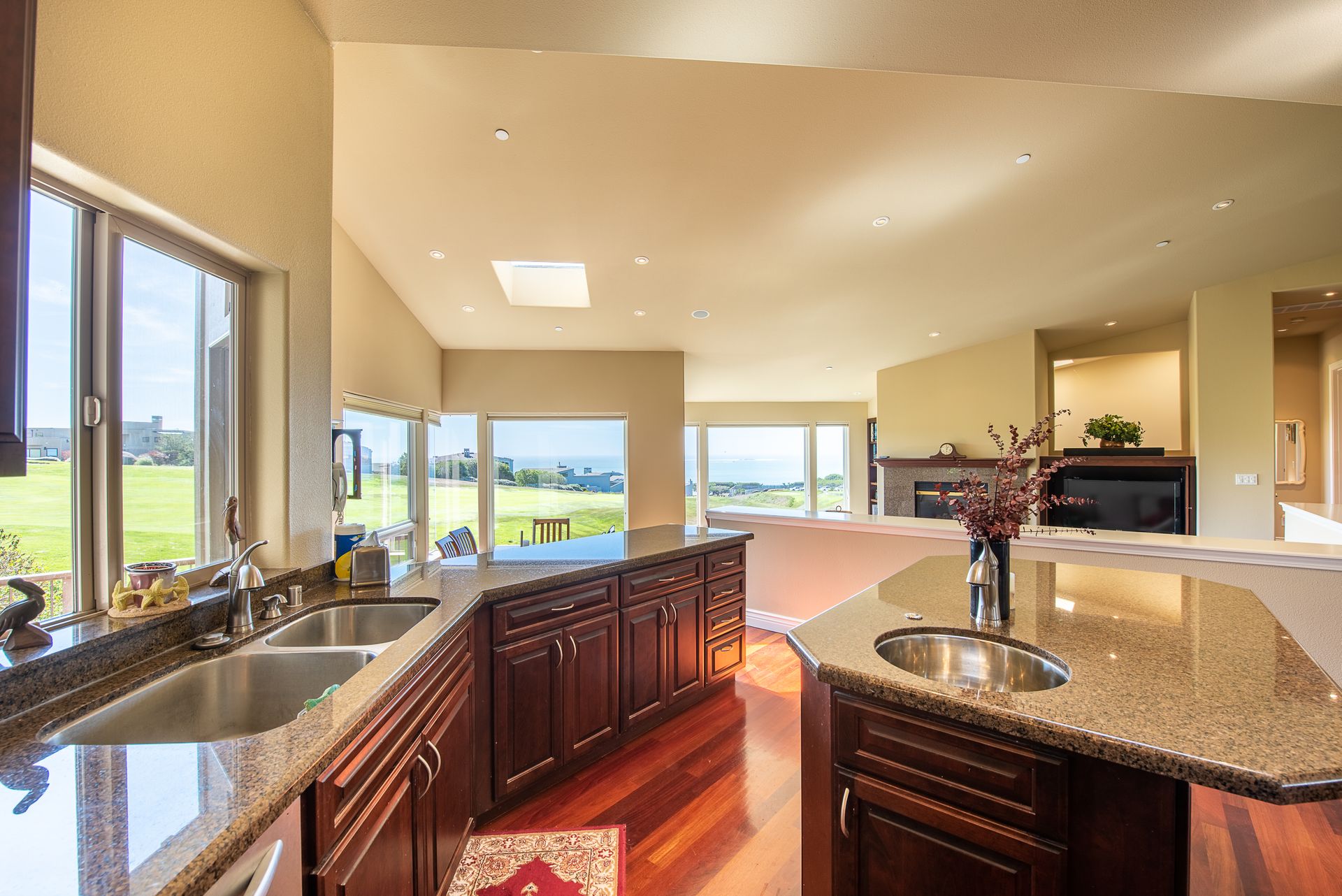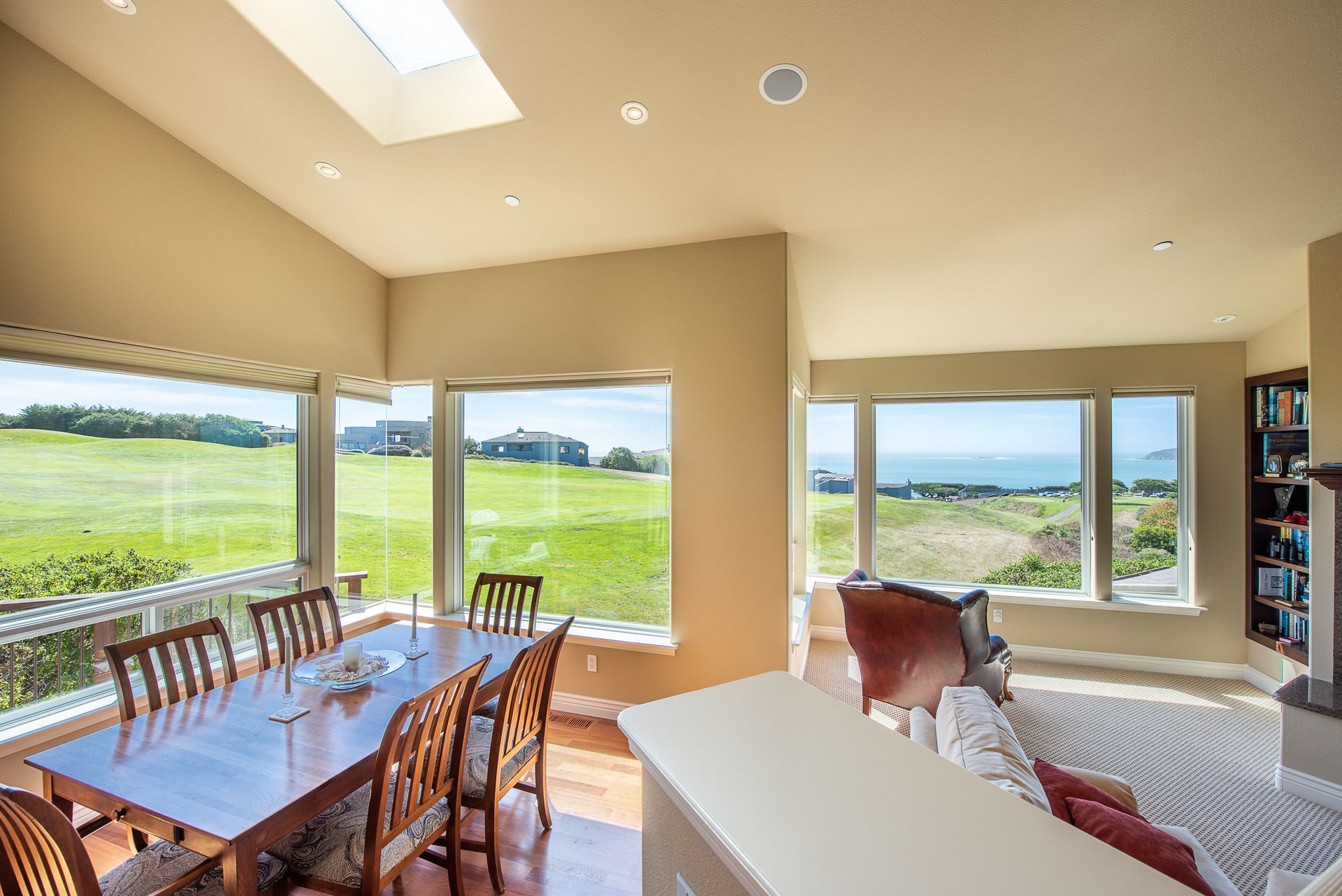 Green to Ocean. Come experience ocean views over the first fairway of Robert Trent Jones Jr. designed links style golf course. This contemporary two story three bedroom and three and a half bath home with bonus laundry/exercise room offers ocean views from both levels. Large master suite with fireplace opens to garden patio. The Great Room is enhanced with volumes of natural light, gourmet kitchen with granite counters, stainless steel appliances and center island with second sink. Enjoy nearby beach access with home conveniently located six houses up from clubhouse and amenities of Bodega Harbour including heated pool, gym, men's and women's locker rooms with saunas, bocce, tennis, and basketball courts, kids playground, Blue Water Bistro dining, and more. Park your car, relax and play in this coastal paradise.