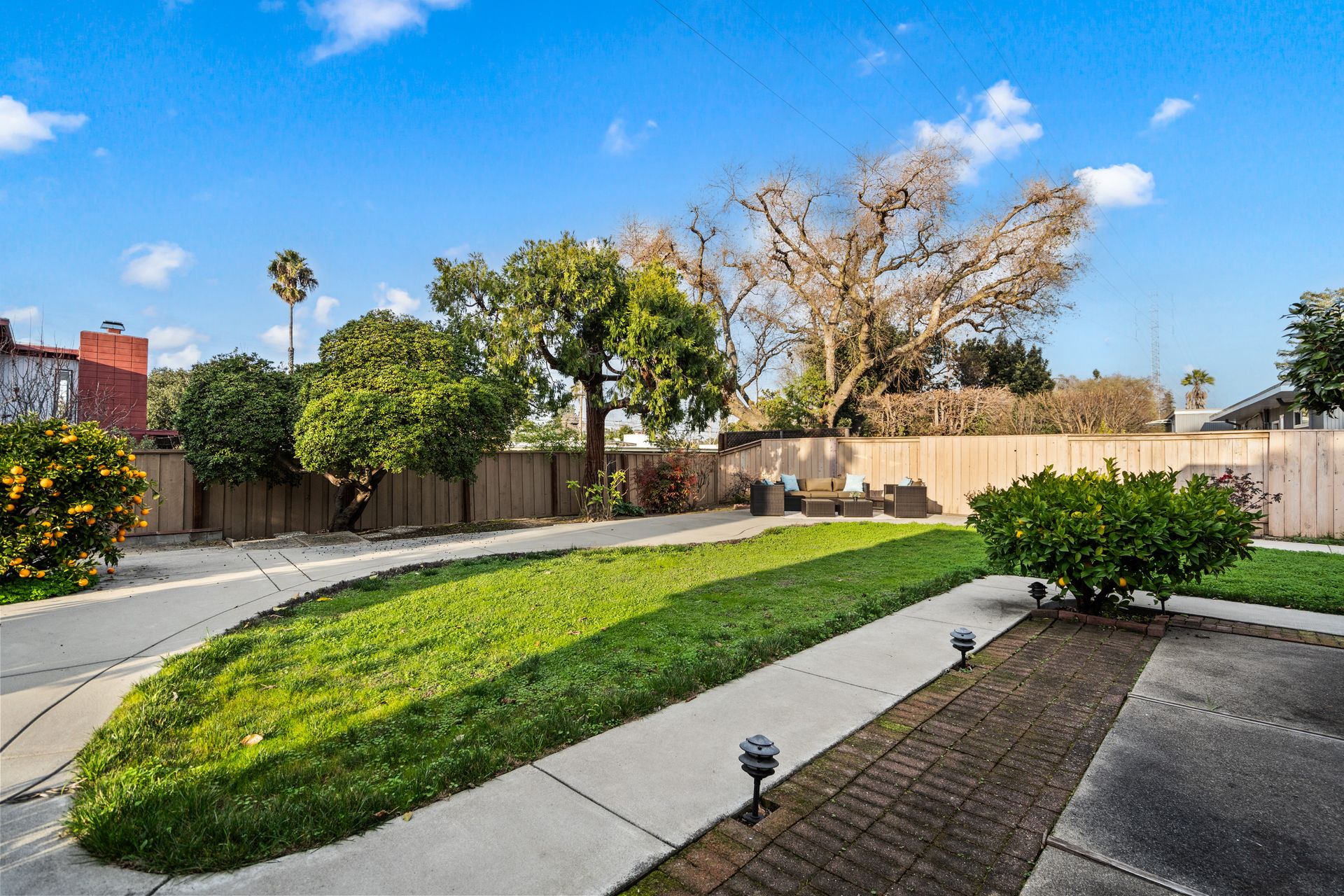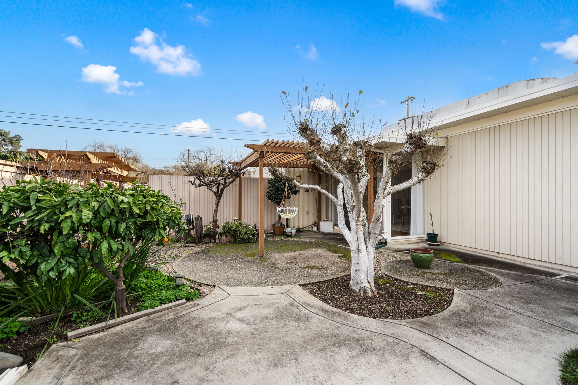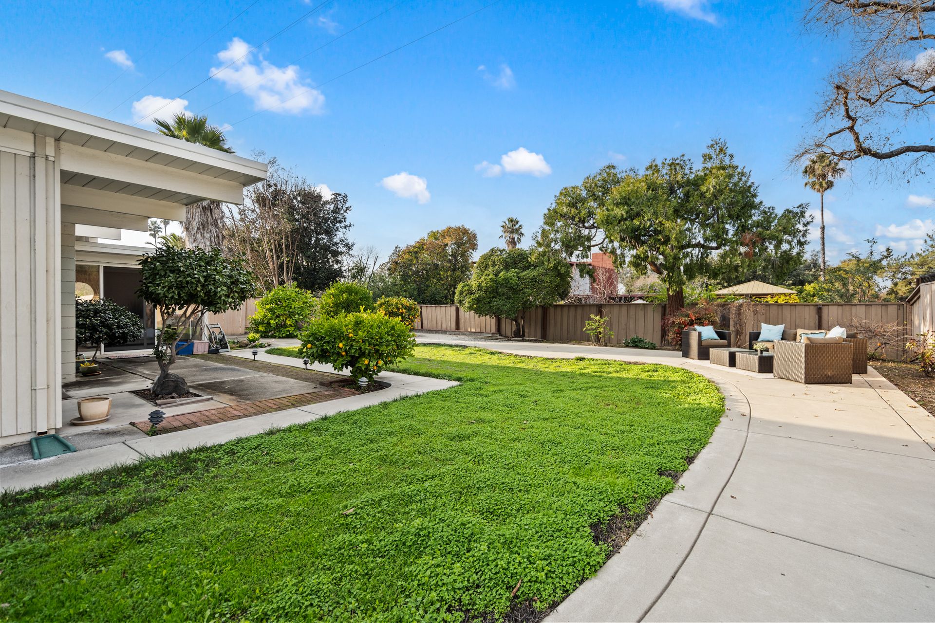 Step into the living spaces, where an abundance of natural light dances through the iconic Eichler floor-to-ceiling windows, seamlessly connecting indoor and outdoor living. This outdoor sanctuary is a true highlight, boasting mature fruit trees, a BBQ/play area for entertaining, and storage. The generously sized yard also presents the exciting possibility of adding an ADU, providing versatility and potential income. The attached garage offers side by side parking.