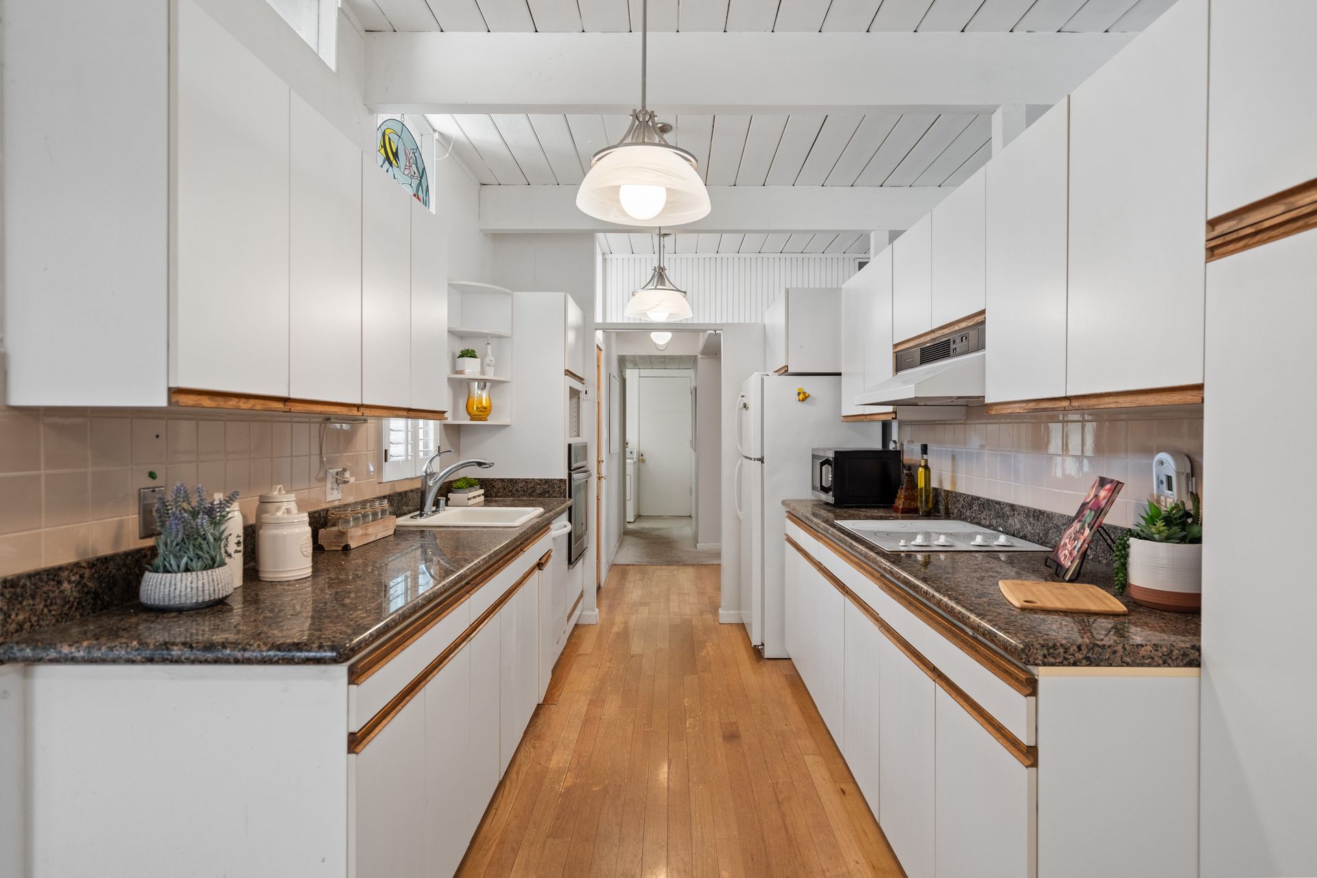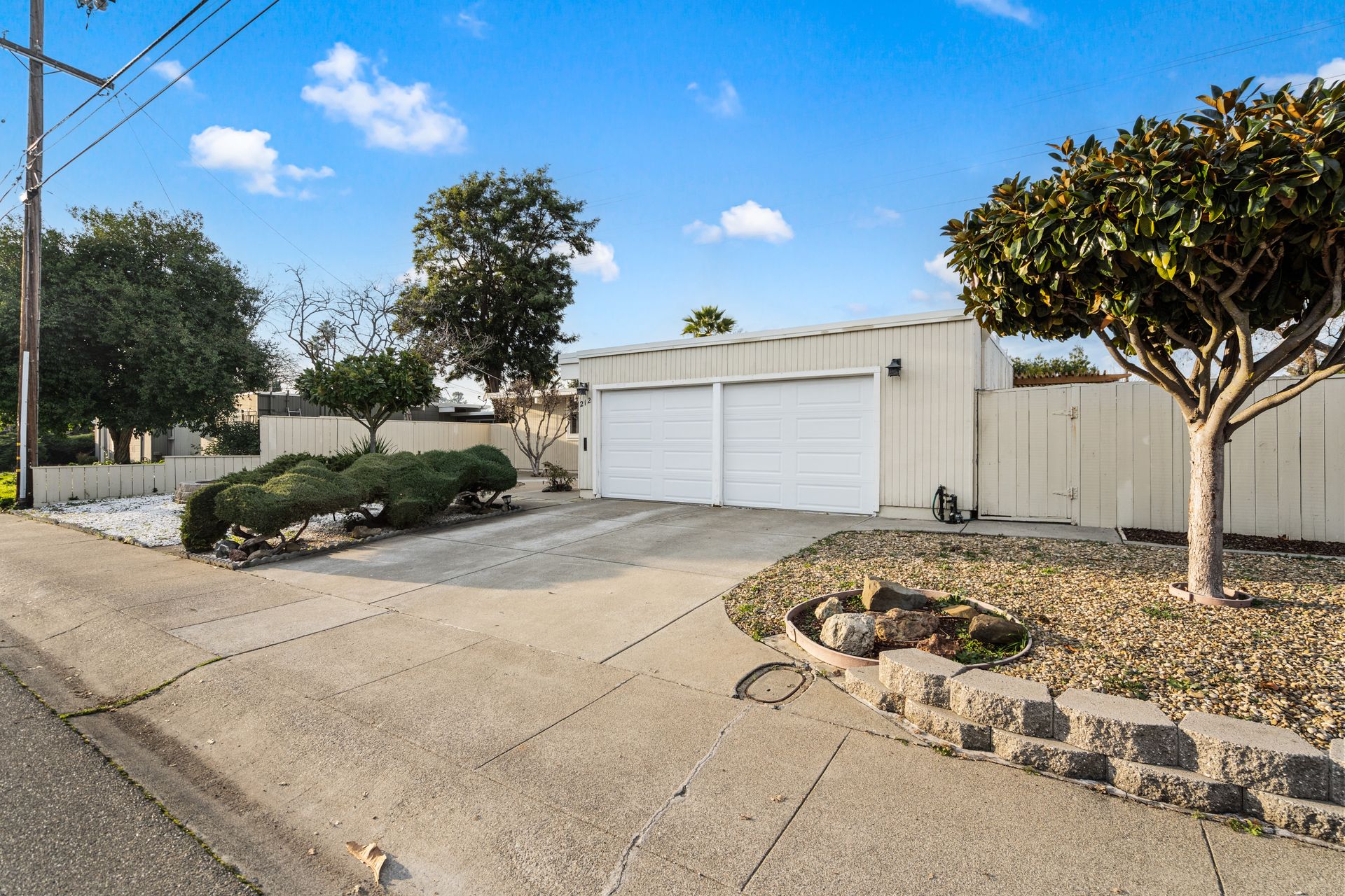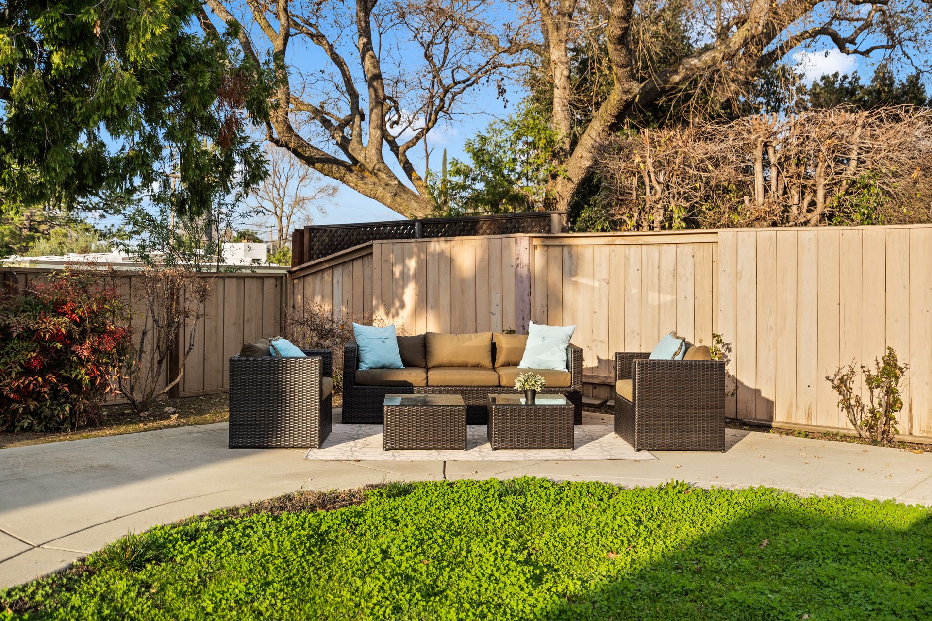 Step into the living spaces, where an abundance of natural light dances through the iconic Eichler floor-to-ceiling windows, seamlessly connecting indoor and outdoor living. This outdoor sanctuary is a true highlight, boasting mature fruit trees, a BBQ/play area for entertaining, and storage. The generously sized yard also presents the exciting possibility of adding an ADU, providing versatility and potential income. The attached garage offers side by side parking.