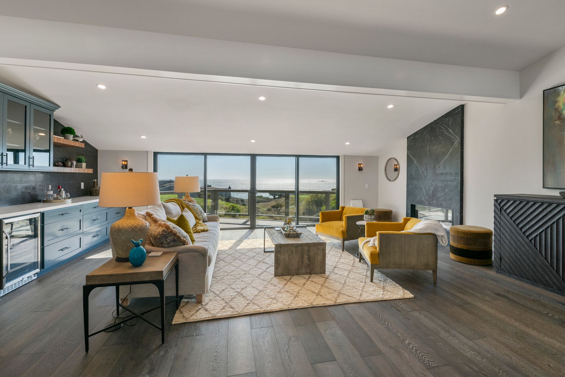 Outstanding ocean and golf course views within walking distance to the Bodega Harbour Clubhouse with access to two miles of Doran Beach's sandy shores. This 2534 SQF gem offers views from every room with well-appointed decks to enjoy spectacular sunsets over Bodega Head, the waves of the Pacific, migrating whales, abundant wildlife, and outstanding star-gazing. This luxury-modern home affords you the good life, featuring a custom chef's kitchen with new cabinets, stone counters, high-end, built-in appliances, and pantry. High-end touches throughout such as a wine-espresso bar in the main living room and an elegant fireplace to cozy up to and enjoy your oasis. The clubhouse of this professionally managed oceanfront community offers amenities including the Bluewater Bistro and Bar, gymnasium, sauna, heated pool, tennis, bocce, basketball, playground, and private beach access. This well-maintained, comfortable beach sanctuary is tastefully appointed with furnishings that are negotiable.