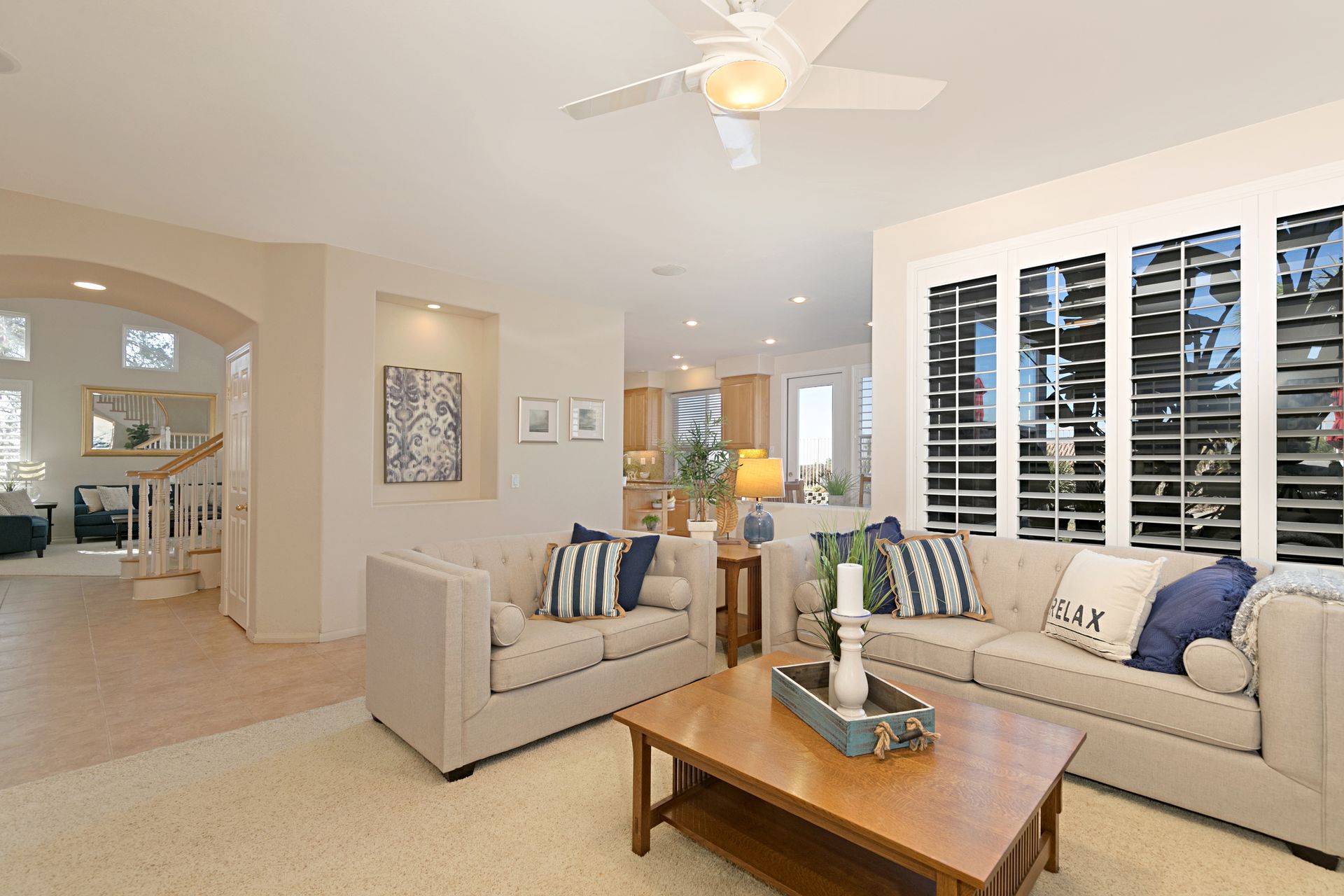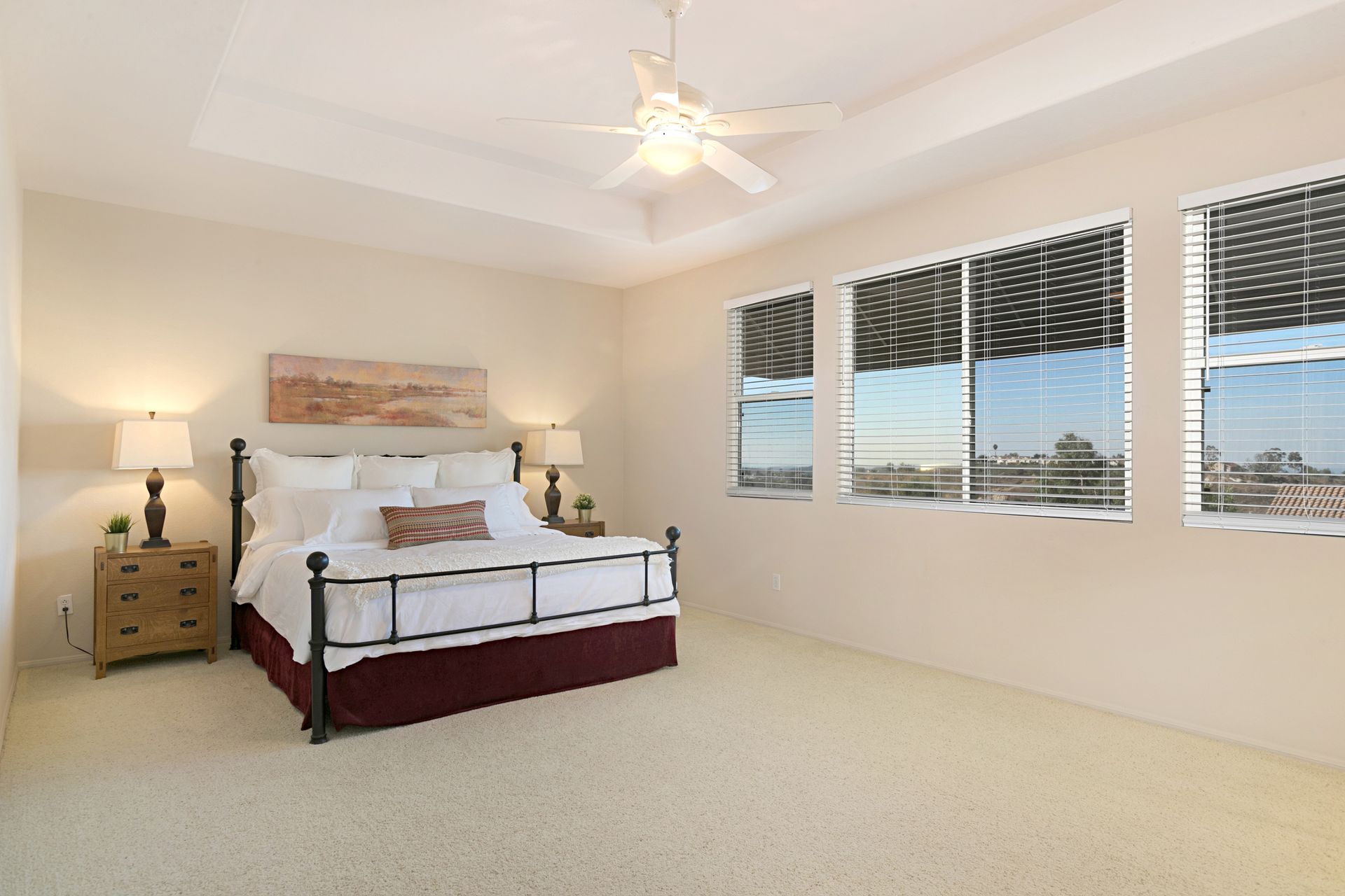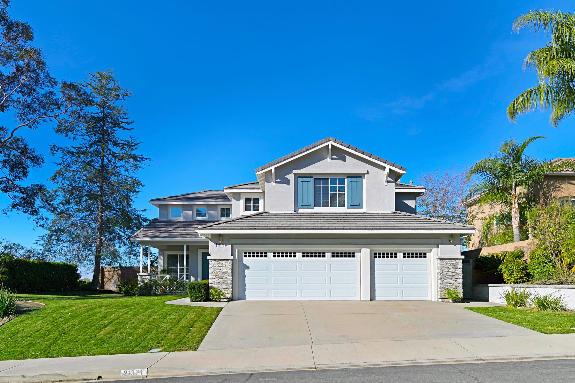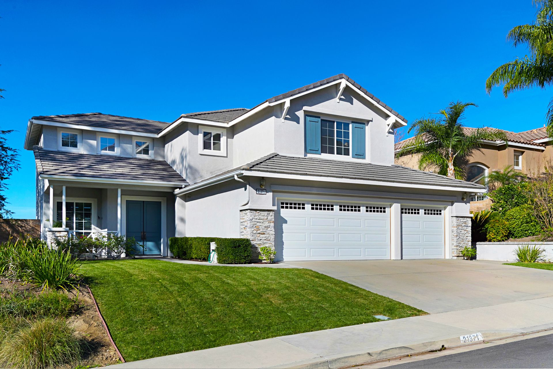 Looking for a home with an abundance of space indoors and out? Here is the Robinson Ranch four bedroom plus loft, three full bath view home on a 10,000sf corner lot you've been waiting for! Situated on a lush single-loaded cul-de-sac street with only one direct neighbor and expansive sunset views of the beautiful Saddleback Valley. This is the epitome of comfortable living with natural light-filled rooms for everyone who works or studies at home and for entertaining. Soaring ceilings, plantation shutters, recessed lighting, six ceiling fans and a neutral color scheme create a sense of space and warmth throughout the home. The large formal living and dining rooms have vaulted ceilings plus hillside and tree views. A bright eat-in kitchen features granite countertops and backsplash, large center island, maple cabinetry, new stainless steel appliances, walk-in pantry, and direct access to a pool-sized backyard. The family room is open to the kitchen and has built-in shelving plus a fireplace offering a cozy place to relax. The main suite features a trey ceiling, incredible views, plus an ensuite with mirrored door access to a large walk-in closet, soaking tub, and separate shower. Two generously sized bedrooms have mirrored custom wardrobes plus a Jack & Jill bathroom with dual sink vanity and privacy doors. One bedroom and a full bath are located on the main level. The spacious loft could be converted to a fifth bedroom or an entertaining “teen suite”. The outdoor living space features a retractable awning for all the sun or shade you desire, multiple patios, and a cascading water feature. This scenic community provides access to a gated pool and spa facility, basketball court, sports fields, parks, and nature trails. Close to award winning schools, Lake Santa Margarita, and Town Center.