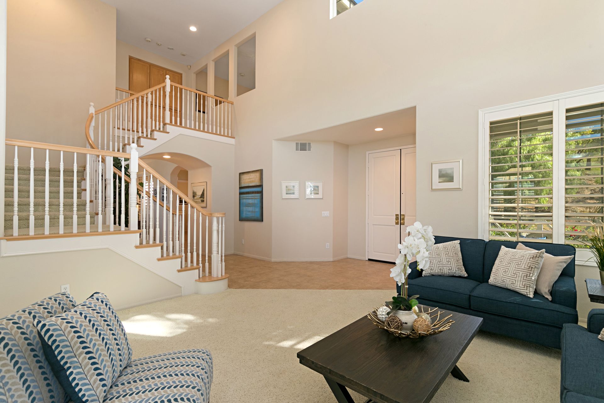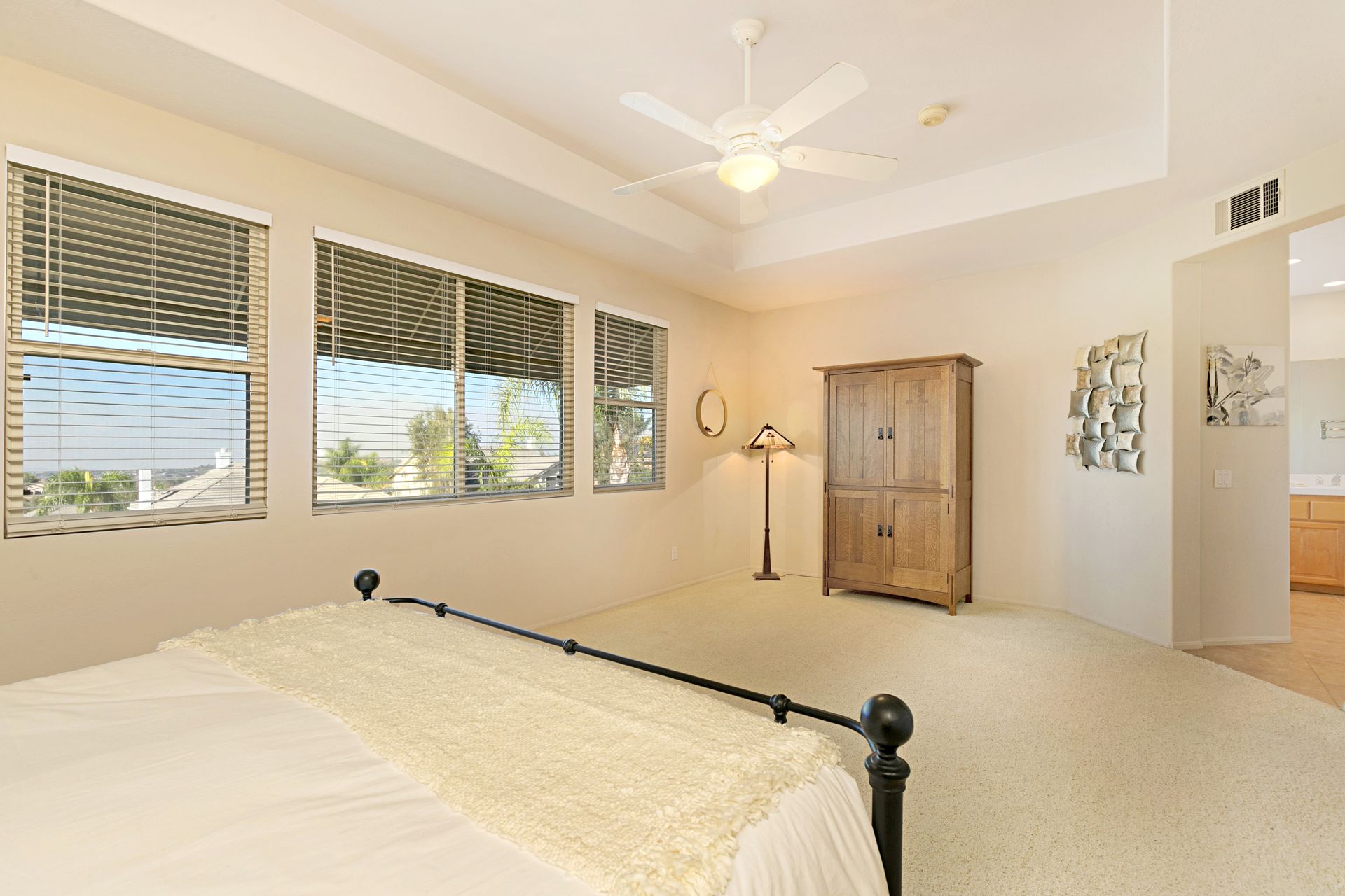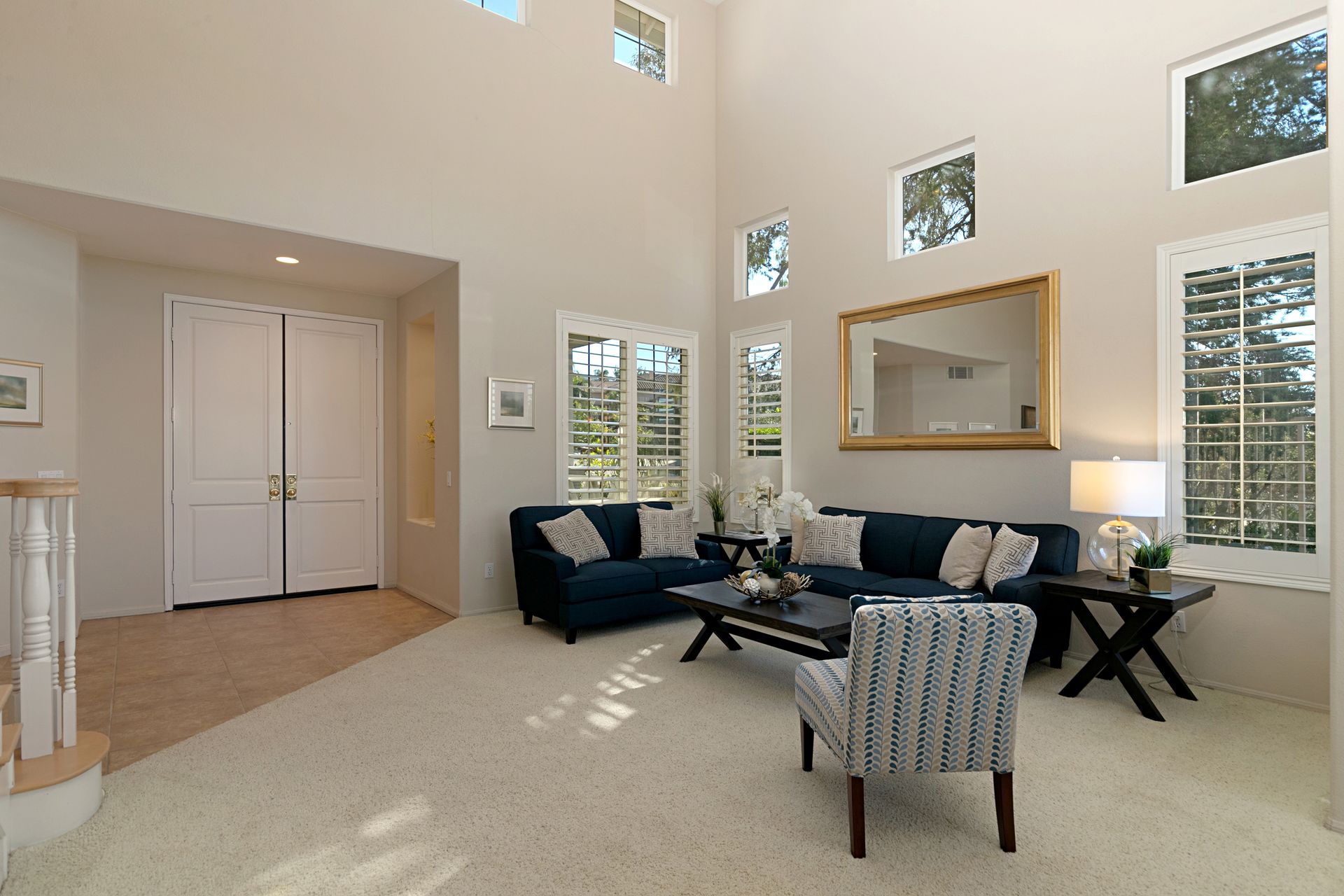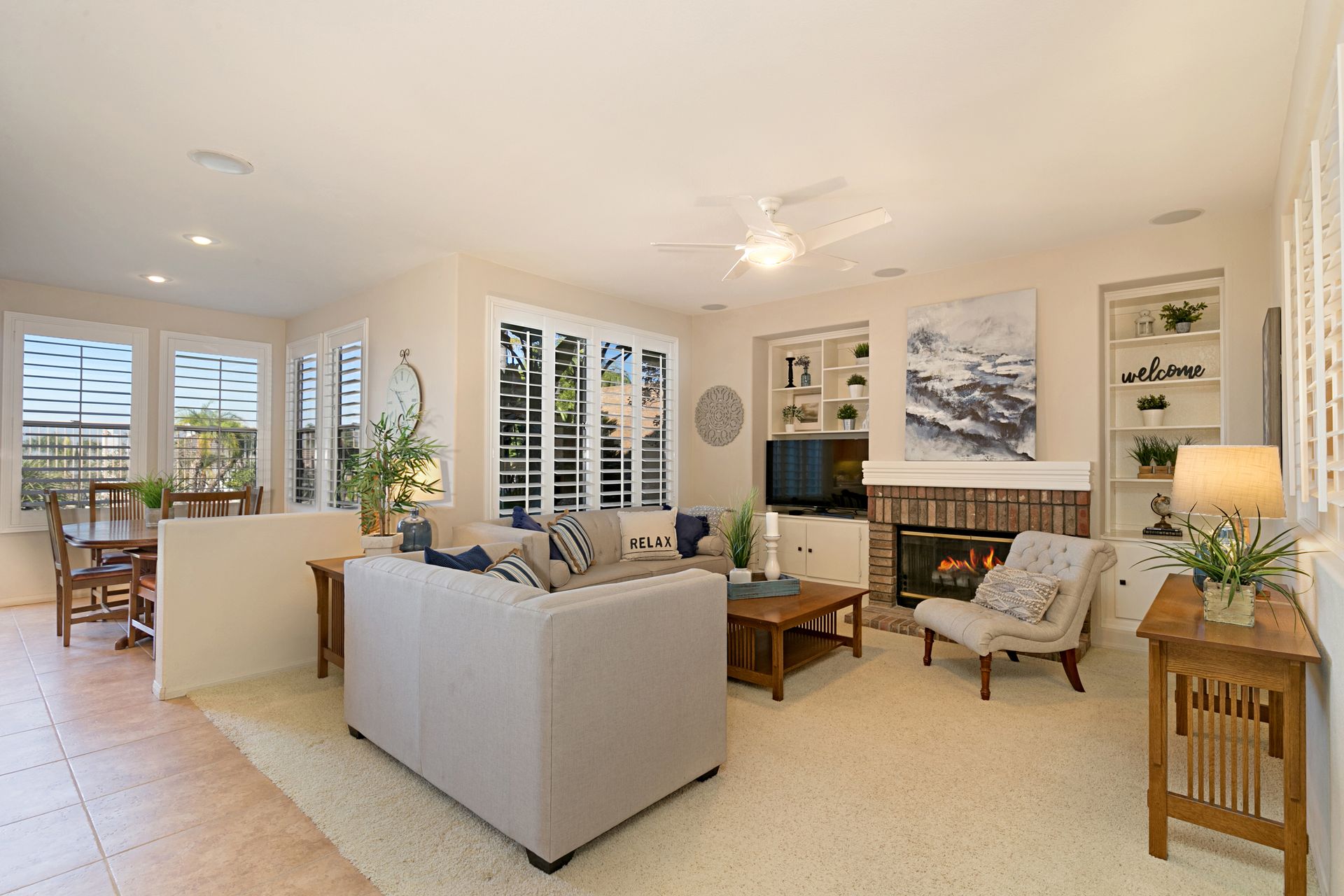 Looking for a home with an abundance of space indoors and out? Here is the Robinson Ranch four bedroom plus loft, three full bath view home on a 10,000sf corner lot you've been waiting for! Situated on a lush single-loaded cul-de-sac street with only one direct neighbor and expansive sunset views of the beautiful Saddleback Valley. This is the epitome of comfortable living with natural light-filled rooms for everyone who works or studies at home and for entertaining. Soaring ceilings, plantation shutters, recessed lighting, six ceiling fans and a neutral color scheme create a sense of space and warmth throughout the home. The large formal living and dining rooms have vaulted ceilings plus hillside and tree views. A bright eat-in kitchen features granite countertops and backsplash, large center island, maple cabinetry, new stainless steel appliances, walk-in pantry, and direct access to a pool-sized backyard. The family room is open to the kitchen and has built-in shelving plus a fireplace offering a cozy place to relax. The main suite features a trey ceiling, incredible views, plus an ensuite with mirrored door access to a large walk-in closet, soaking tub, and separate shower. Two generously sized bedrooms have mirrored custom wardrobes plus a Jack & Jill bathroom with dual sink vanity and privacy doors. One bedroom and a full bath are located on the main level. The spacious loft could be converted to a fifth bedroom or an entertaining “teen suite”. The outdoor living space features a retractable awning for all the sun or shade you desire, multiple patios, and a cascading water feature. This scenic community provides access to a gated pool and spa facility, basketball court, sports fields, parks, and nature trails. Close to award winning schools, Lake Santa Margarita, and Town Center.