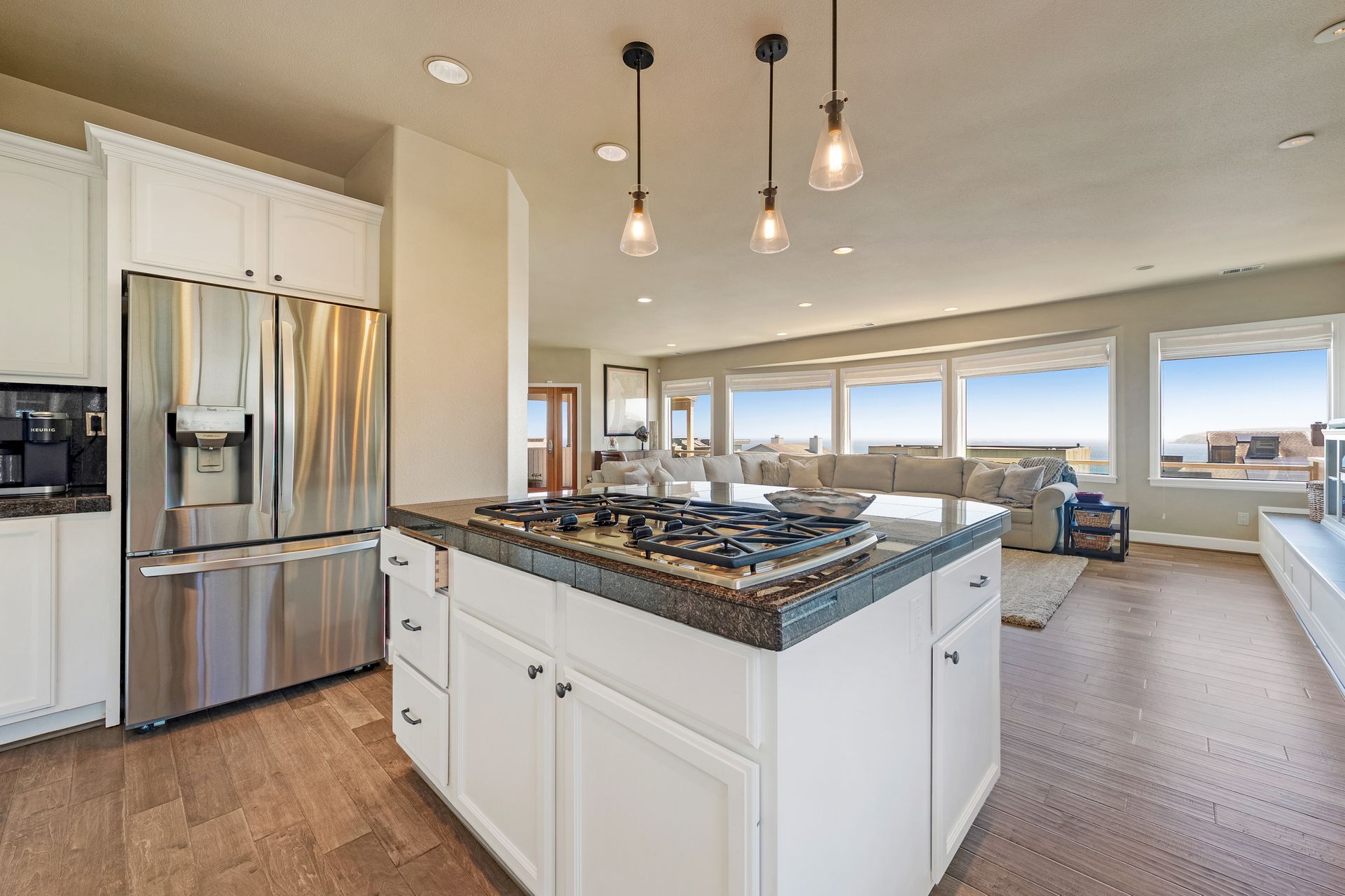 Welcome to your dream ocean view home in the idyllic coastal town of Bodega Bay. Presented for the first time on the market, by the original owner and builder, this impeccably maintained gem showcases meticulous attention to detail and offers panoramic ocean vistas from the Point Reyes Peninsula to Doran Beach, Tomales Point, Bodega Head, Seal Rock and the bay, capturing the stunning natural beauty of the coast. Whether you're looking for a serene retreat or an entertainer's paradise, this home has it all. The upstairs open floor plan and large picture windows creates a bright, inviting space ideal for relaxation, entertaining and dining. The gourmet Kitchen is a chef’s delight with top-of-the-line appliances, custom cabinetry, and a generous island, all while offering spectacular ocean views. Retreat to the master suite with five-piece master bath, sitting area and walk-in closet with custom cabinetry. With Three Full Beds and Baths there are spacious accommodations for family and guests. Downstairs there is a bedroom and full bathroom, extra-large utility room featuring a workspace/laundry area with ample storage as well as an office/bonus room located adjacent to the garage, perfect for working from home or additional living space. Garage features custom 6’’ countertops, storage cabinets, and a wine storage area. Enjoy exterior rear deck with seating, fire table and lower patio with stamped concrete design and hot tub, an outdoor oasis perfect for al fresco dining, morning coffee, or soaking in the sun, with landscaping providing privacy and backing to spacious common area. Located just minutes from pristine beaches via nearby access paths, enjoy easy entry to the coastline along with close proximity to clubhouse amenities such as gym and pool, locker rooms and saunas, tennis, pickleball, bocce courts, a premier Links style golf course and more, perfect for an active coastal lifestyle.
