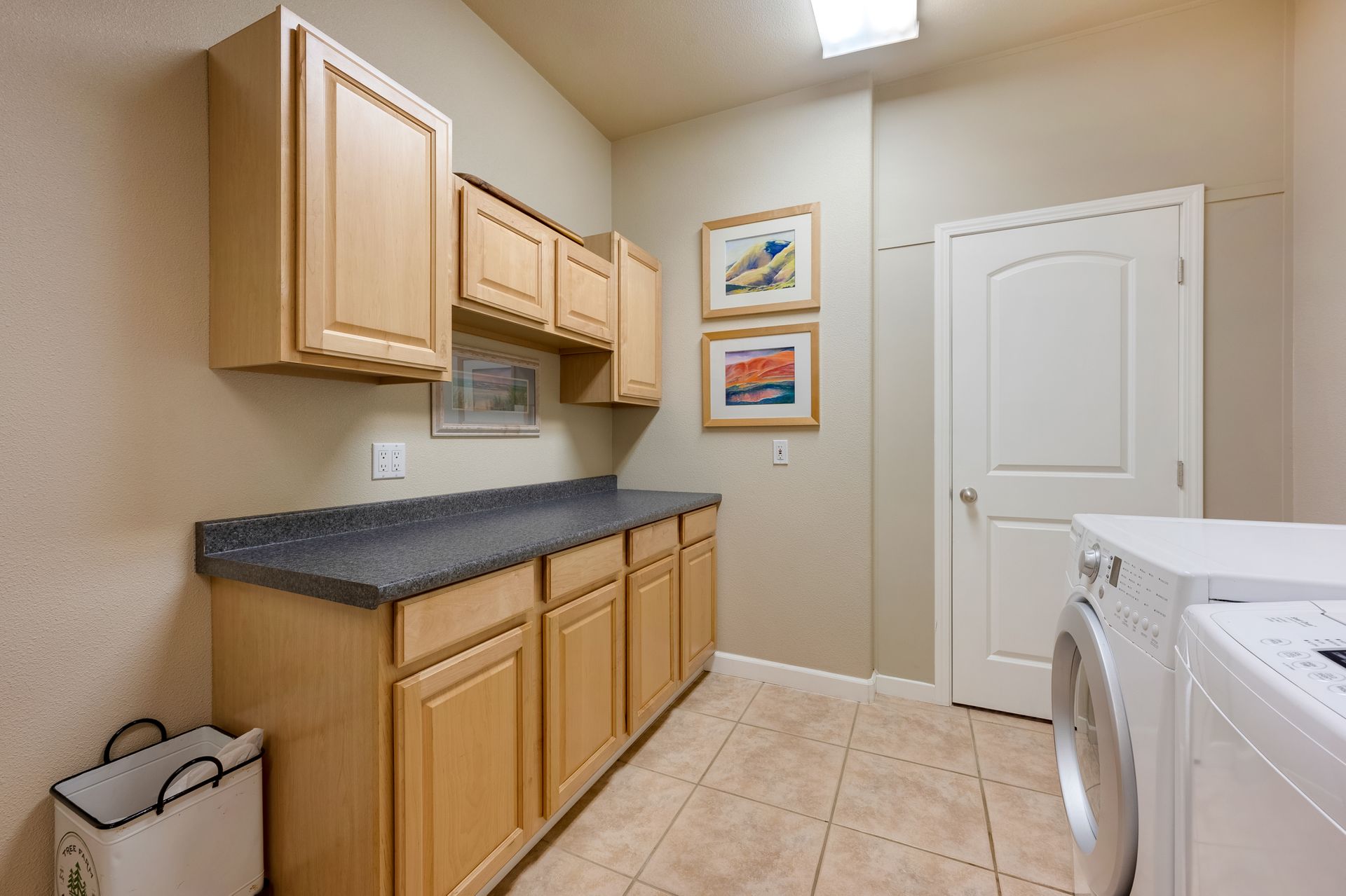 - **Utility Room**: Extra-large utility room with laundry workspace and additional storage.